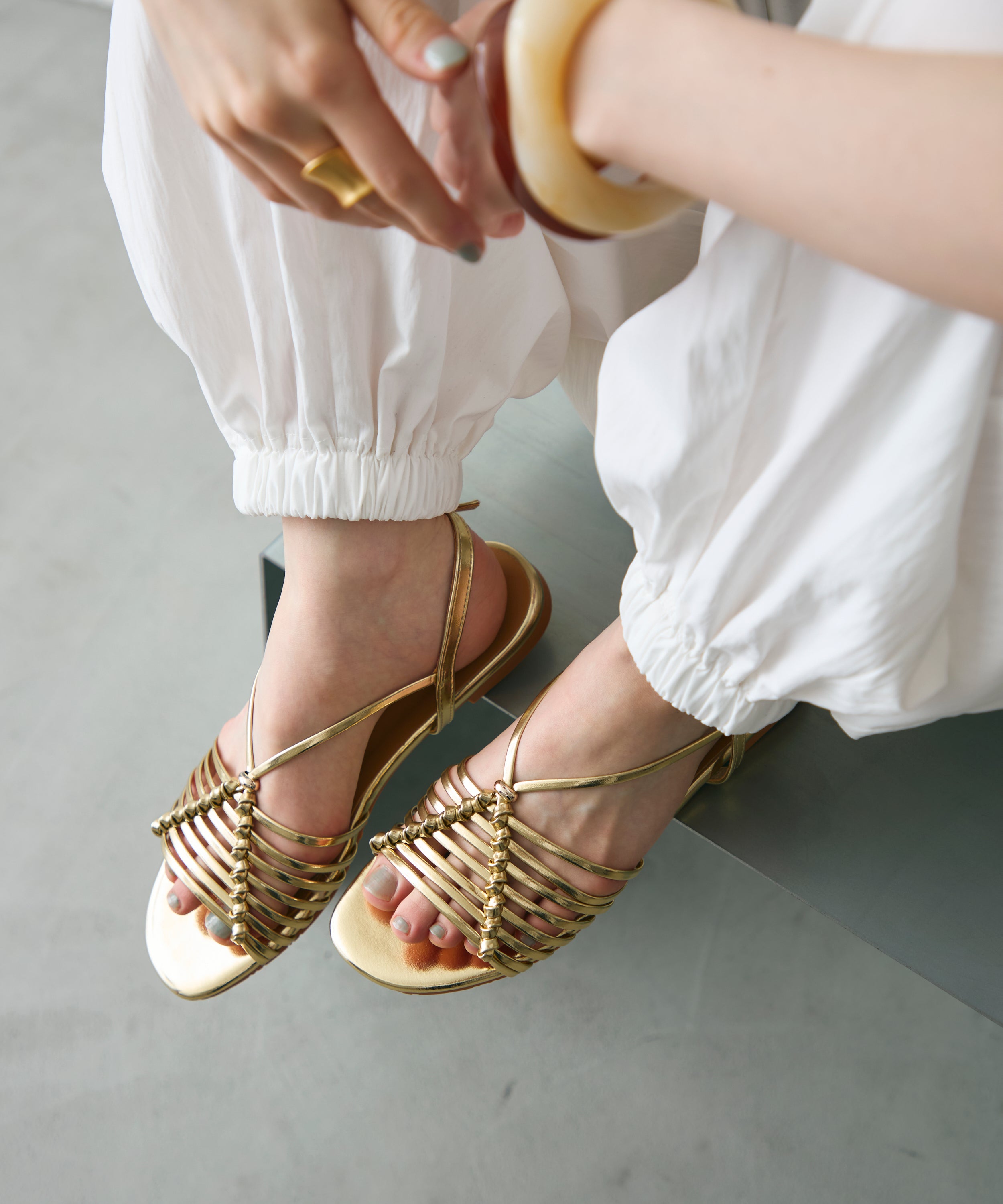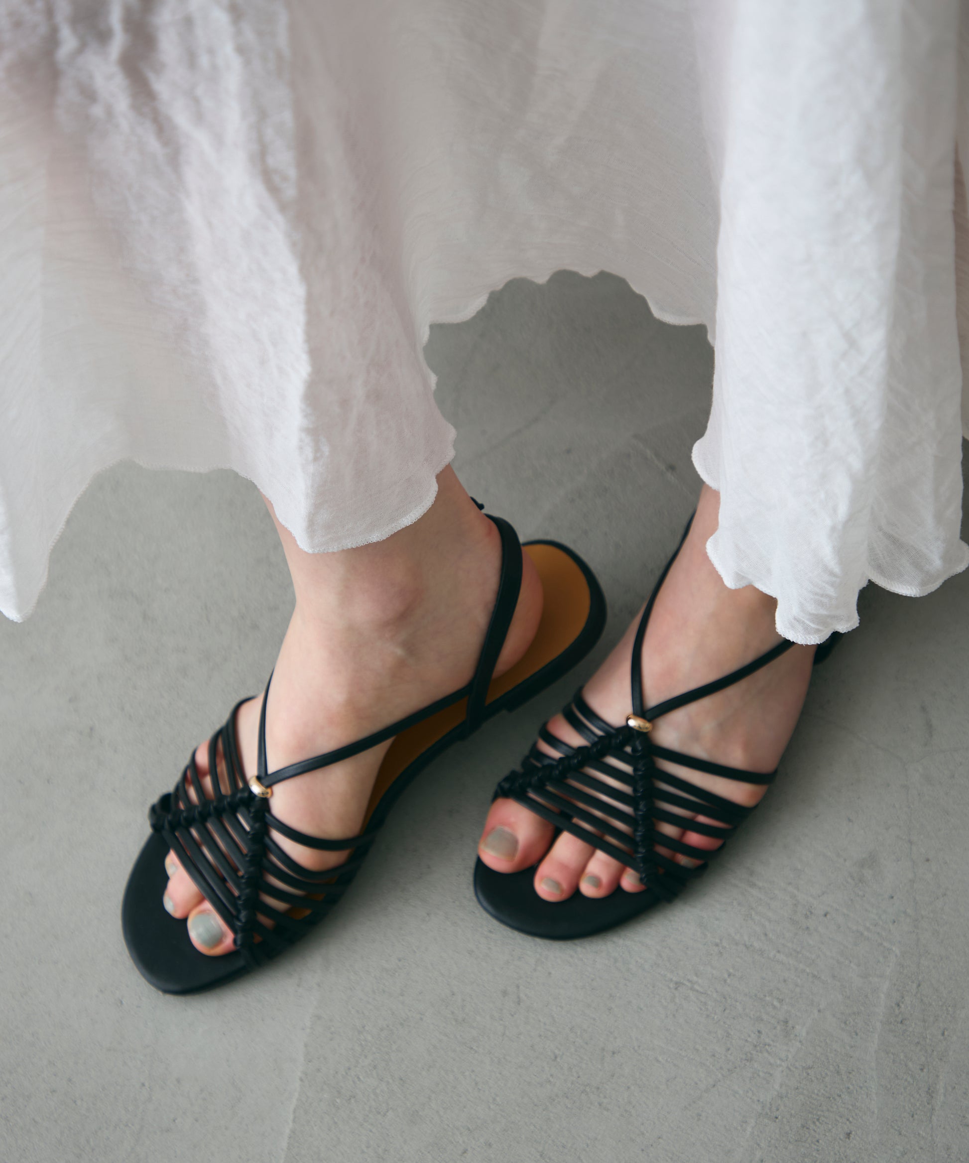 軽やかな抜け感をつくるメッシュデザインが魅力のストラップサンダル。