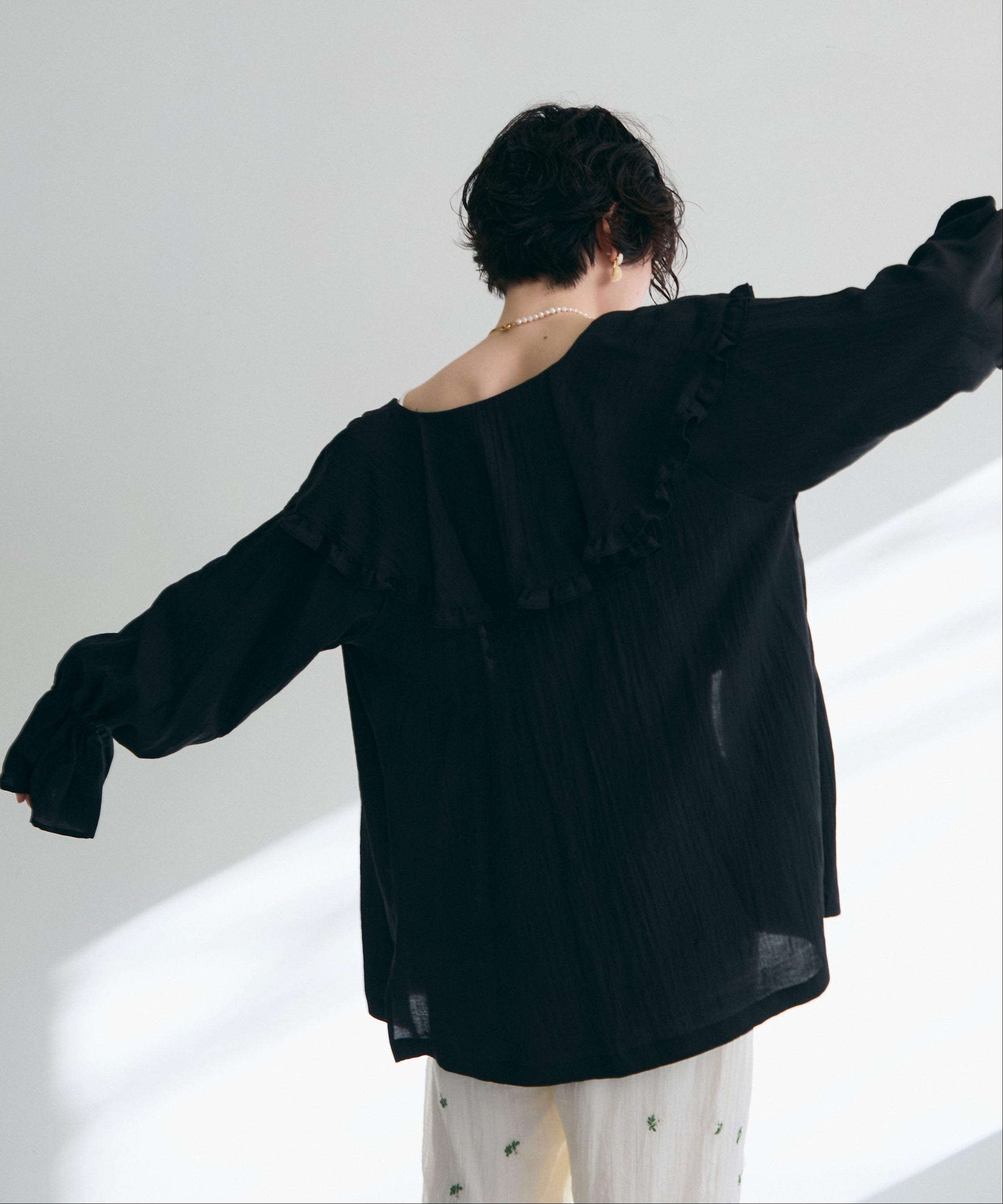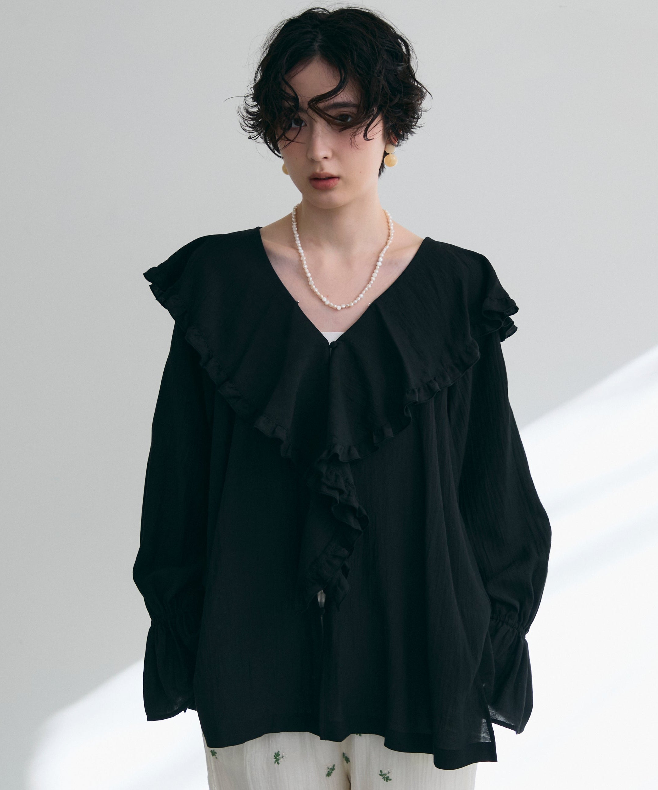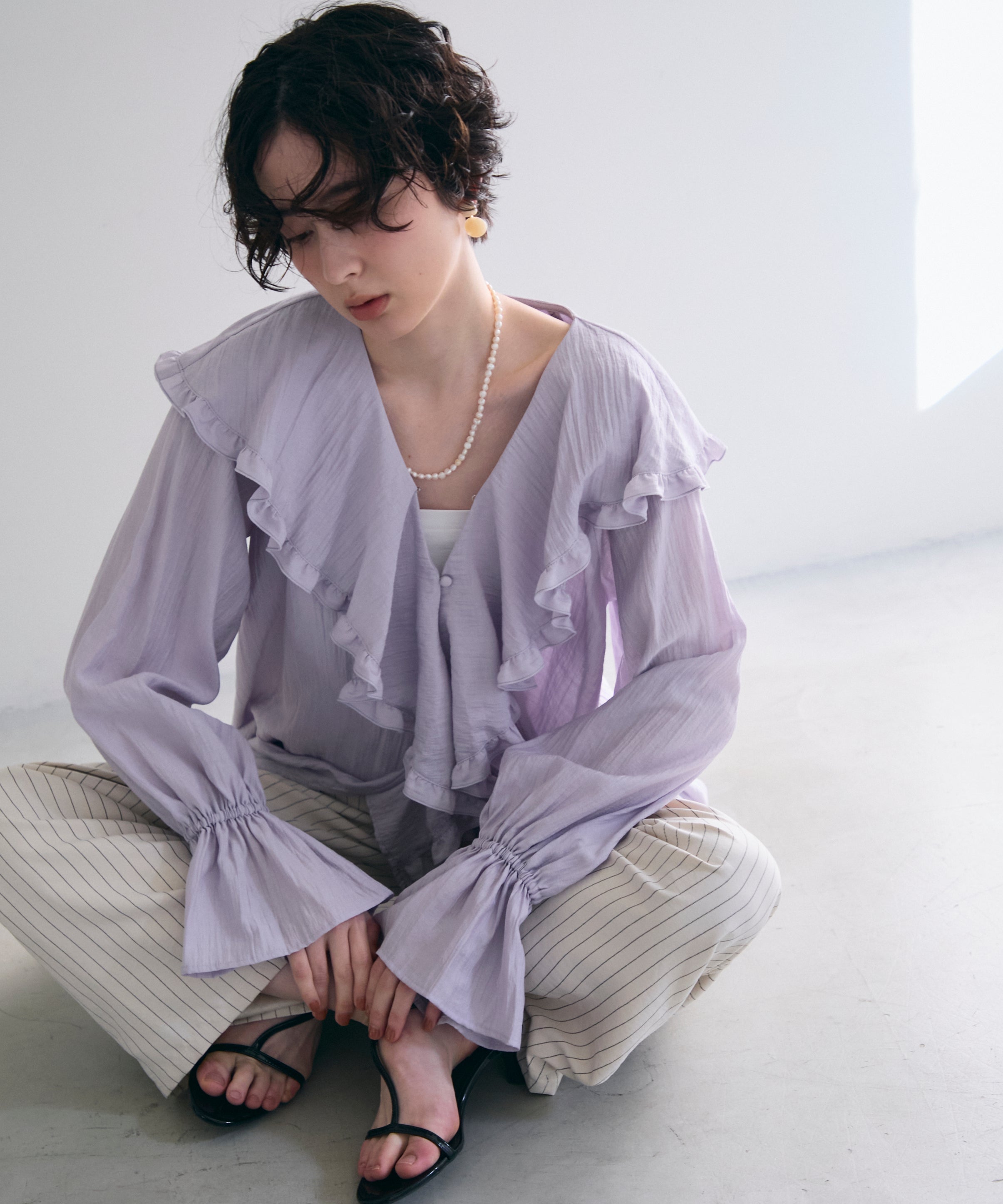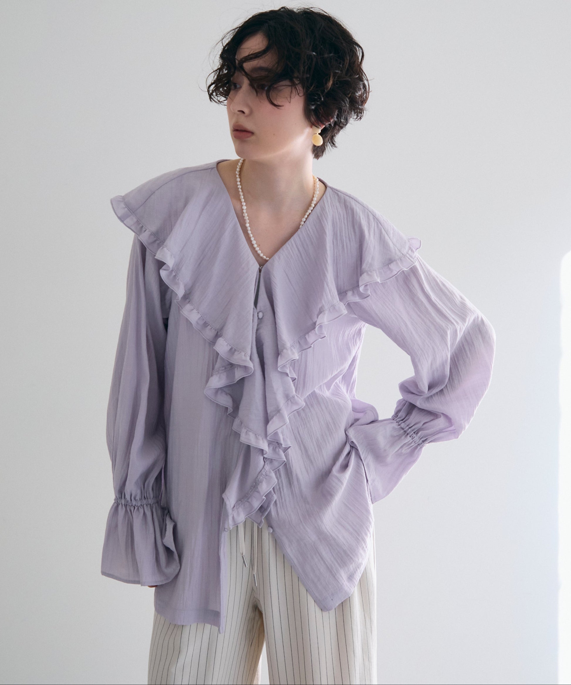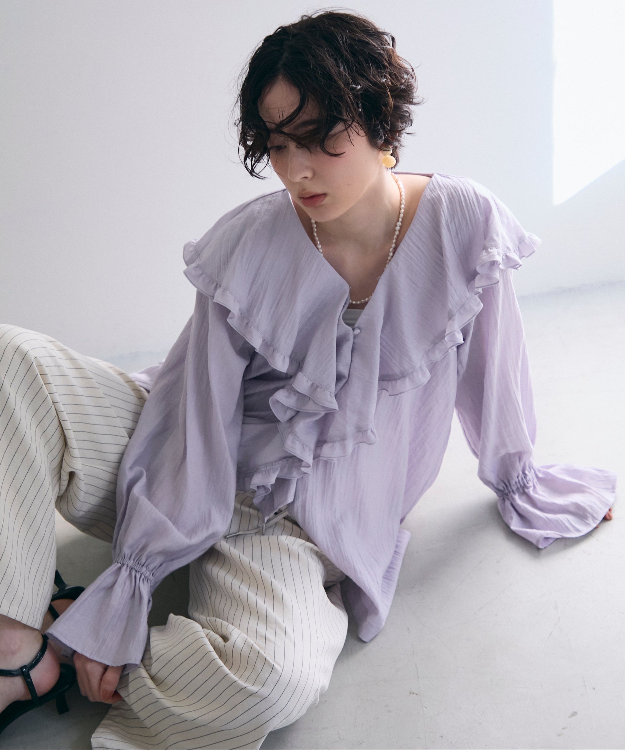 華やかなラッフルデザインが目を惹くフリルブラウス。