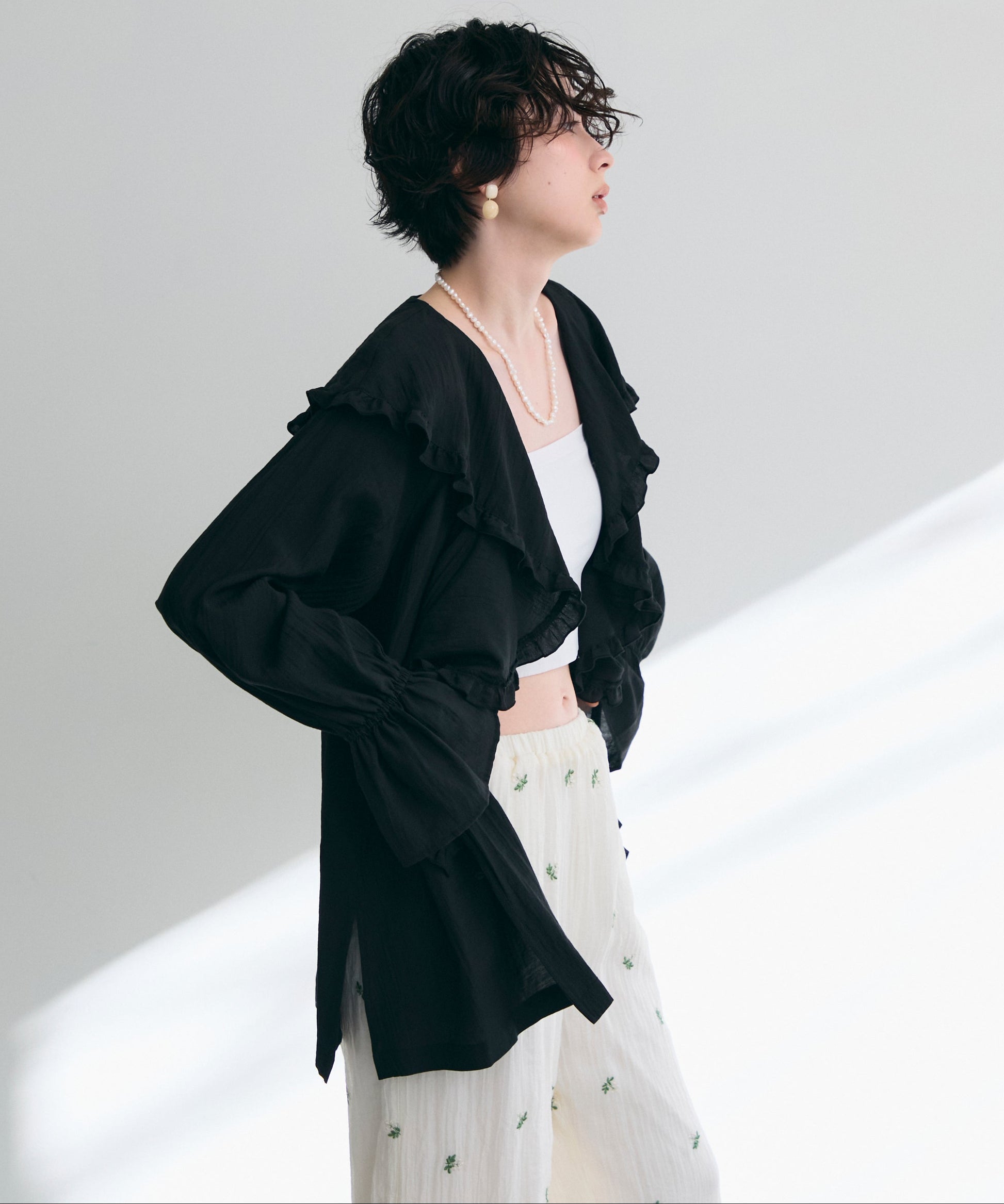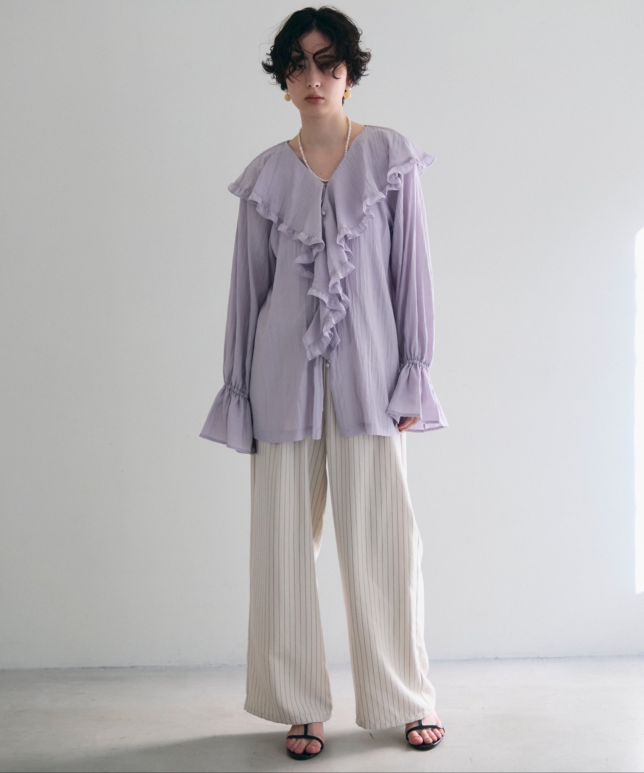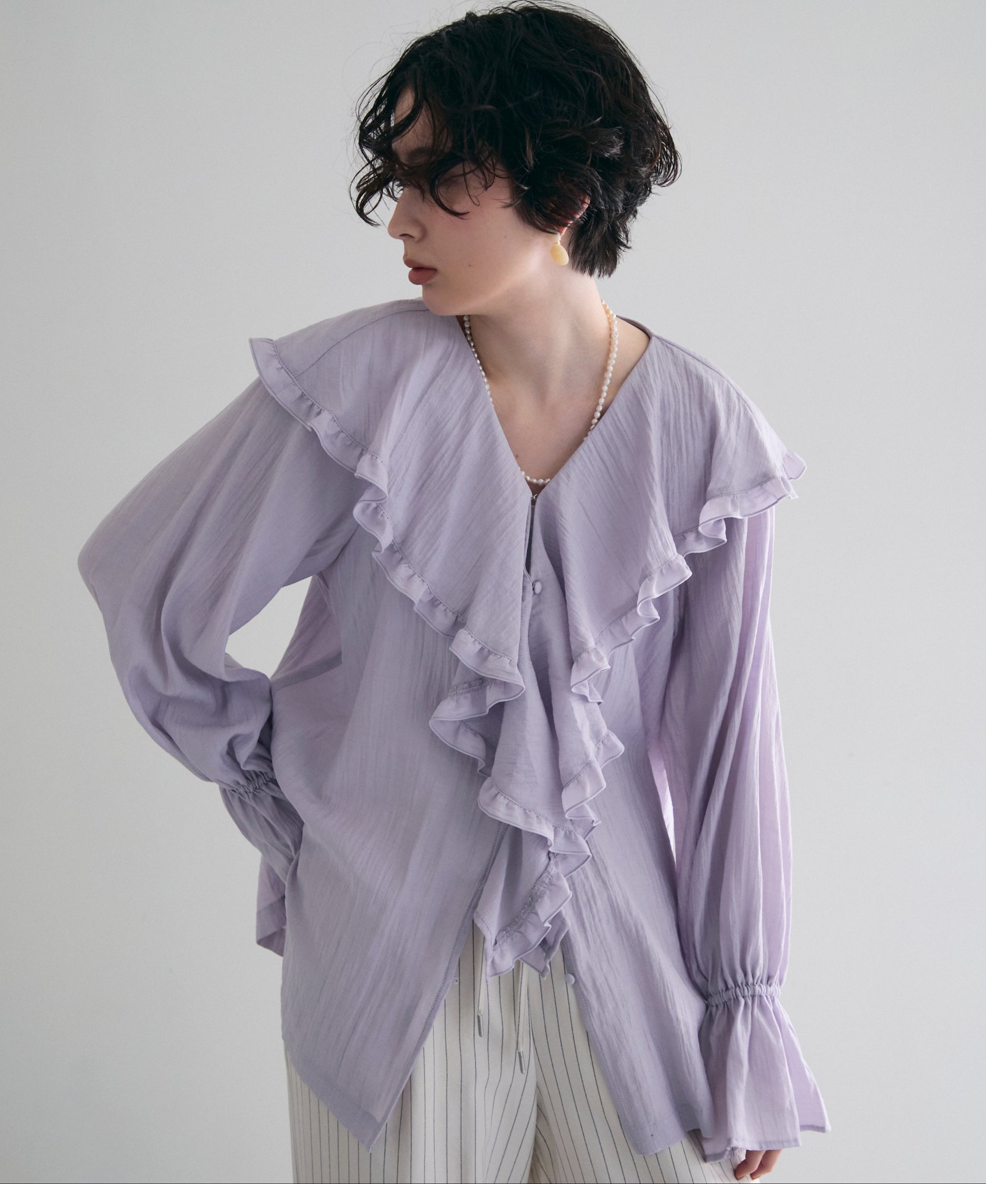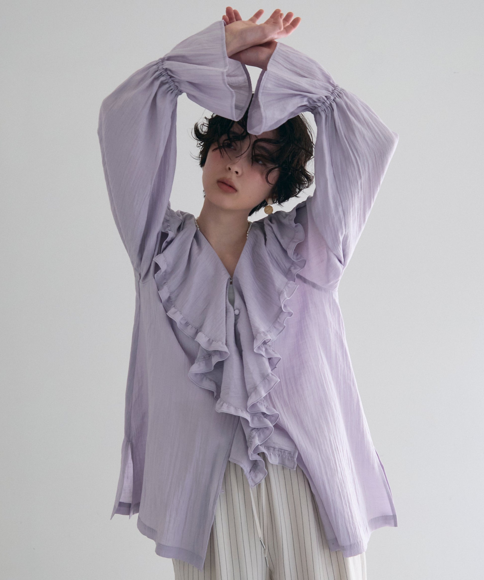 華やかなラッフルデザインが目を惹くフリルブラウス。