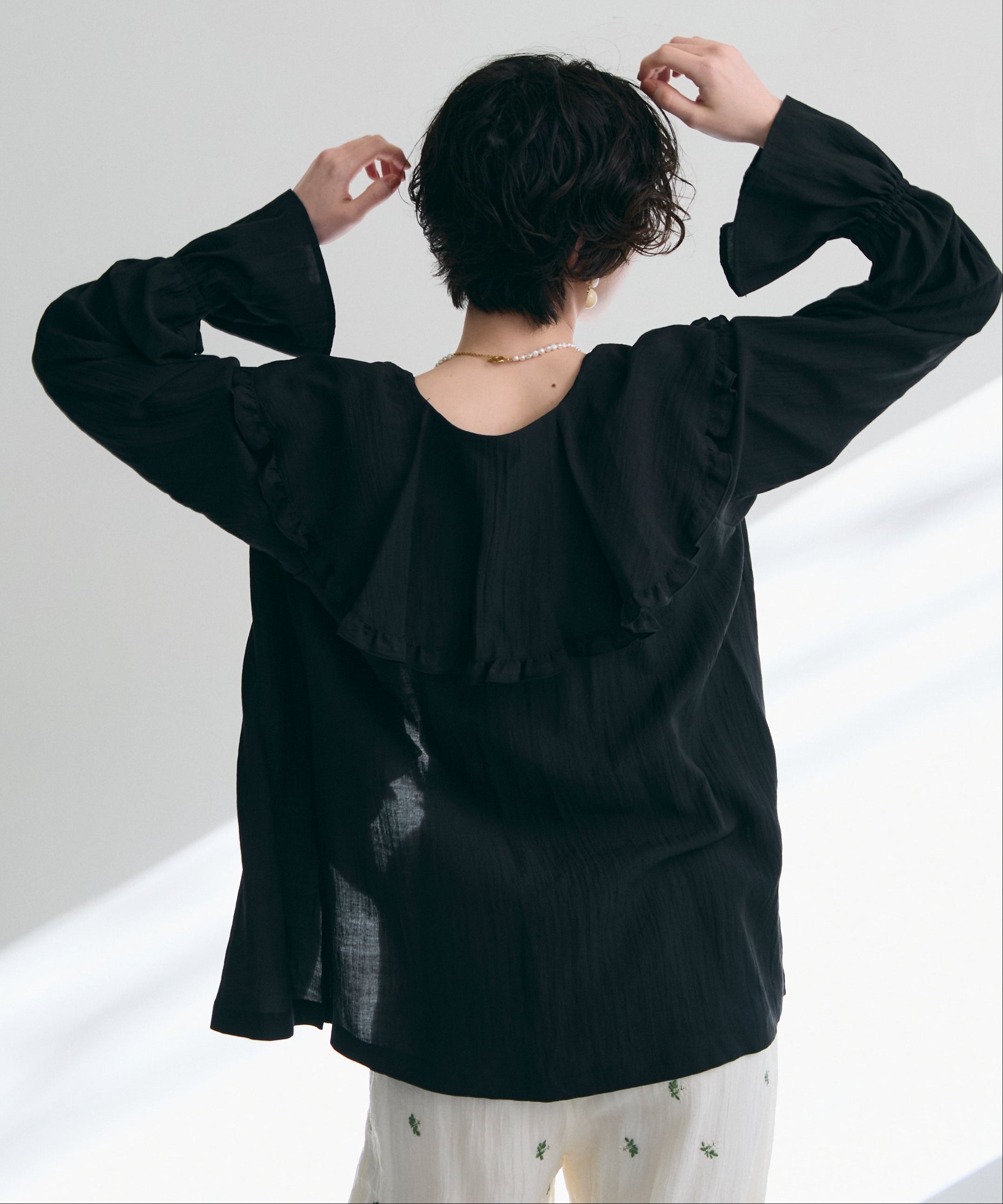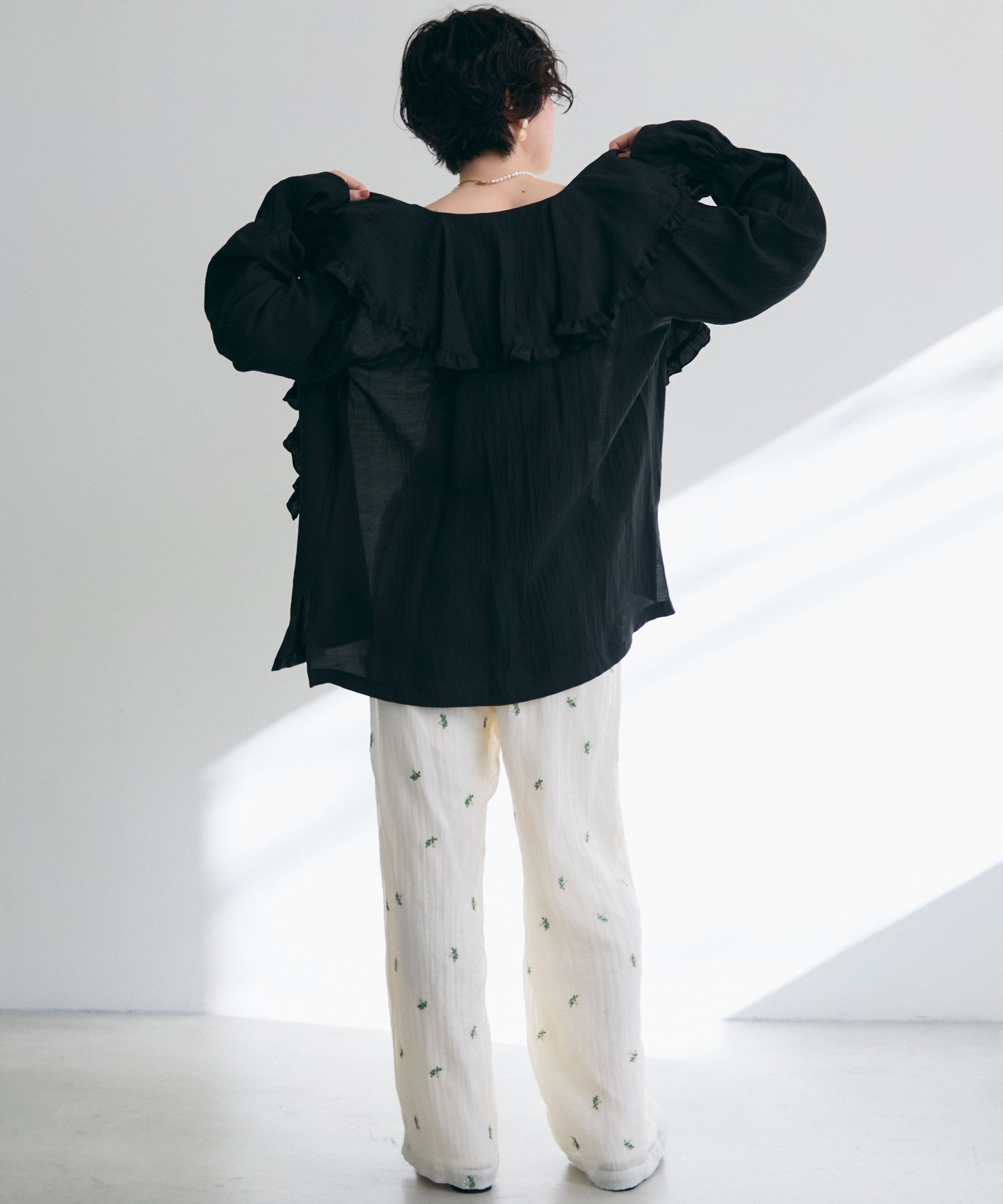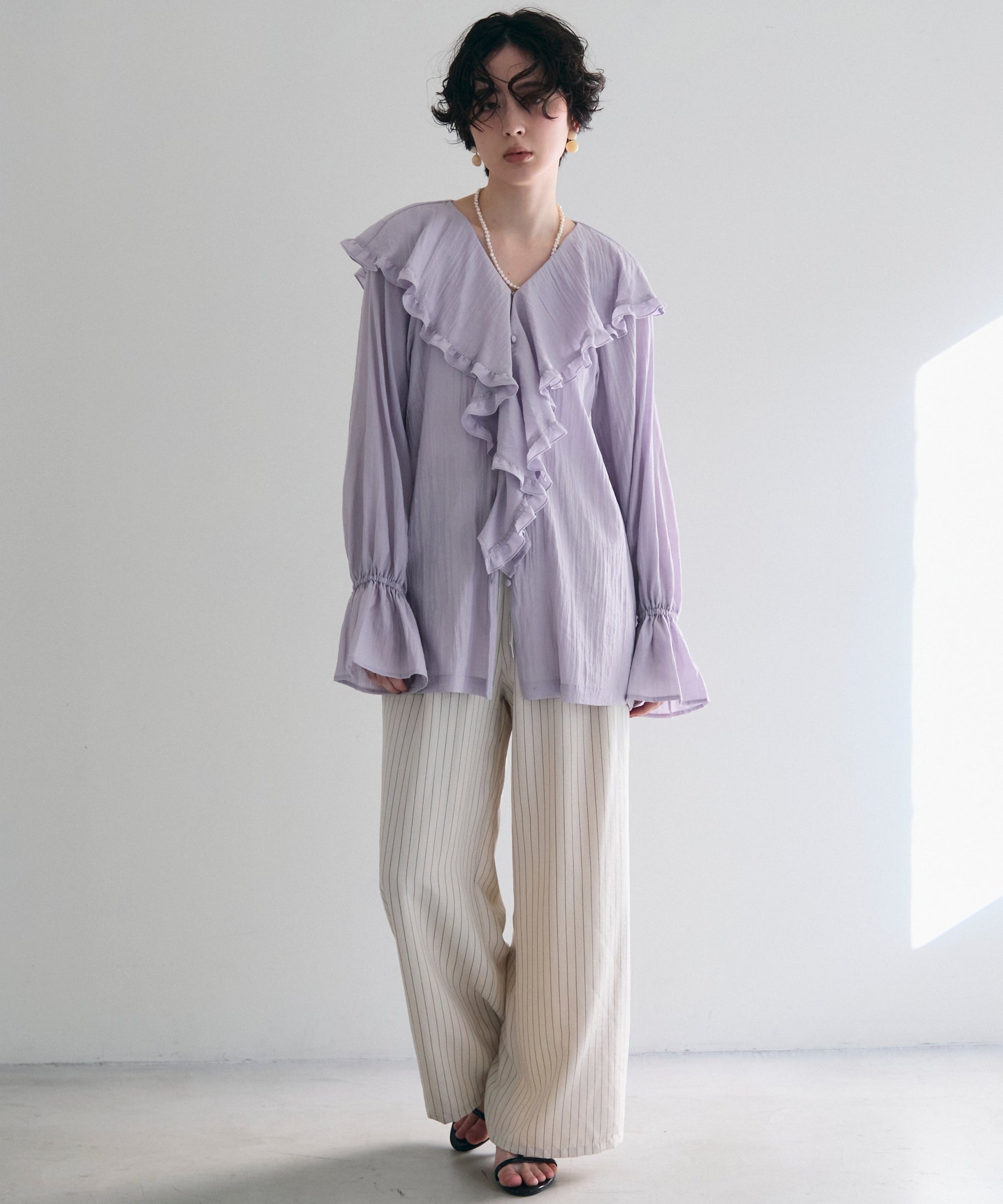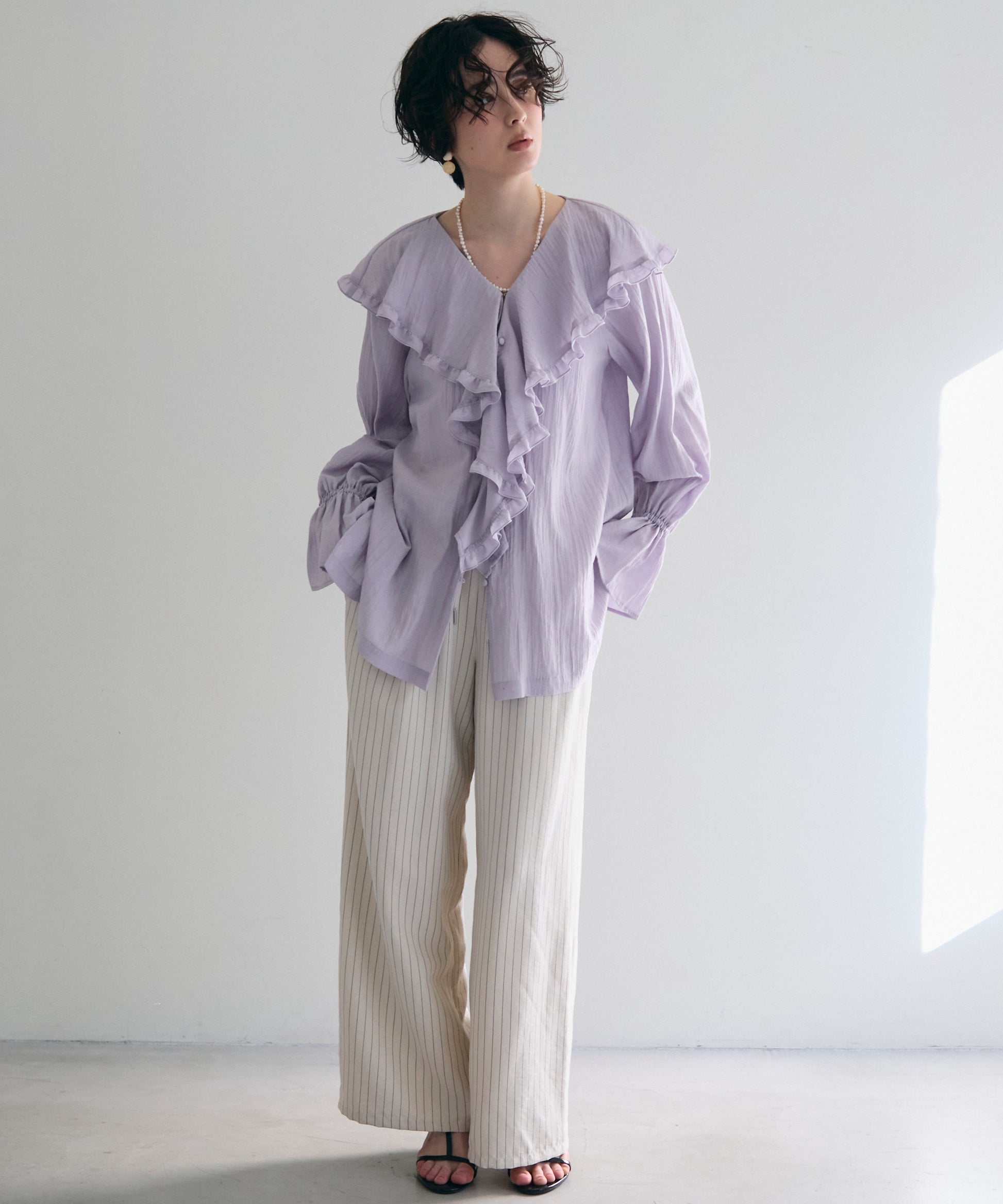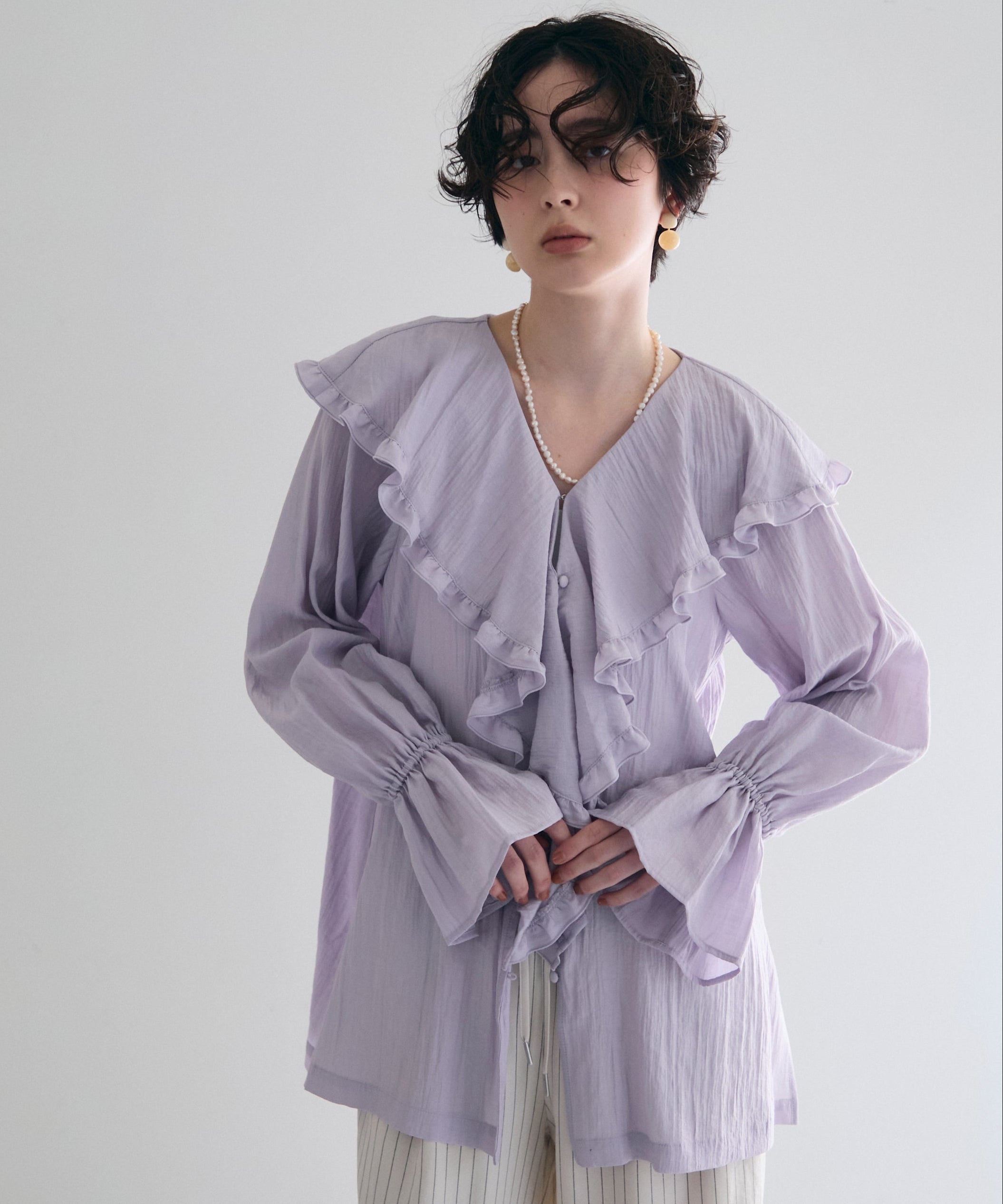 華やかなラッフルデザインが目を惹くフリルブラウス。