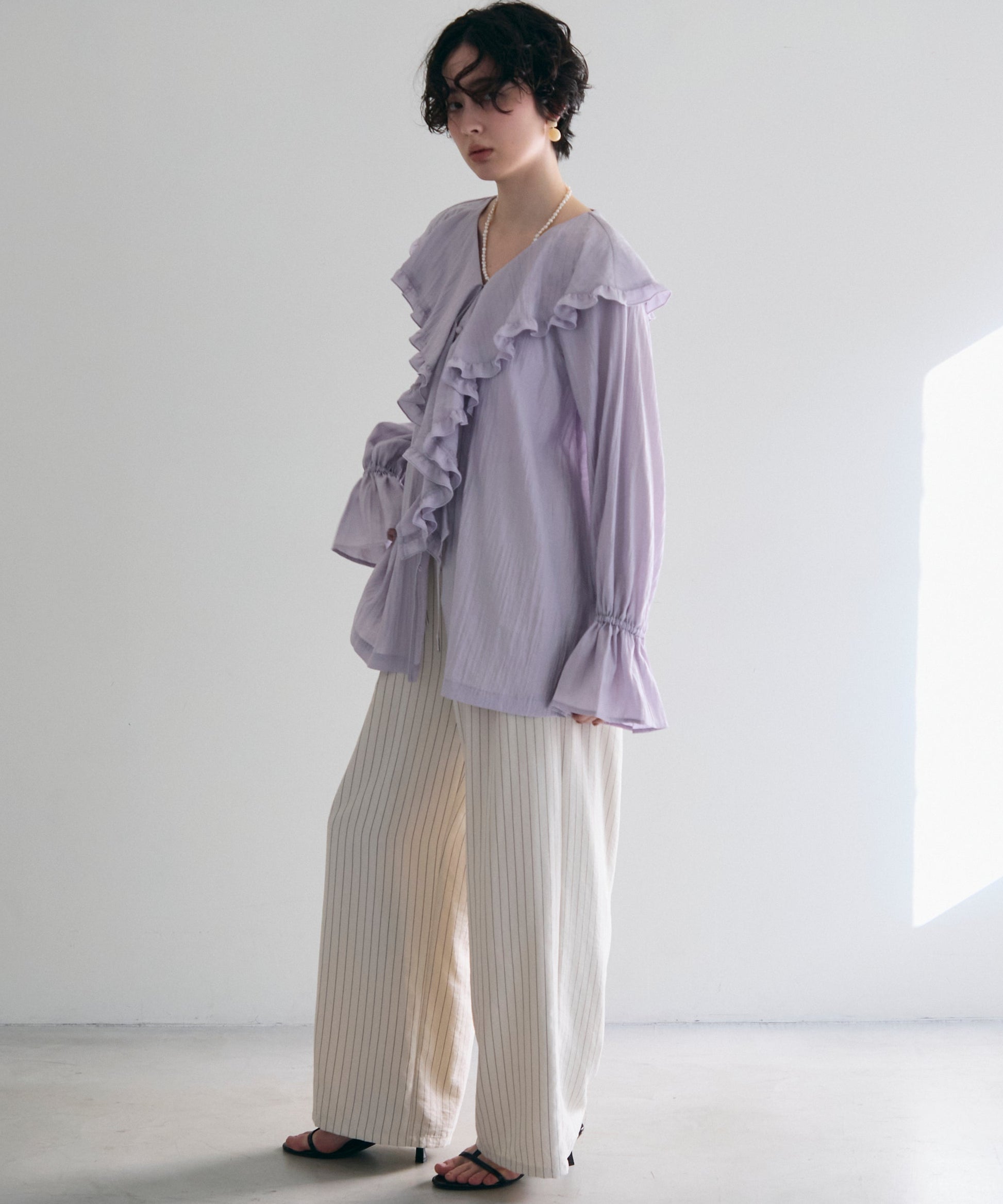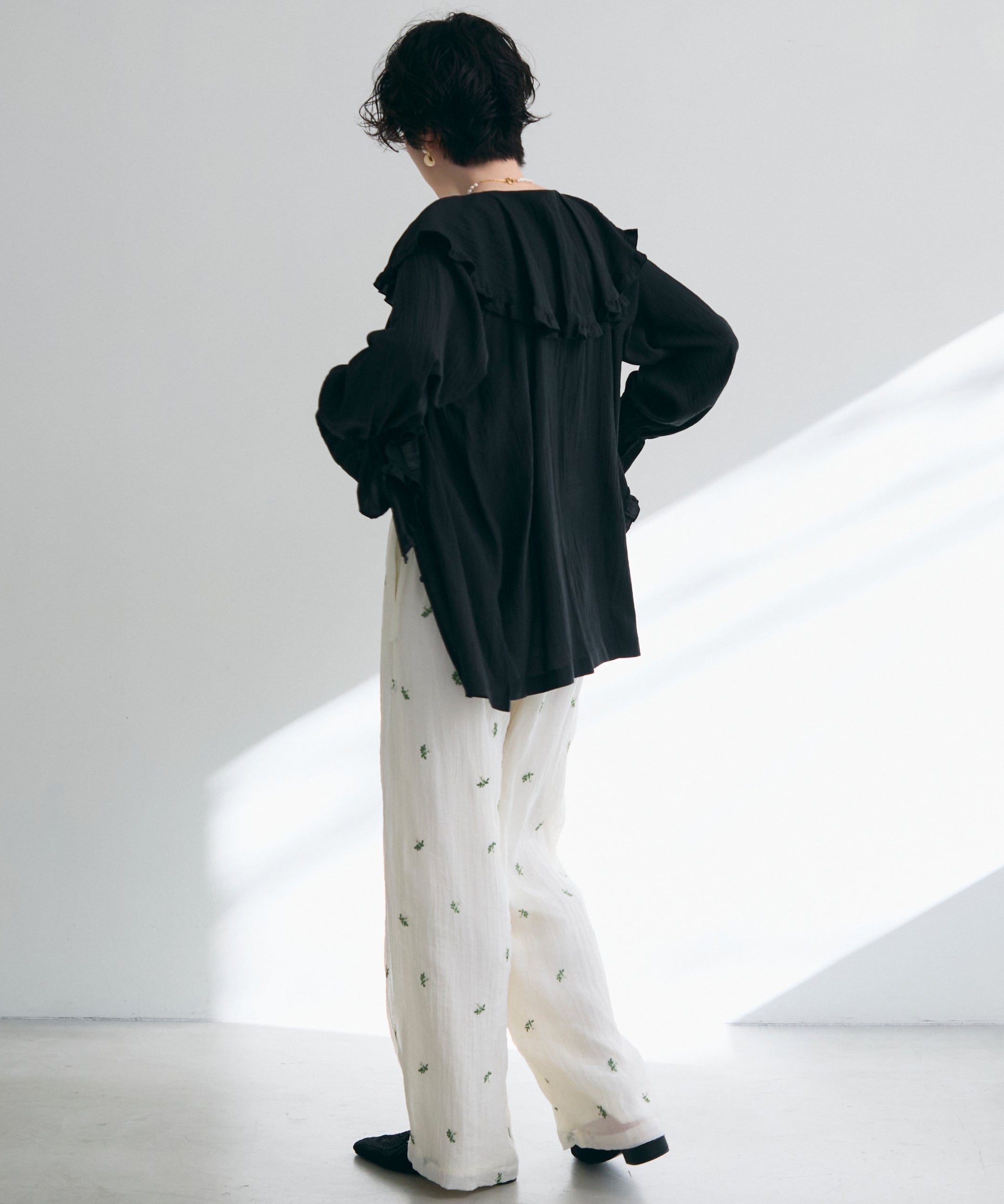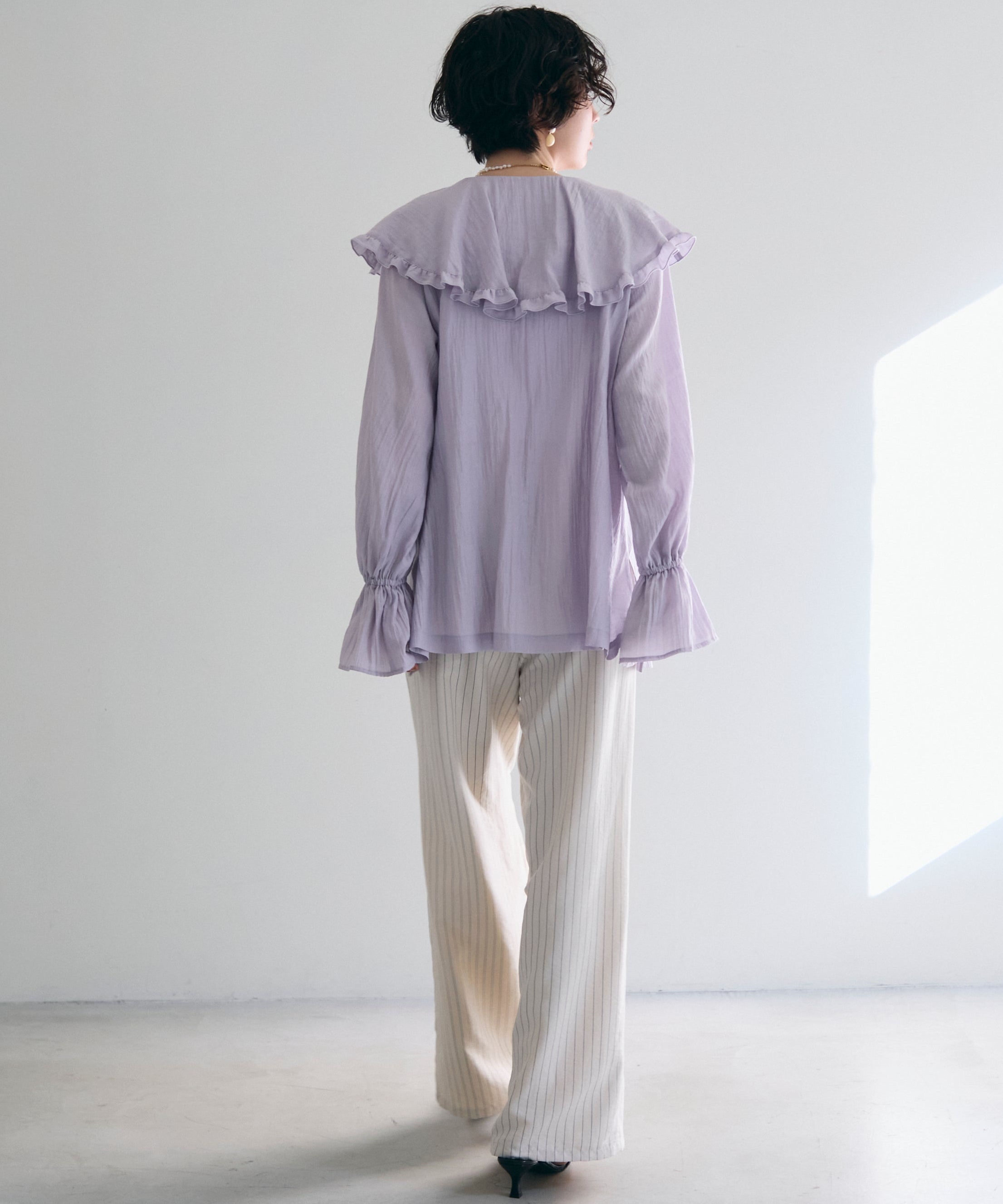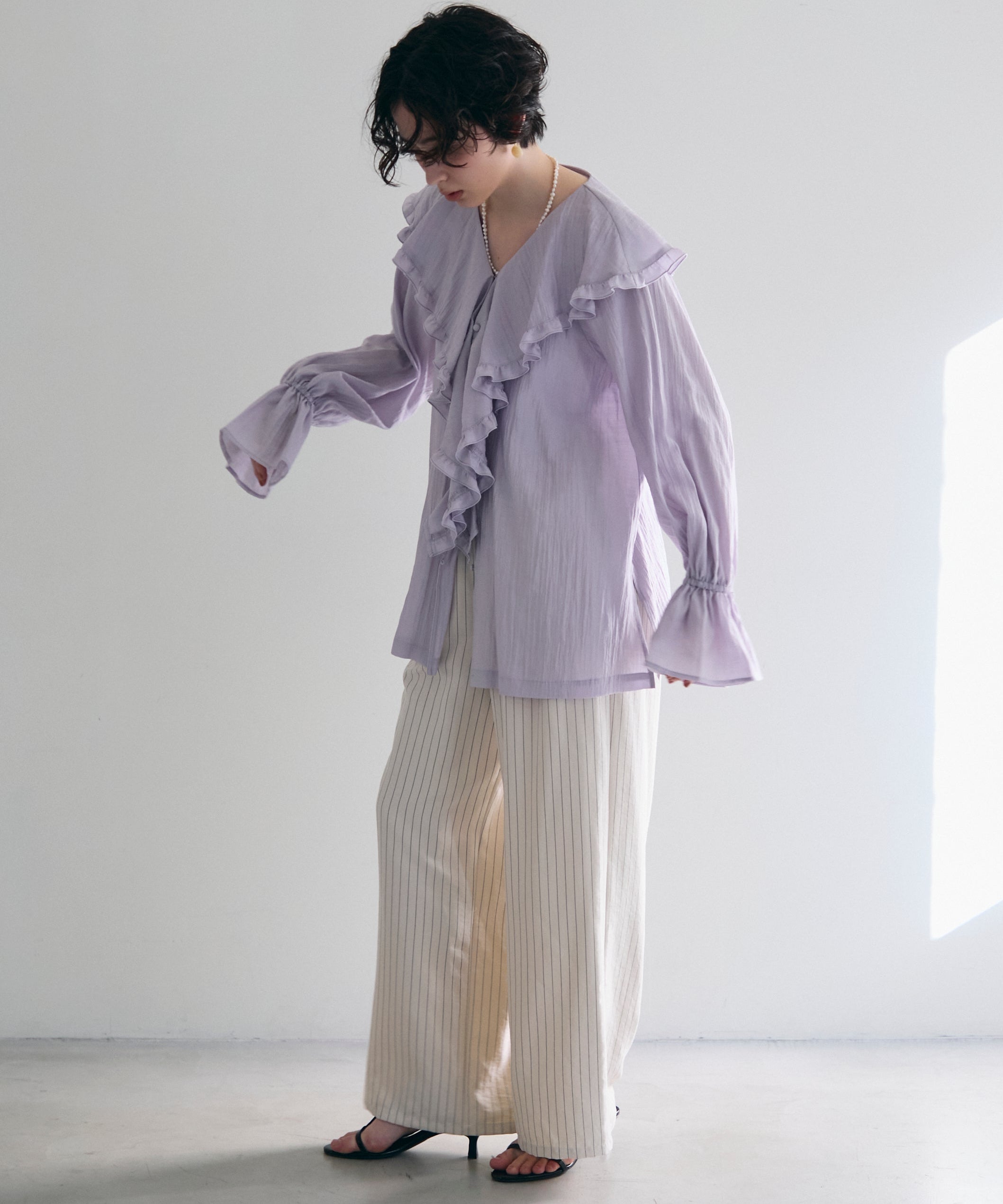 華やかなラッフルデザインが目を惹くフリルブラウス。