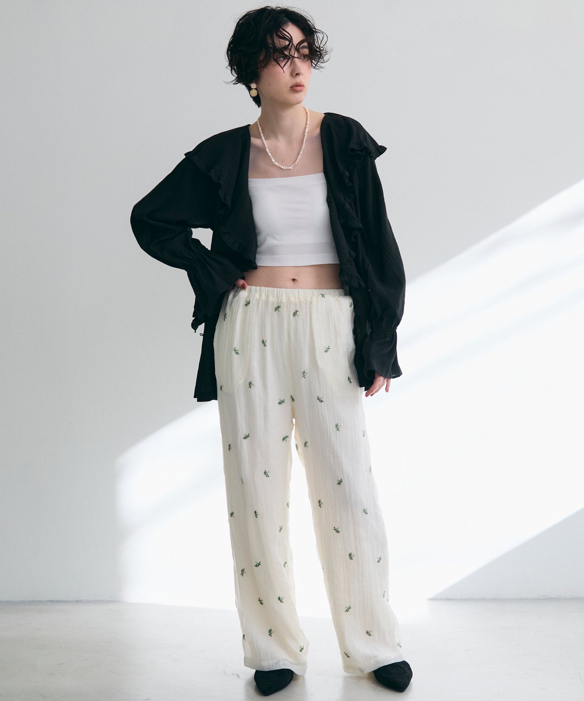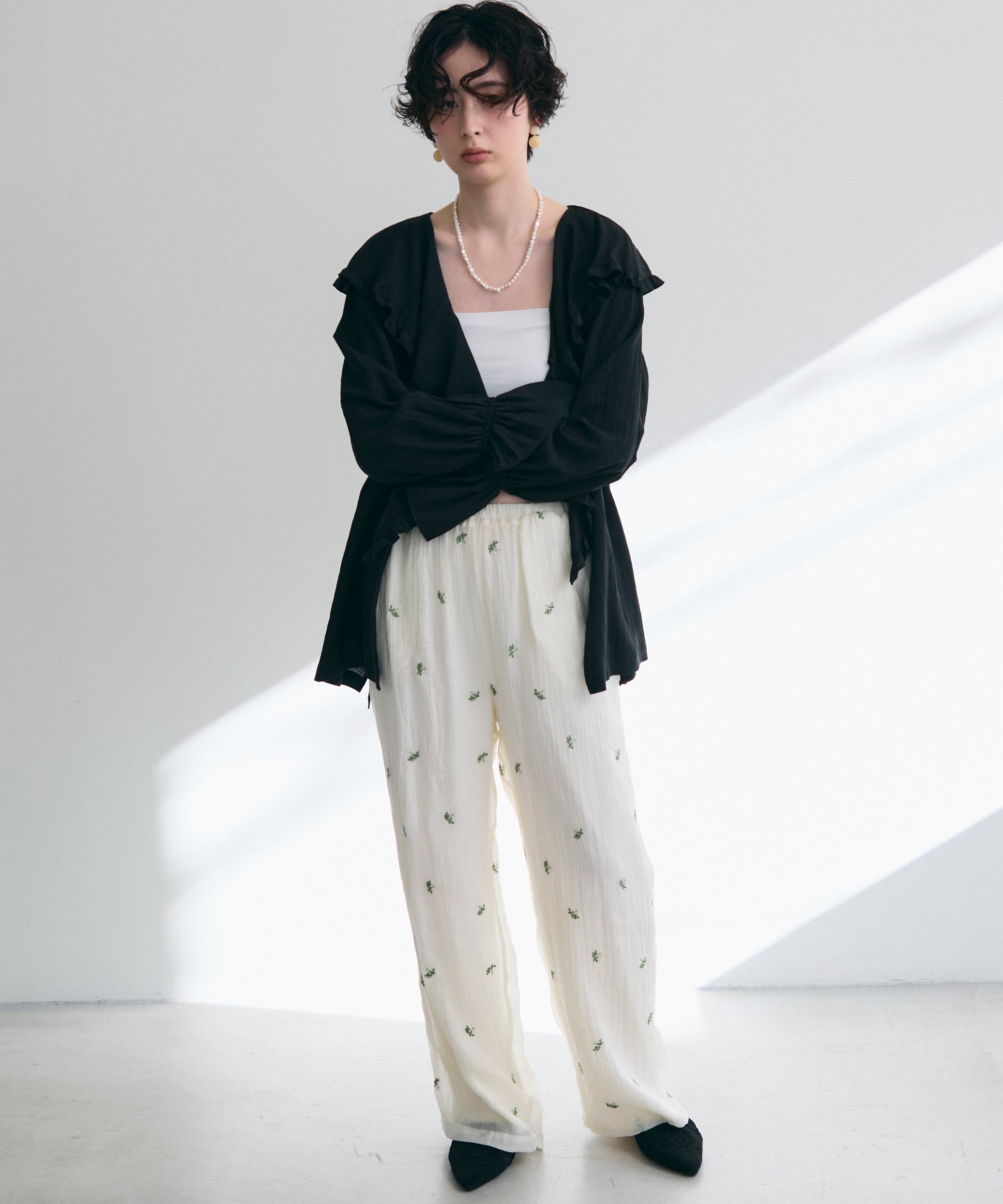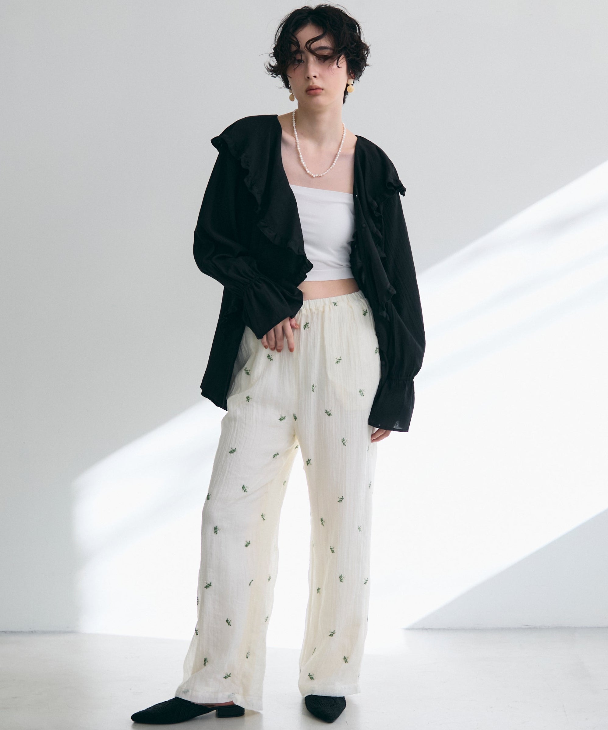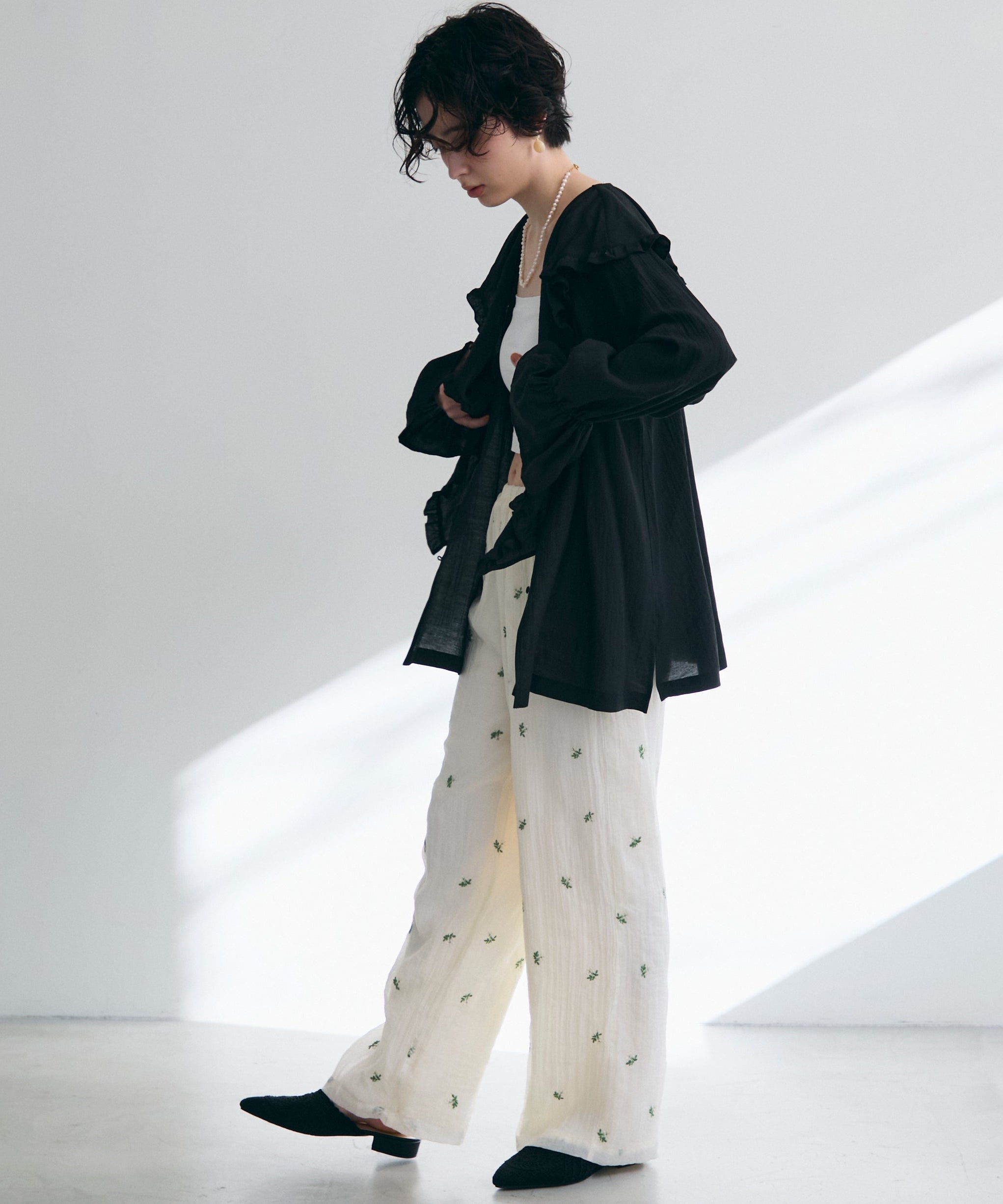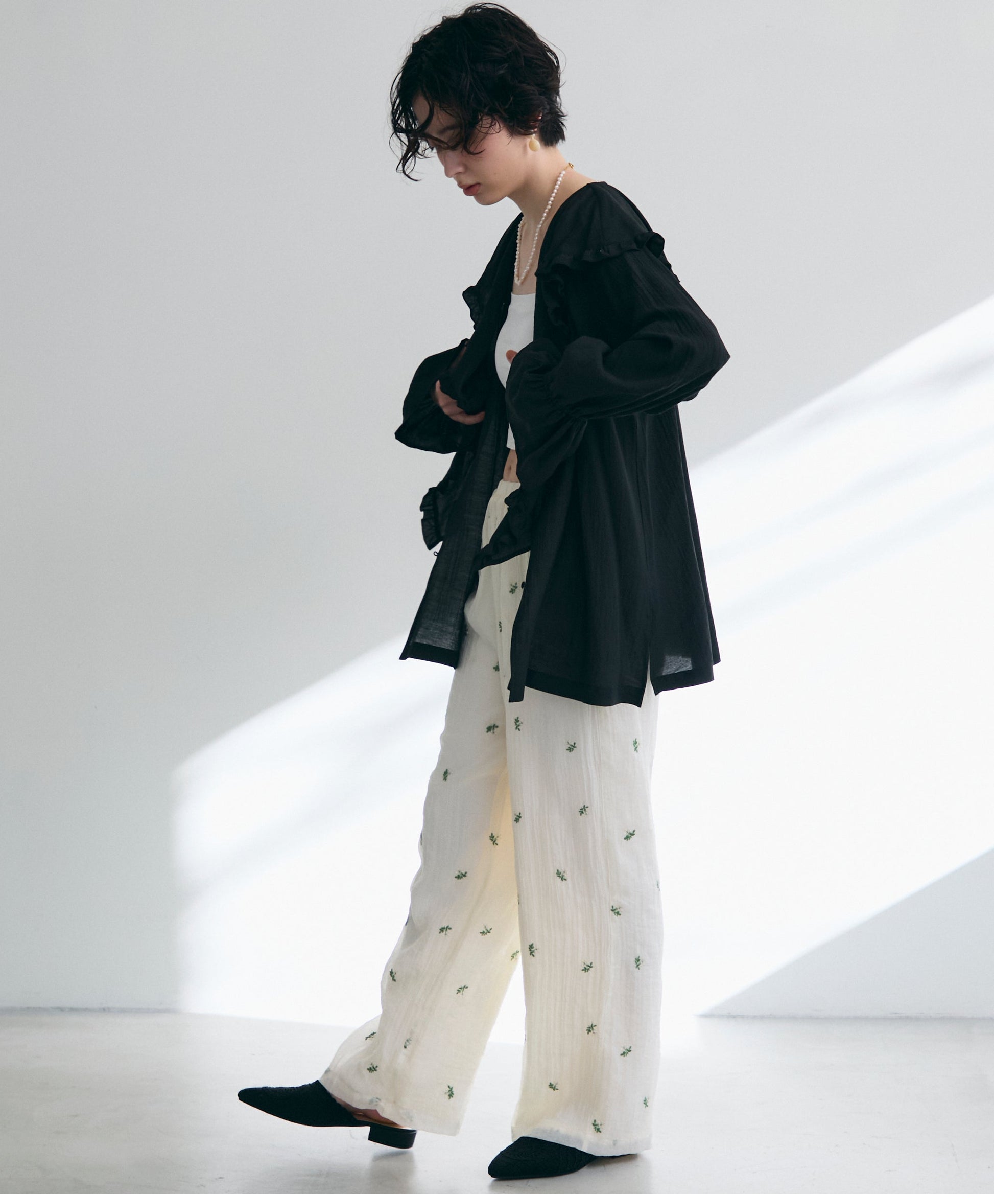 華やかなラッフルデザインが目を惹くフリルブラウス。