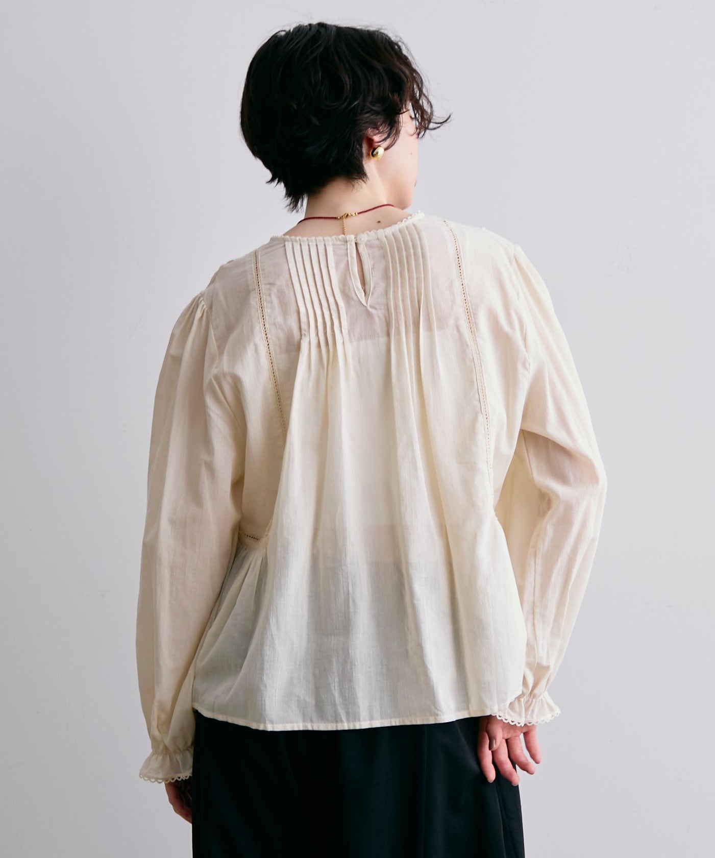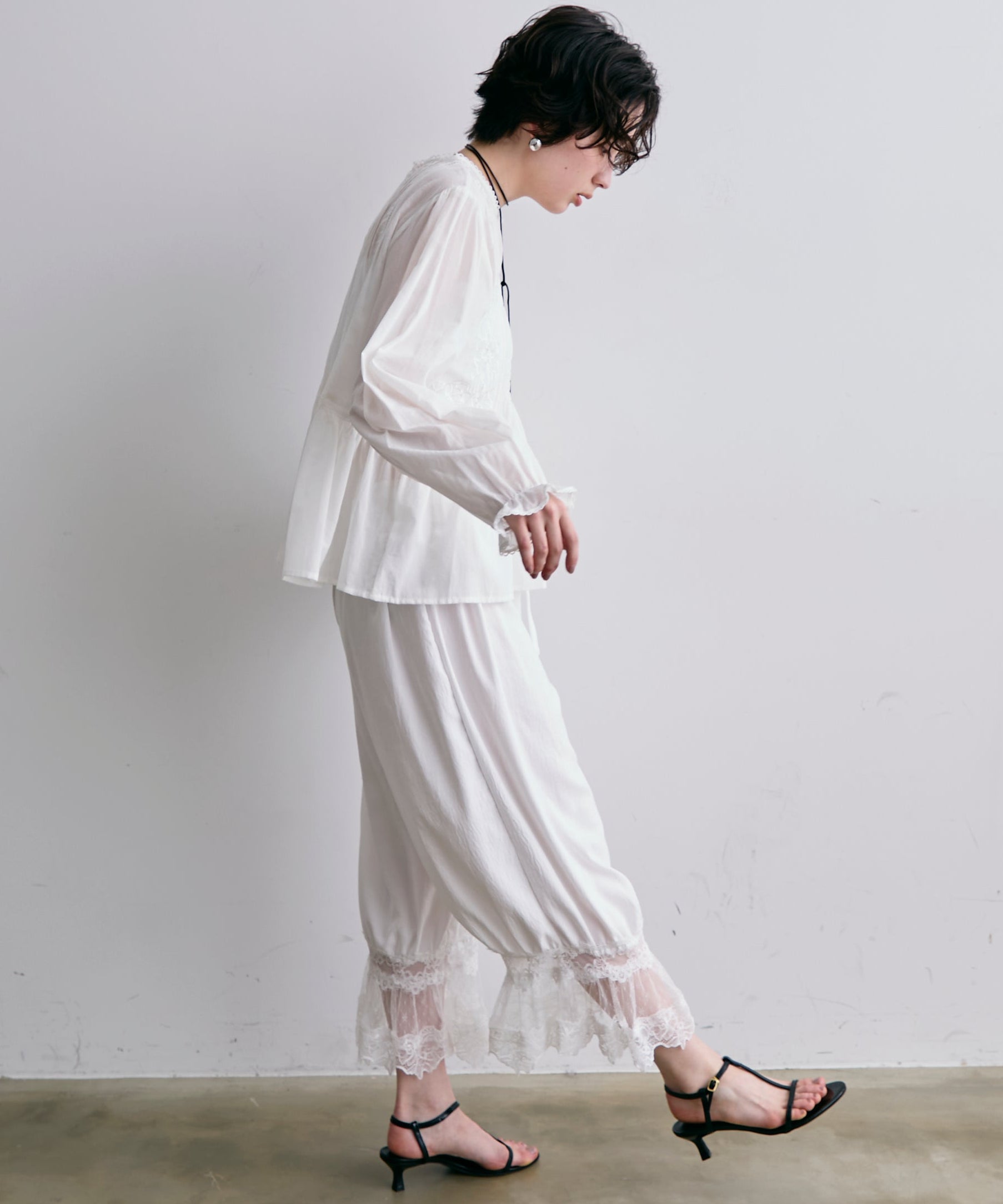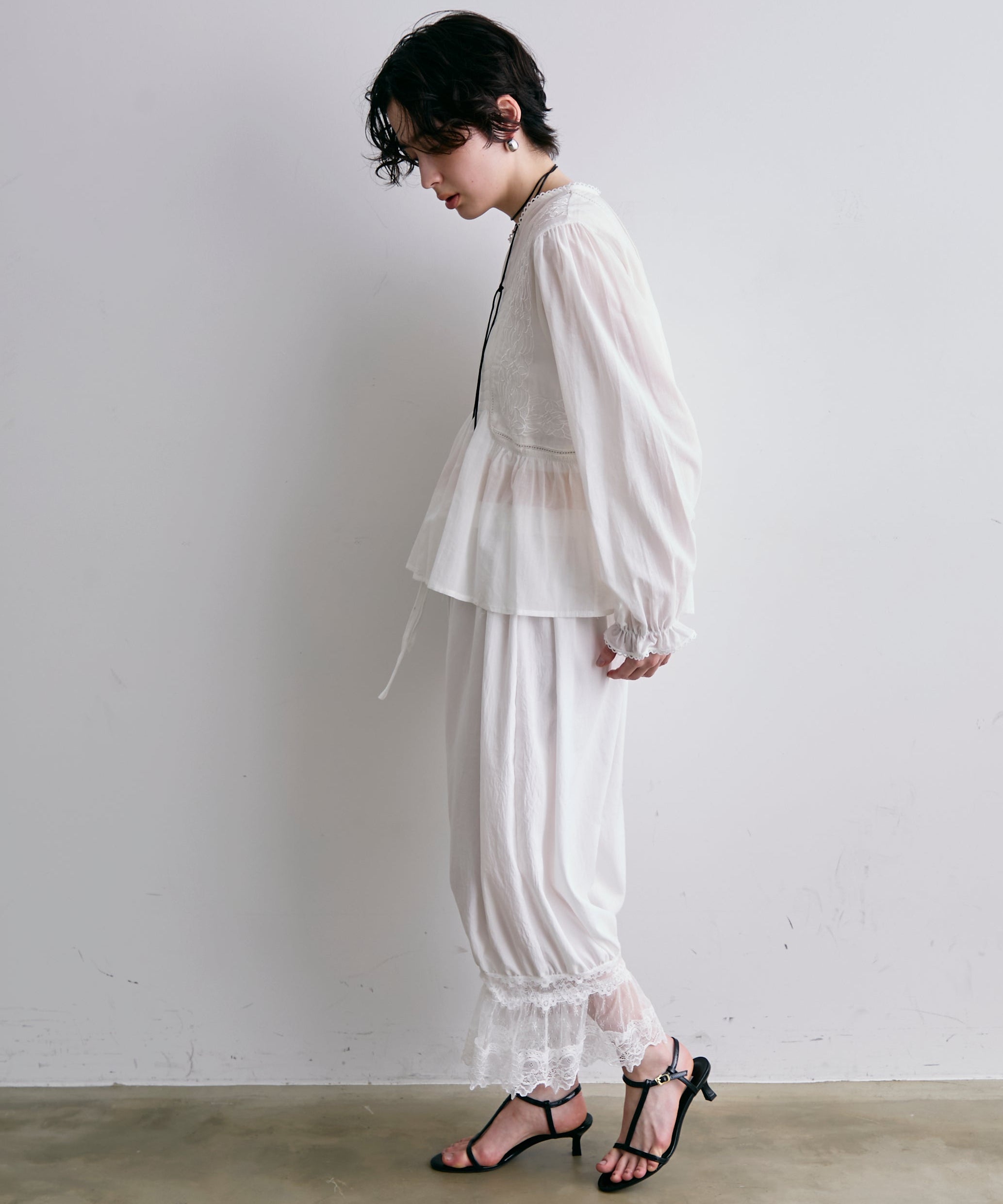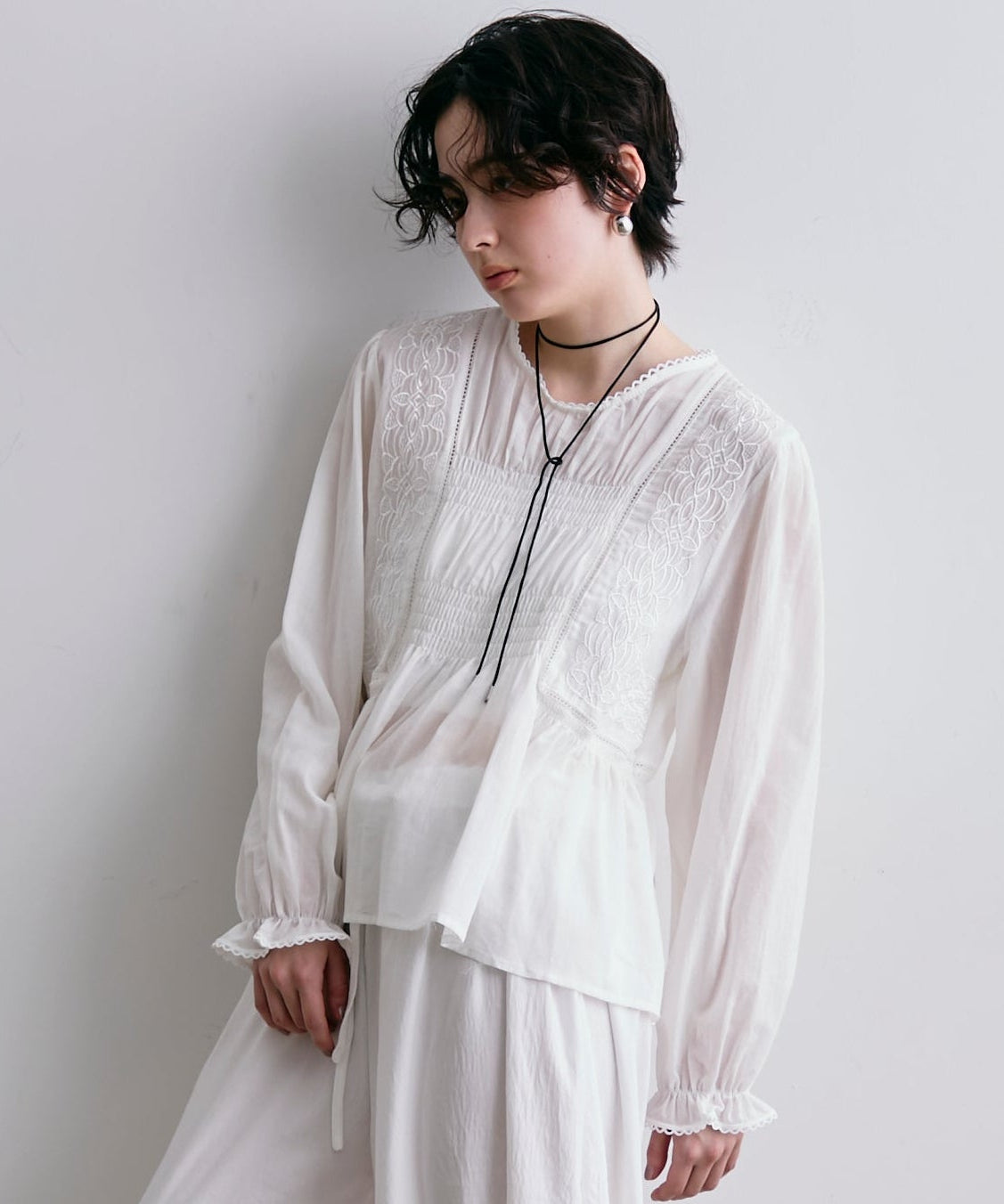 フォークロア調の刺繍が目を惹くペプラムブラウス。