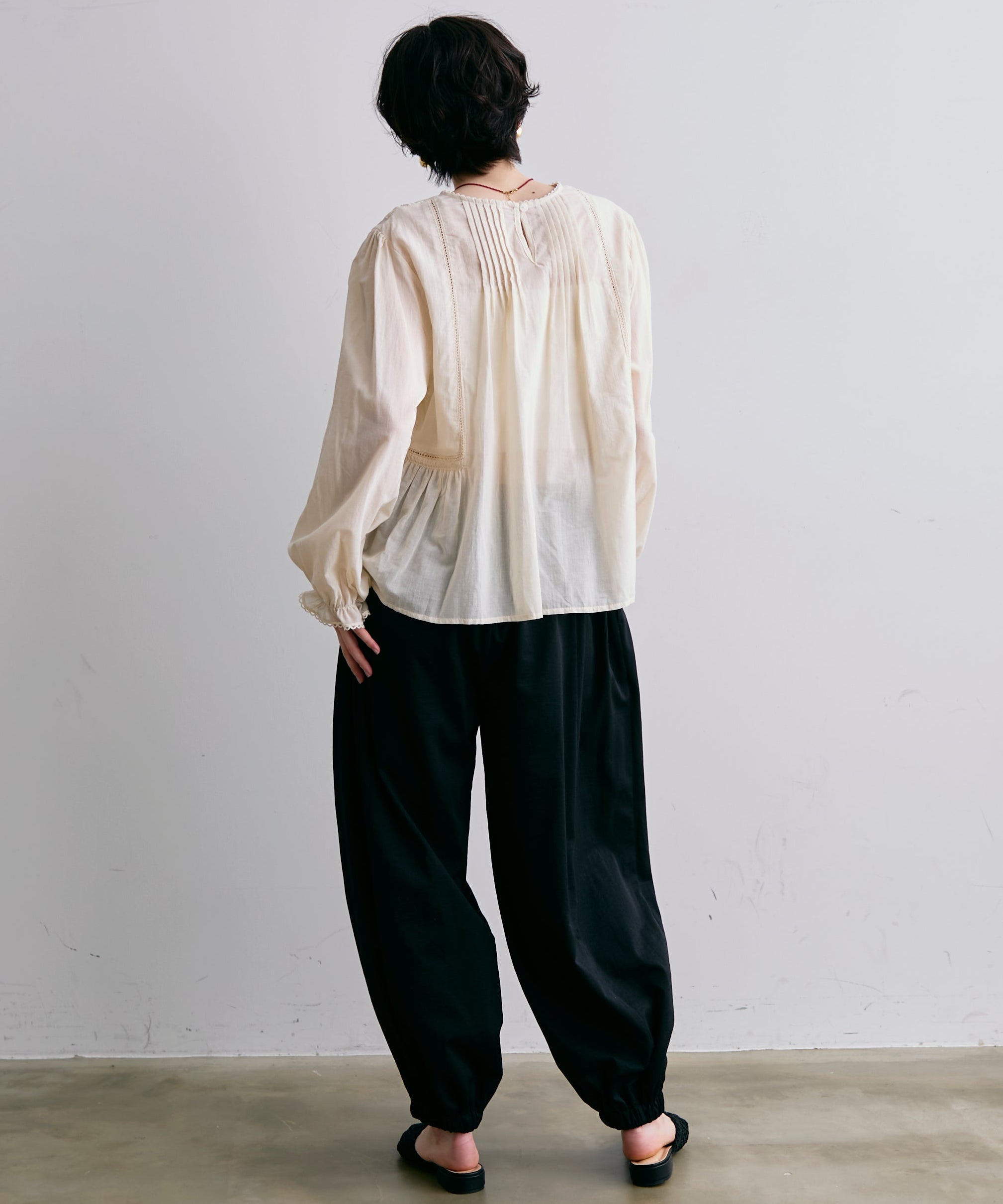 繊細なシャーリングがほどよいフィット感を生み、ウエストラインをすっきりと見せてくれます。
