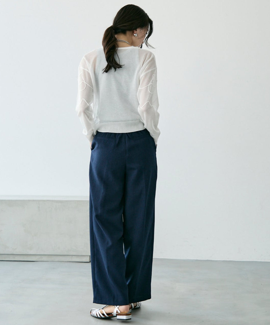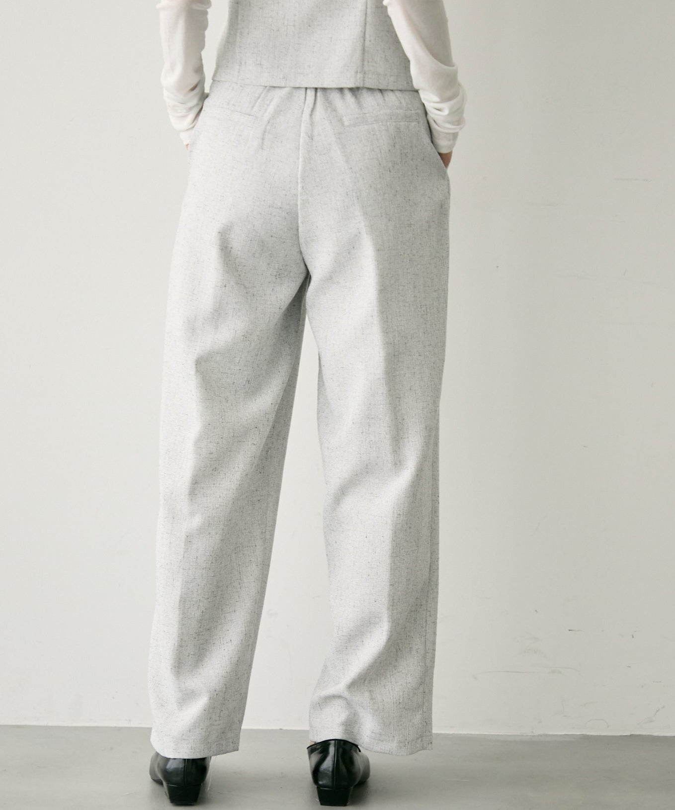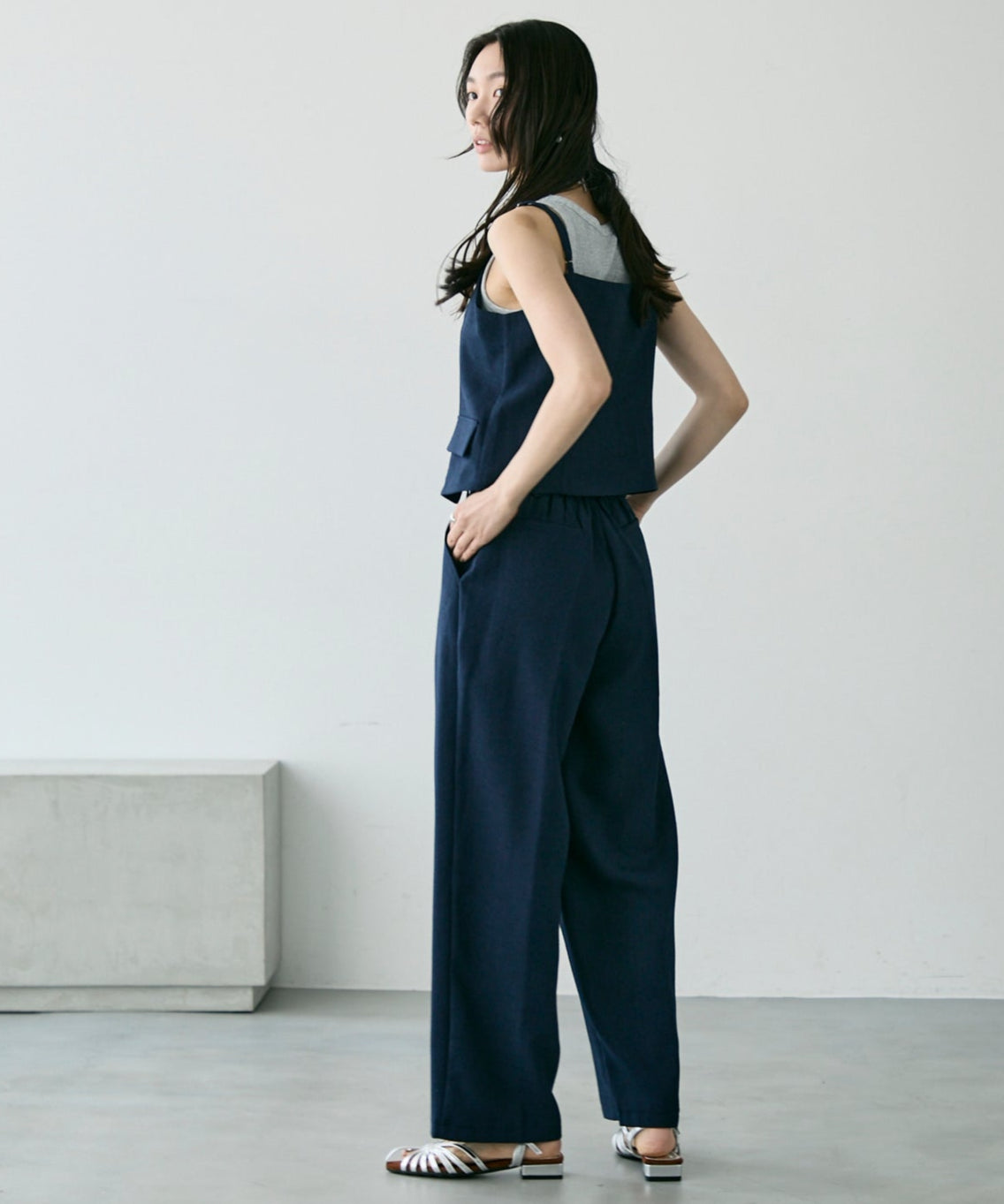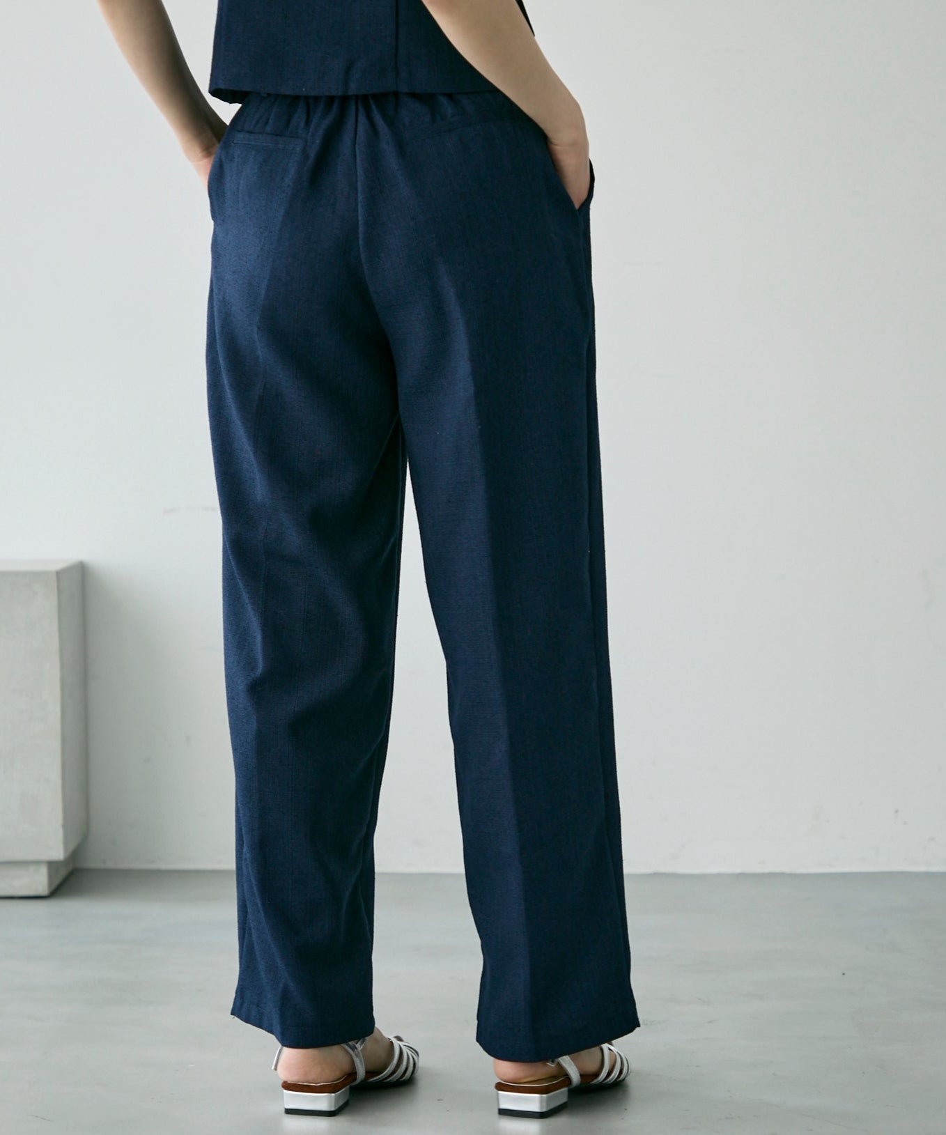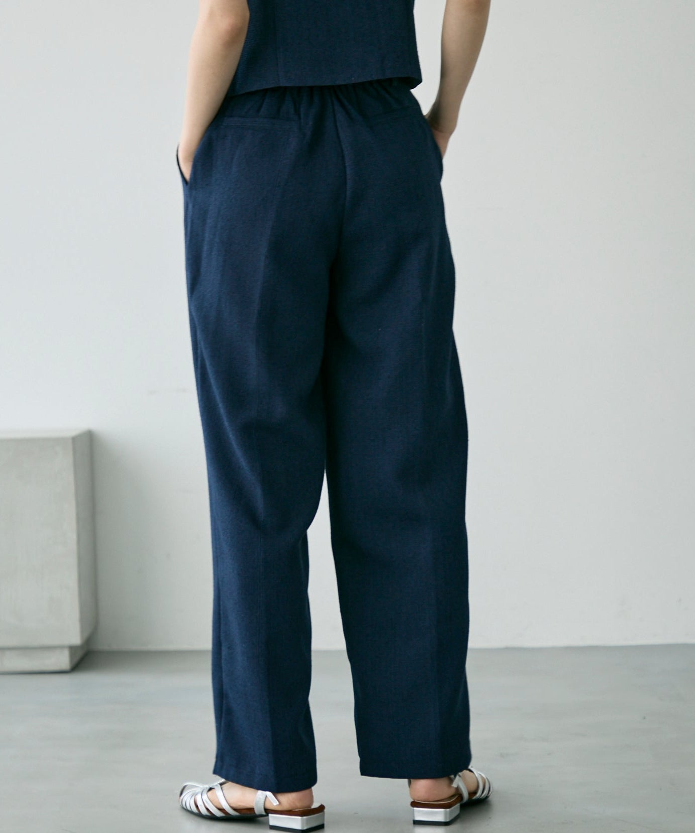 パンツのウエスト後ろ側にはゴムを寄せた仕様になっており、体型を選ばない楽な着用感です。