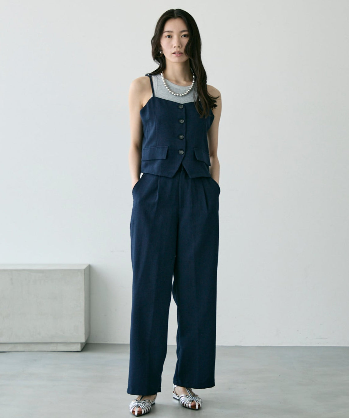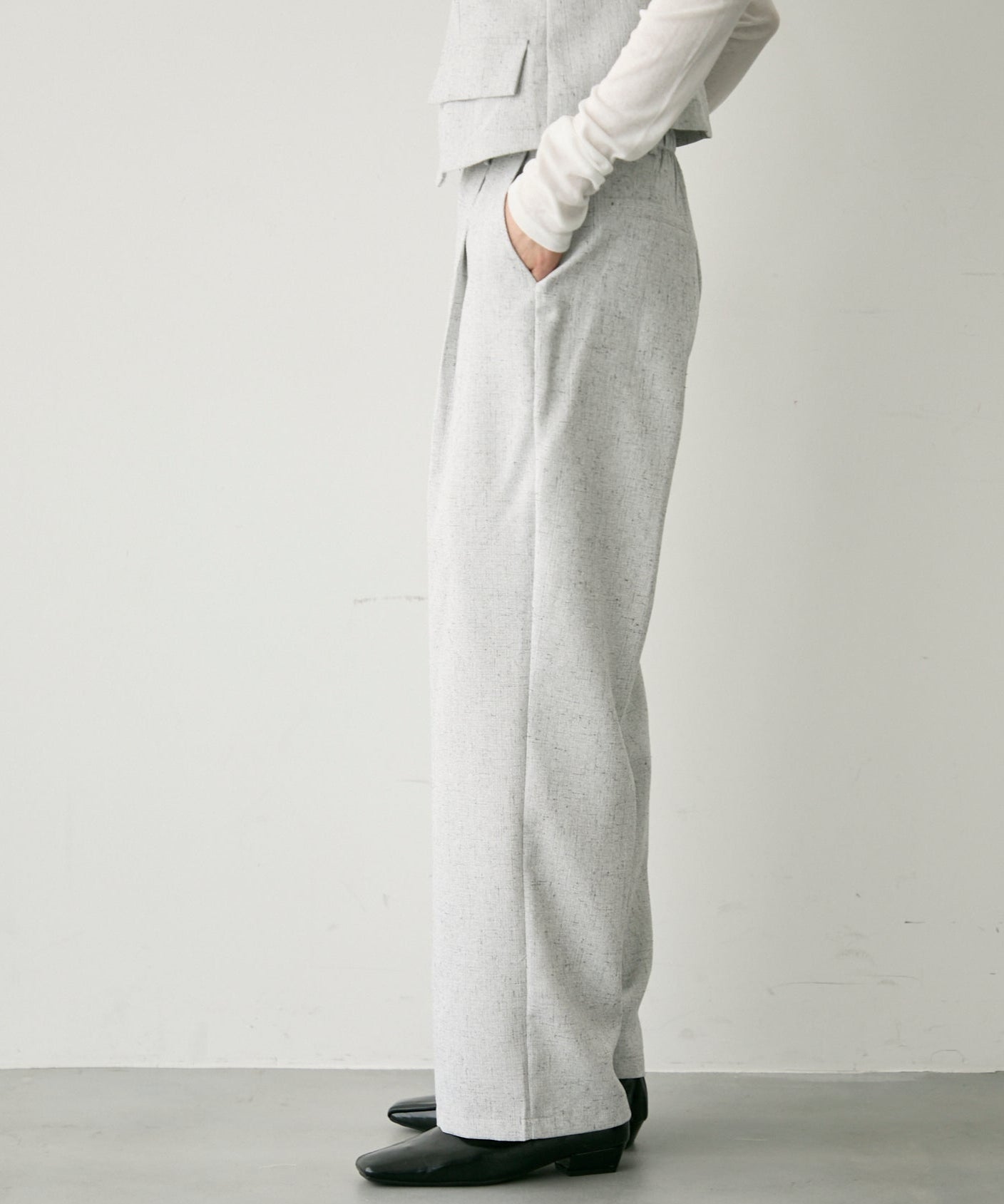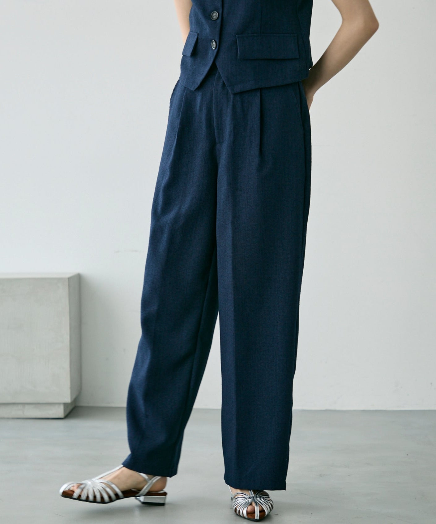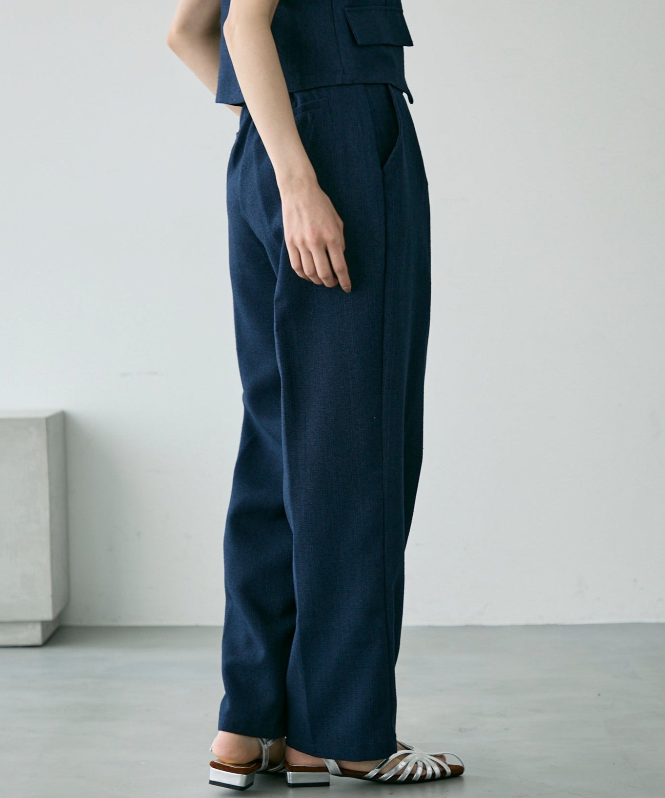 パンツのウエスト後ろ側にはゴムを寄せた仕様になっており、体型を選ばない楽な着用感です。
