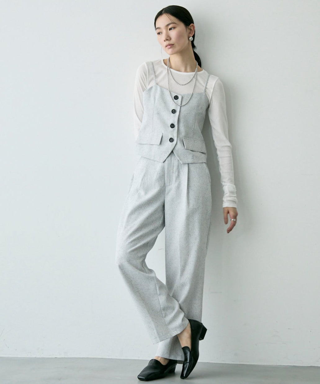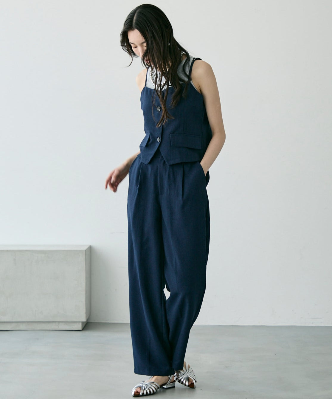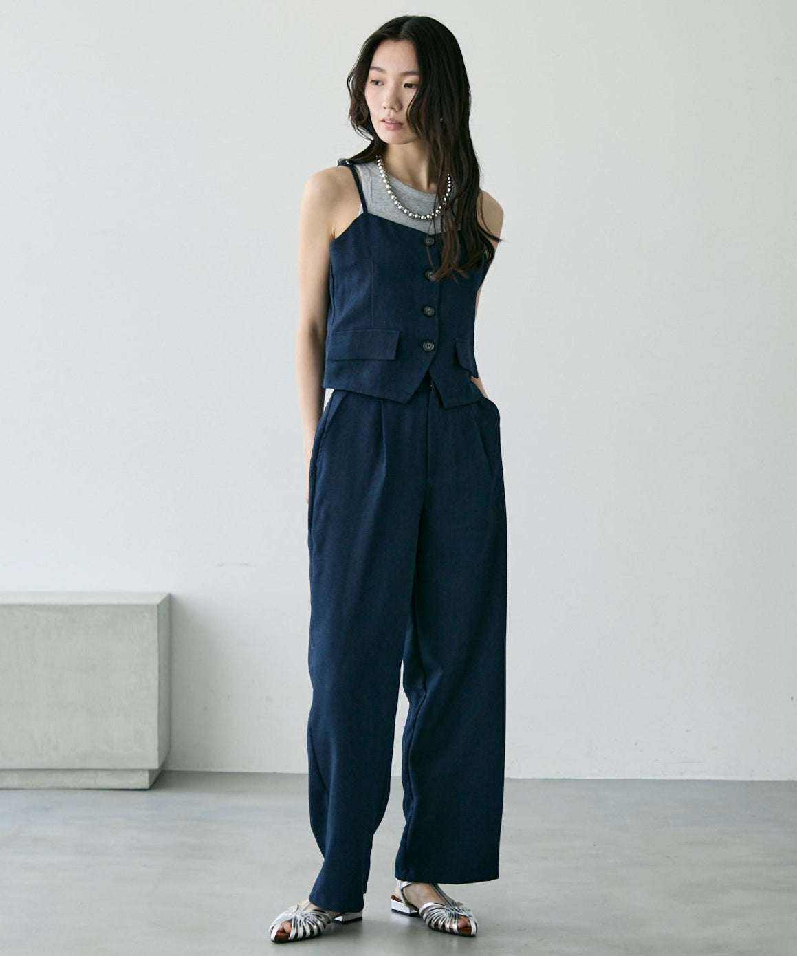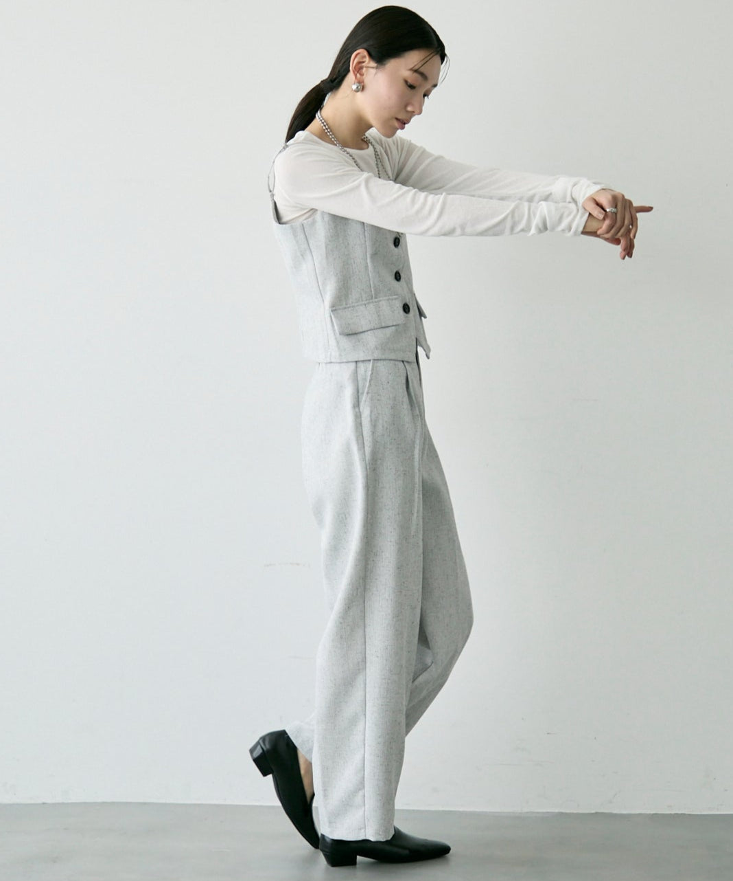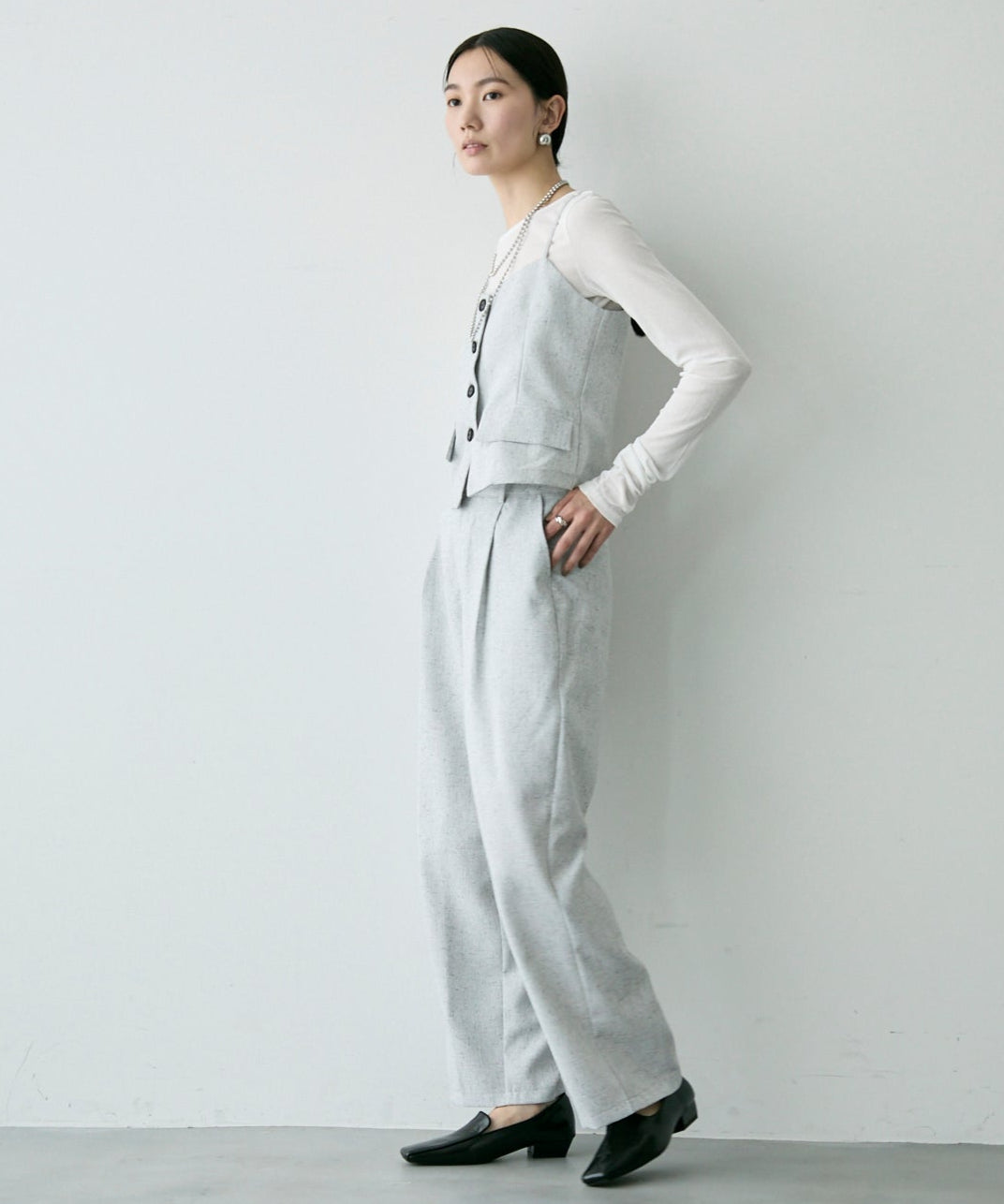 パンツのウエスト後ろ側にはゴムを寄せた仕様になっており、体型を選ばない楽な着用感です。