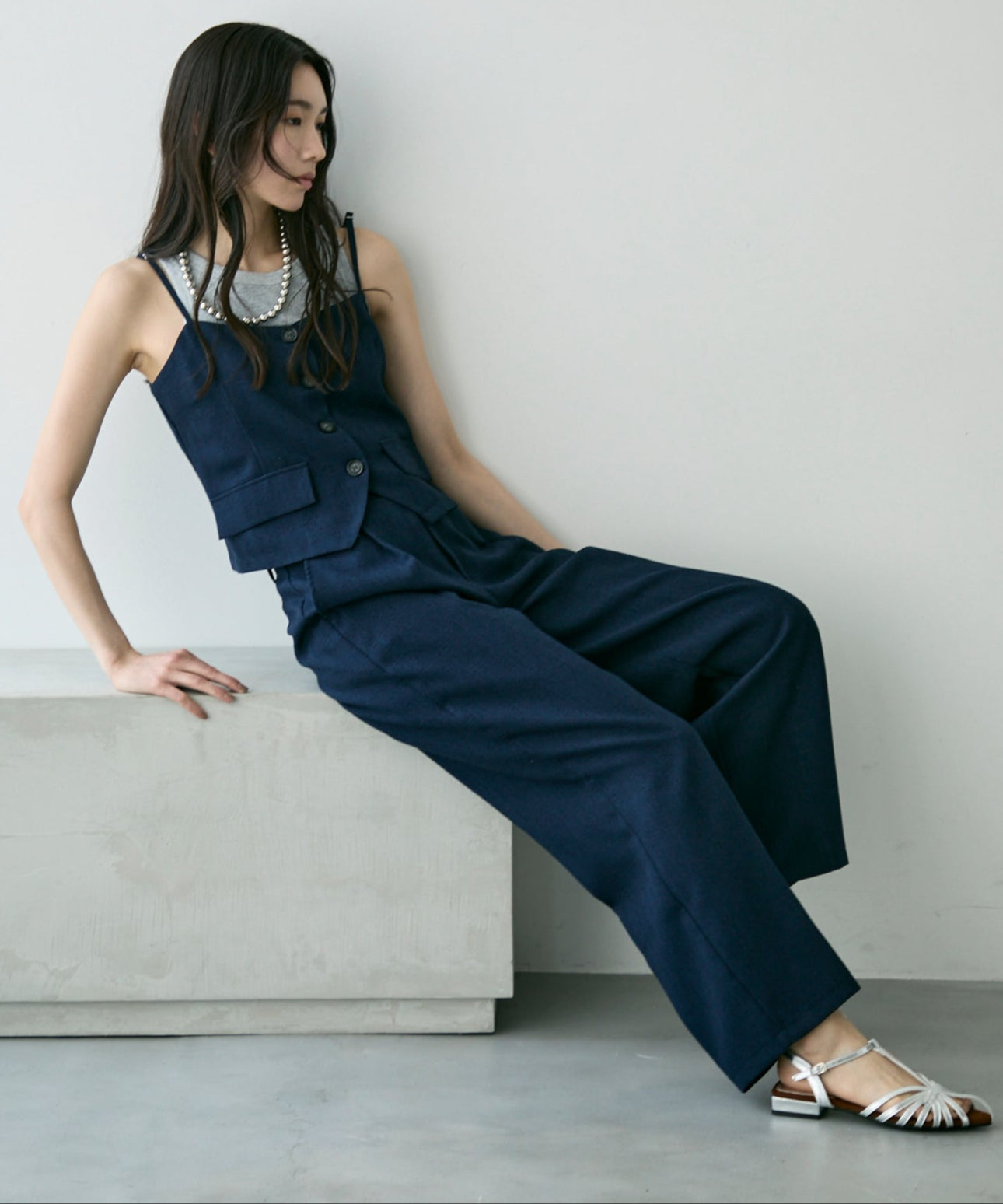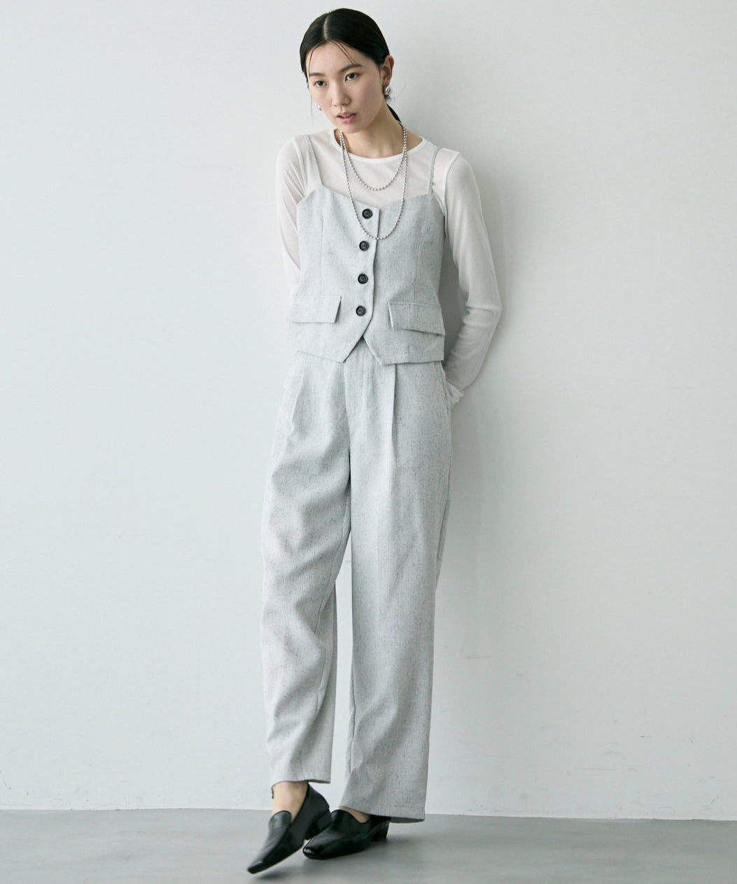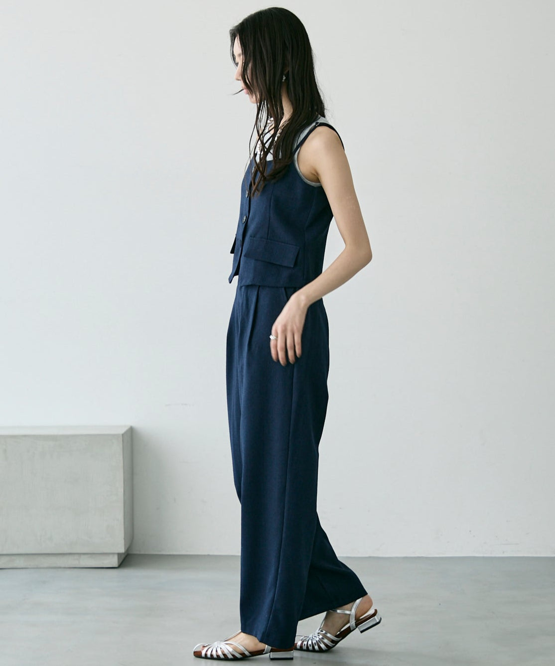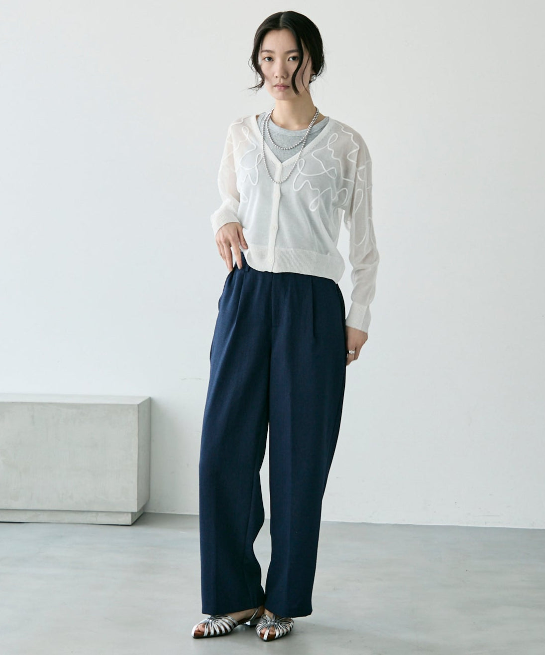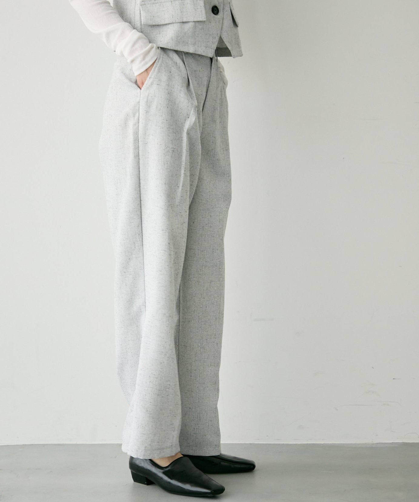 パンツのウエスト後ろ側にはゴムを寄せた仕様になっており、体型を選ばない楽な着用感です。