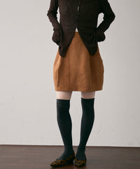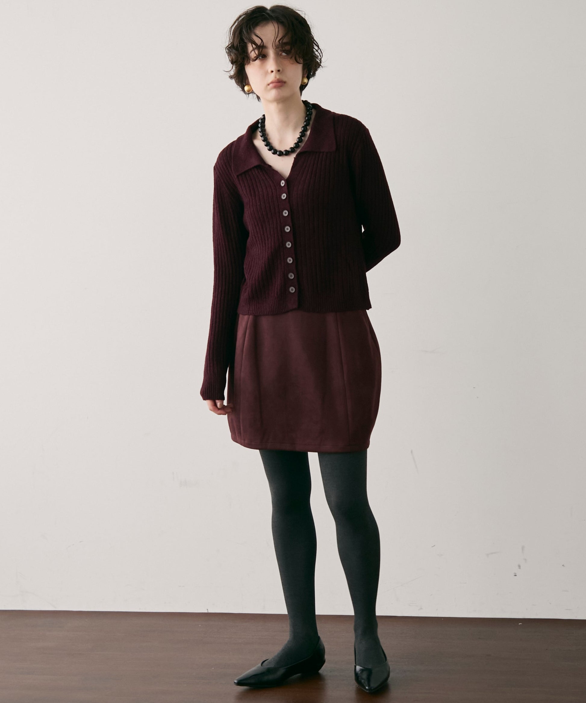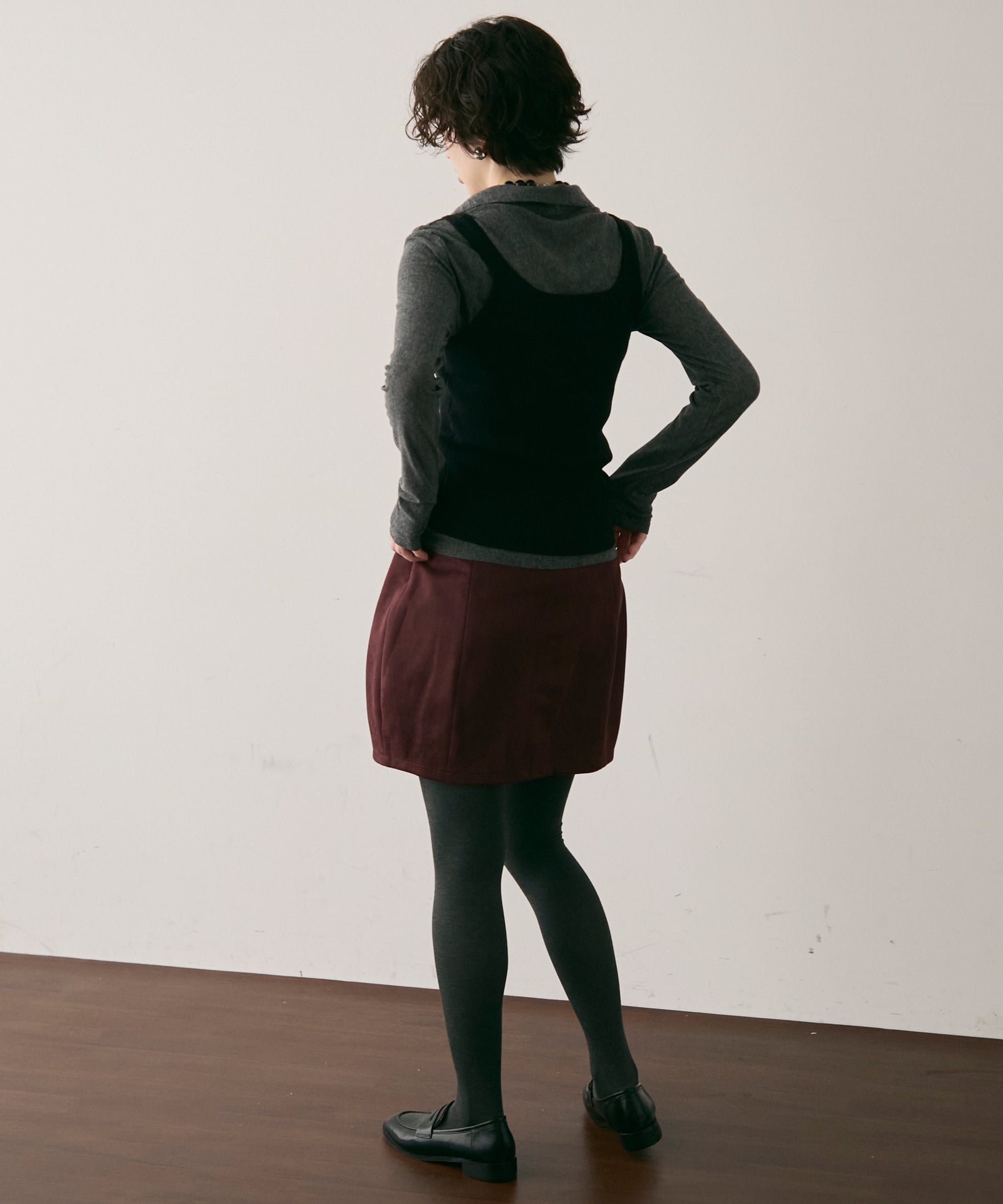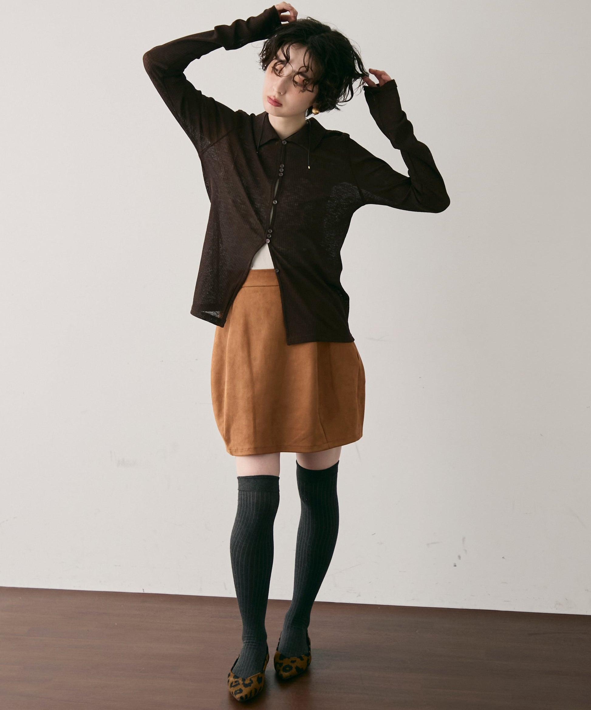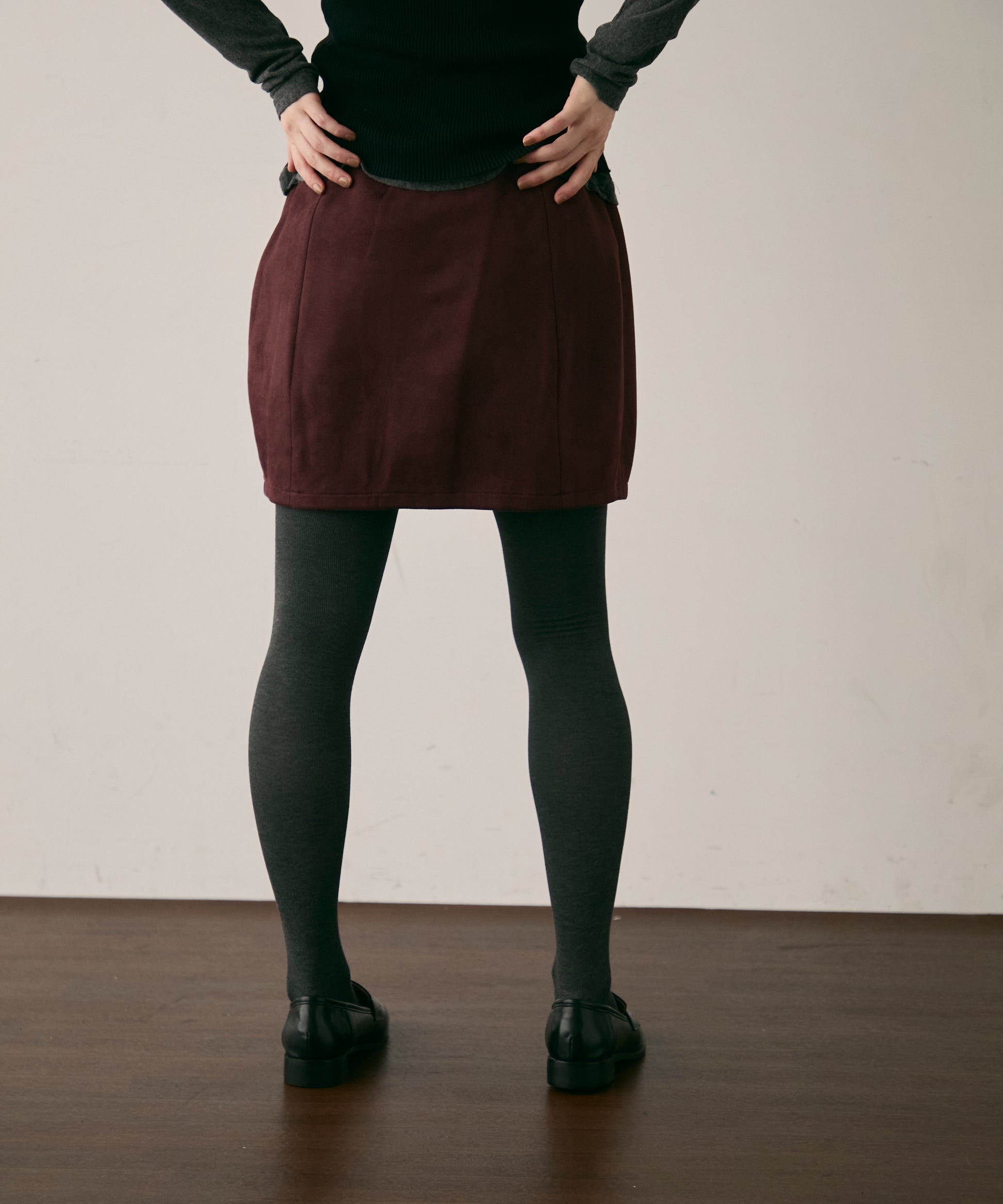 スエード調のしっとりとした風合いが魅力のコクーンスカート。程よいボリューム感が体型をさりげなくカバーしつつ、こなれ感のあるスタイリングを叶えます。ニットやスウェットとも好相性。