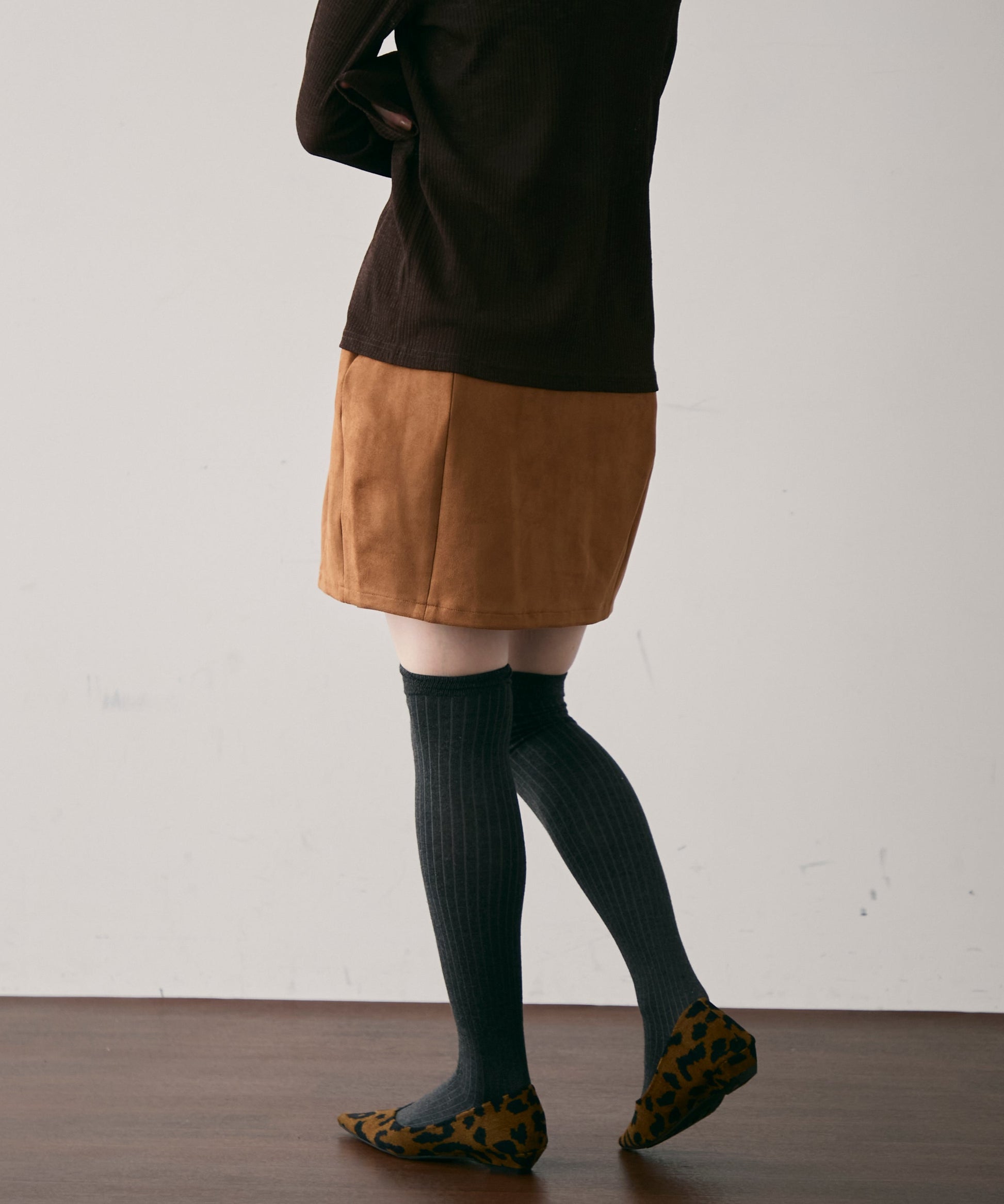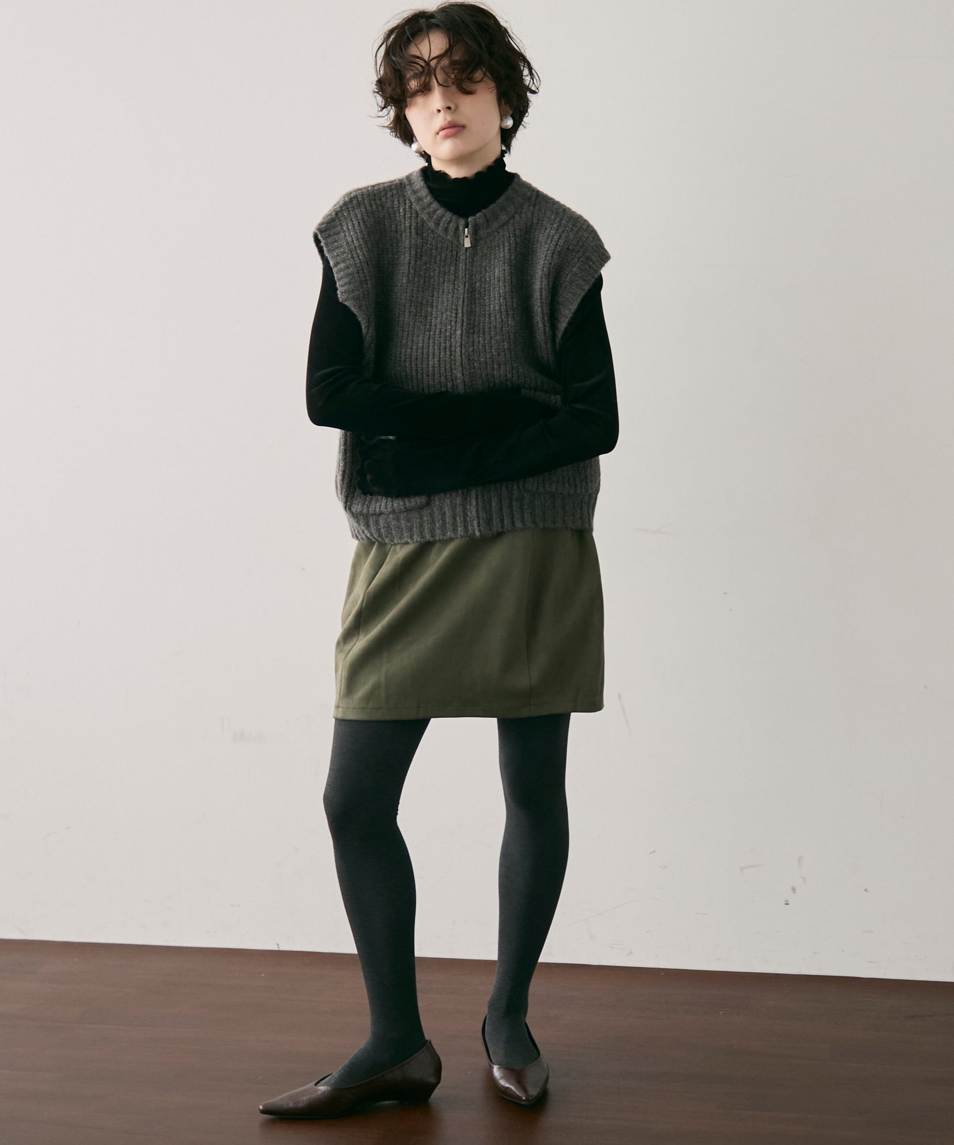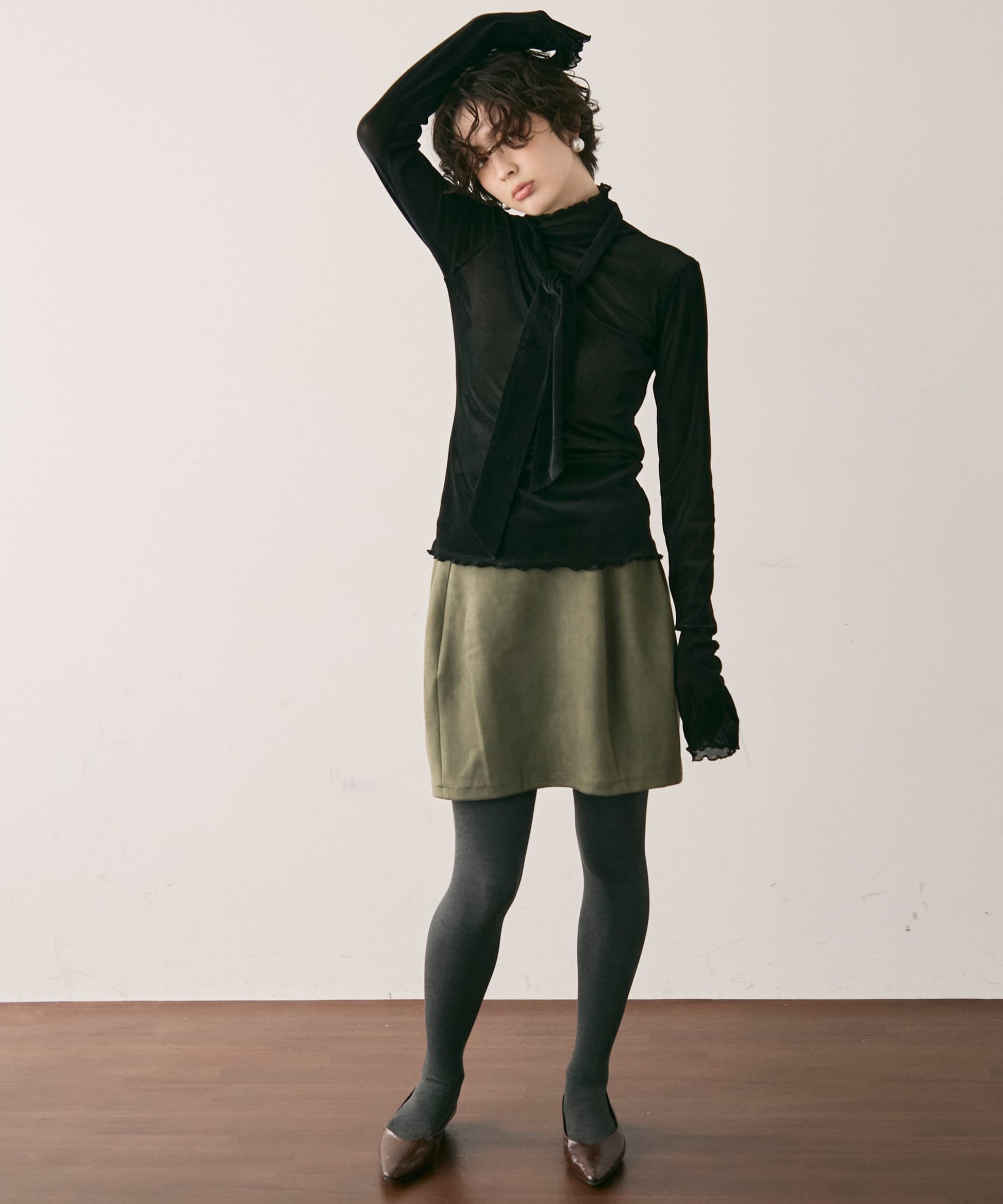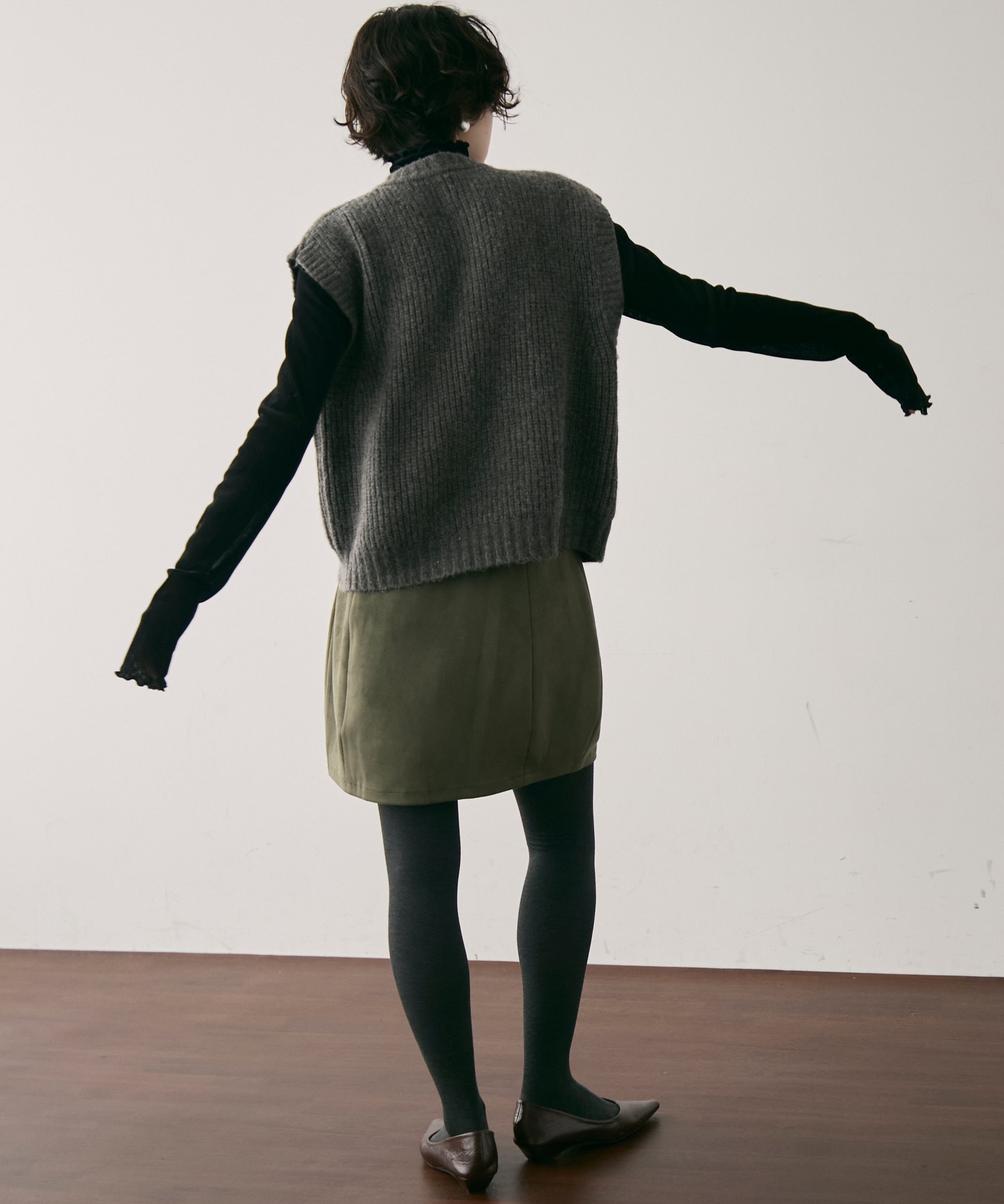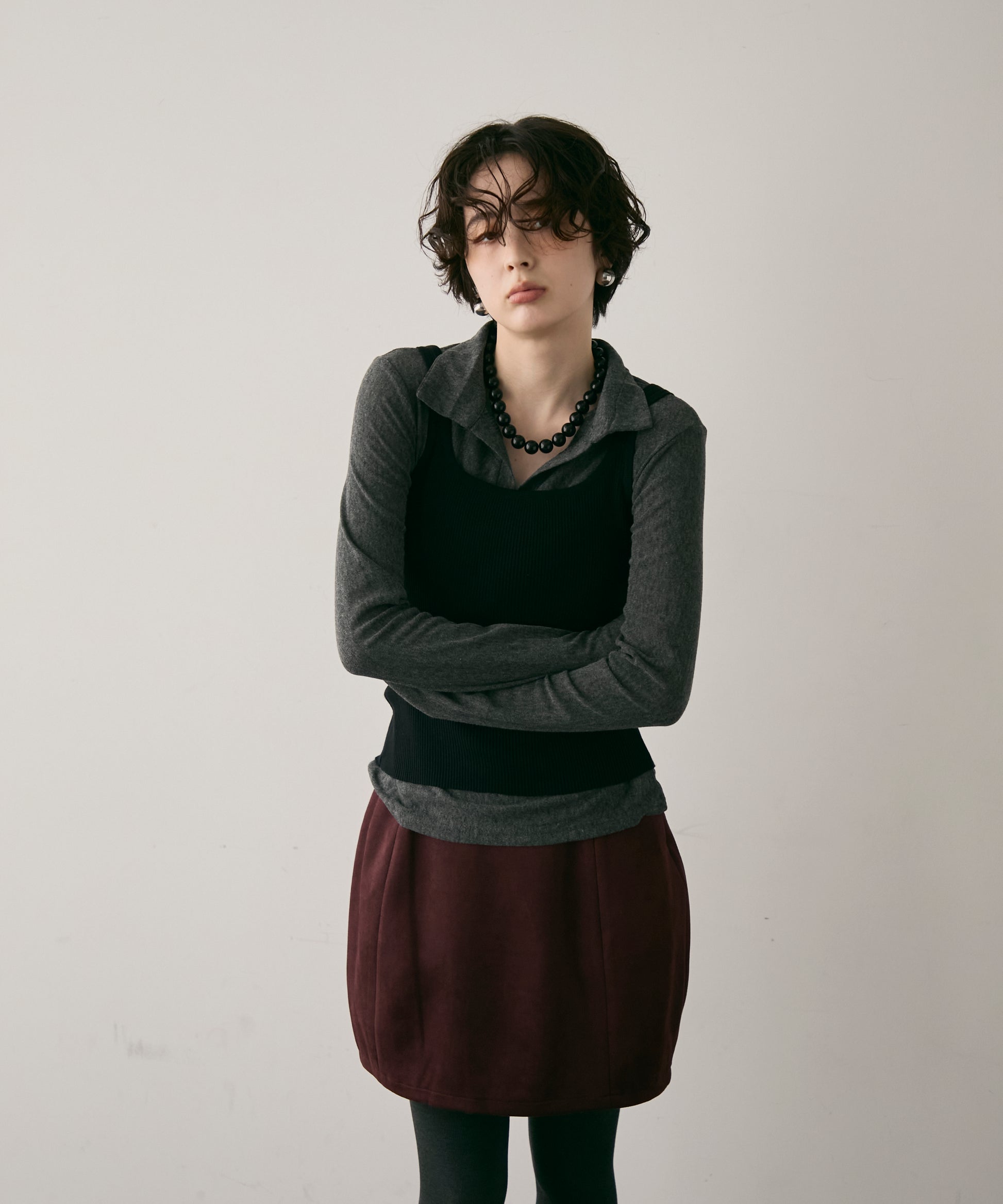 スエード調のしっとりとした風合いが魅力のコクーンスカート。程よいボリューム感が体型をさりげなくカバーしつつ、こなれ感のあるスタイリングを叶えます。ニットやスウェットとも好相性。