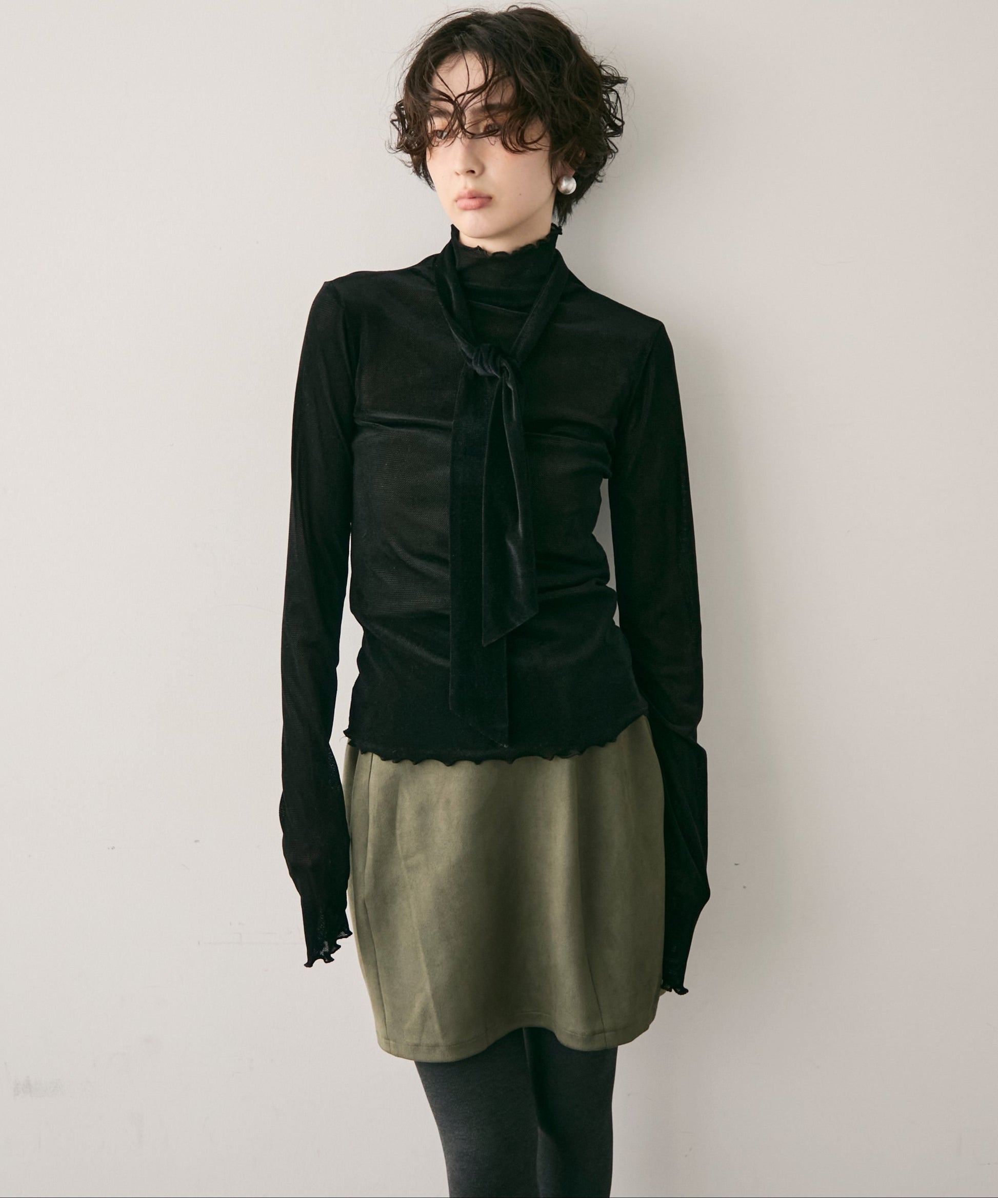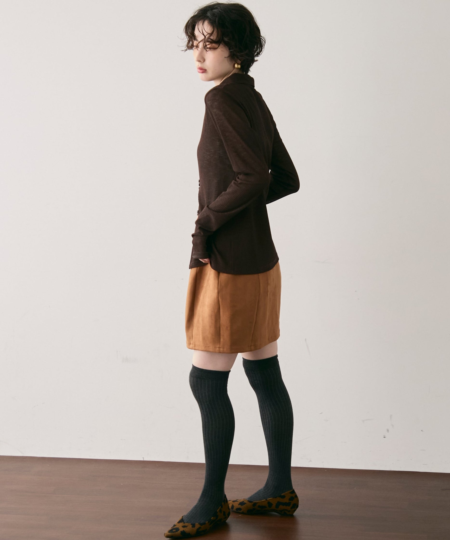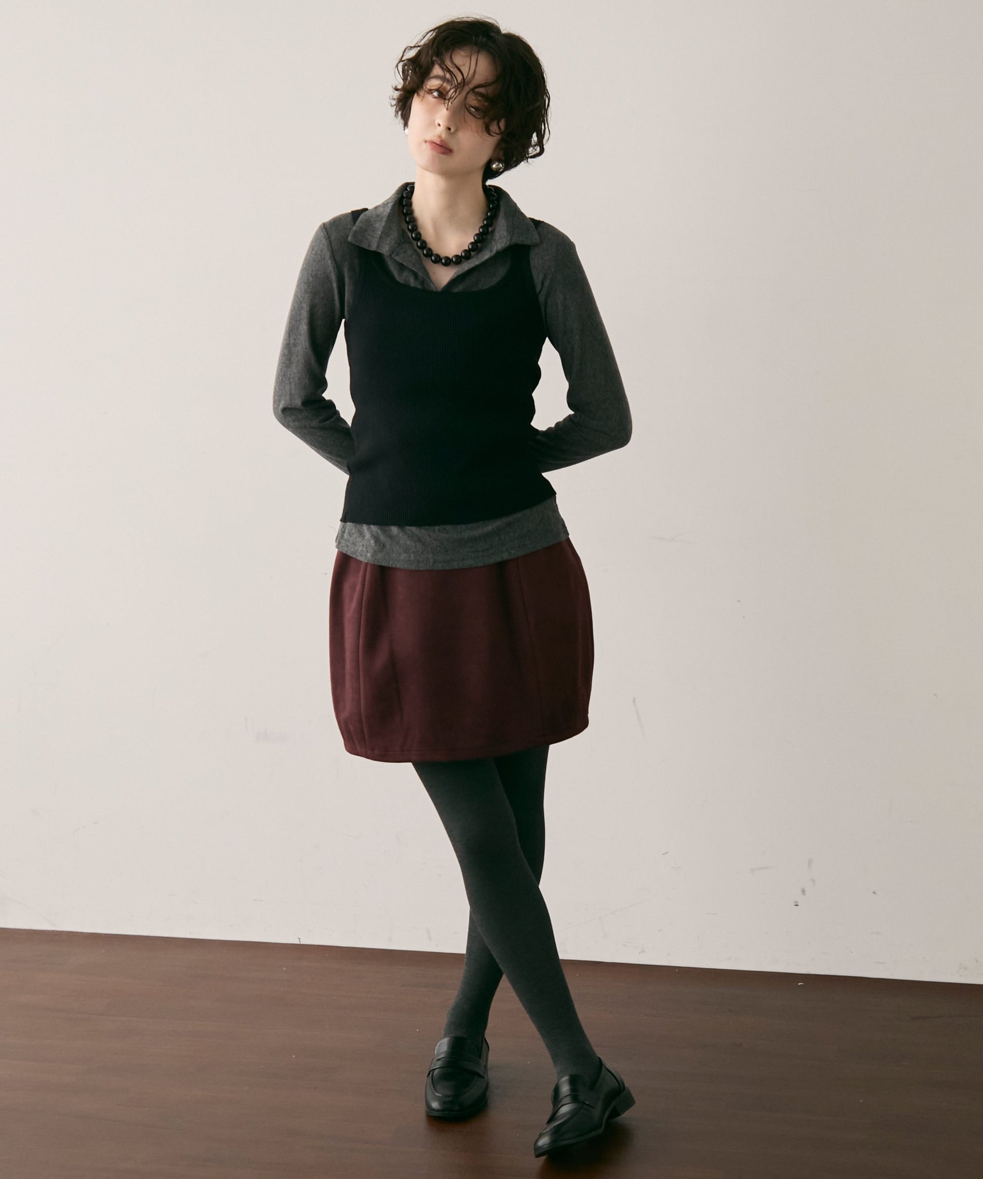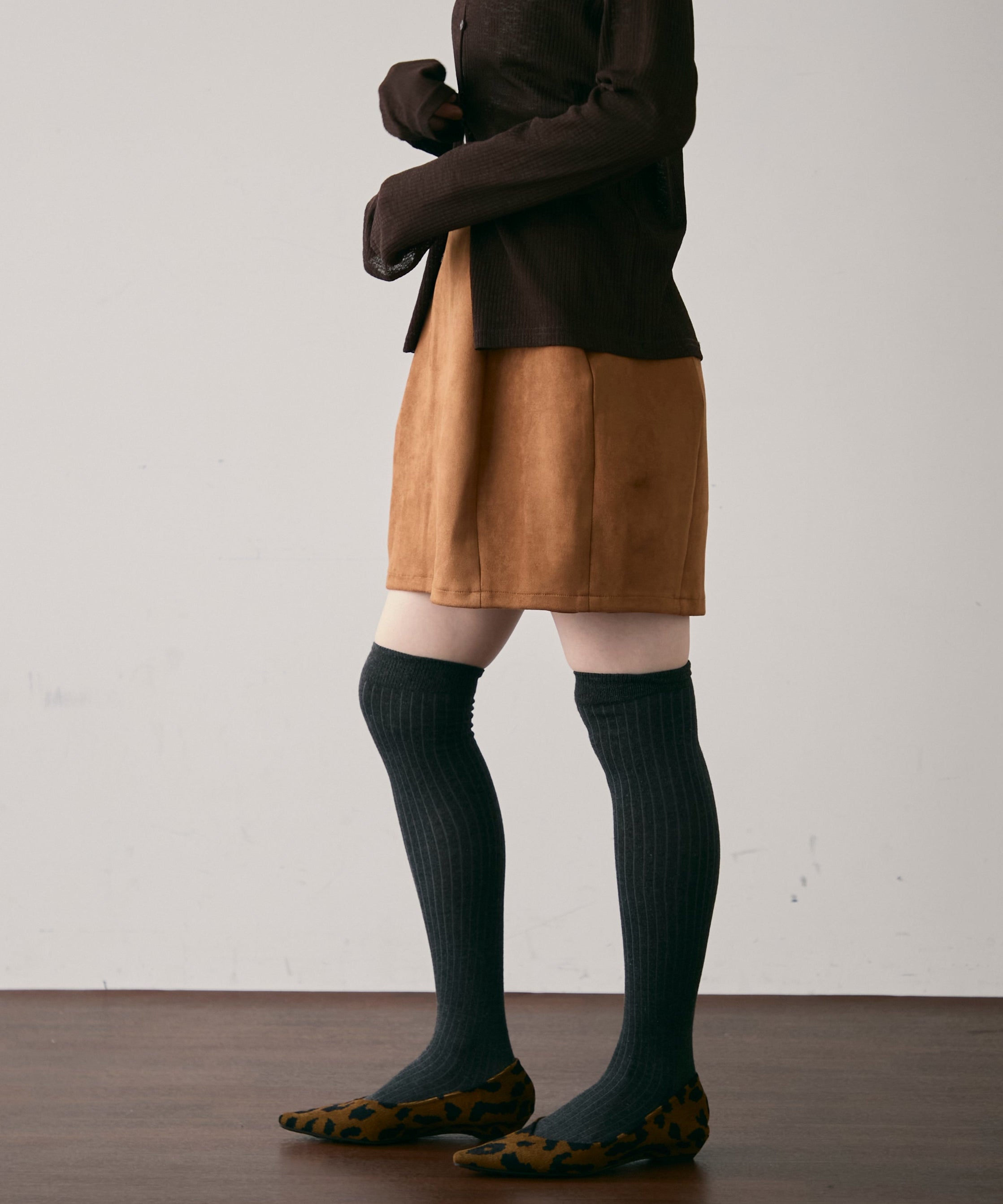 スエード調のしっとりとした風合いが魅力のコクーンスカート。程よいボリューム感が体型をさりげなくカバーしつつ、こなれ感のあるスタイリングを叶えます。ニットやスウェットとも好相性。