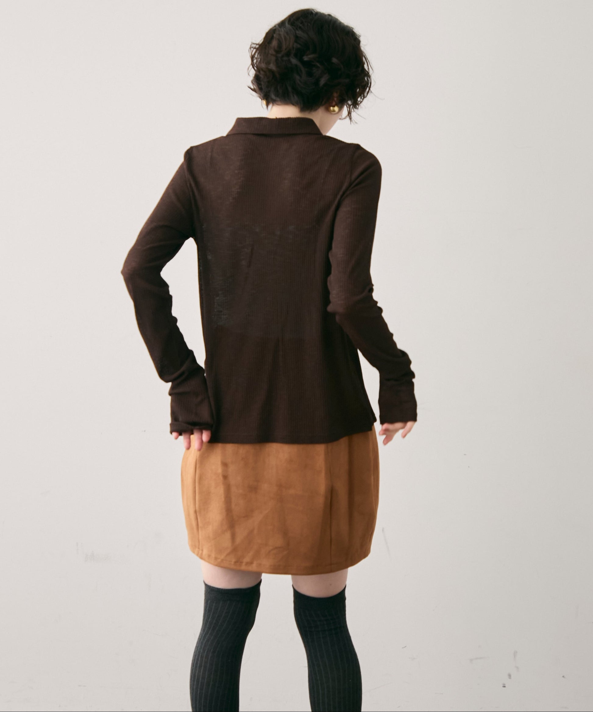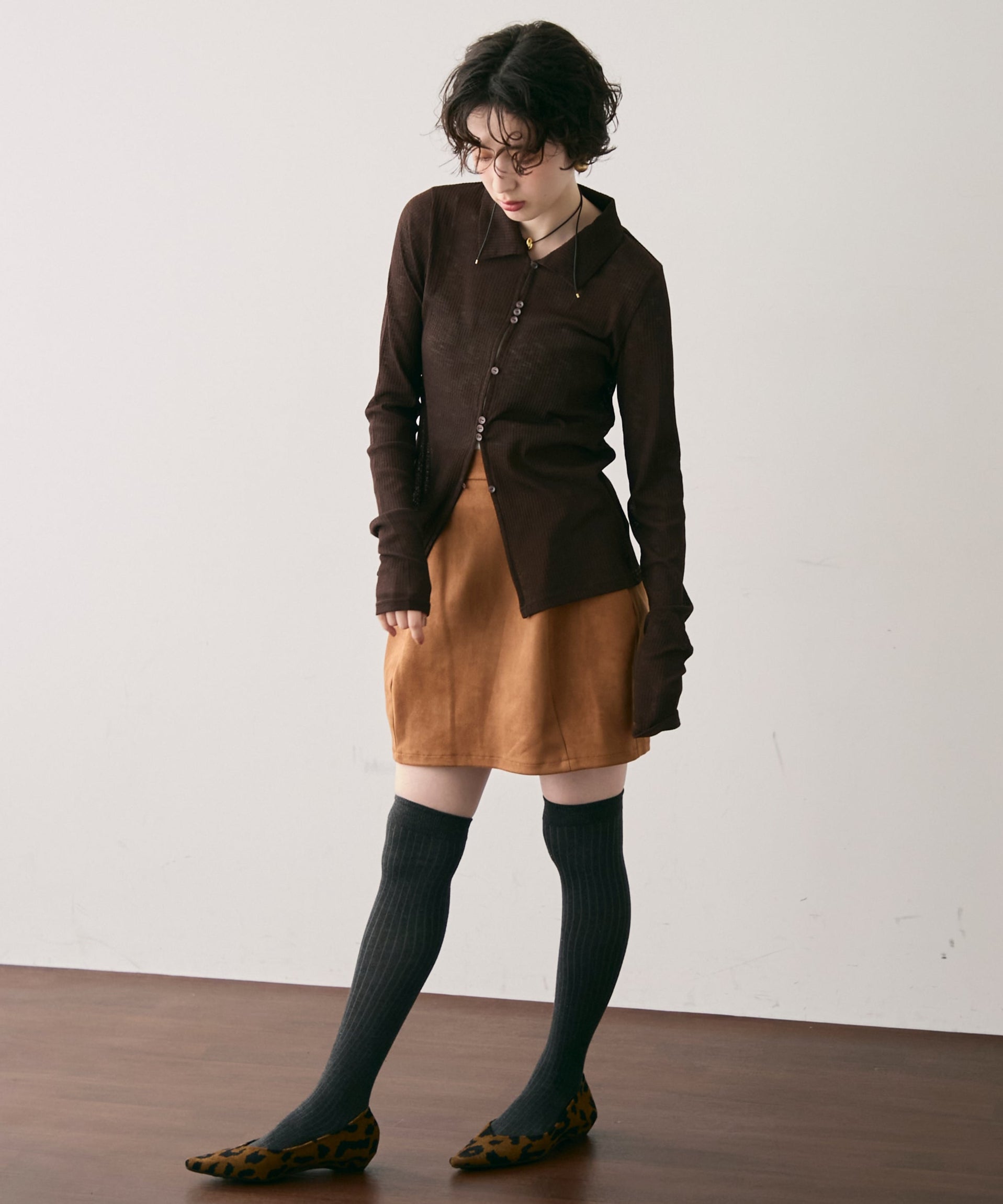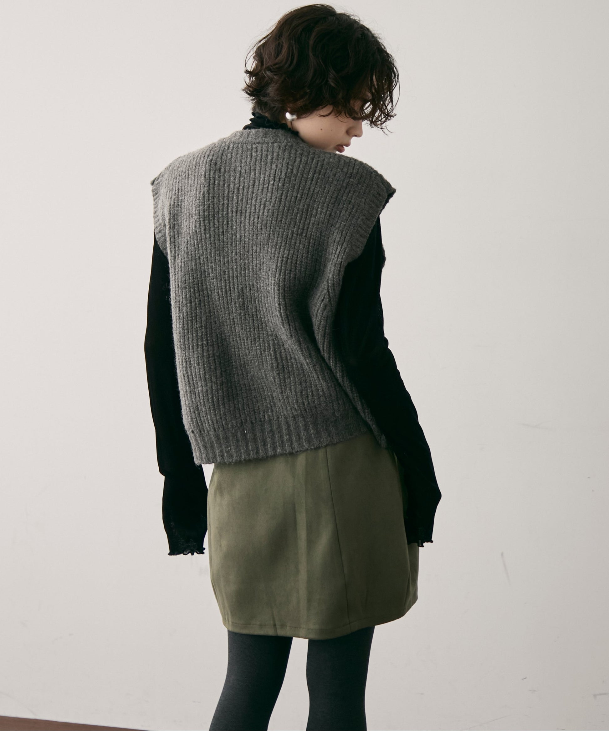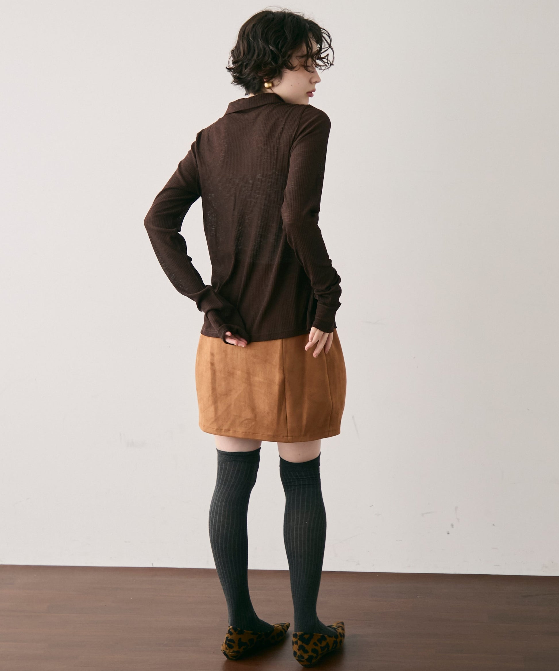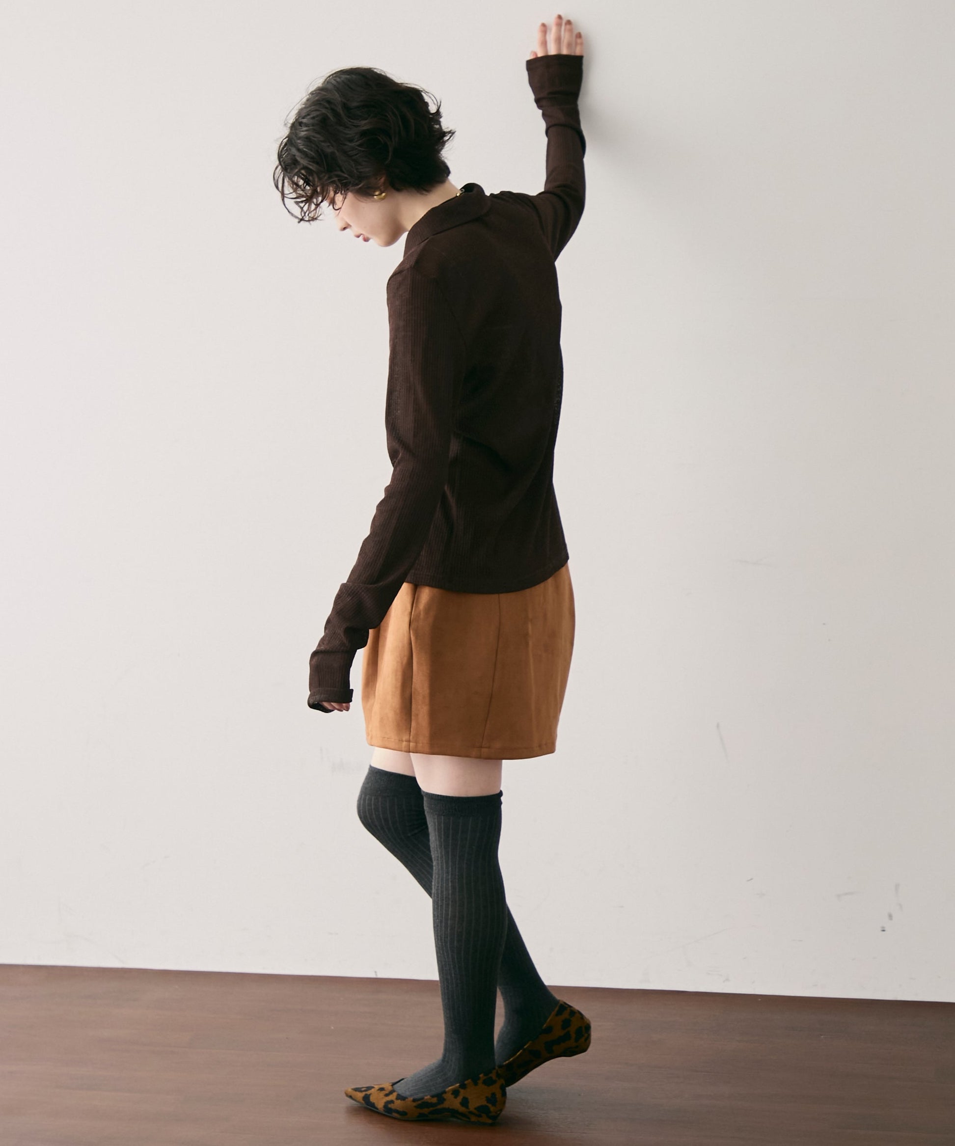 スエード調のしっとりとした風合いが魅力のコクーンスカート。程よいボリューム感が体型をさりげなくカバーしつつ、こなれ感のあるスタイリングを叶えます。ニットやスウェットとも好相性。