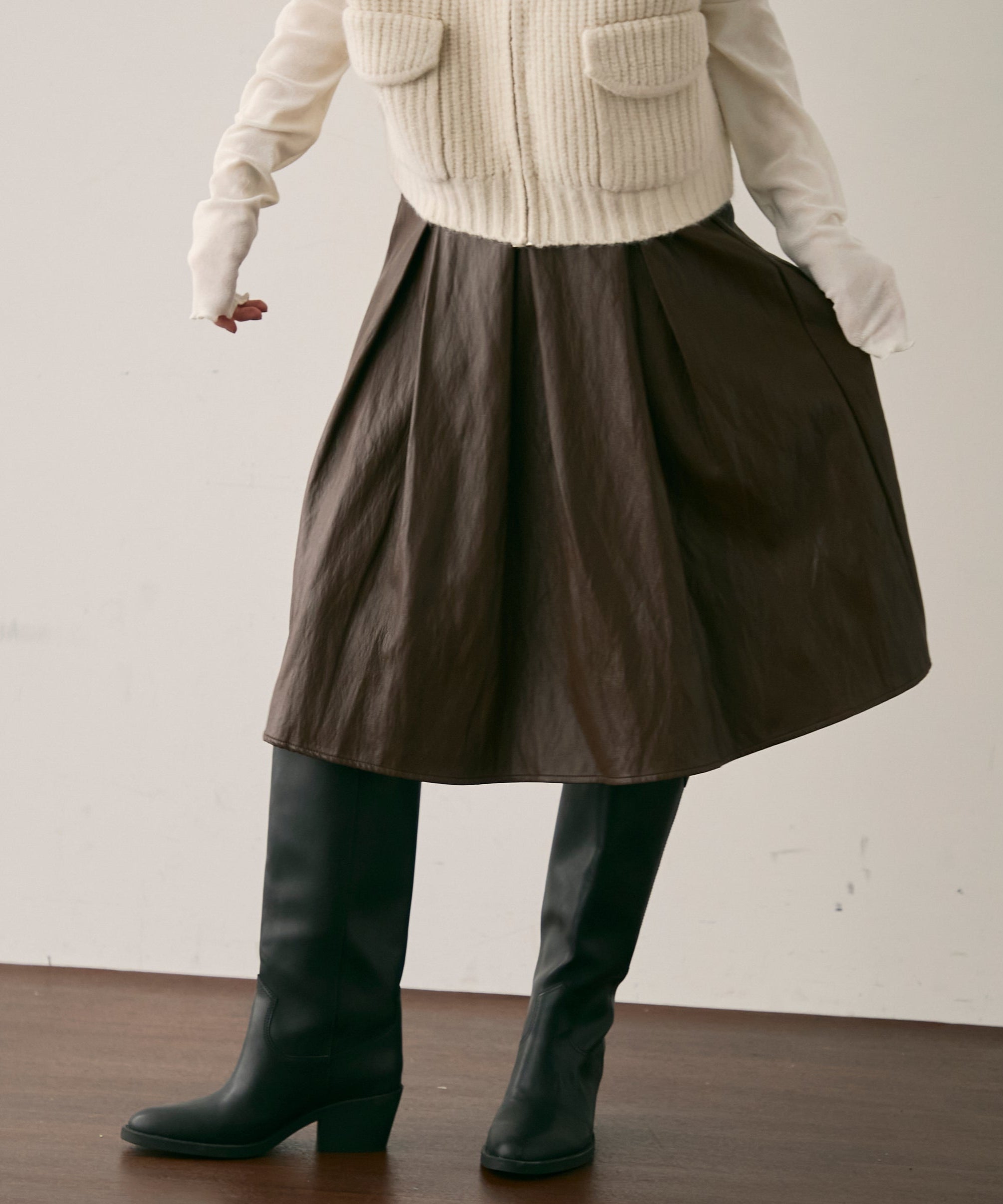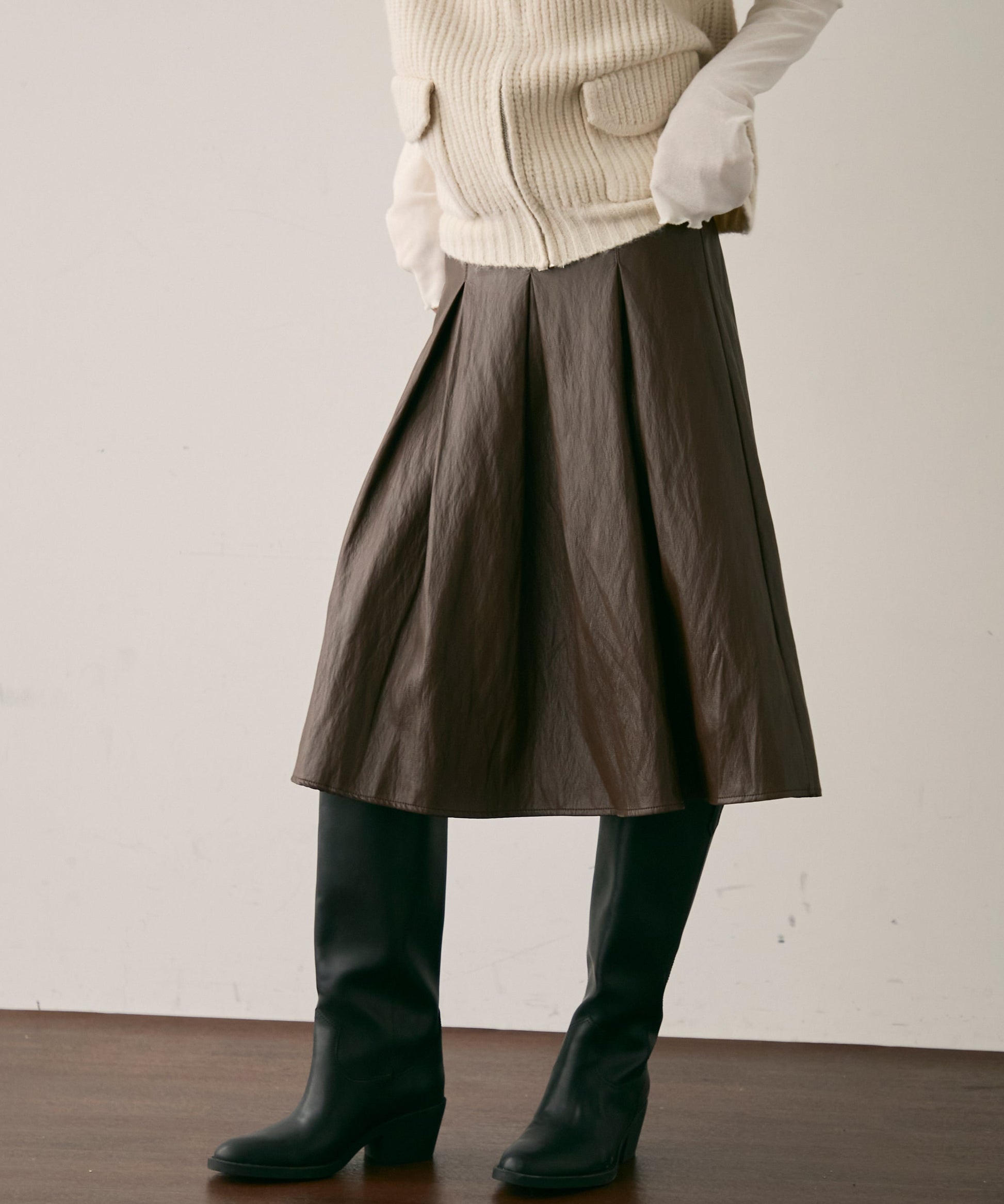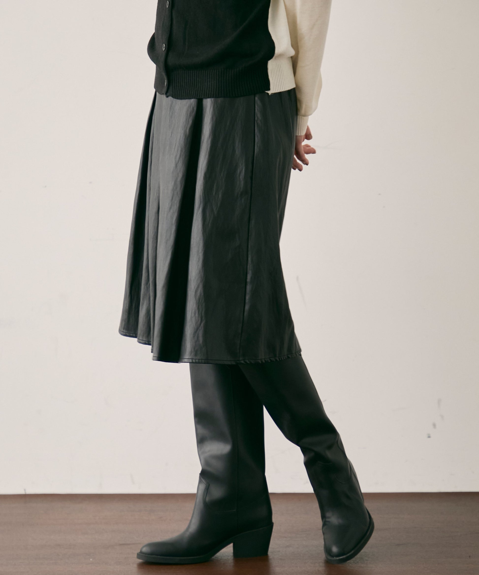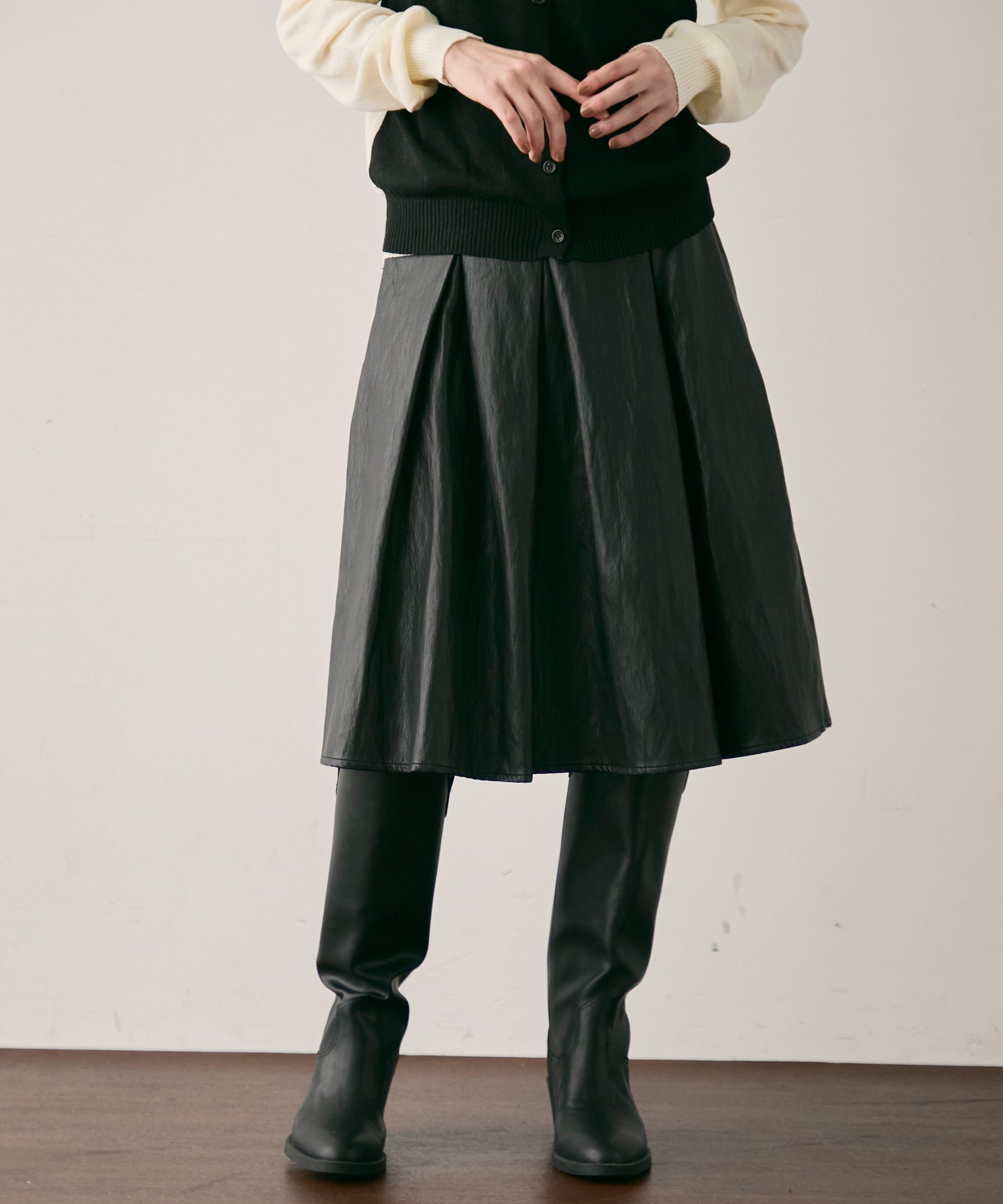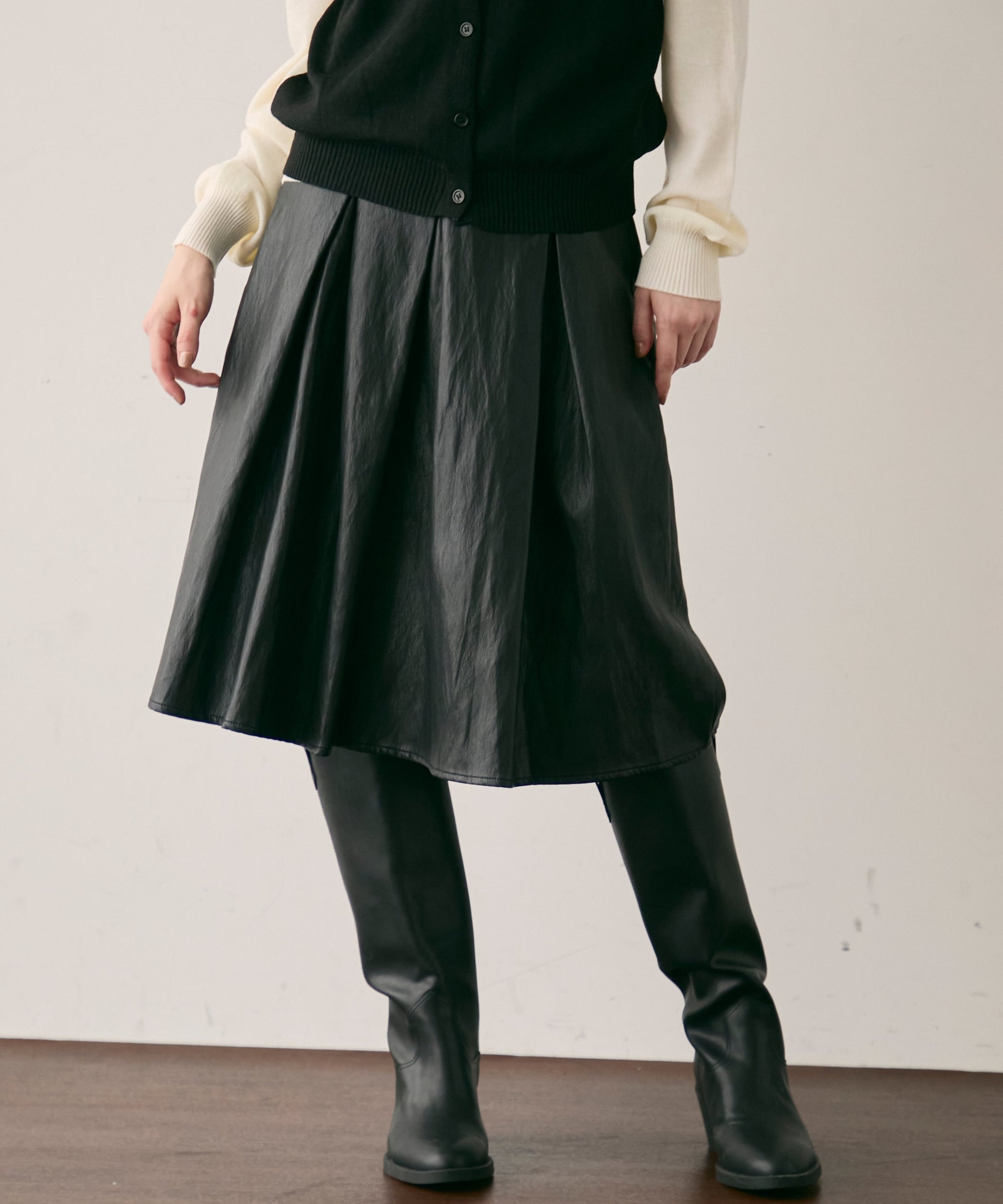 柔らかな風合いが魅力のソフトヴィーガンレザーを使用したプリーツスカート。