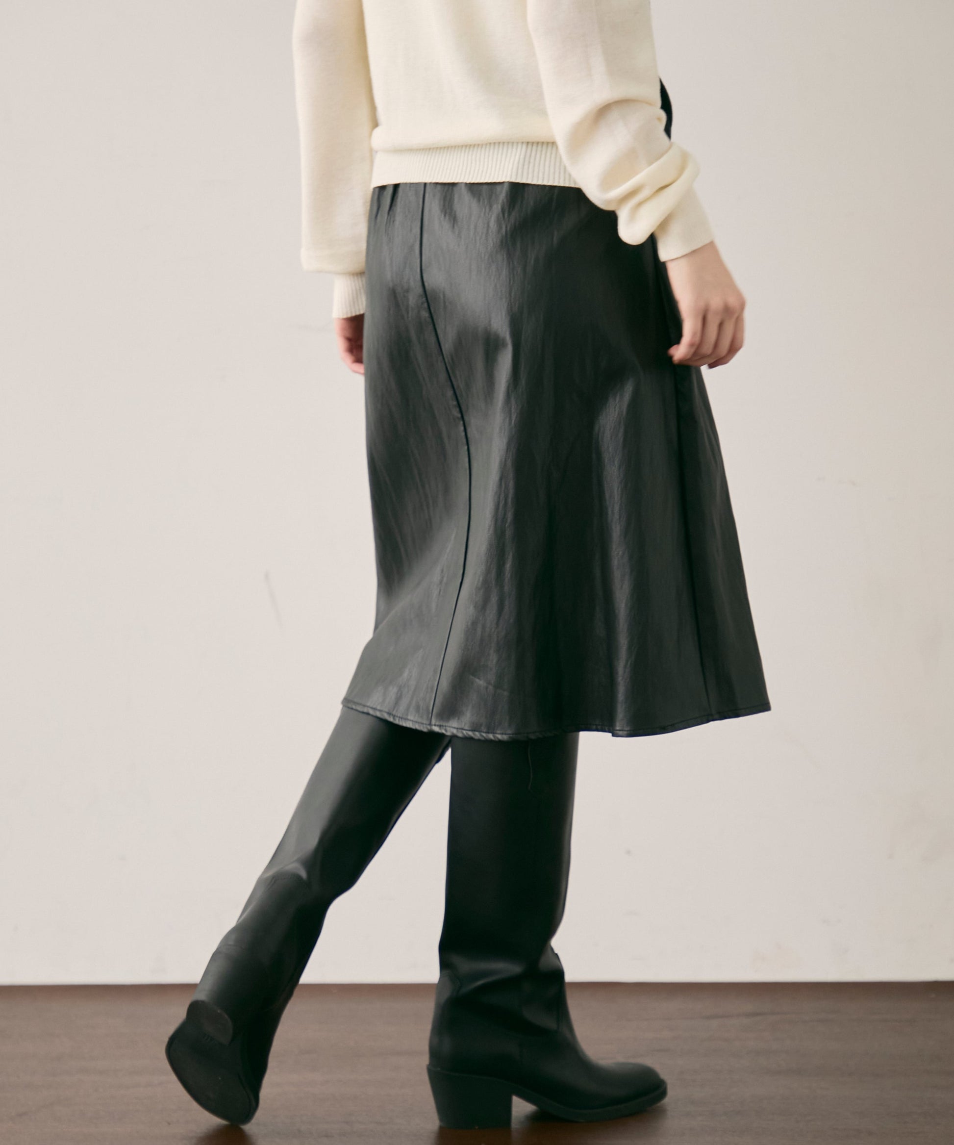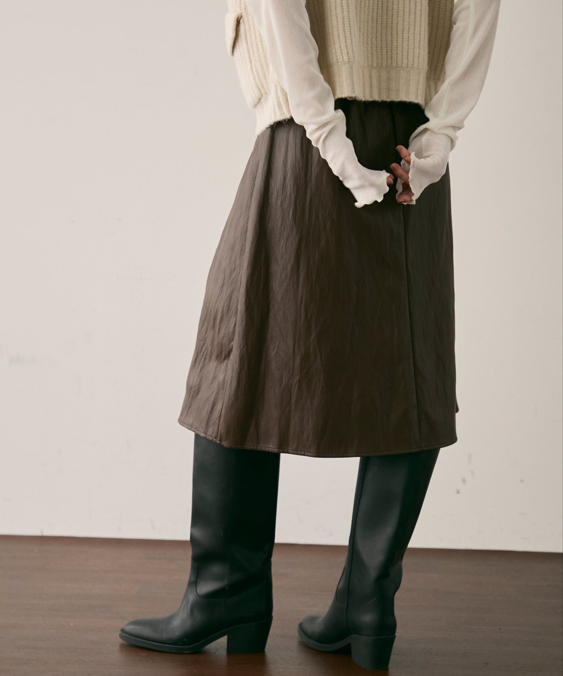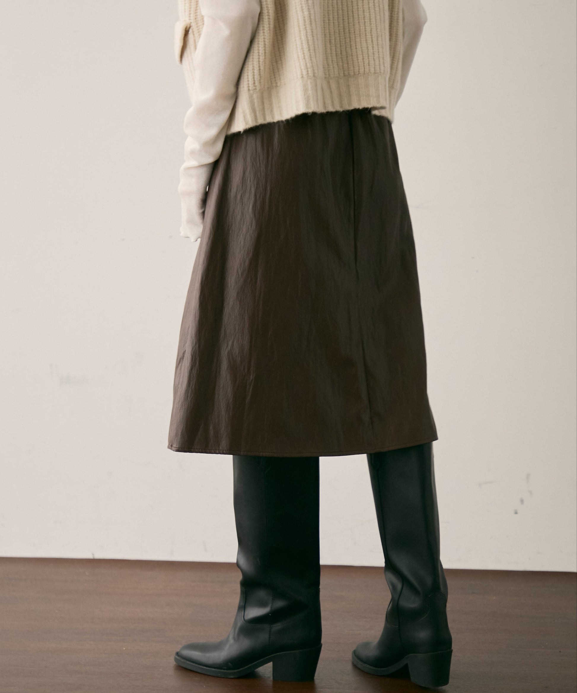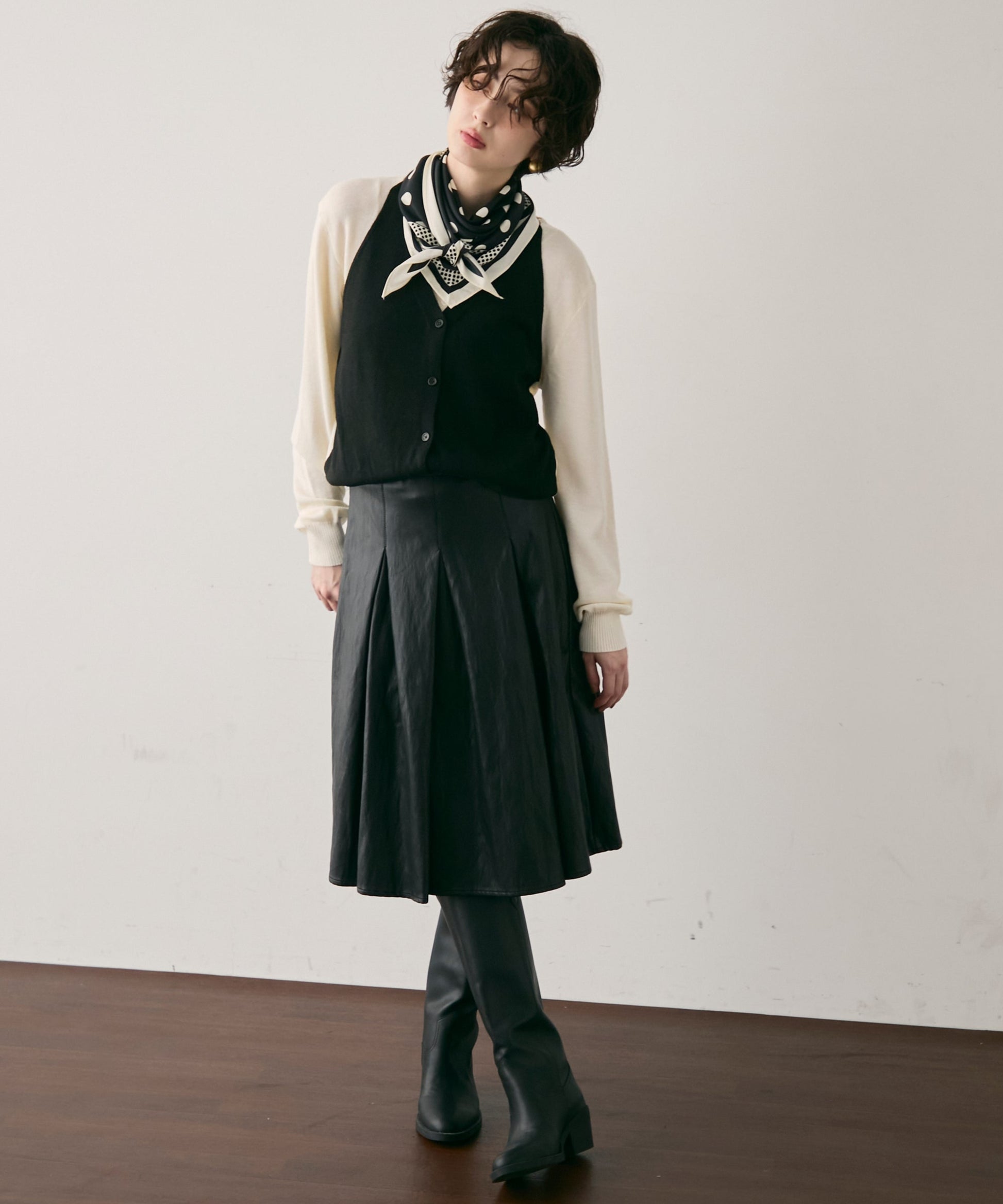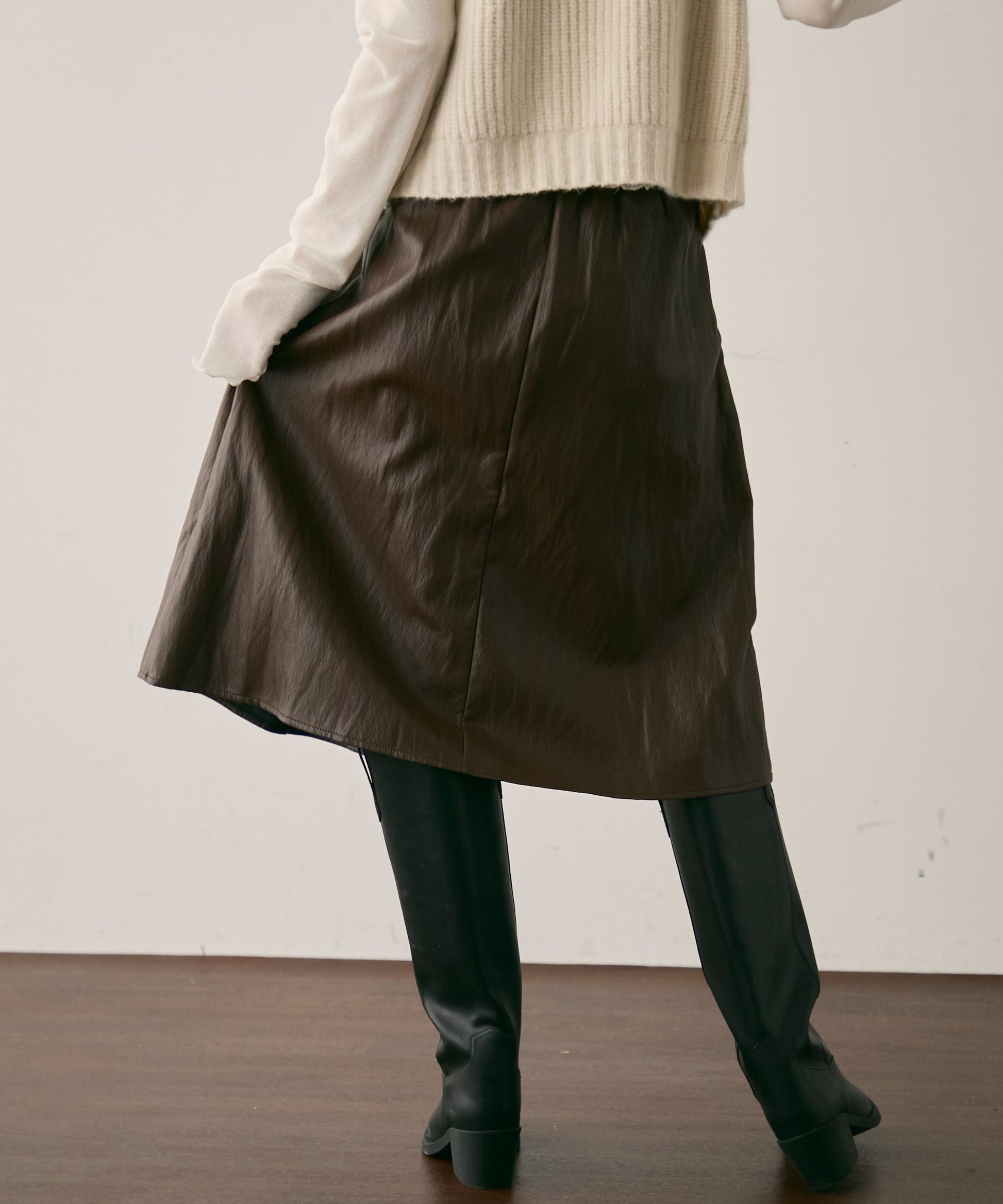 柔らかな風合いが魅力のソフトヴィーガンレザーを使用したプリーツスカート。