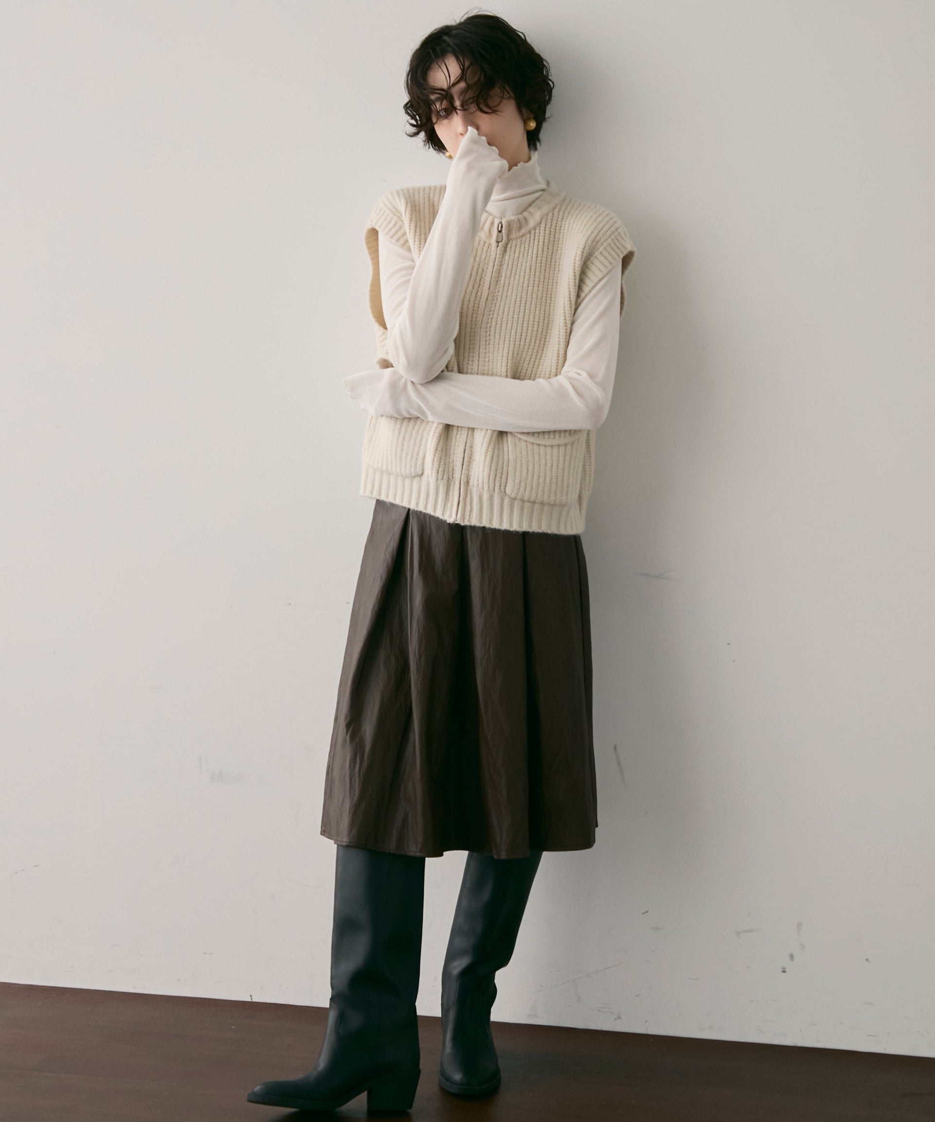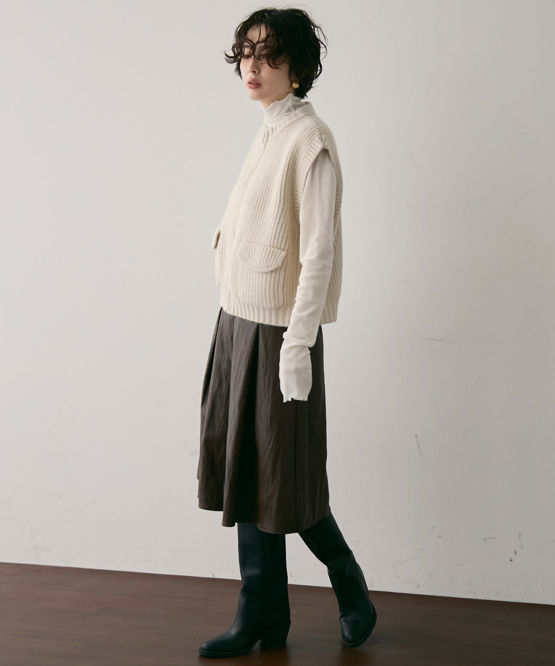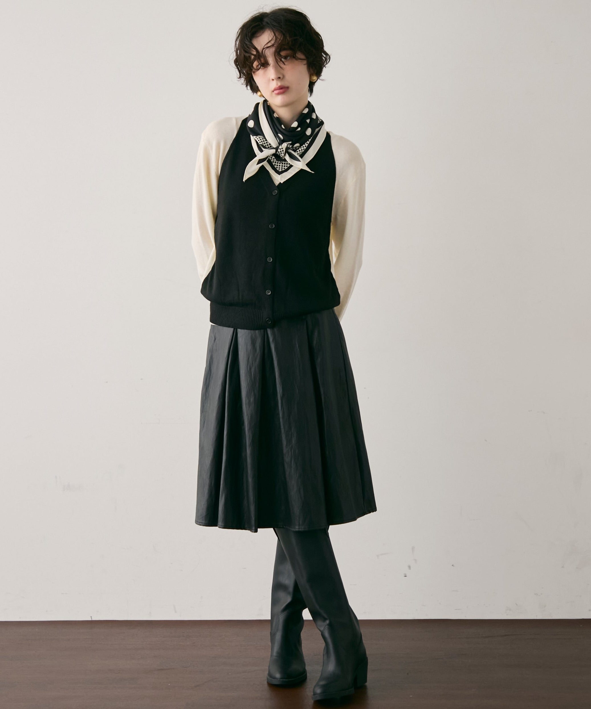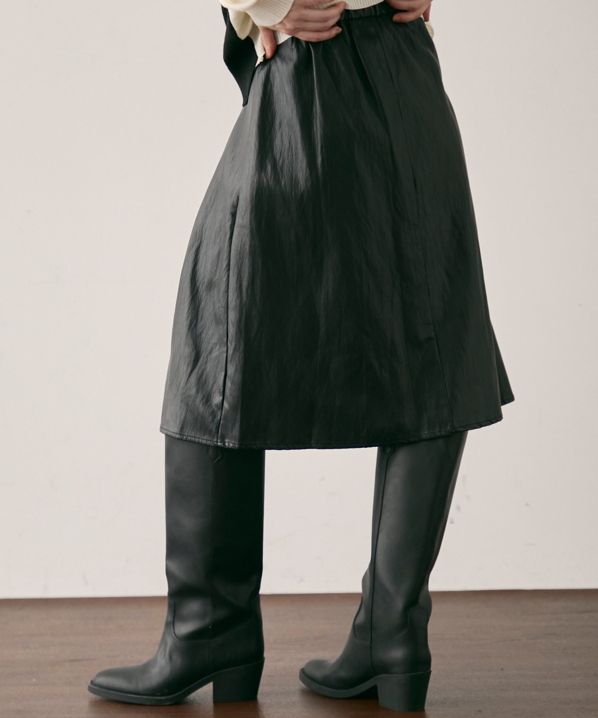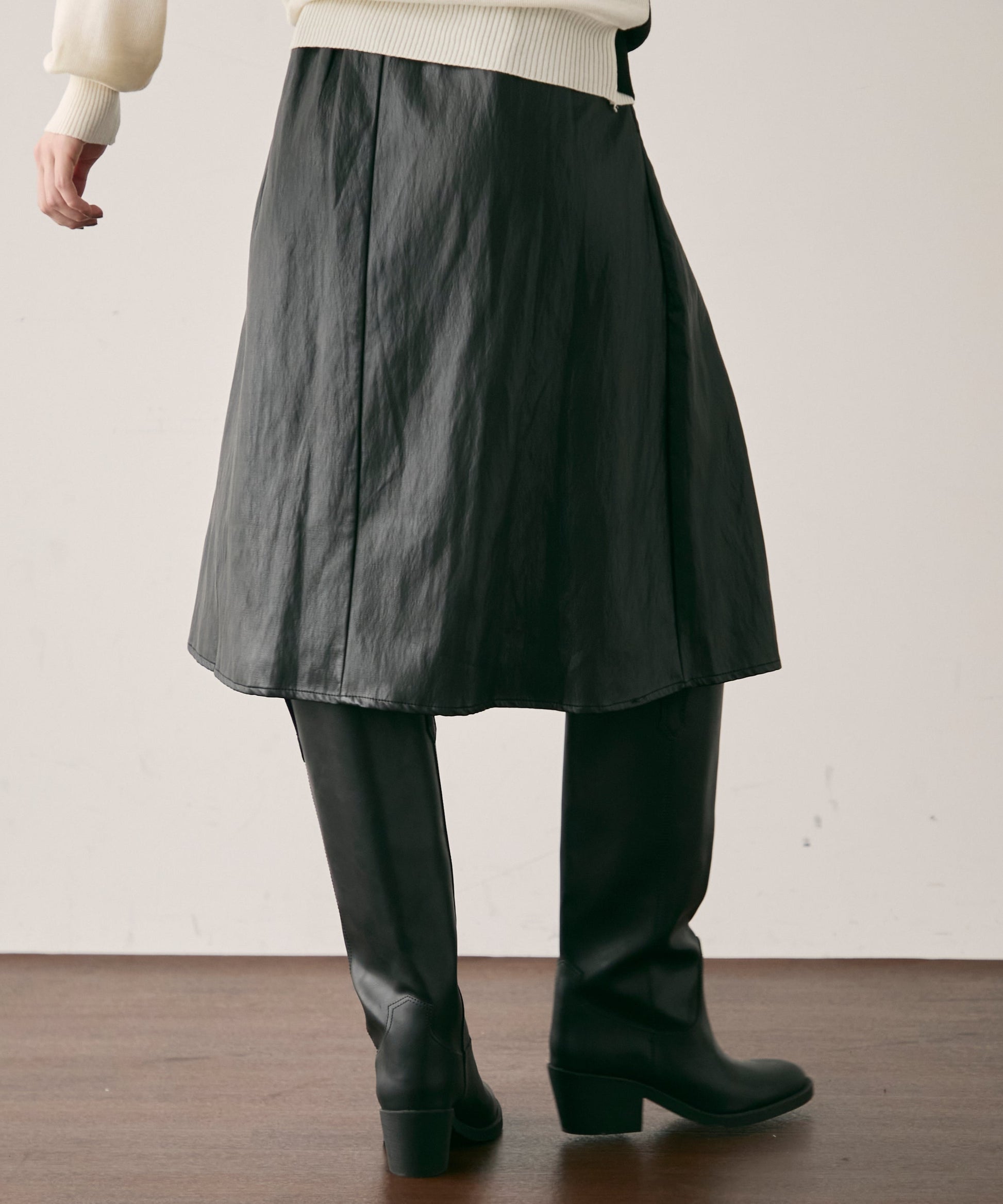 柔らかな風合いが魅力のソフトヴィーガンレザーを使用したプリーツスカート。