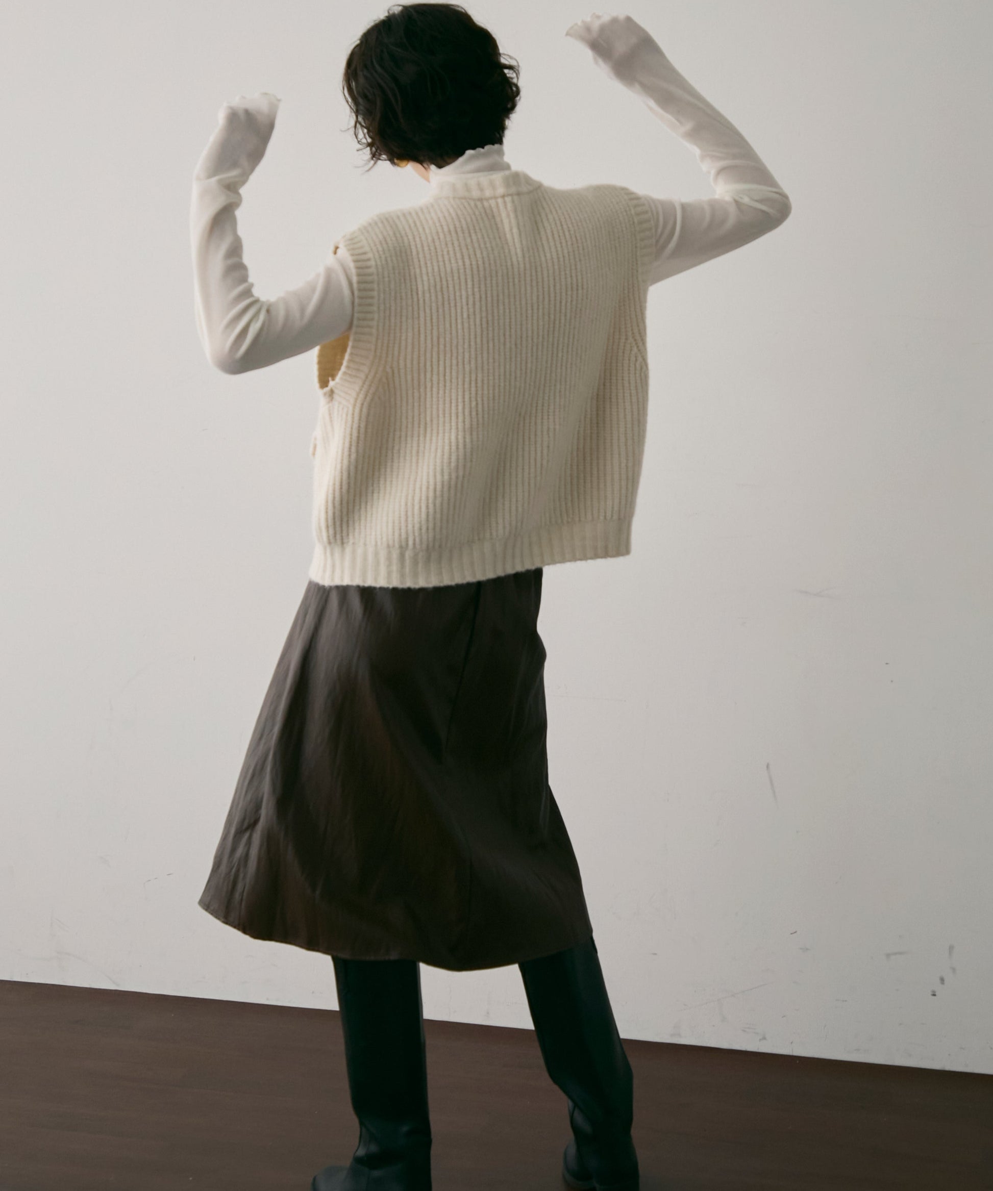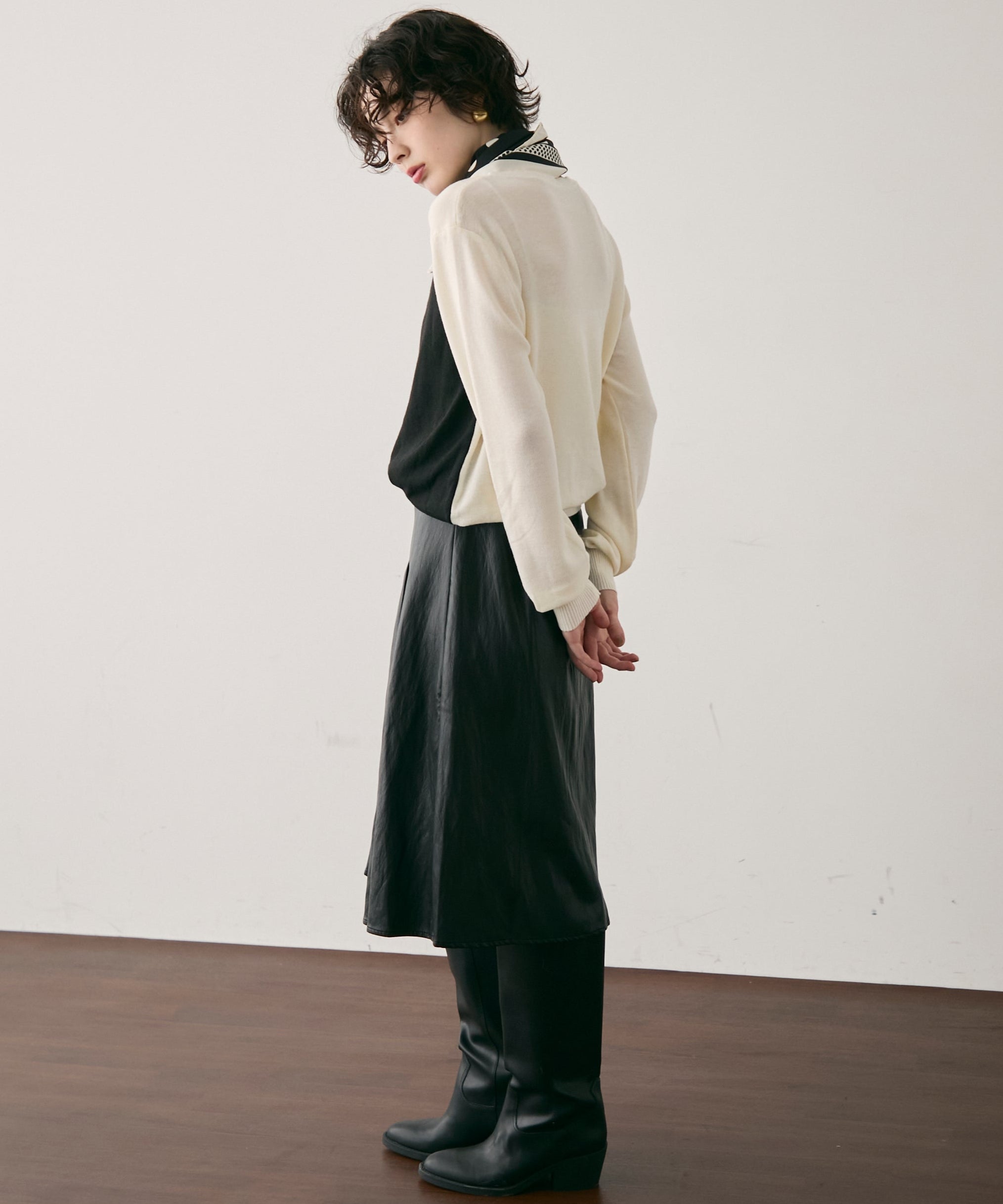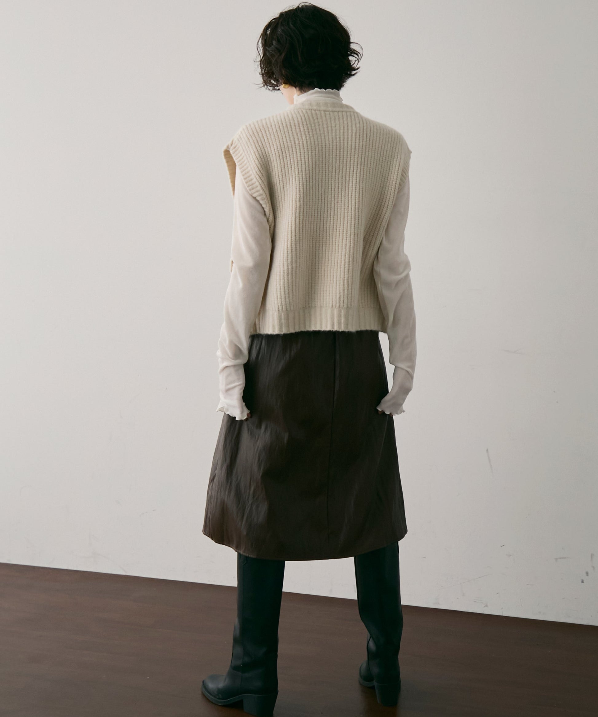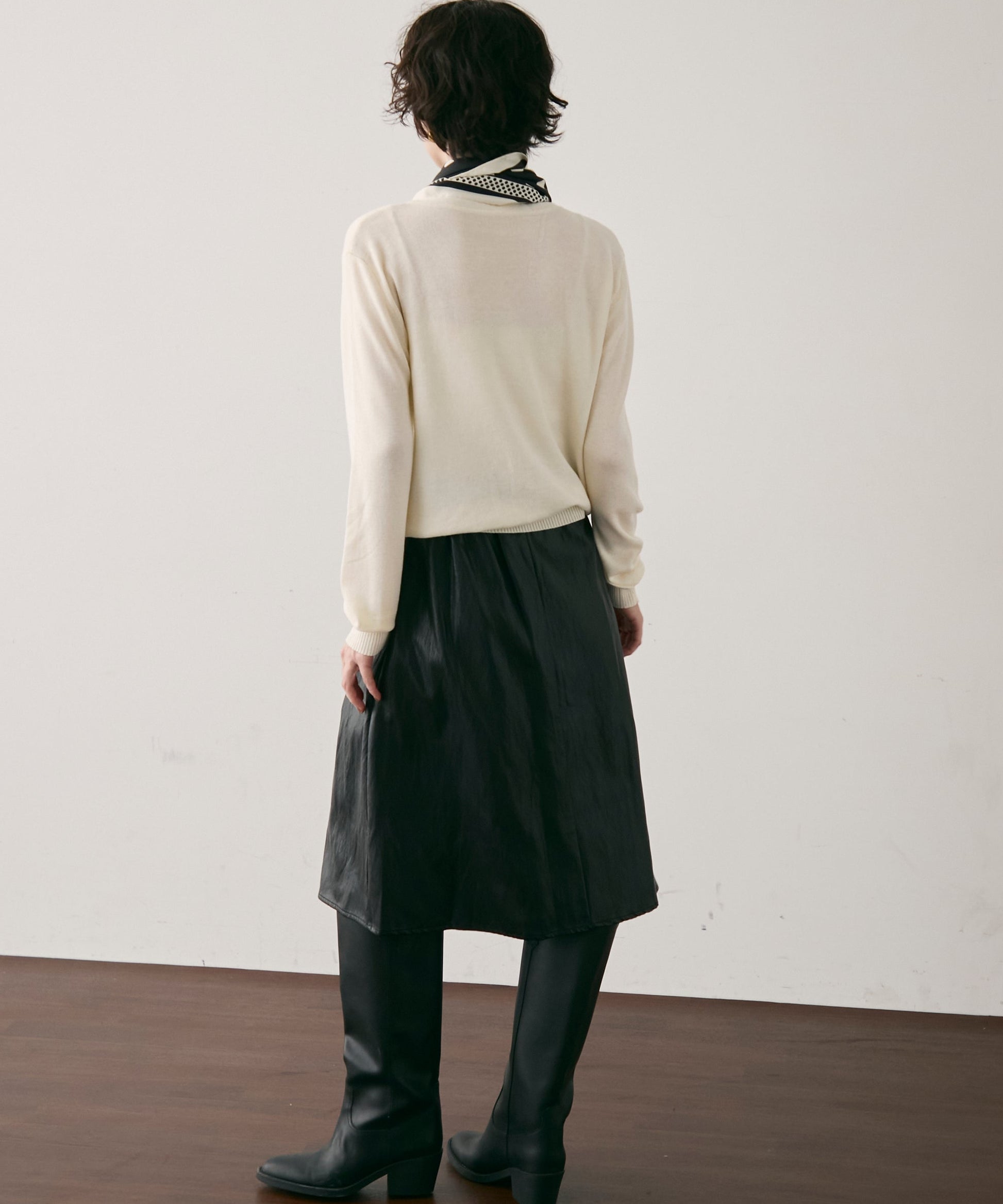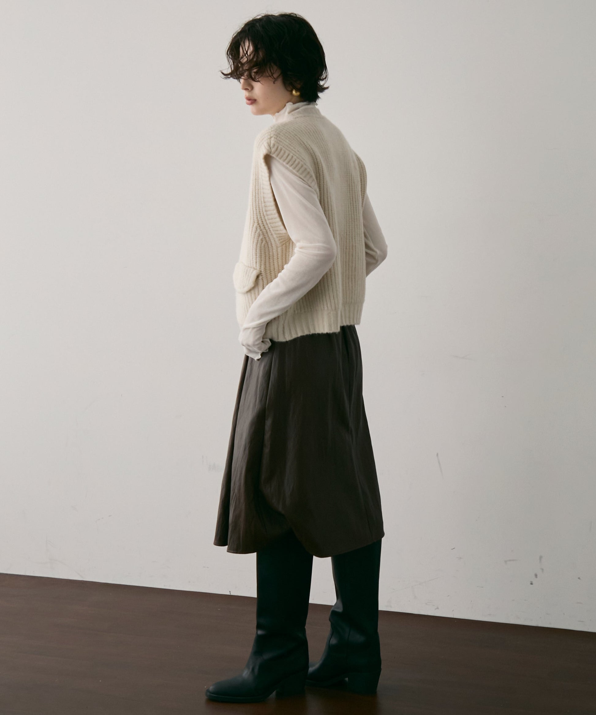 柔らかな風合いが魅力のソフトヴィーガンレザーを使用したプリーツスカート。