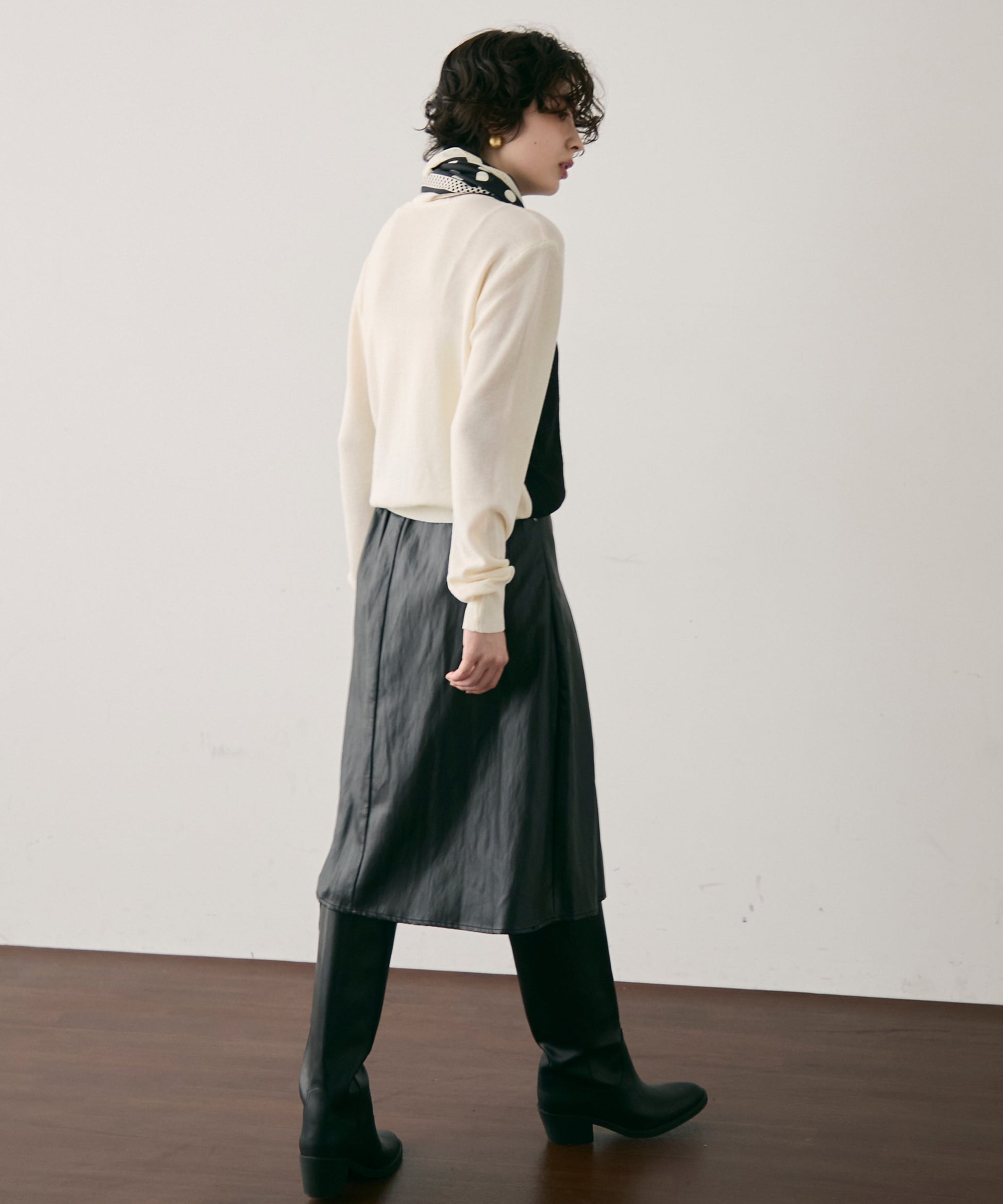 シンプルなトップスを合わせるだけでコーディネートが華やぎ、きれいめにもモードにも着こなせる万能アイテム。