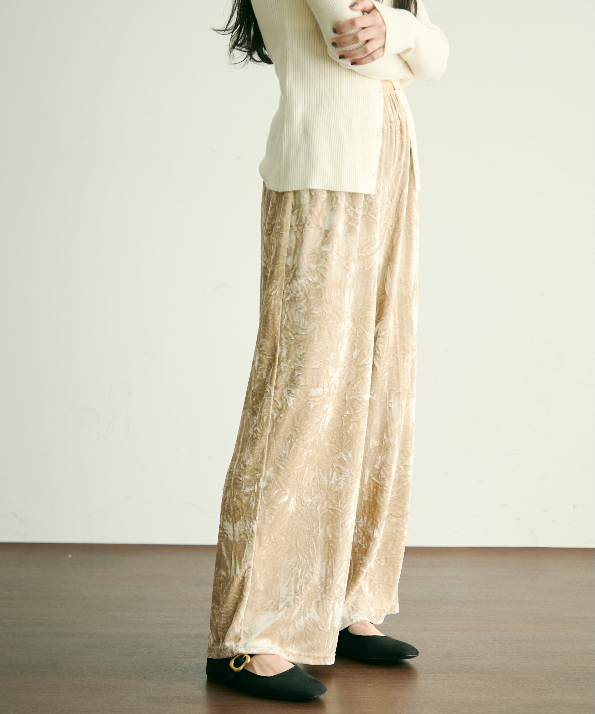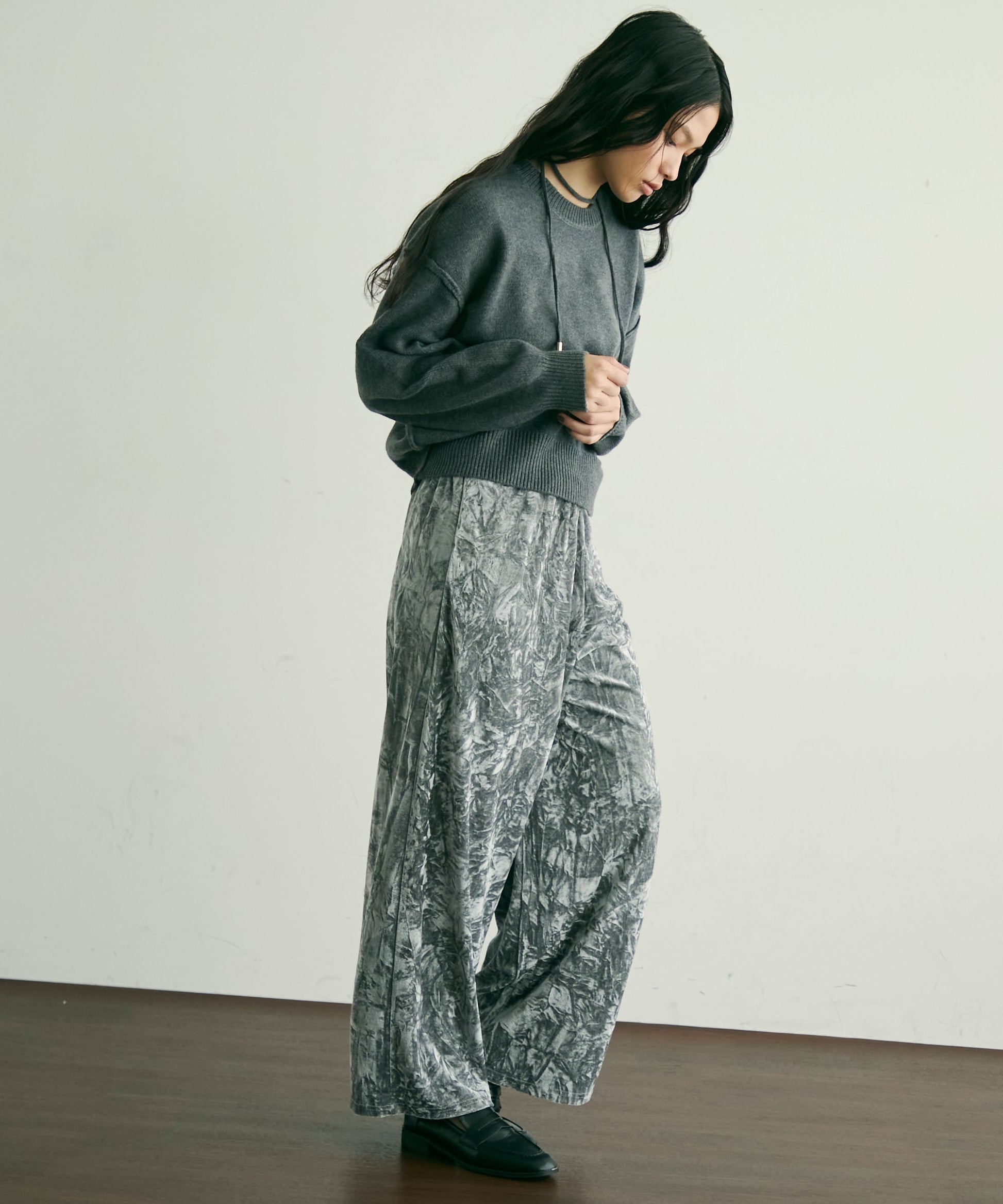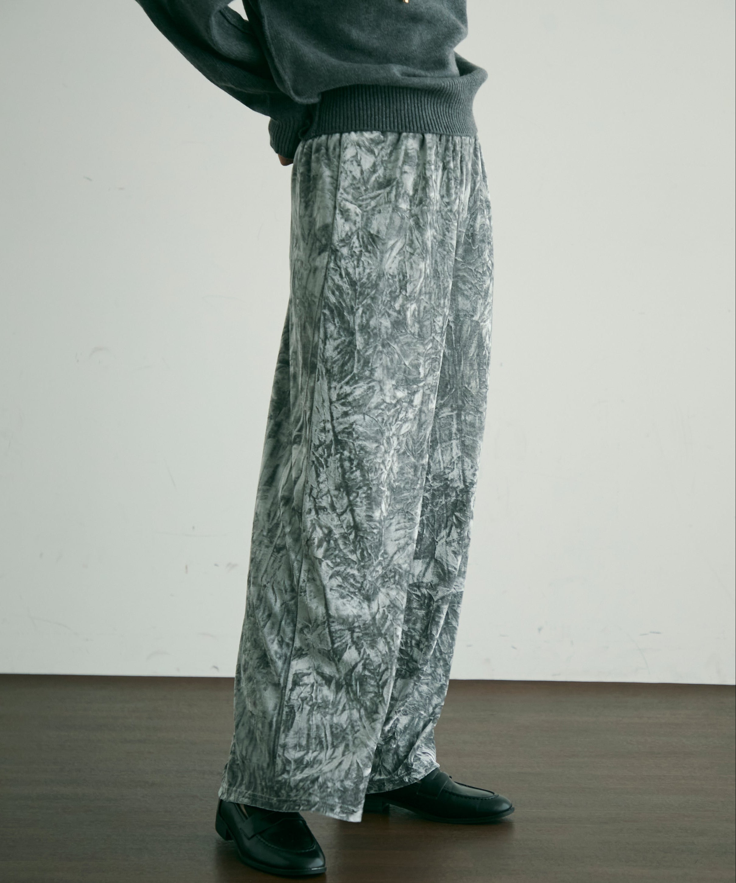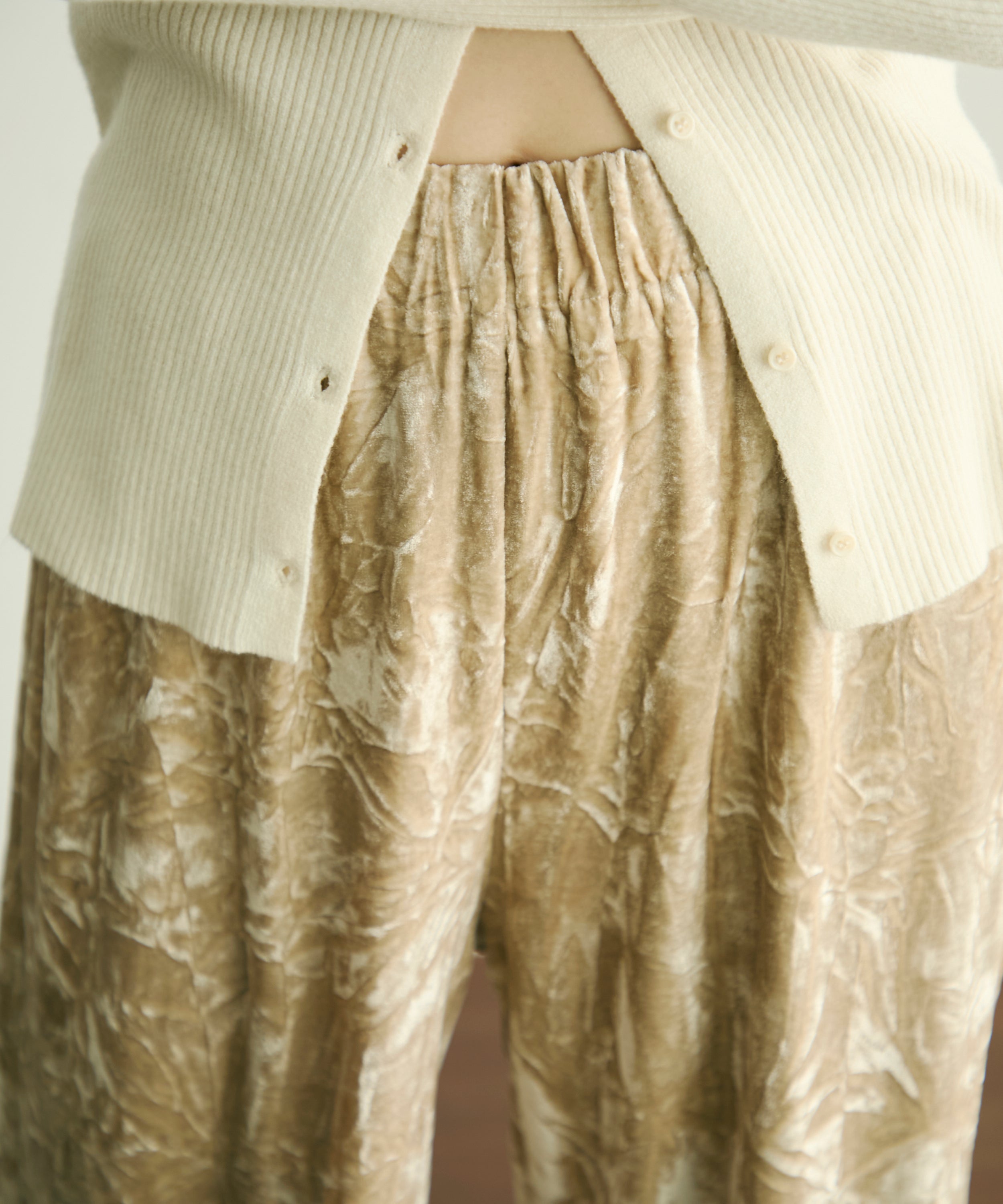 上品な光沢感ととろみのある質感が魅力のクラッシュベロア素材。