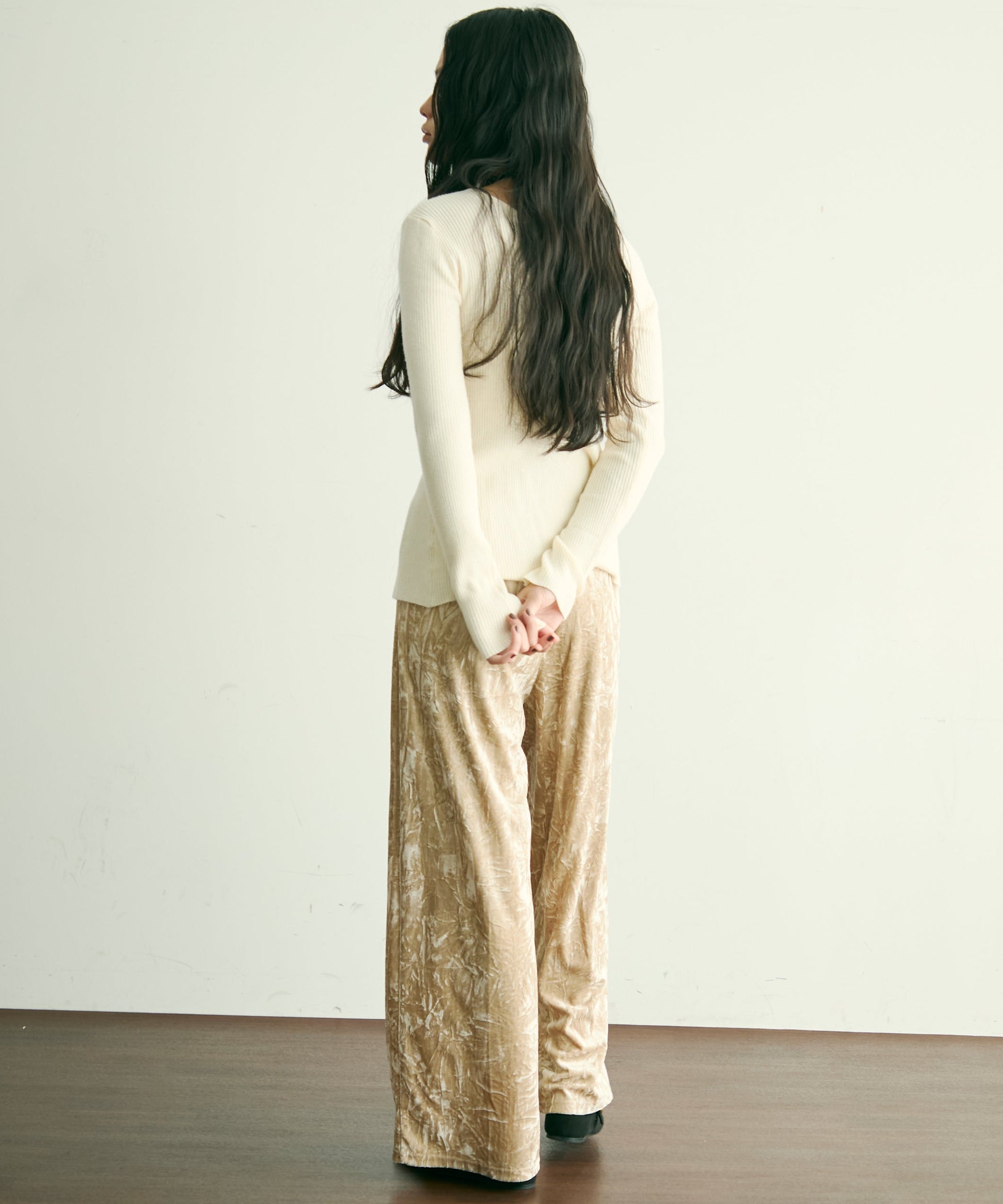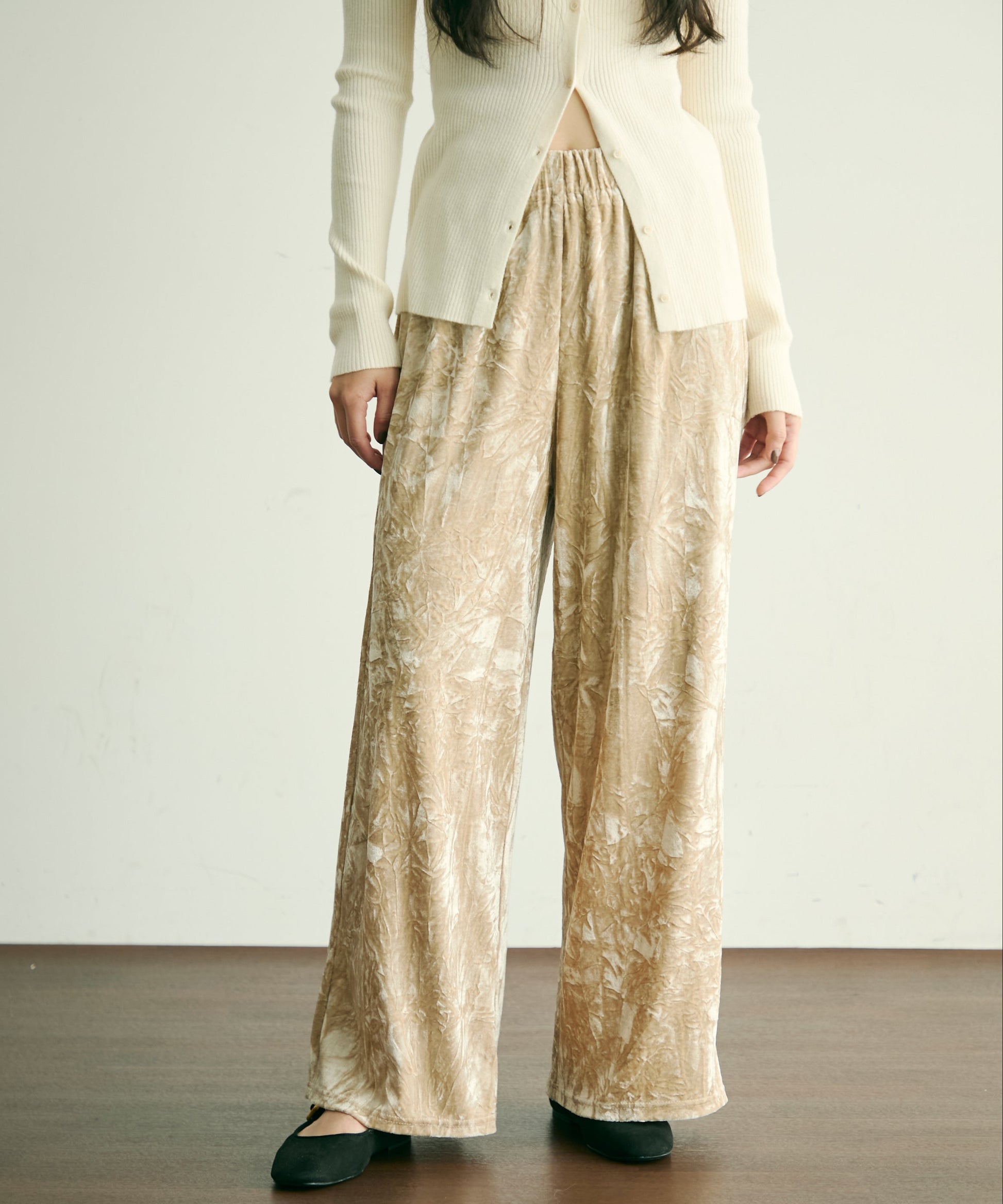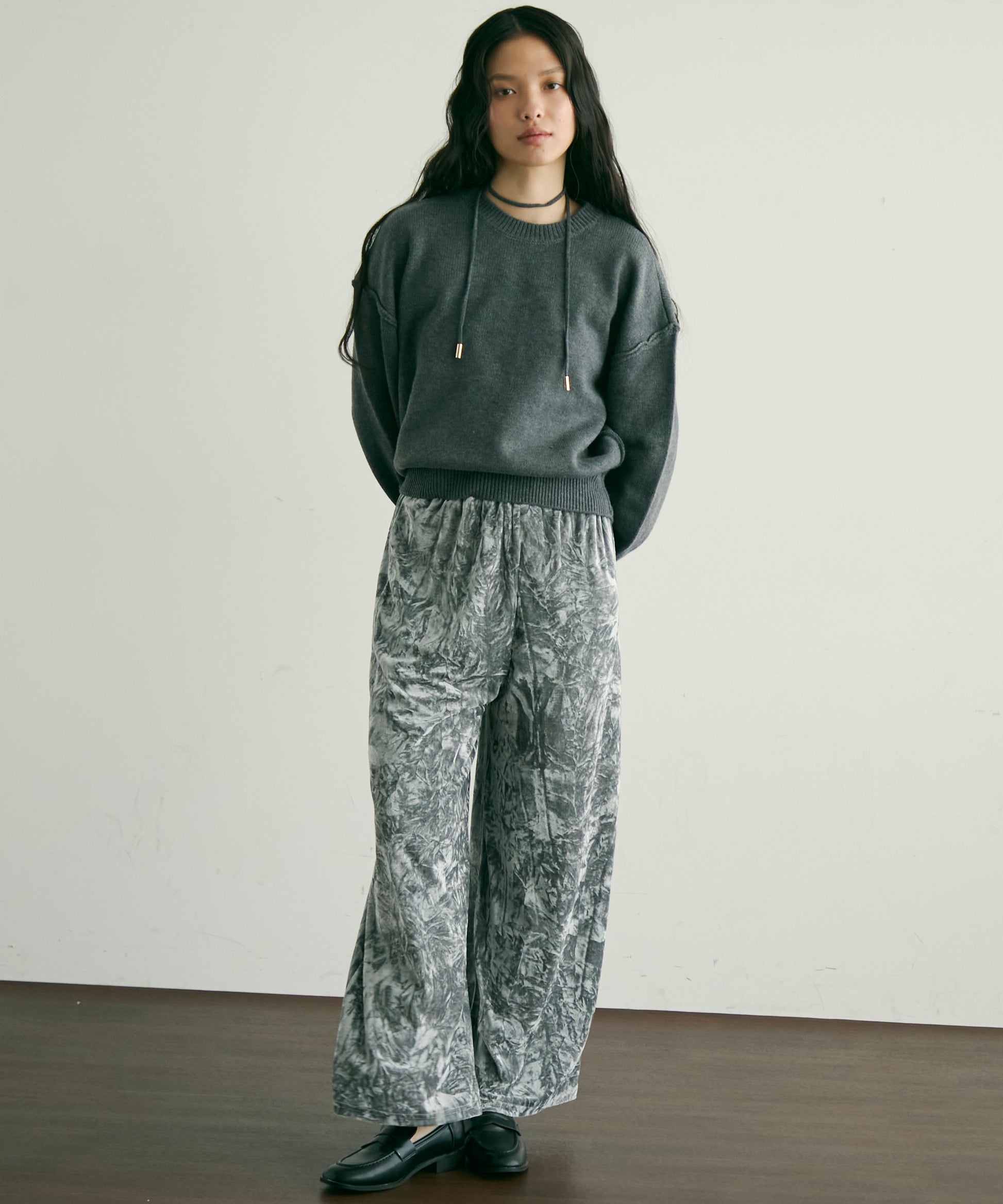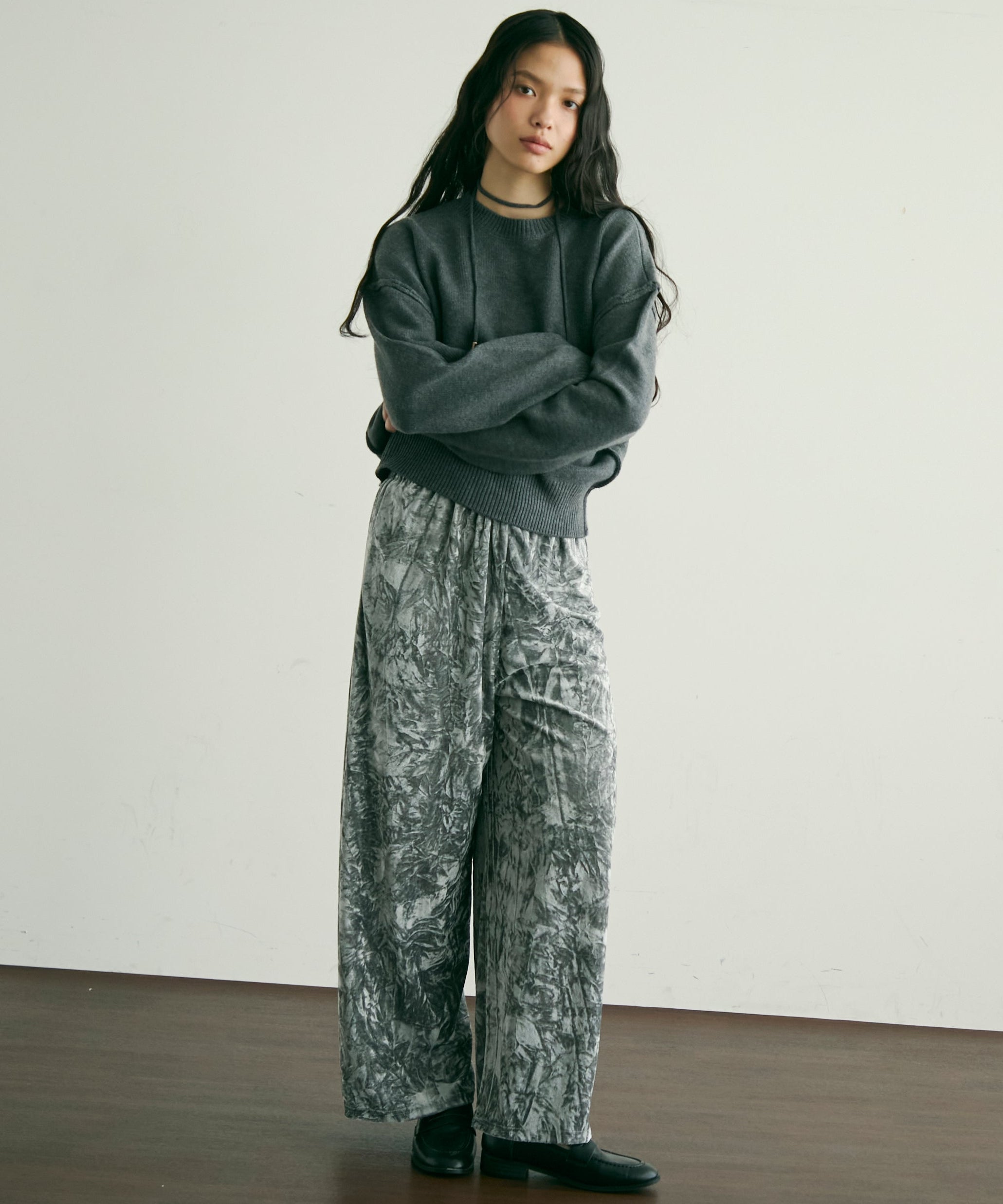 上品な光沢感ととろみのある質感が魅力のクラッシュベロア素材。