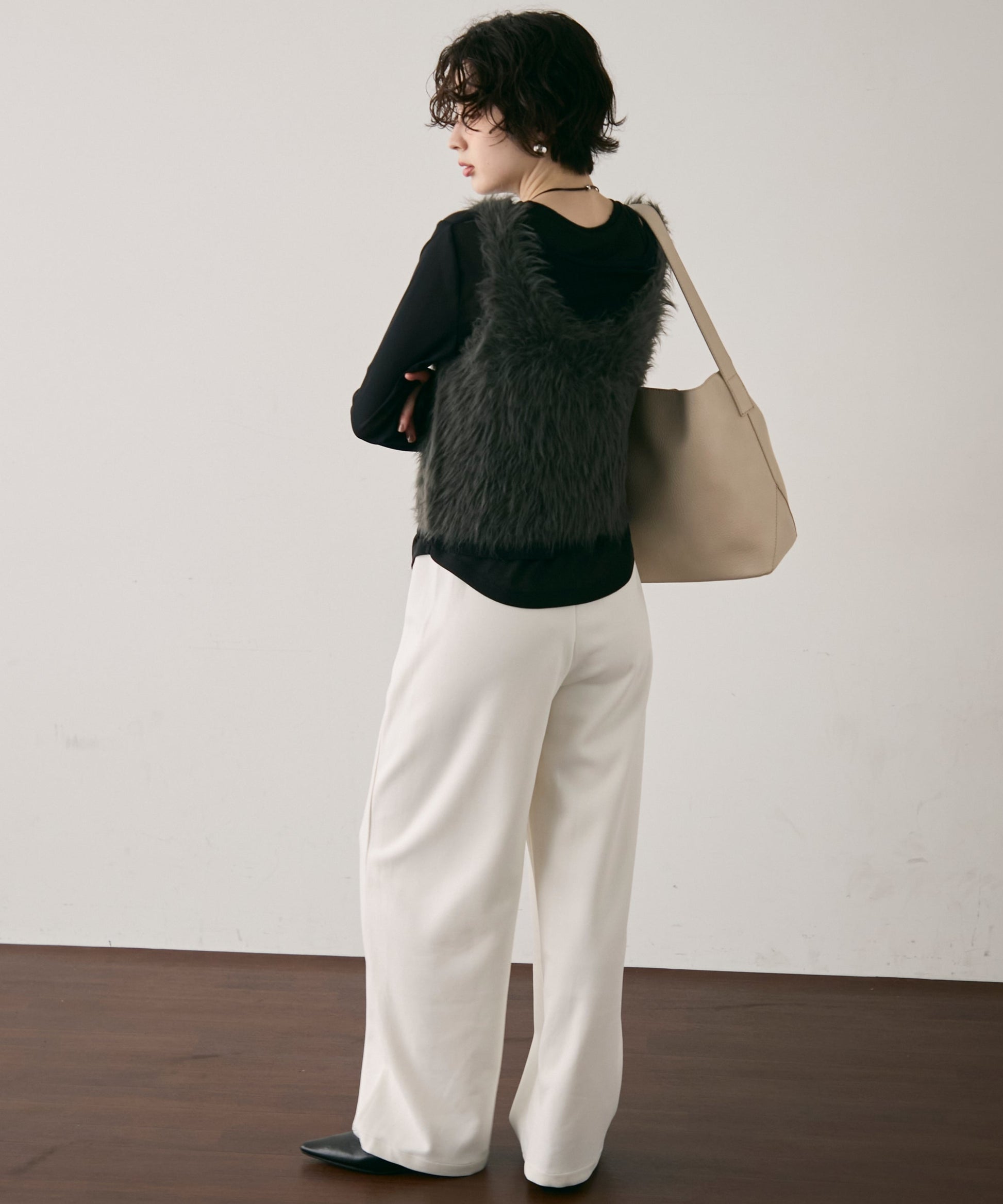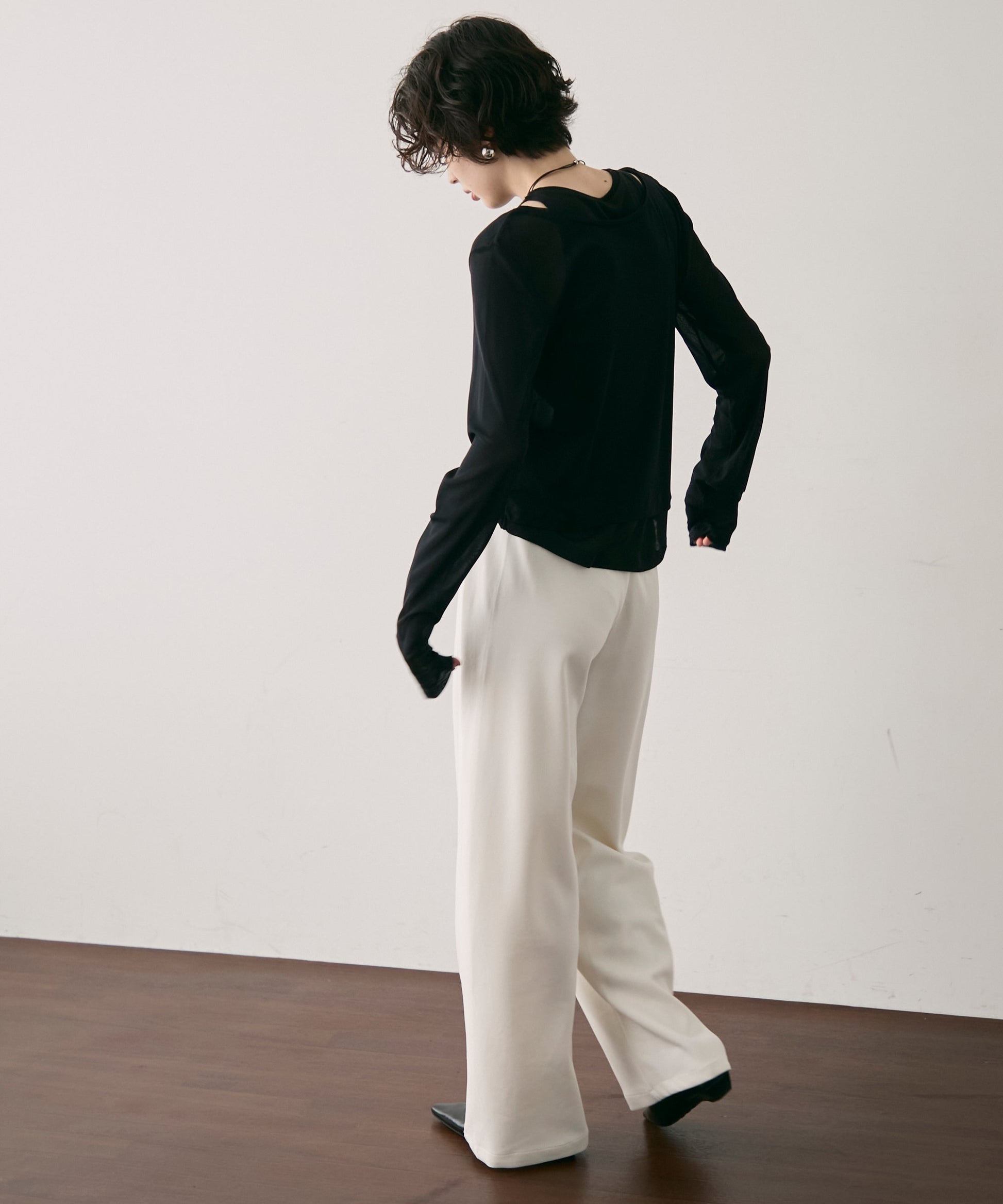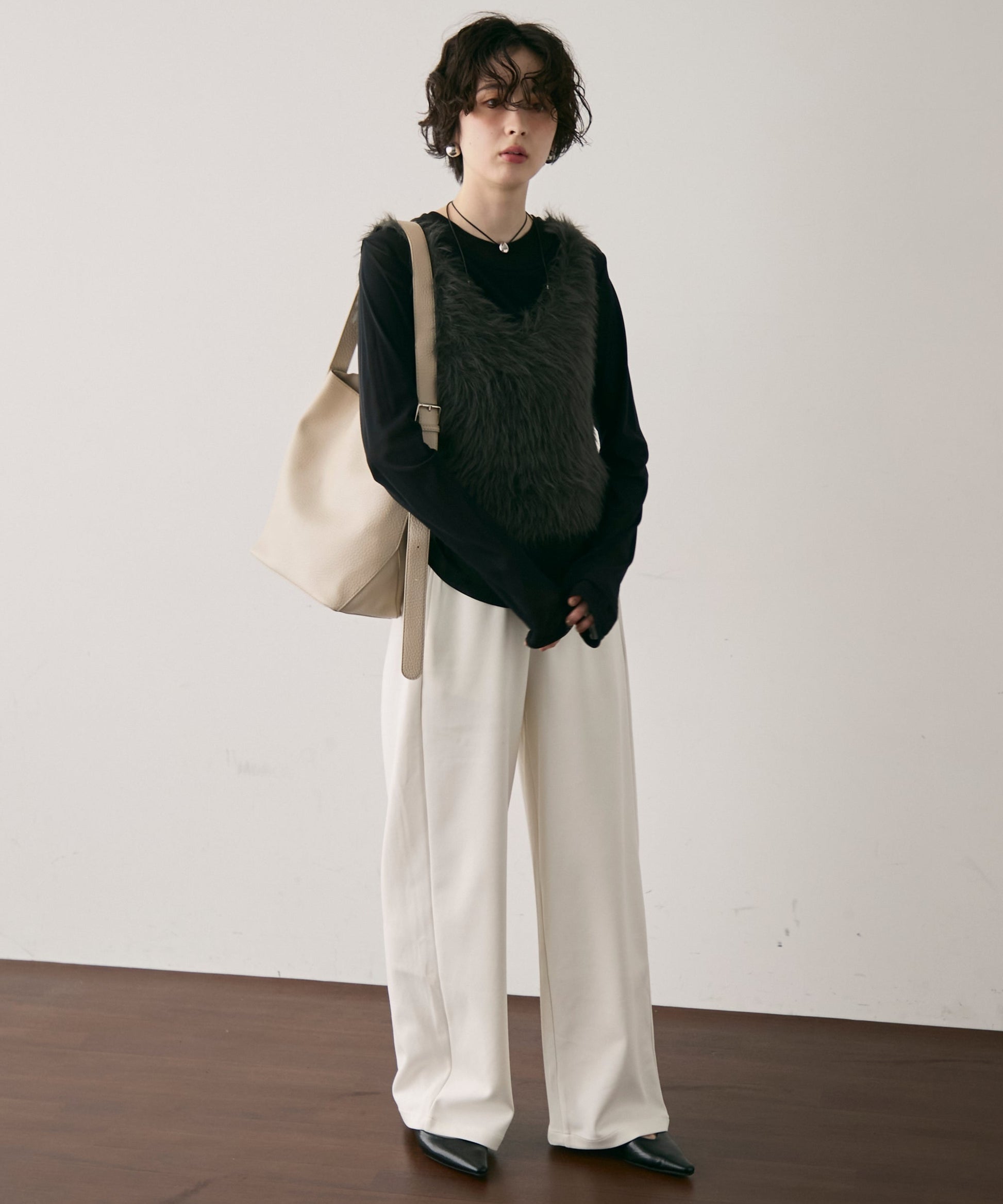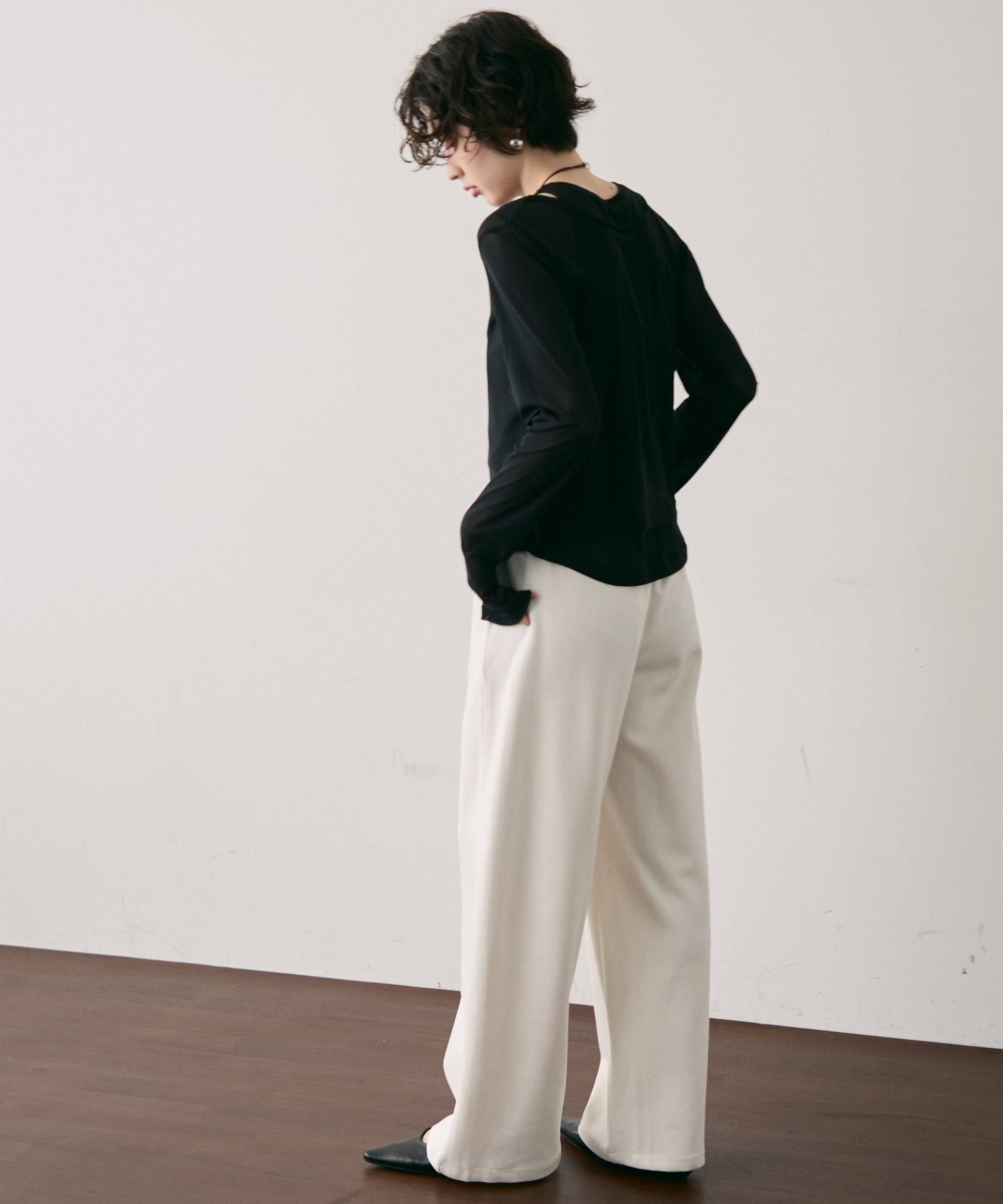 リラックス感のあるシルエットながら、すっきりとしたラインで大人カジュアルに着こなせます。