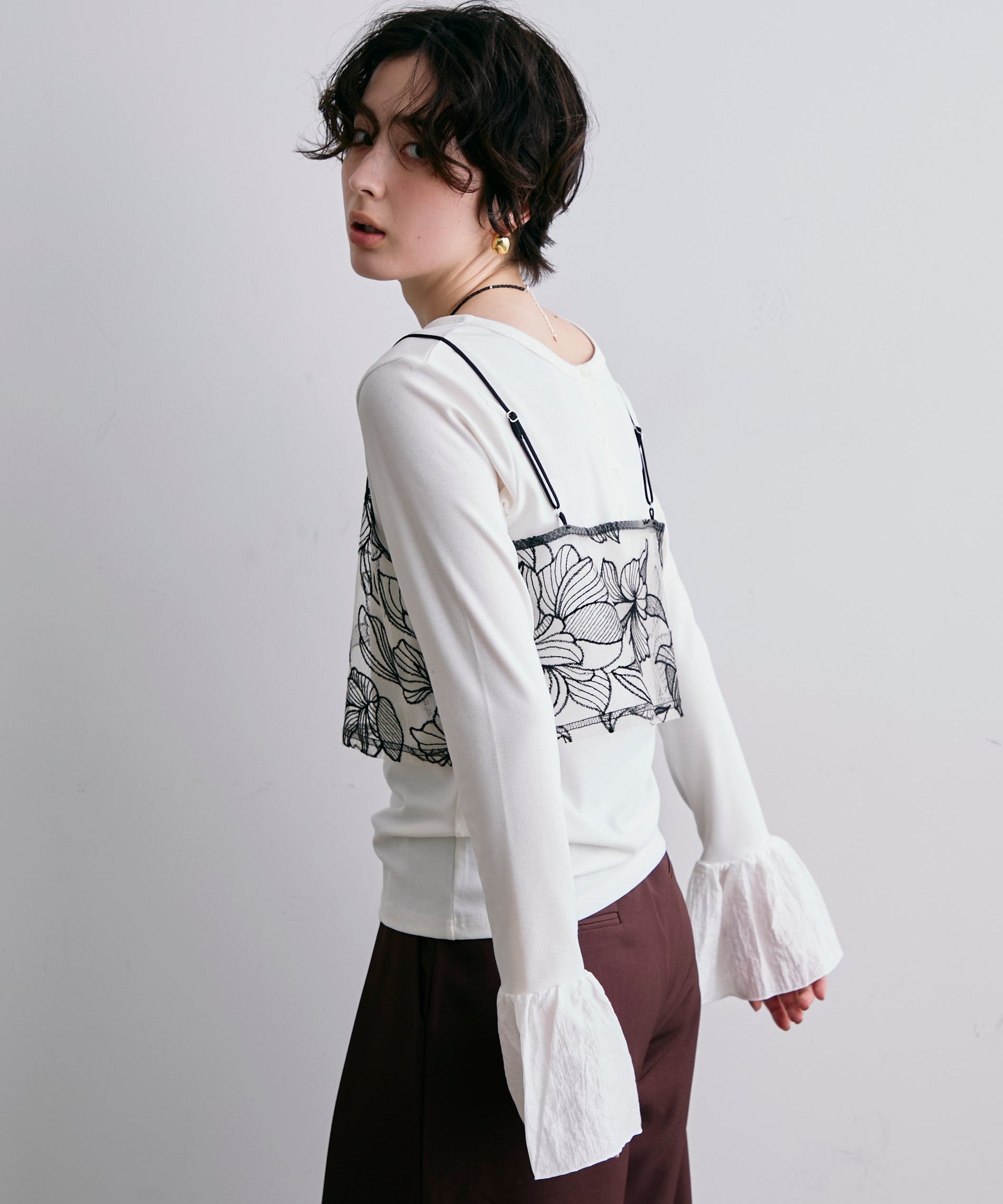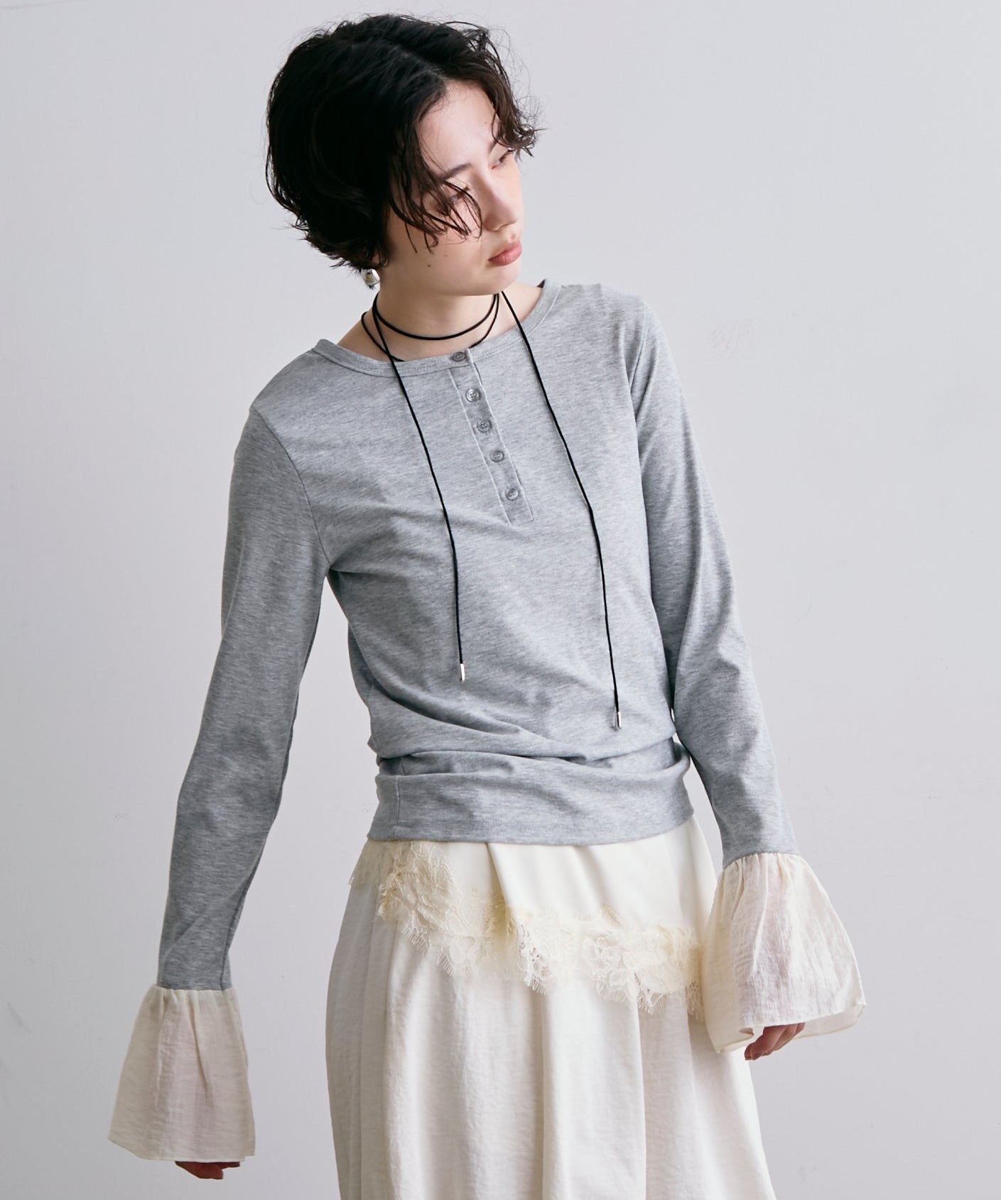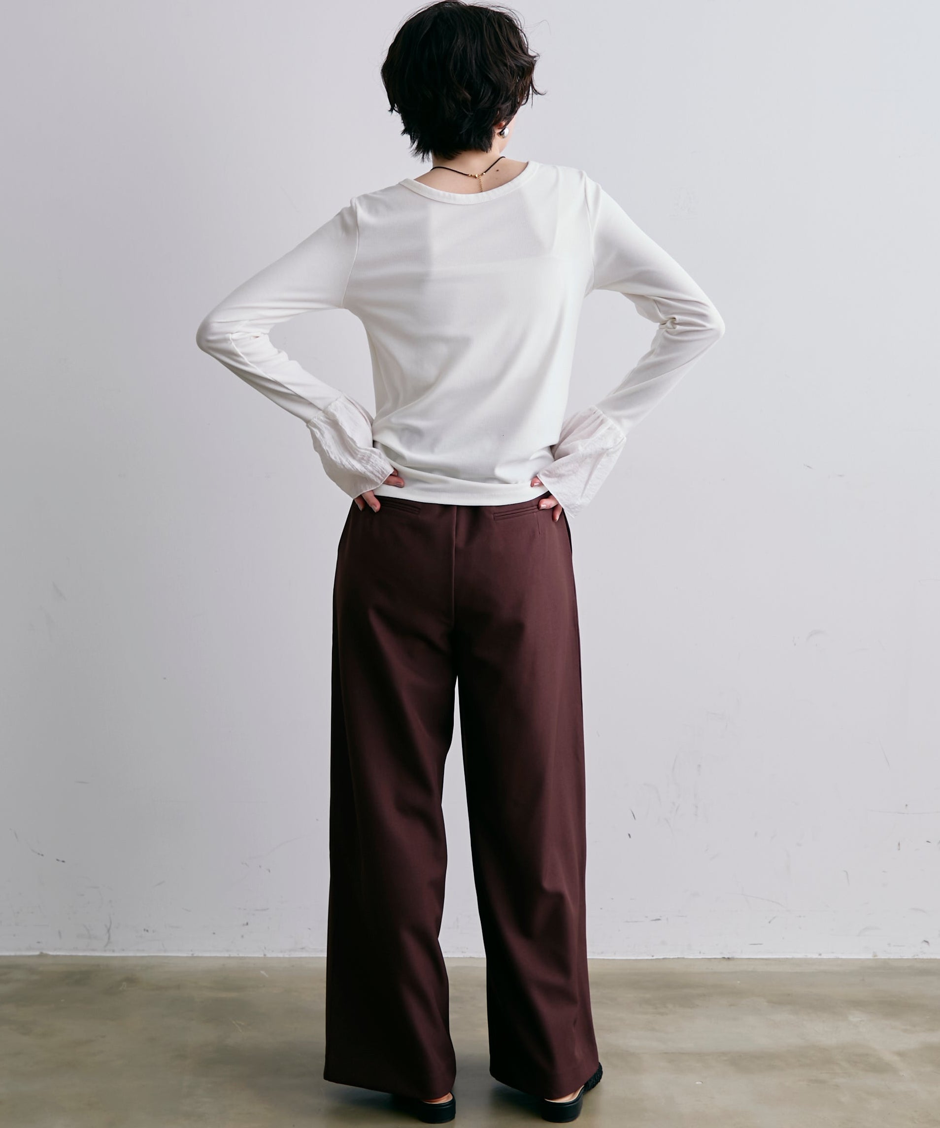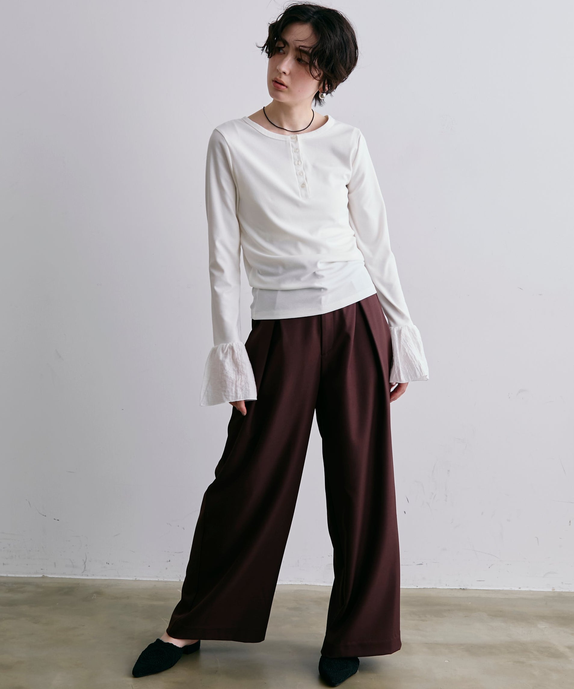 袖口にあしらったフリルデザインが、カジュアルな中にもさりげないフェミニンさをプラスします。