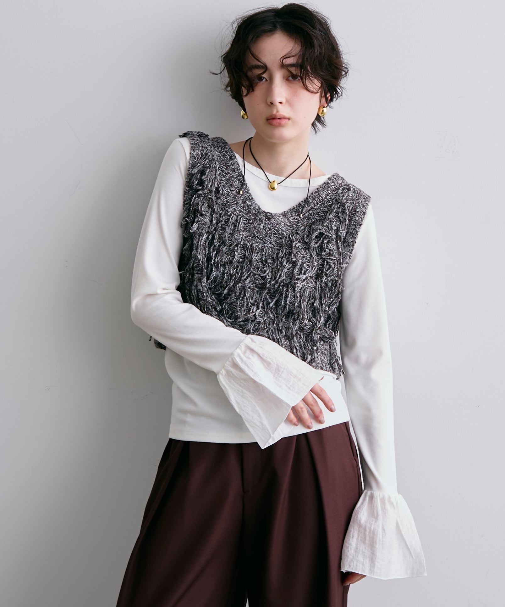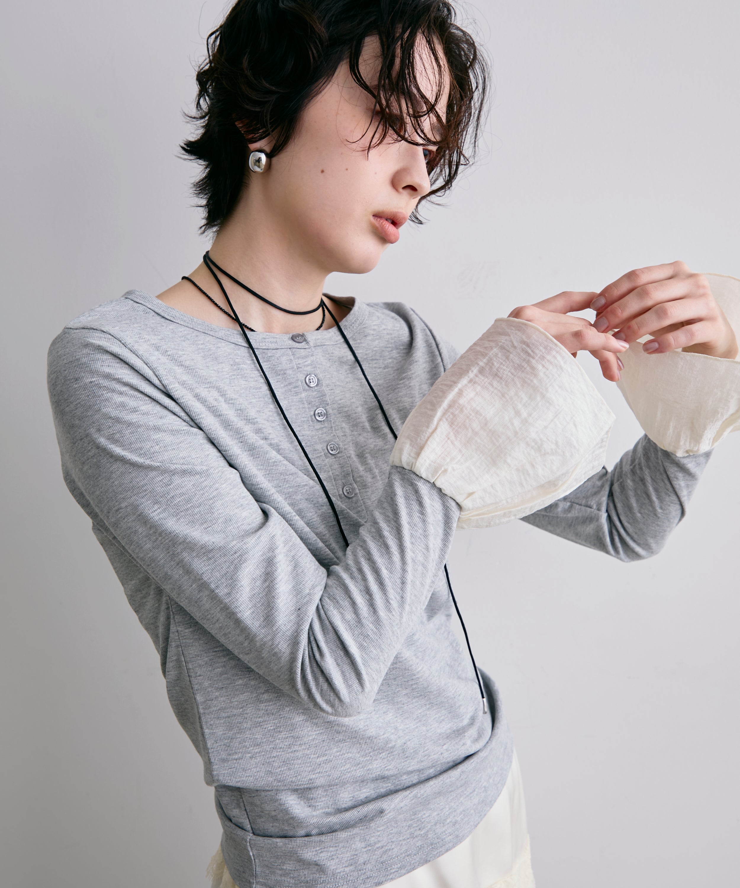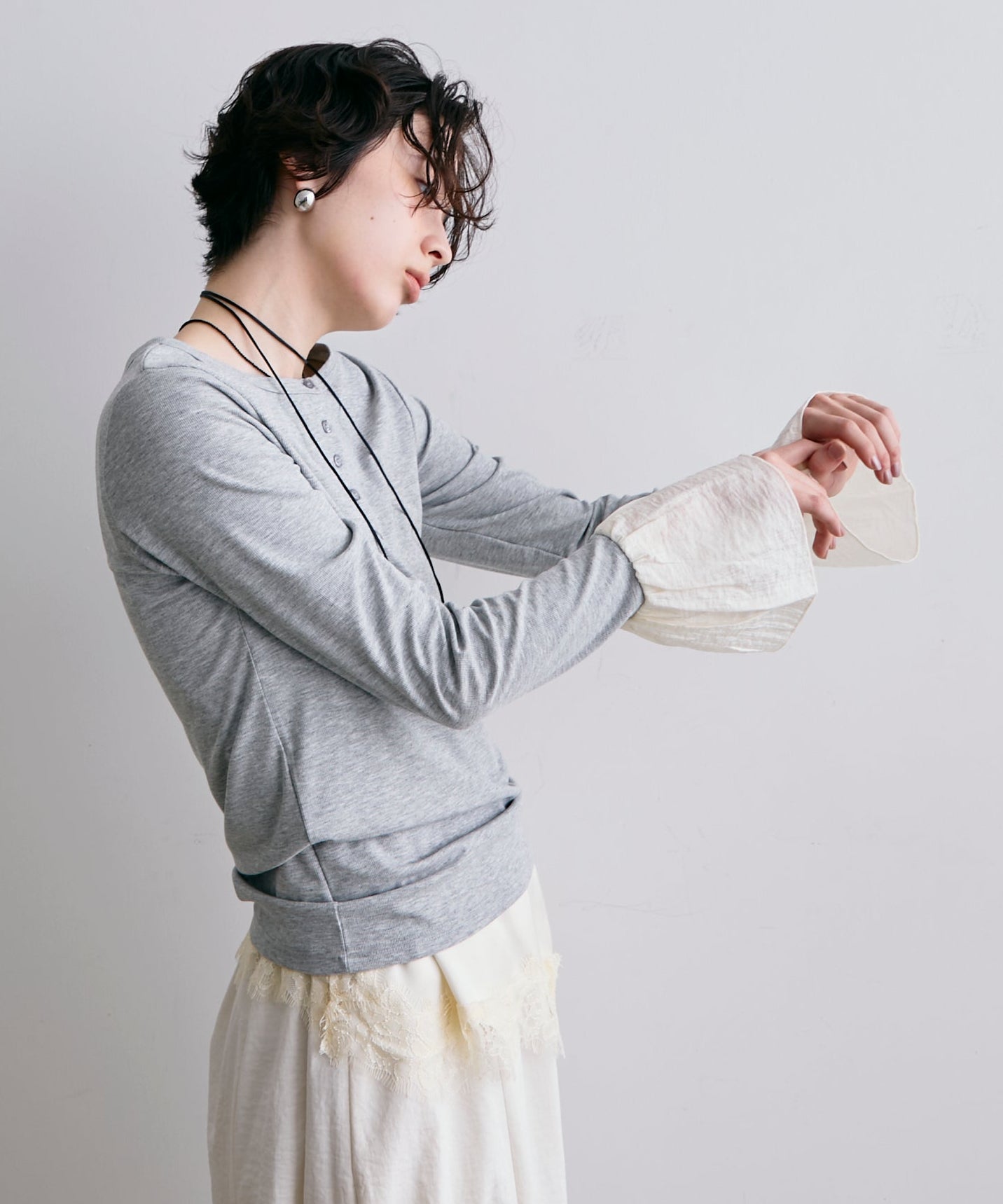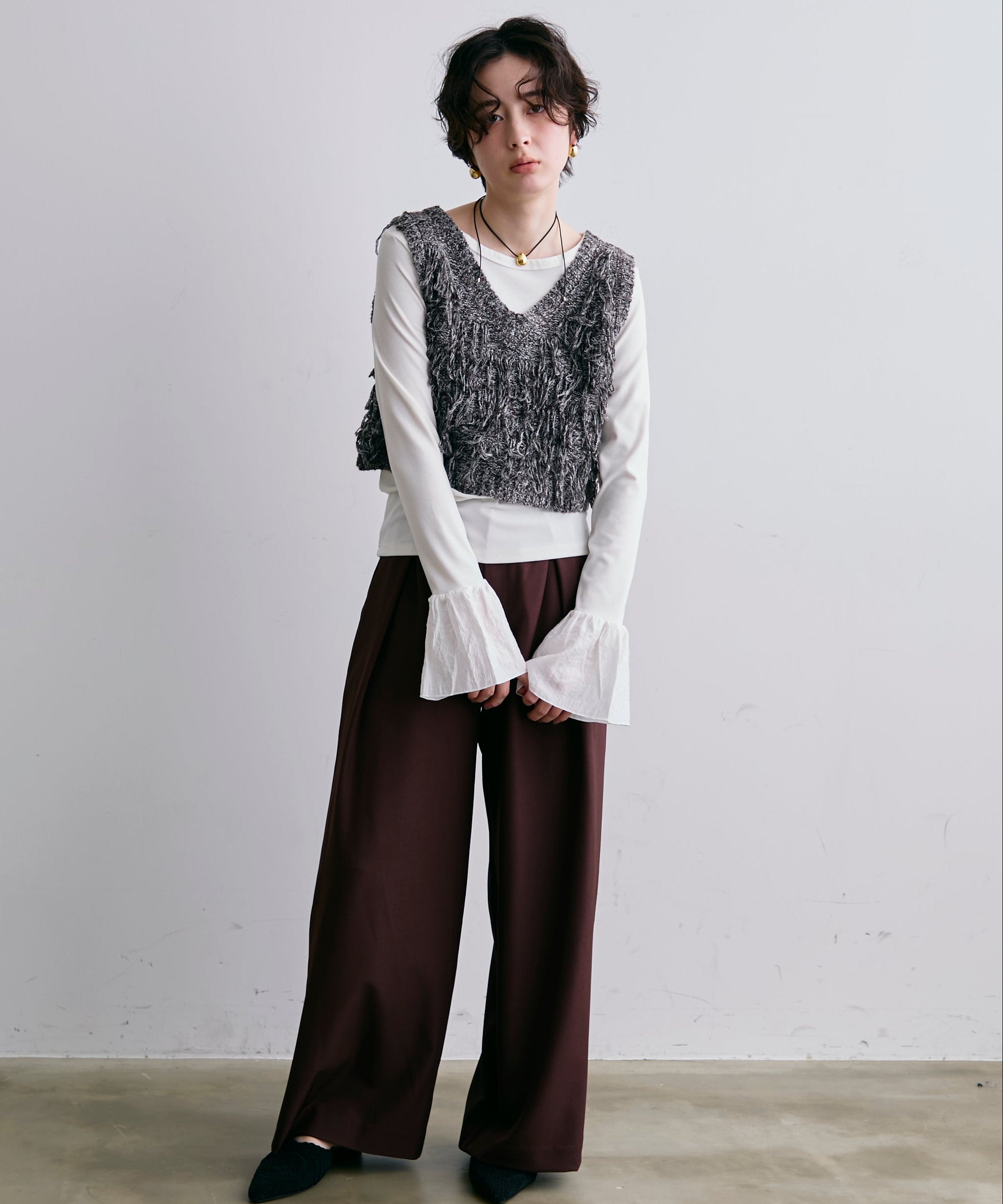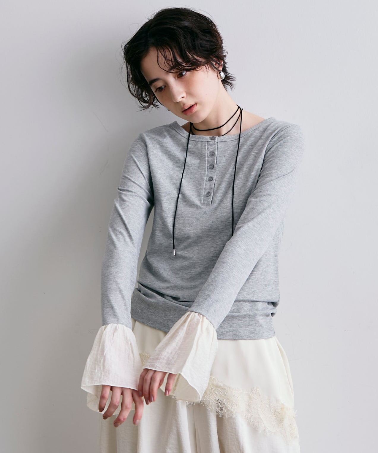 袖口にあしらったフリルデザインが、カジュアルな中にもさりげないフェミニンさをプラスします。
