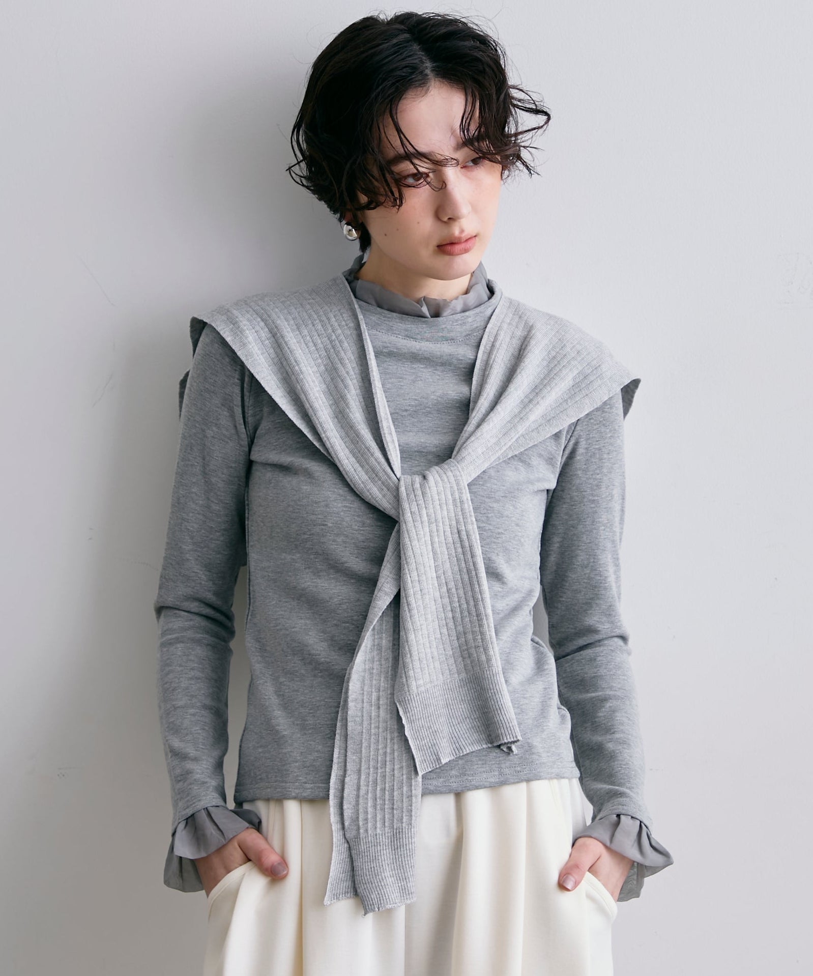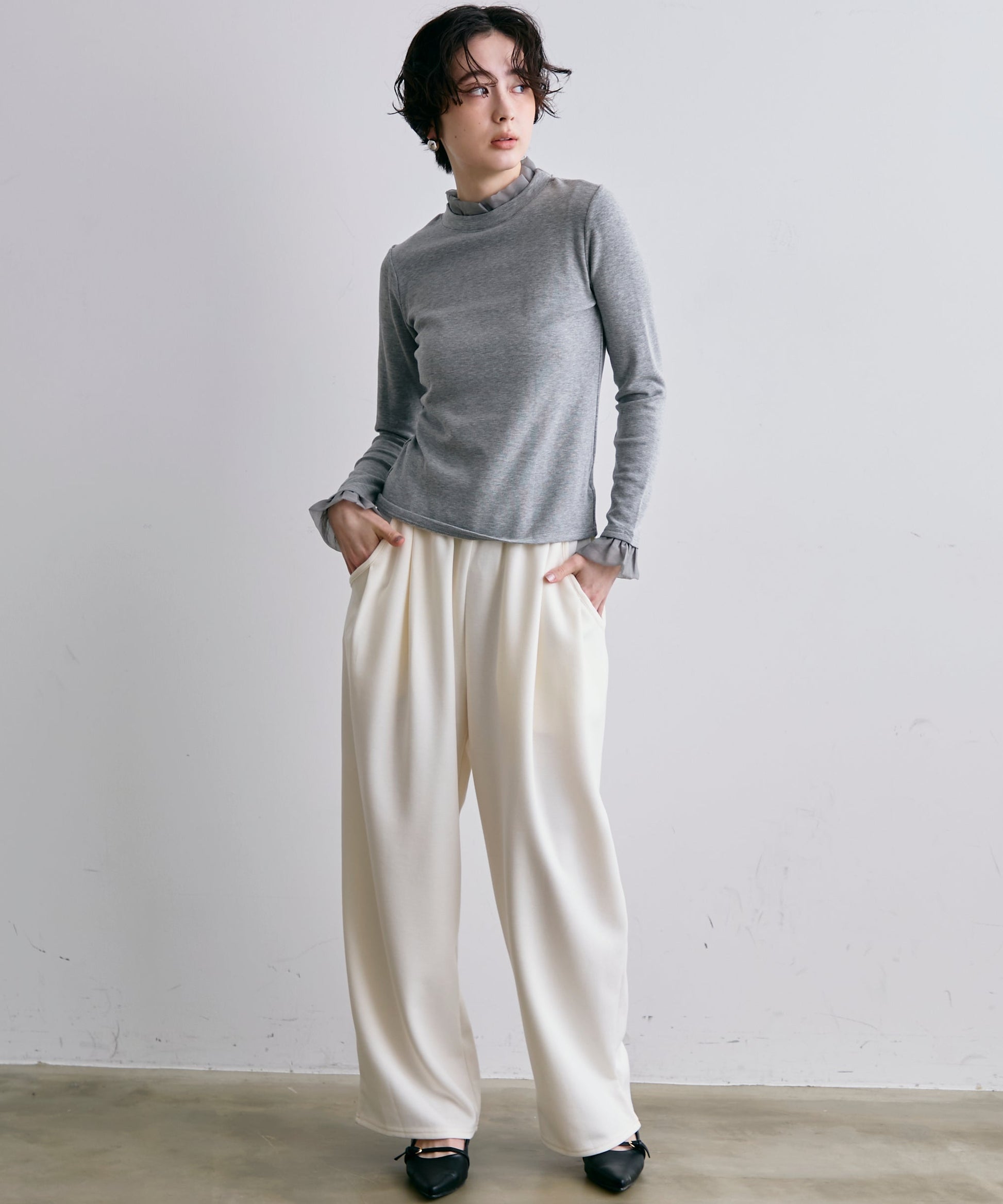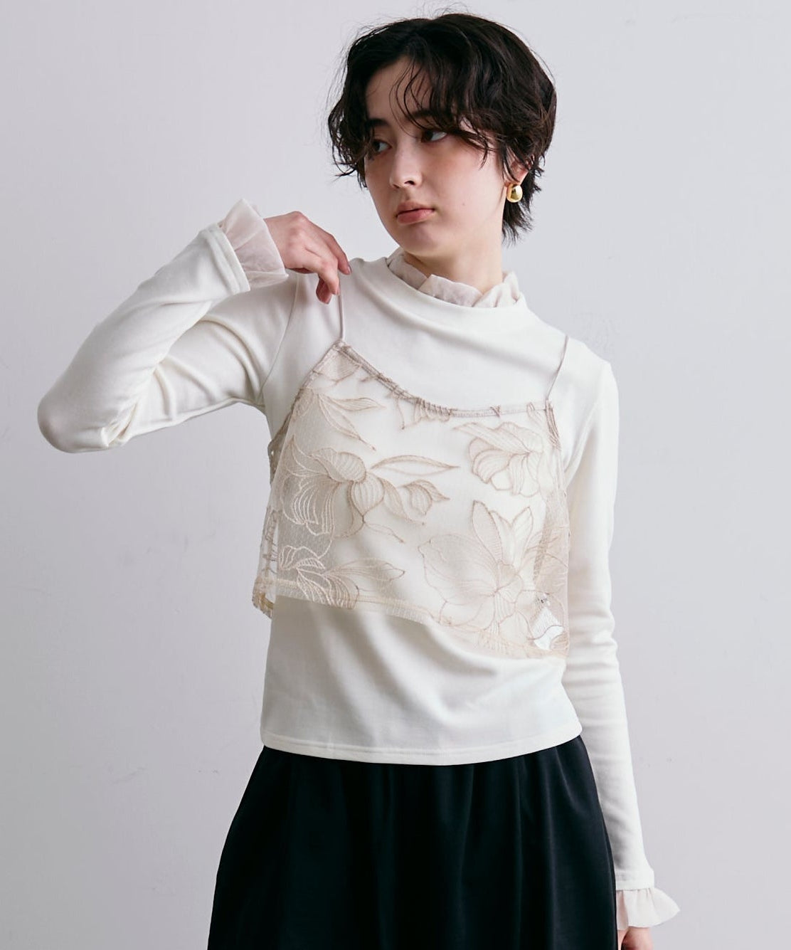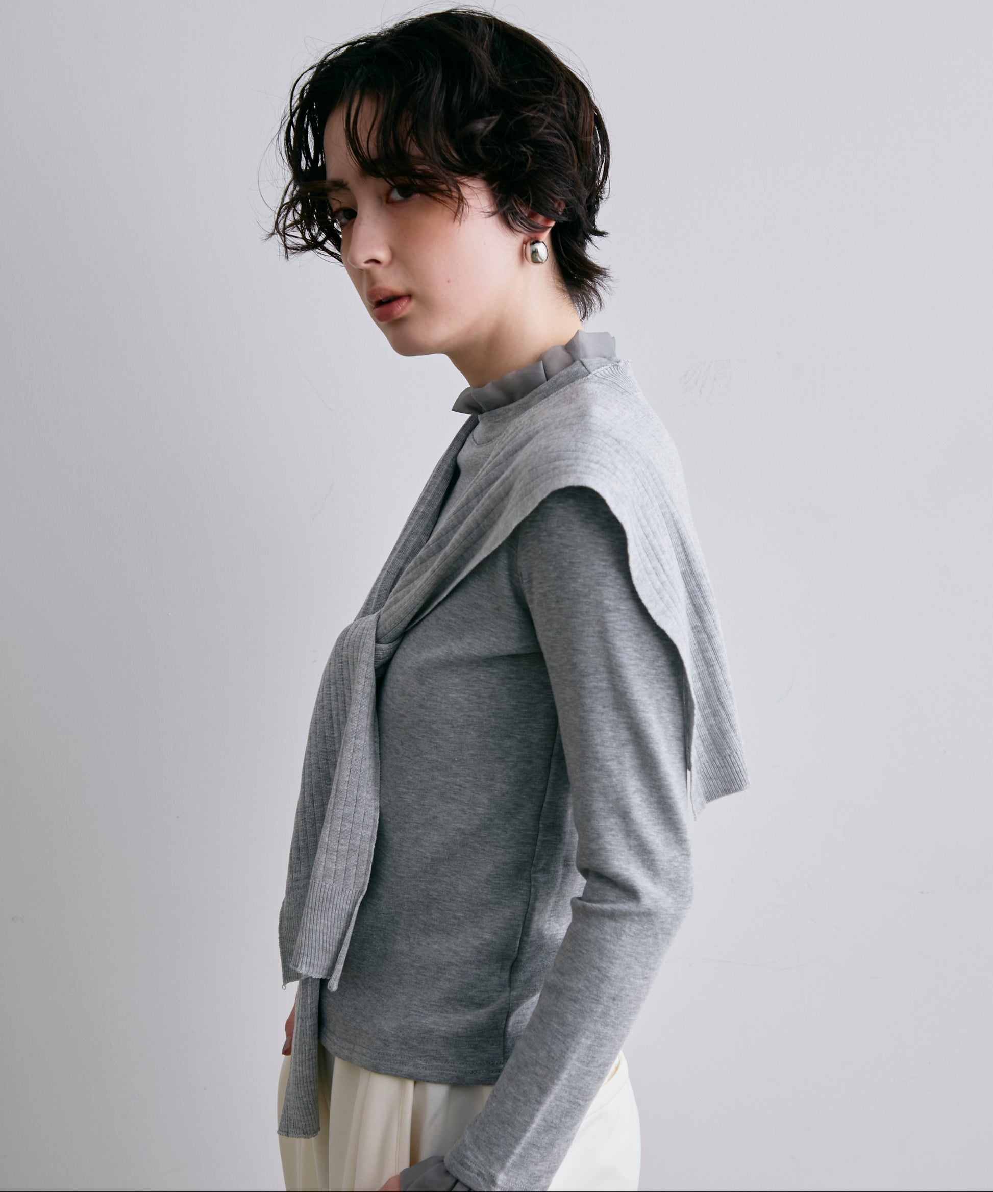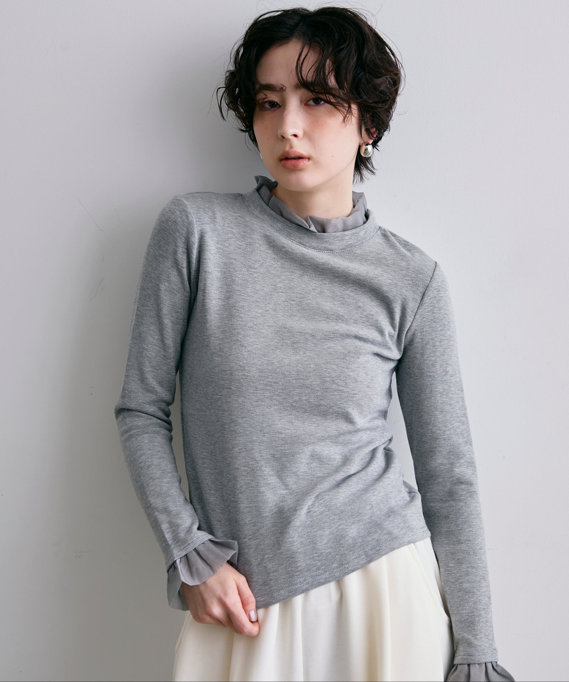 オーガンジーフリルレイヤード風カットソー