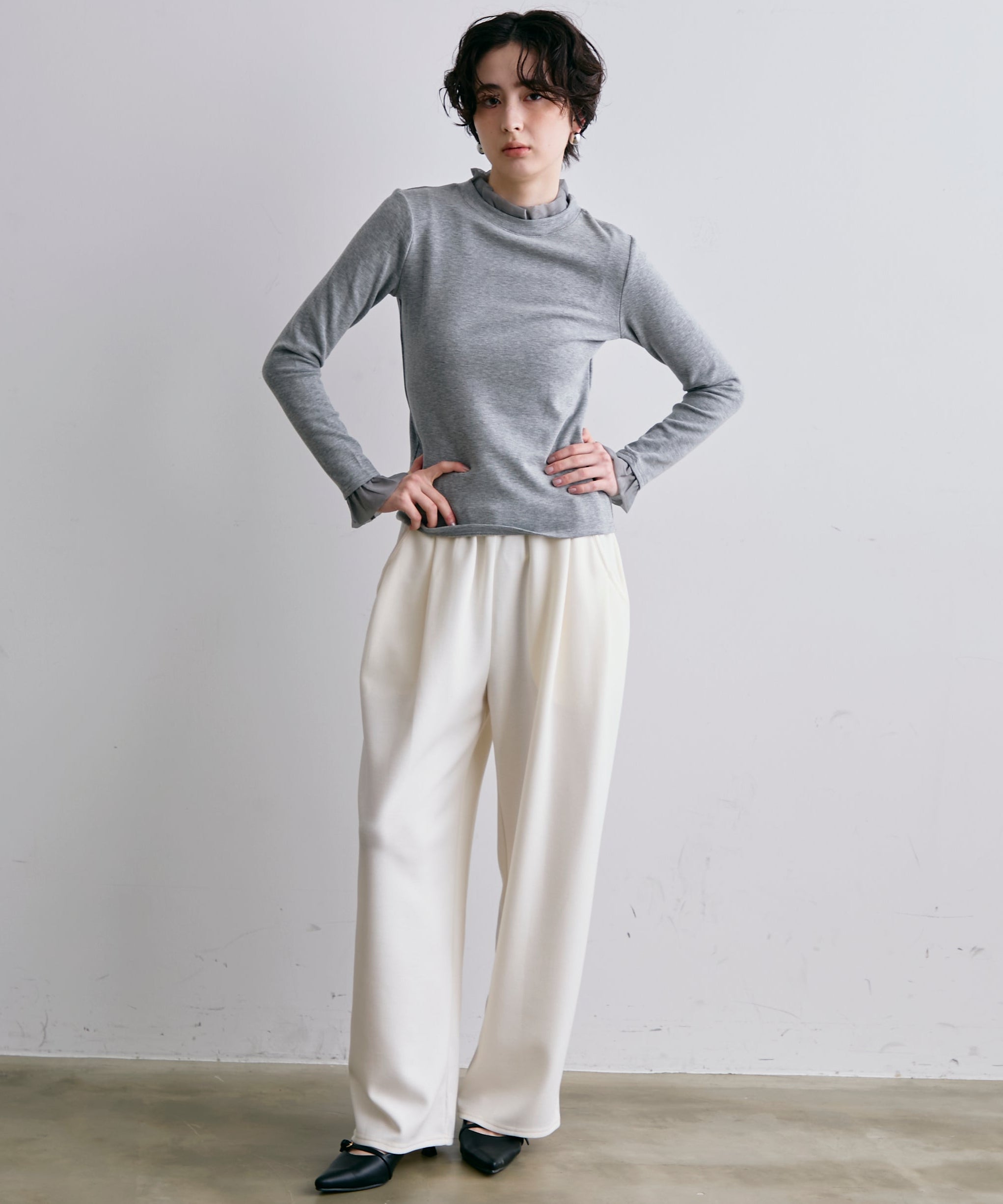 デイリーからお出かけまで、女性らしさを引き立てる万能トップスです。