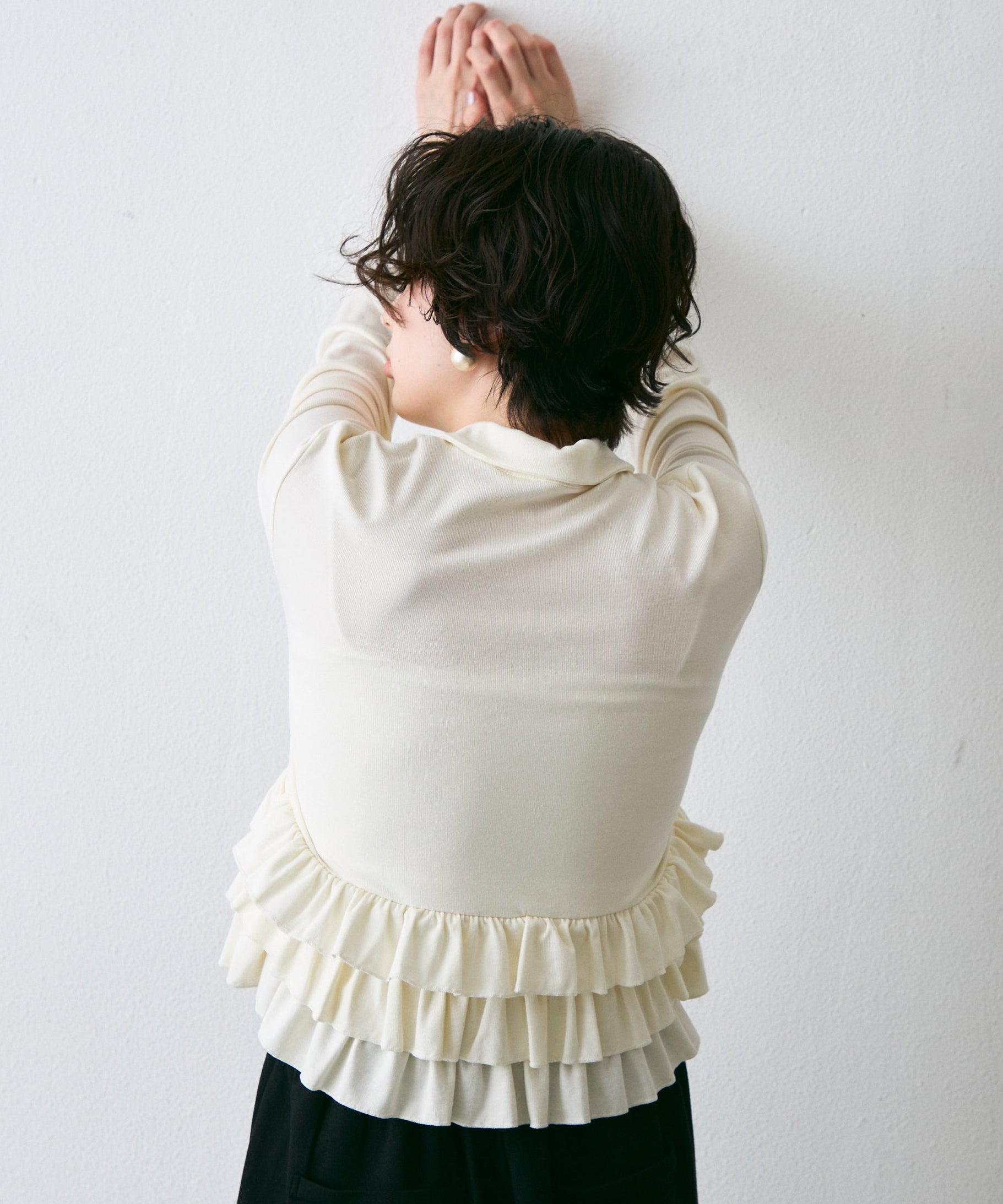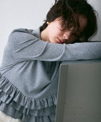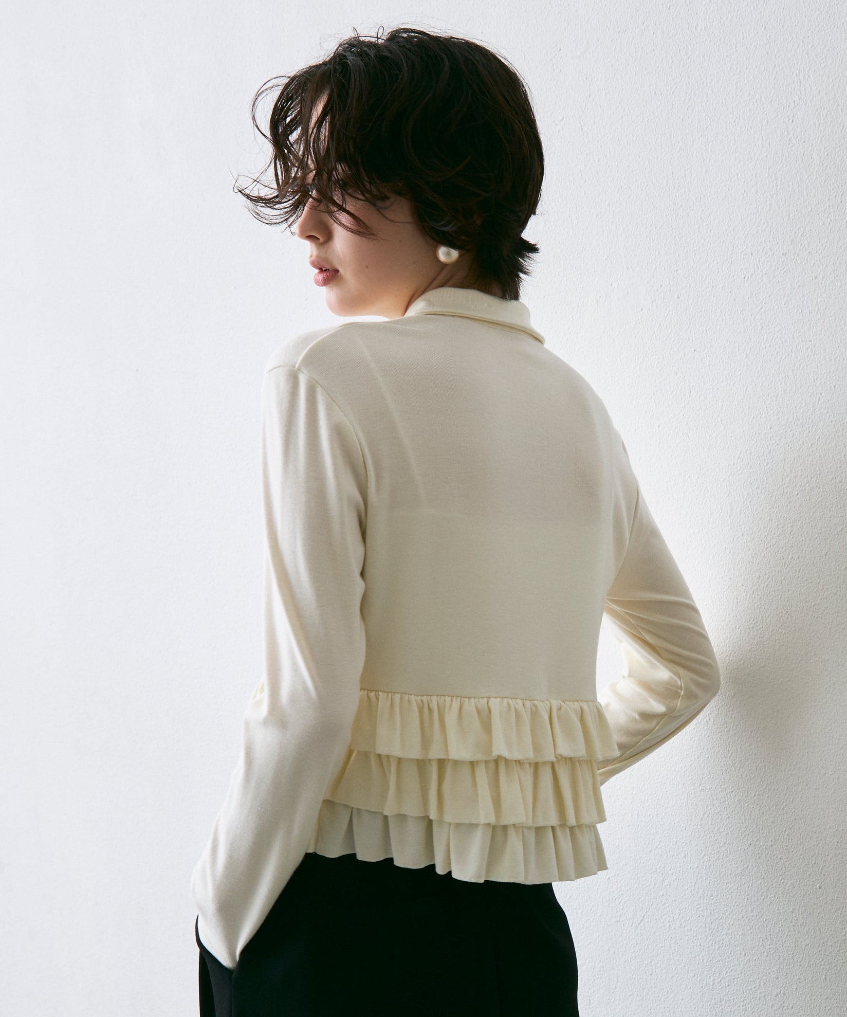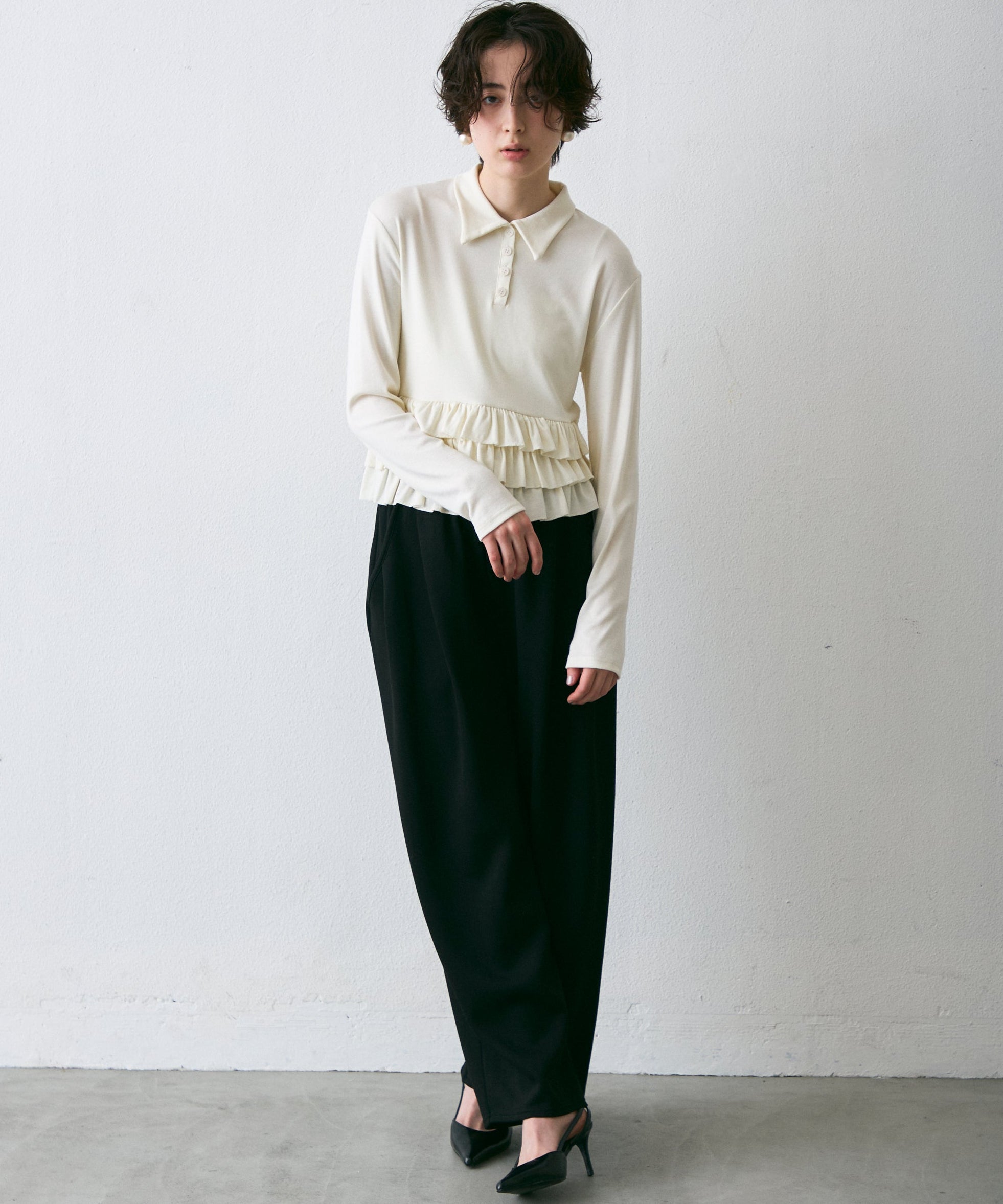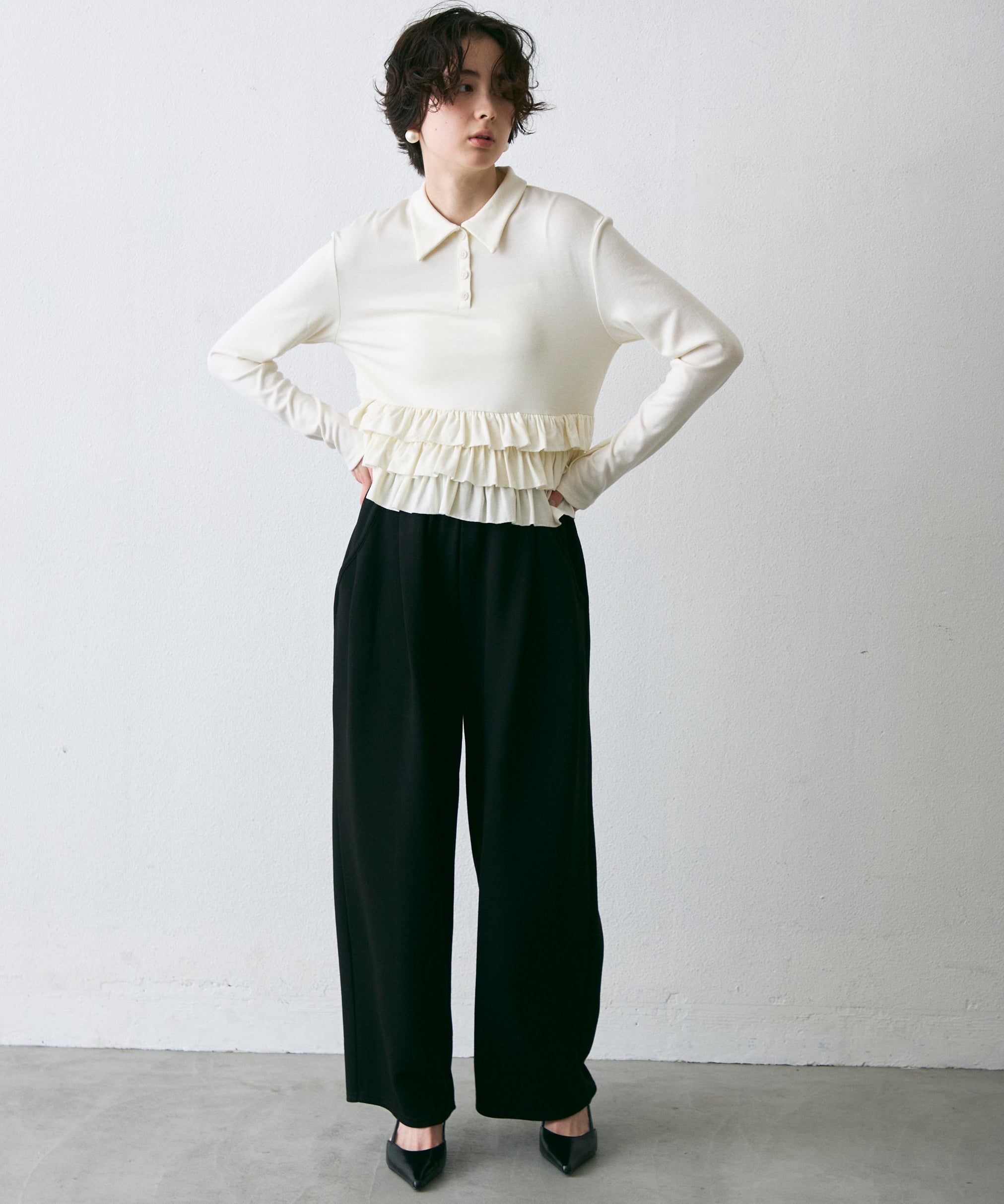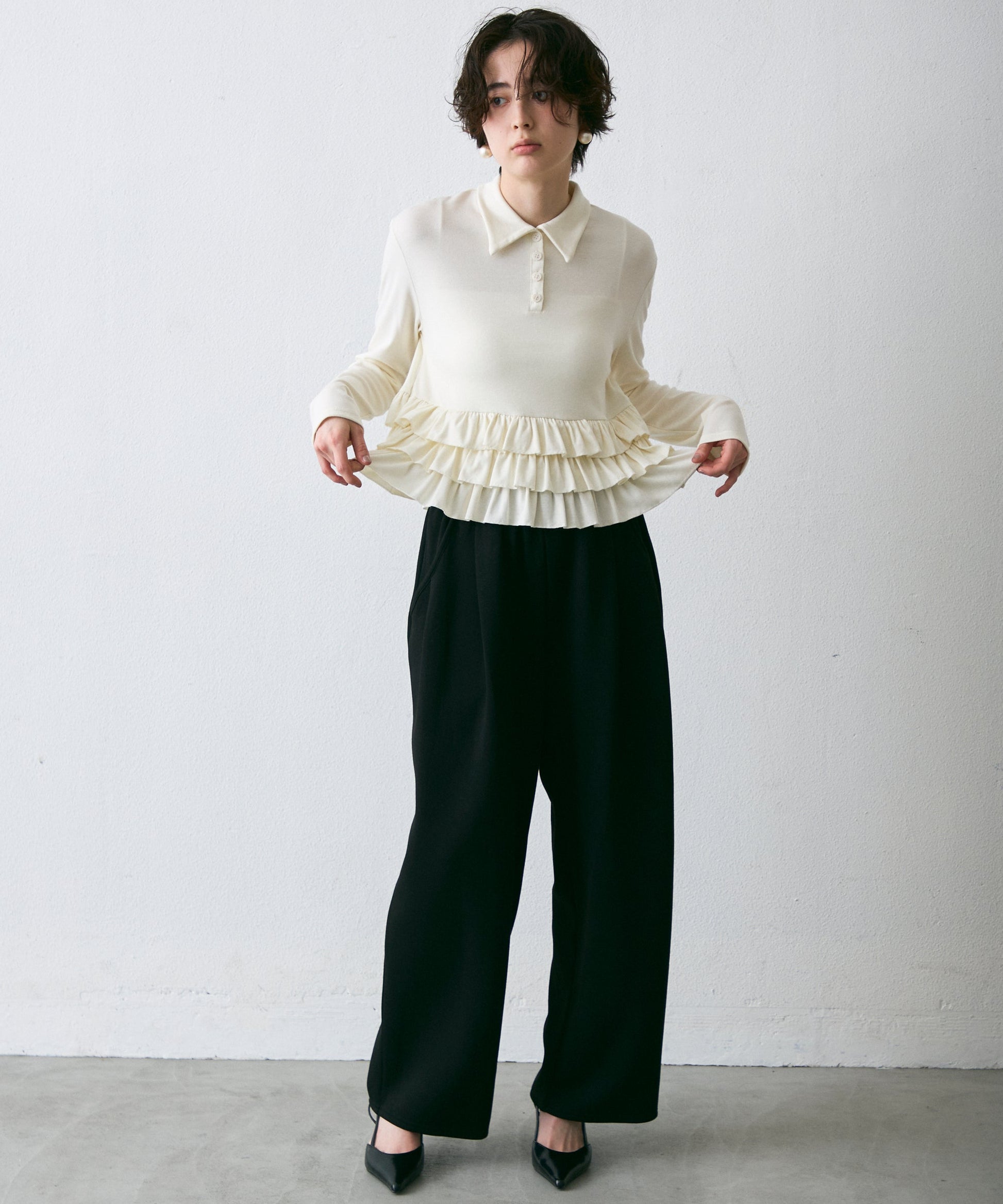 フライス裾フリルポロカラープルオーバー
