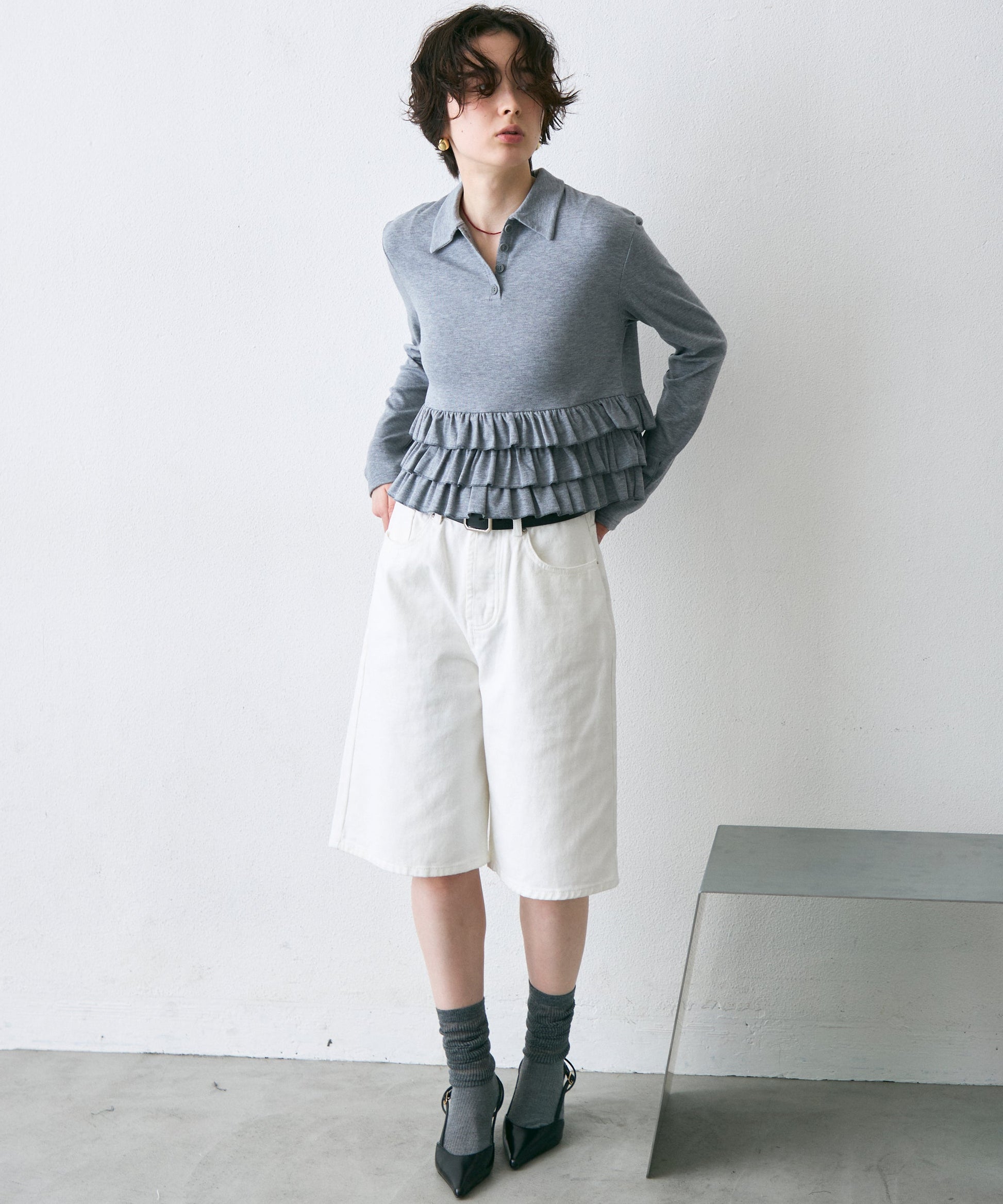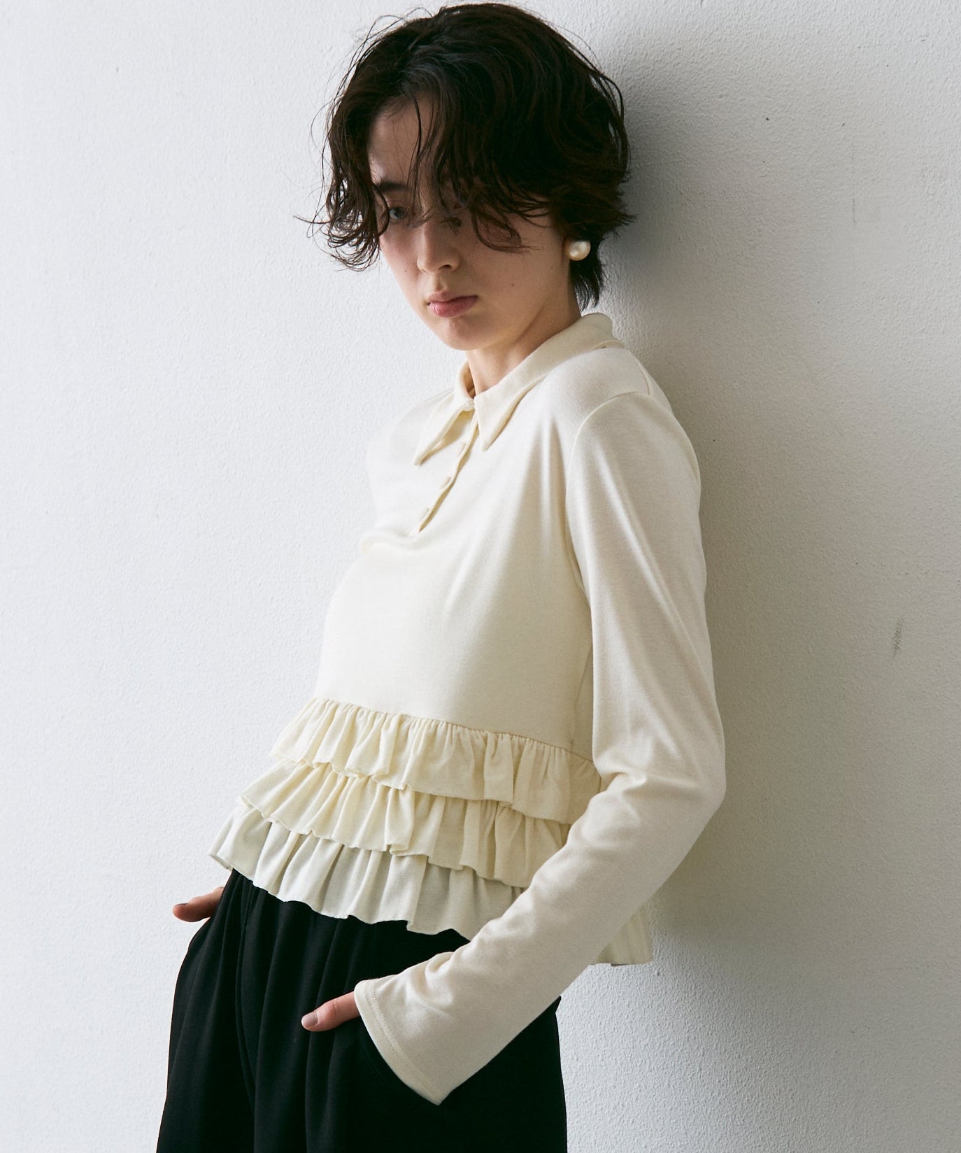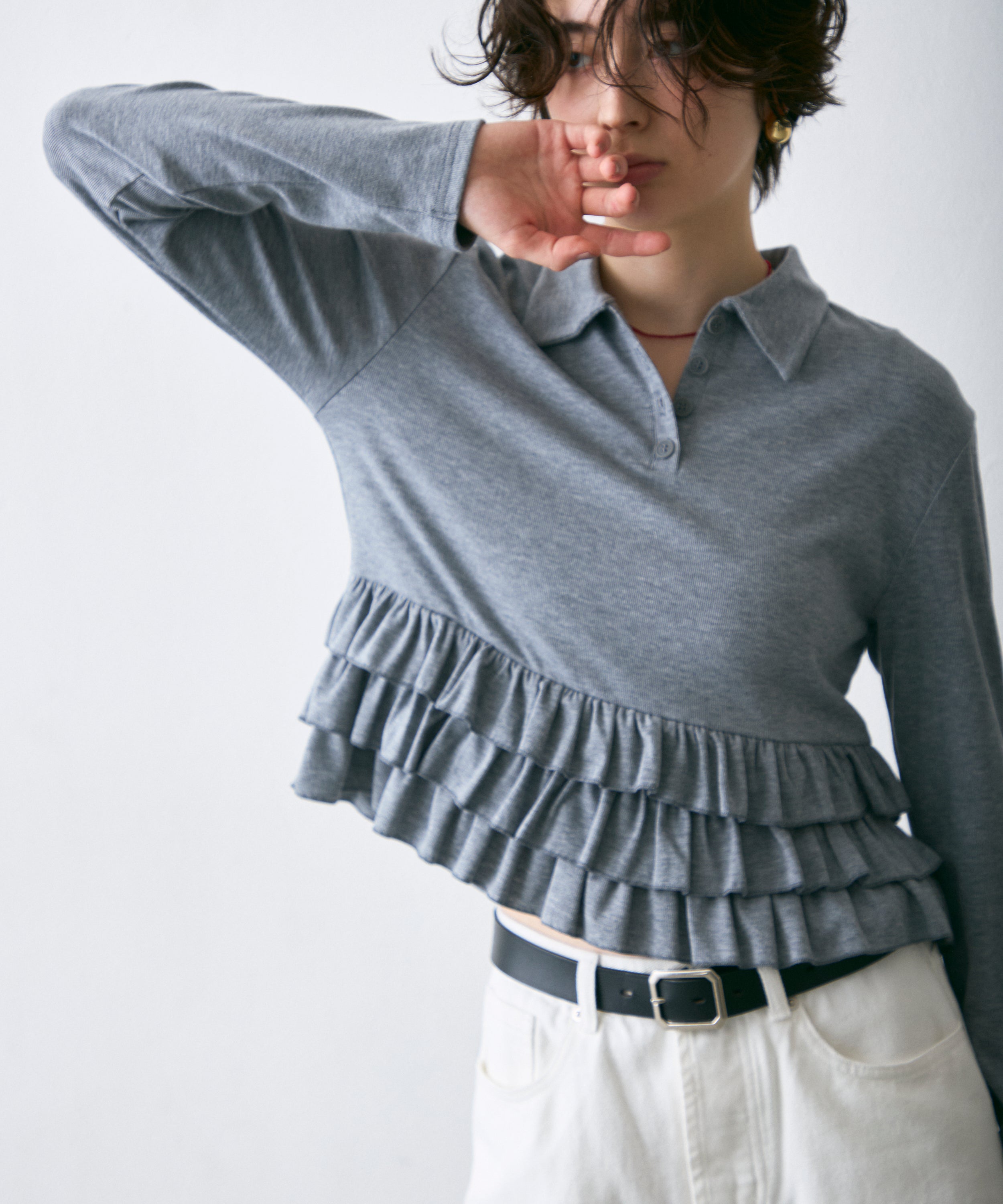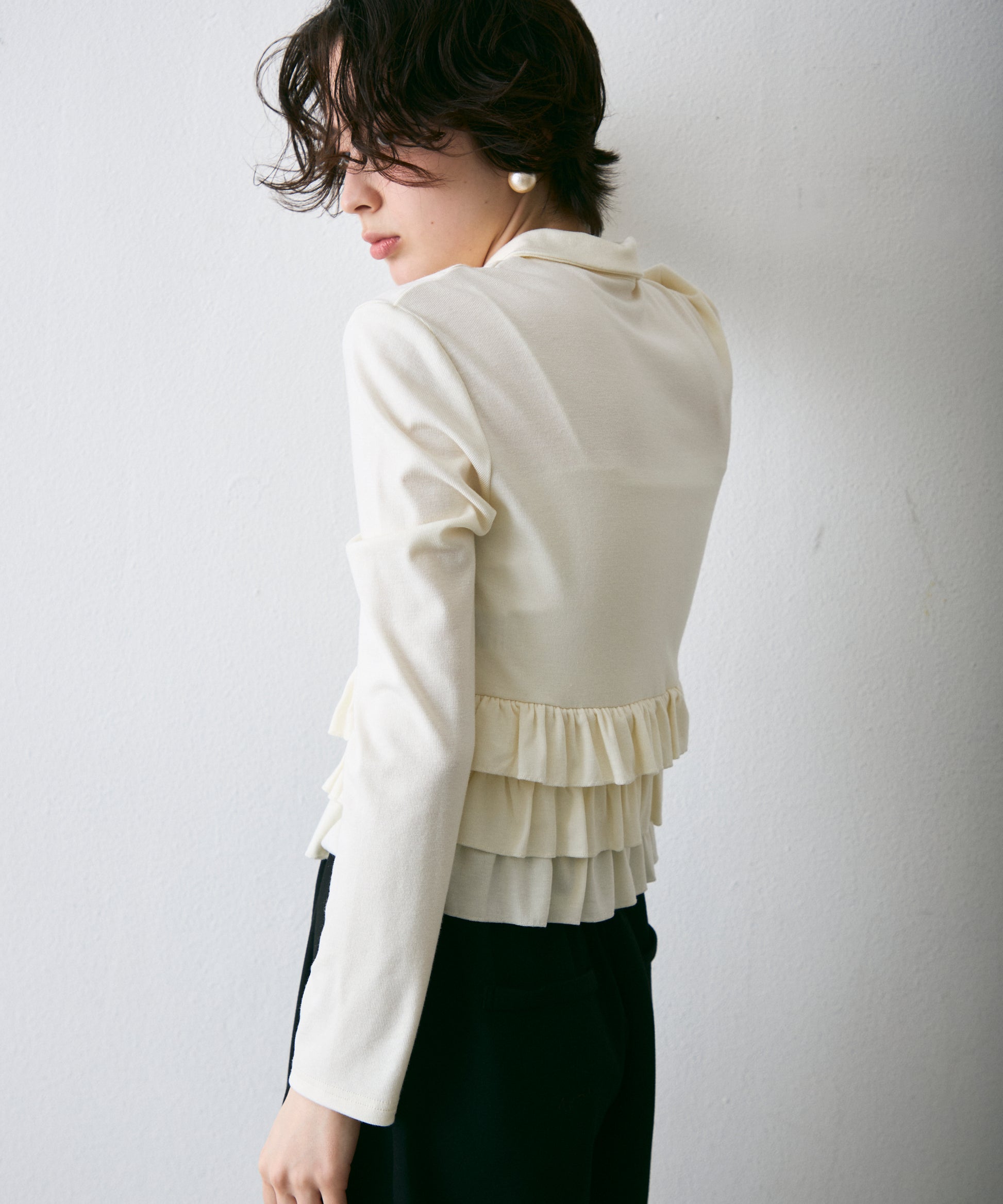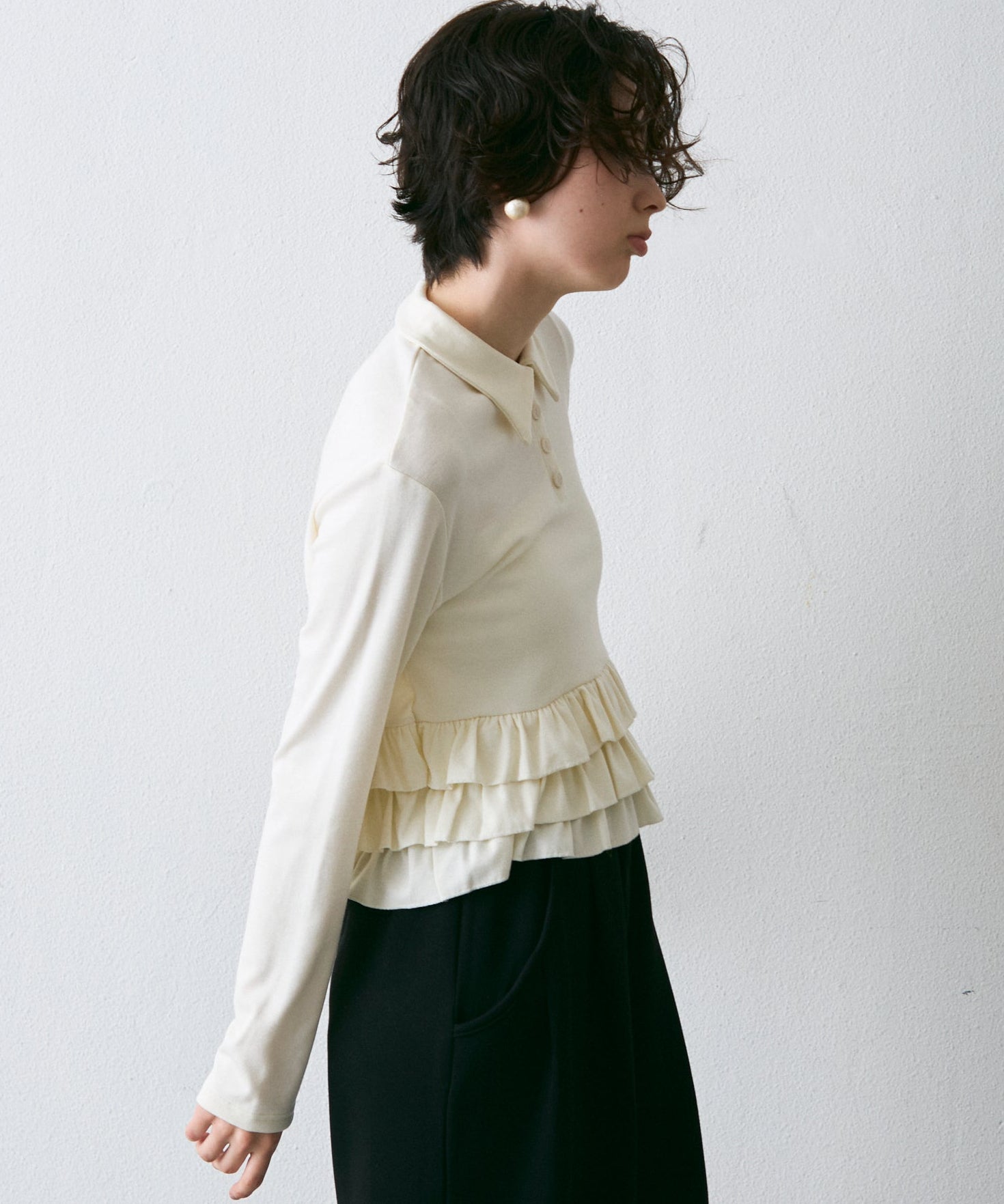 フライス裾フリルポロカラープルオーバー