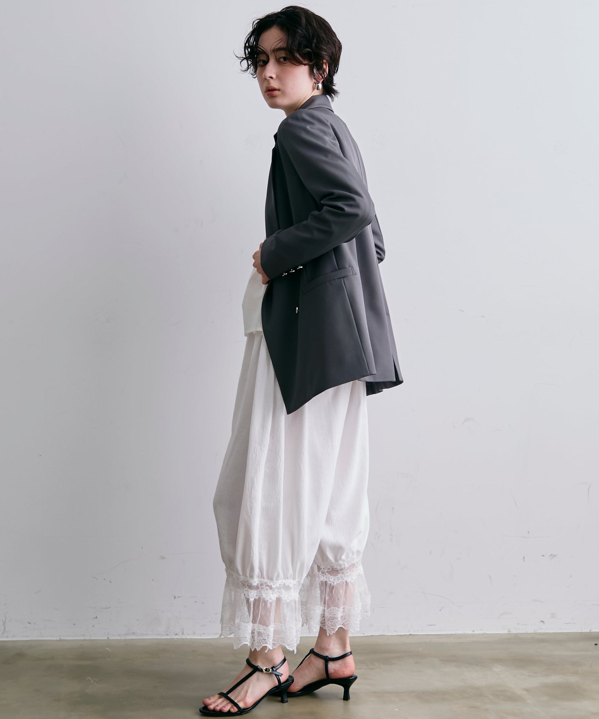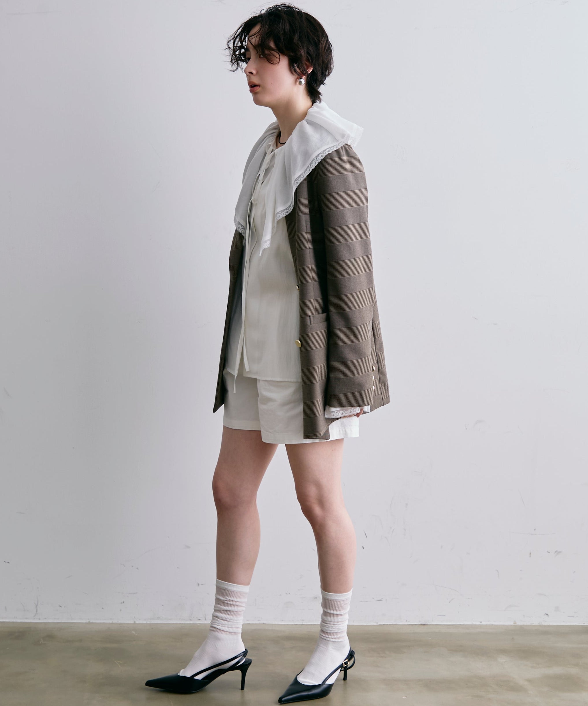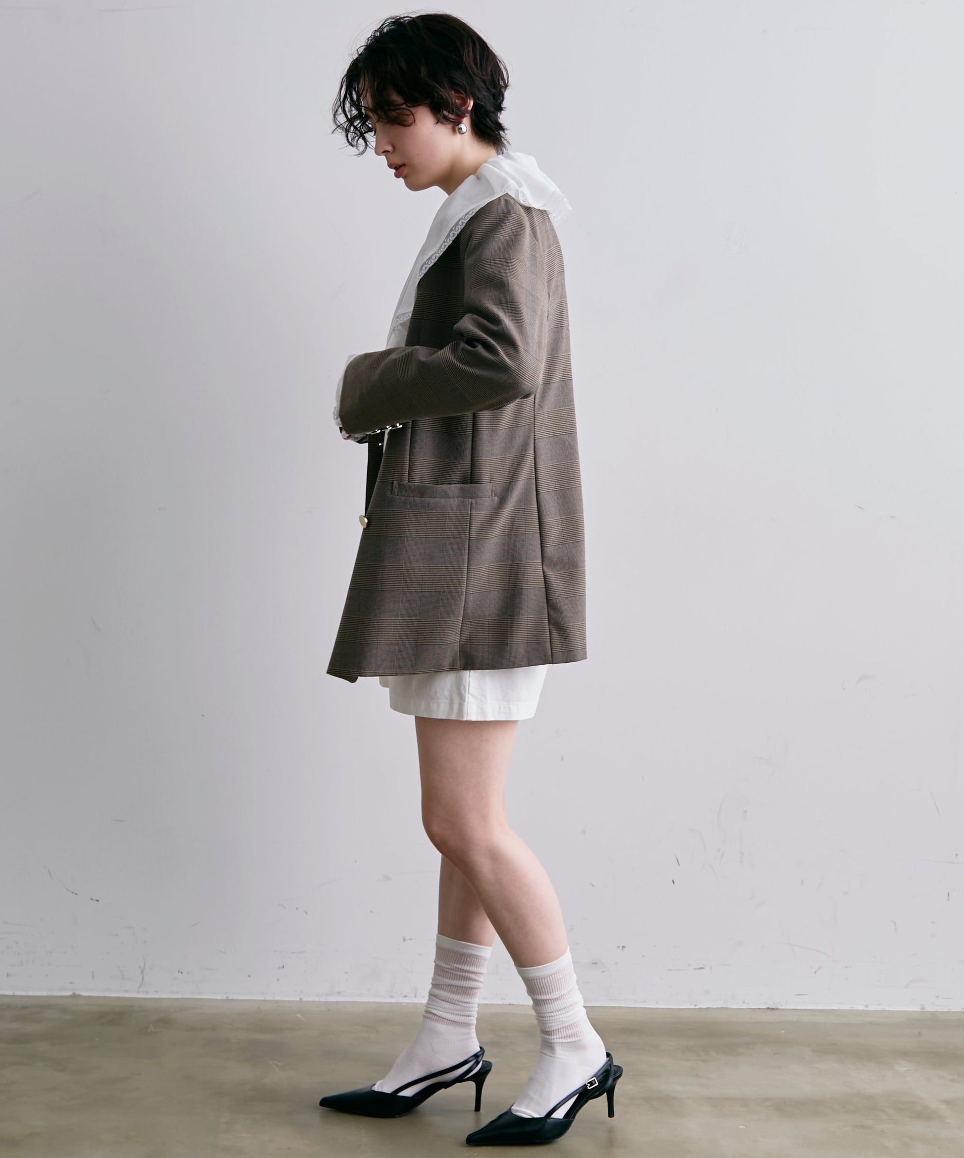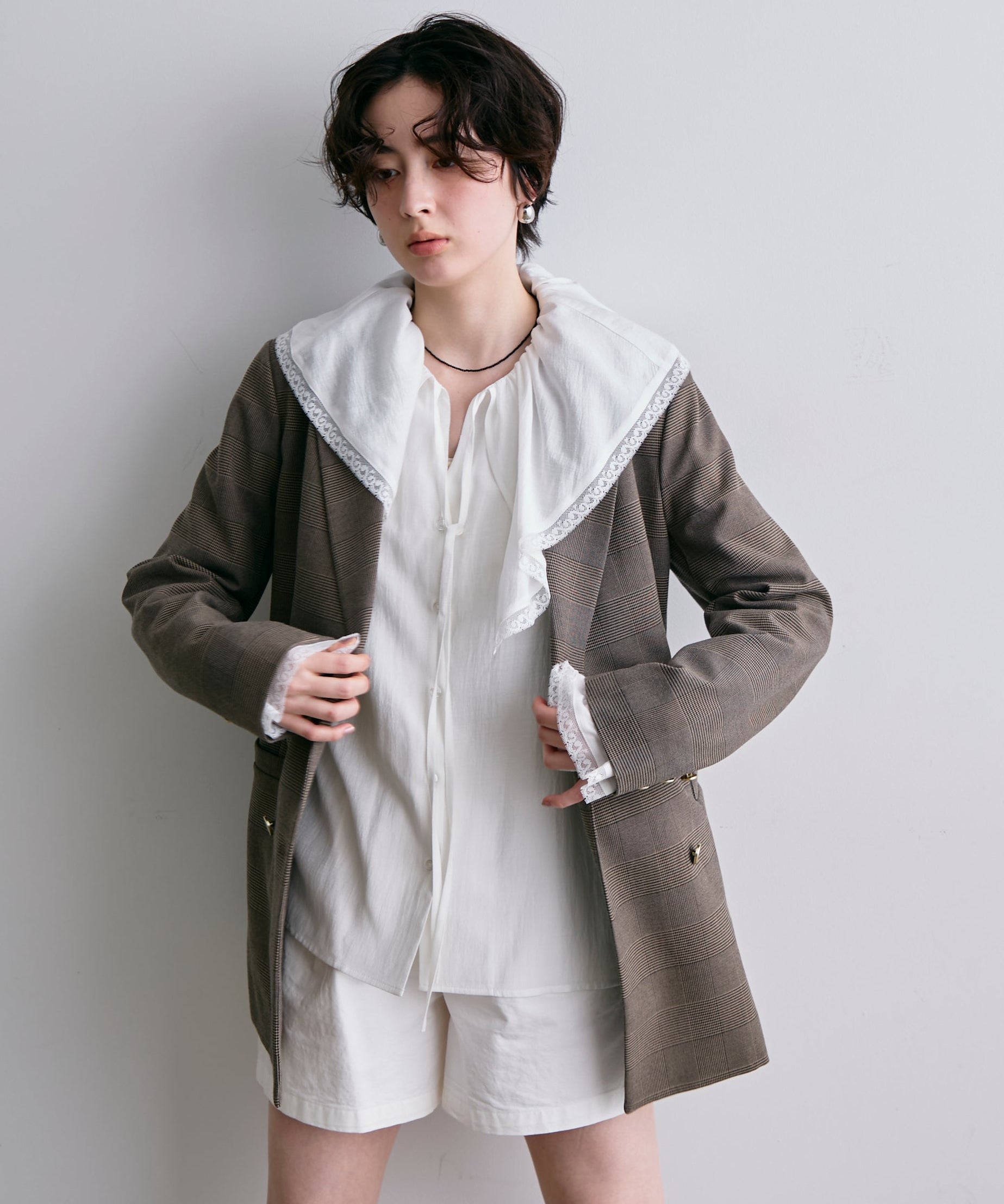 ゴールドボタンがアクセントをプラスするダブルテーラードジャケット