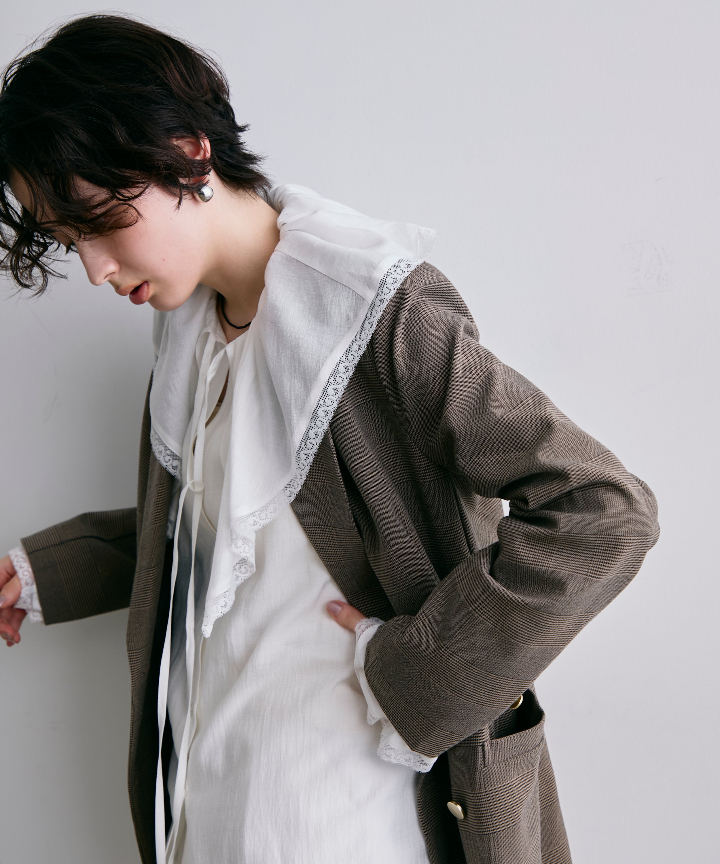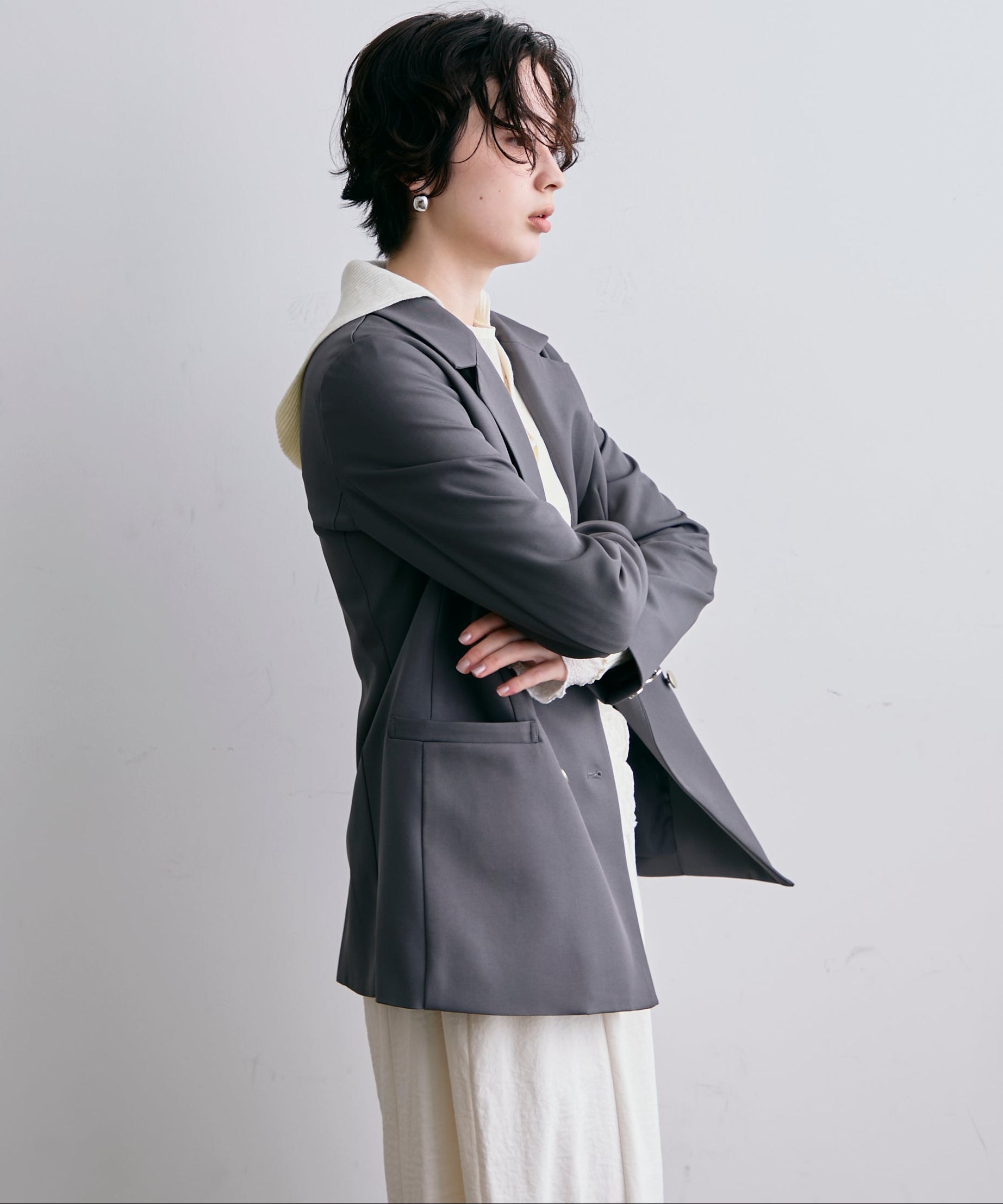ダブルブレストがクラシカルな雰囲気のテーラードジャケット。