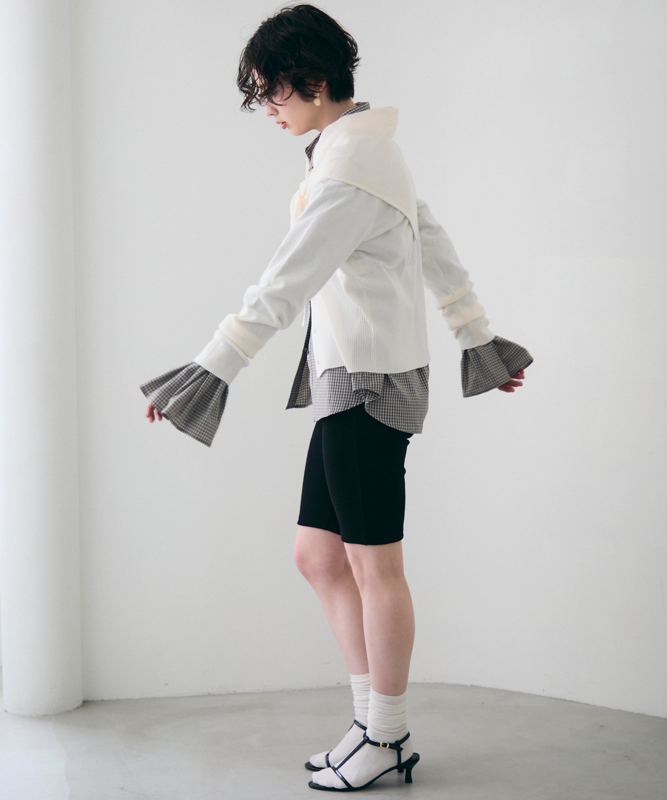 裾や袖口はリブの分量を増やし、さりげないメリハリを。