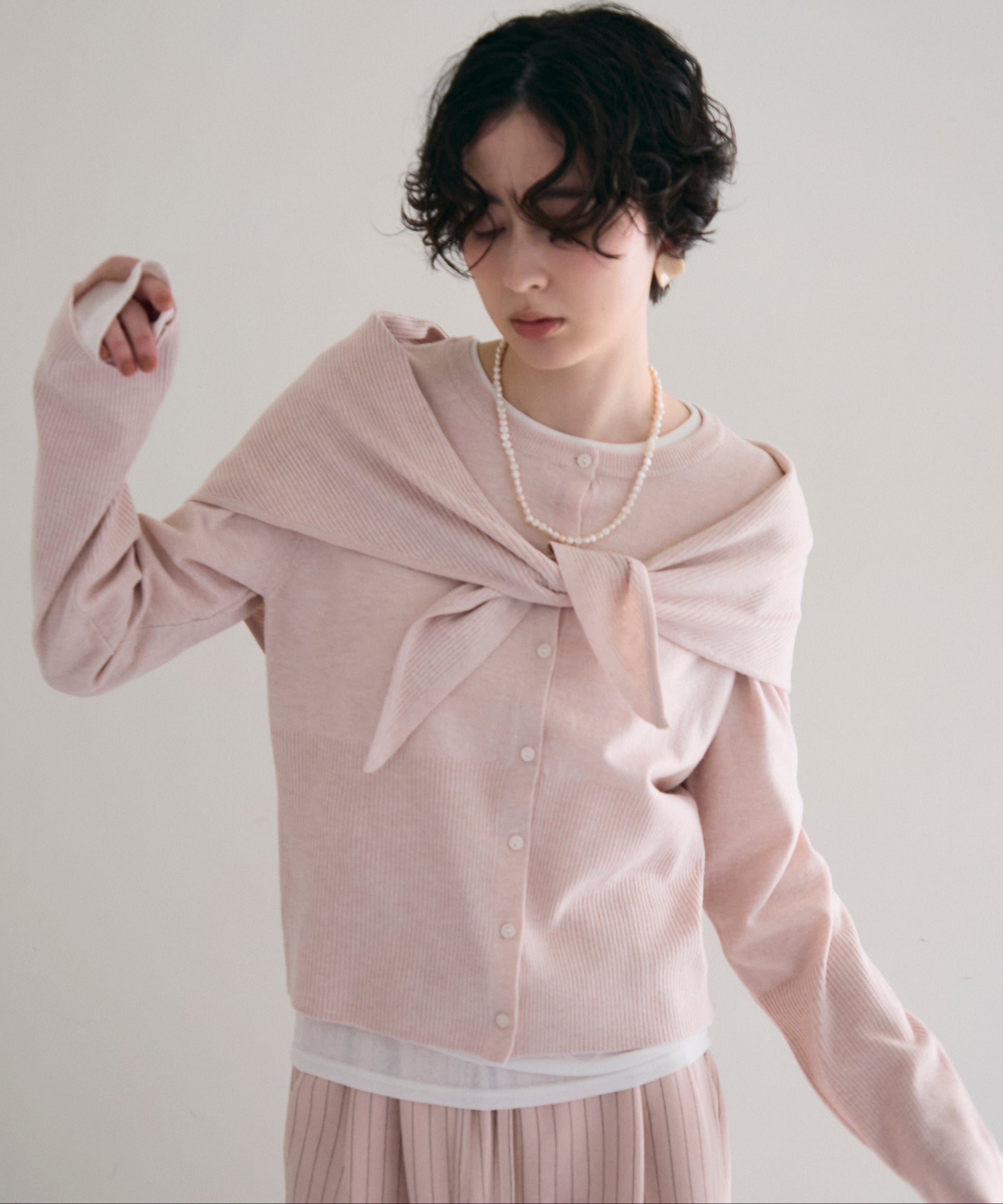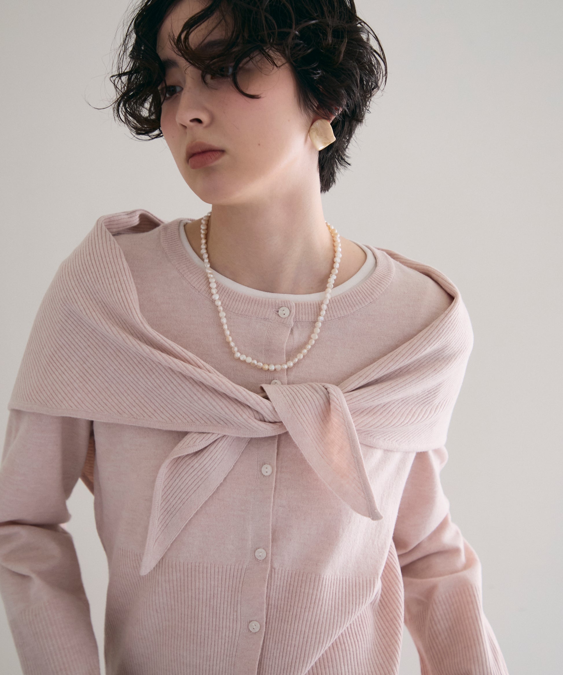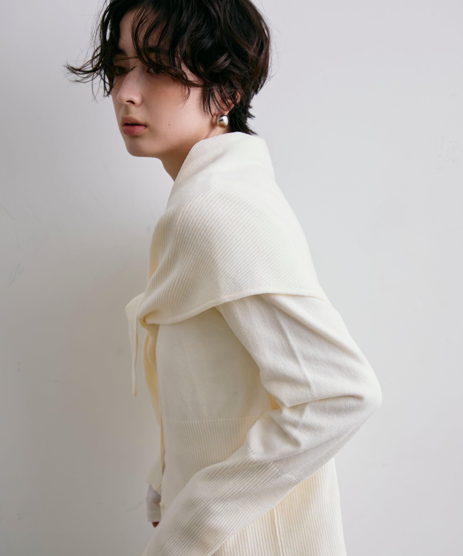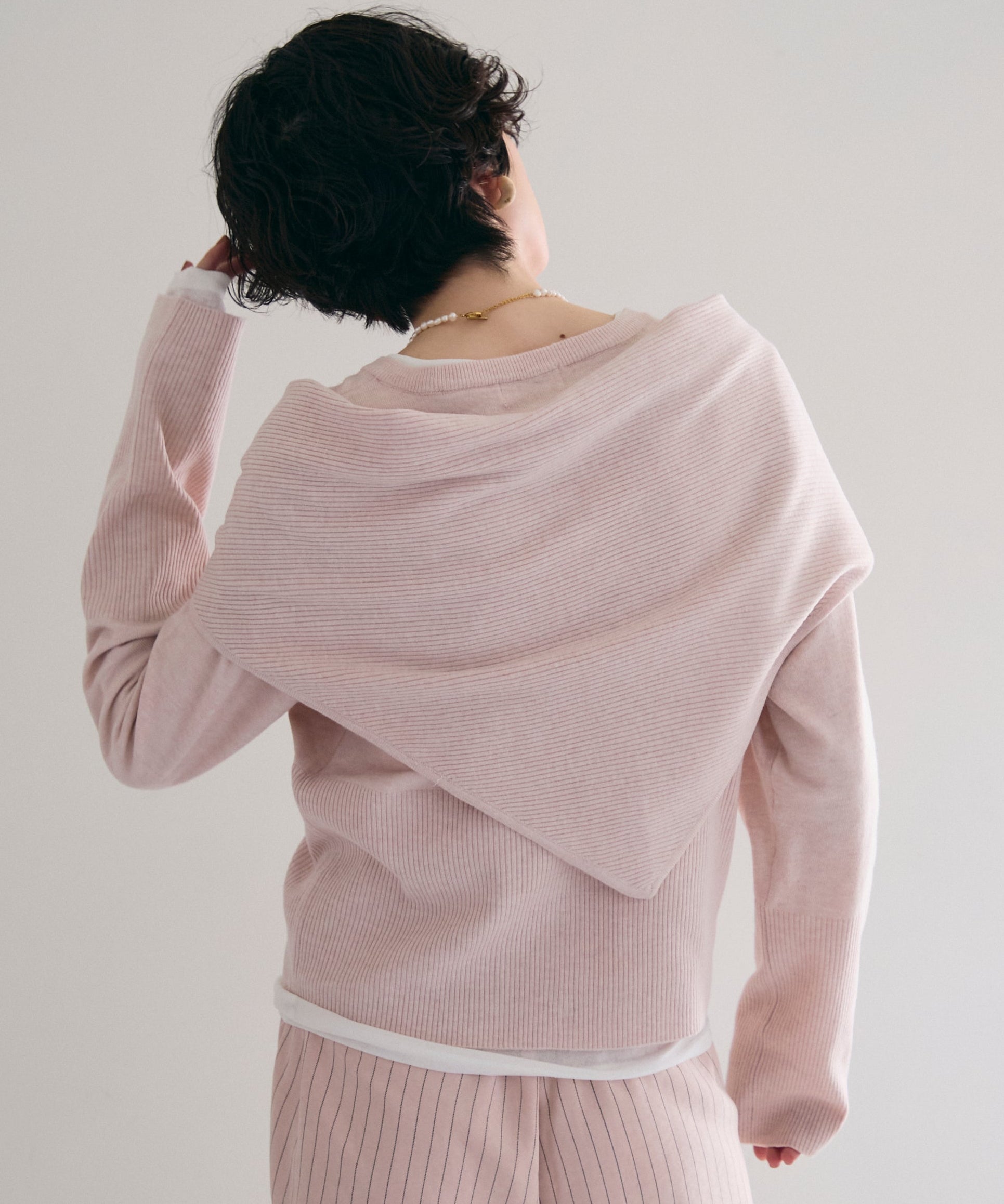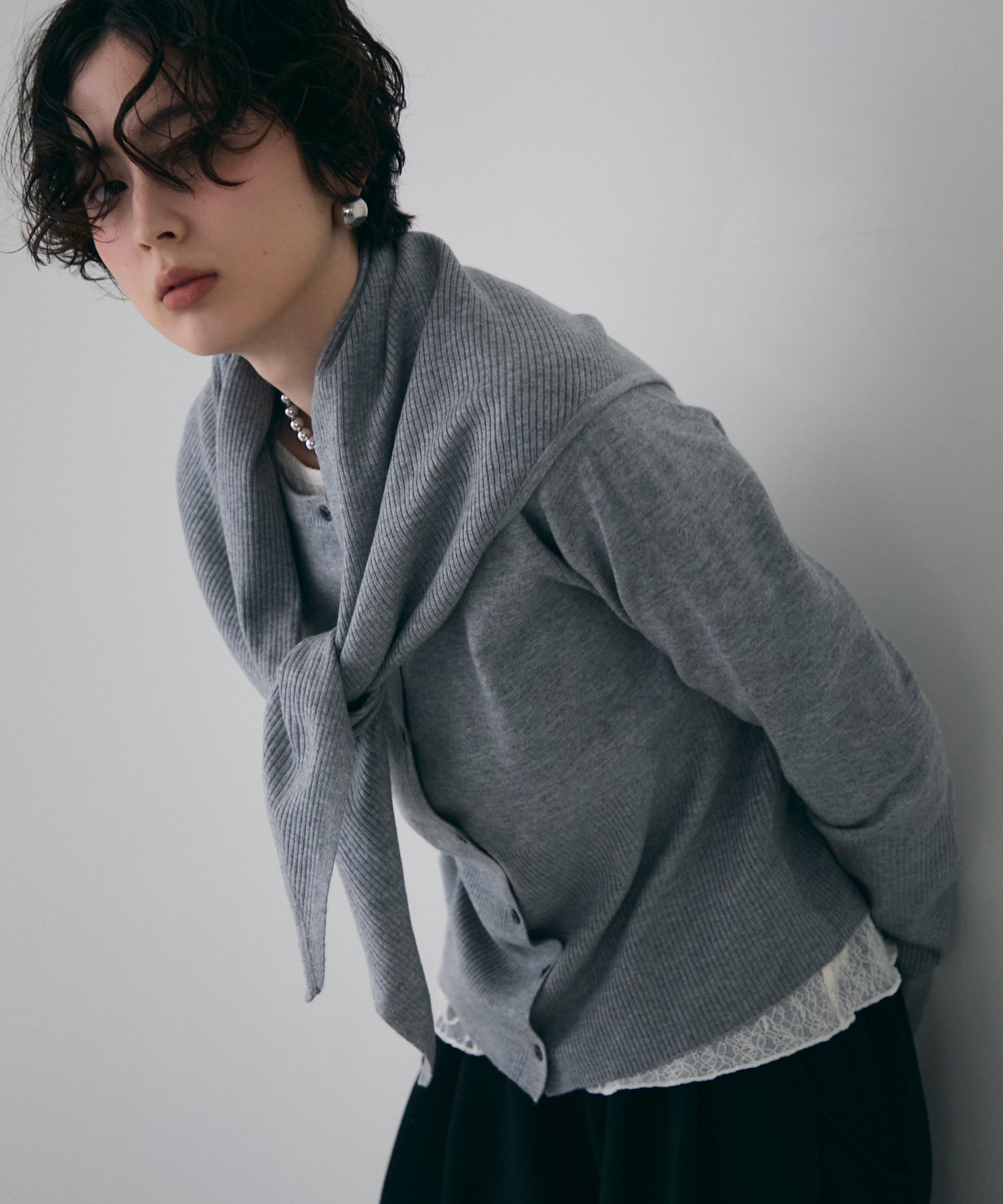 使い勝手の良いベーシックなニットを、ストール合わせで旬顔に仕上げました。