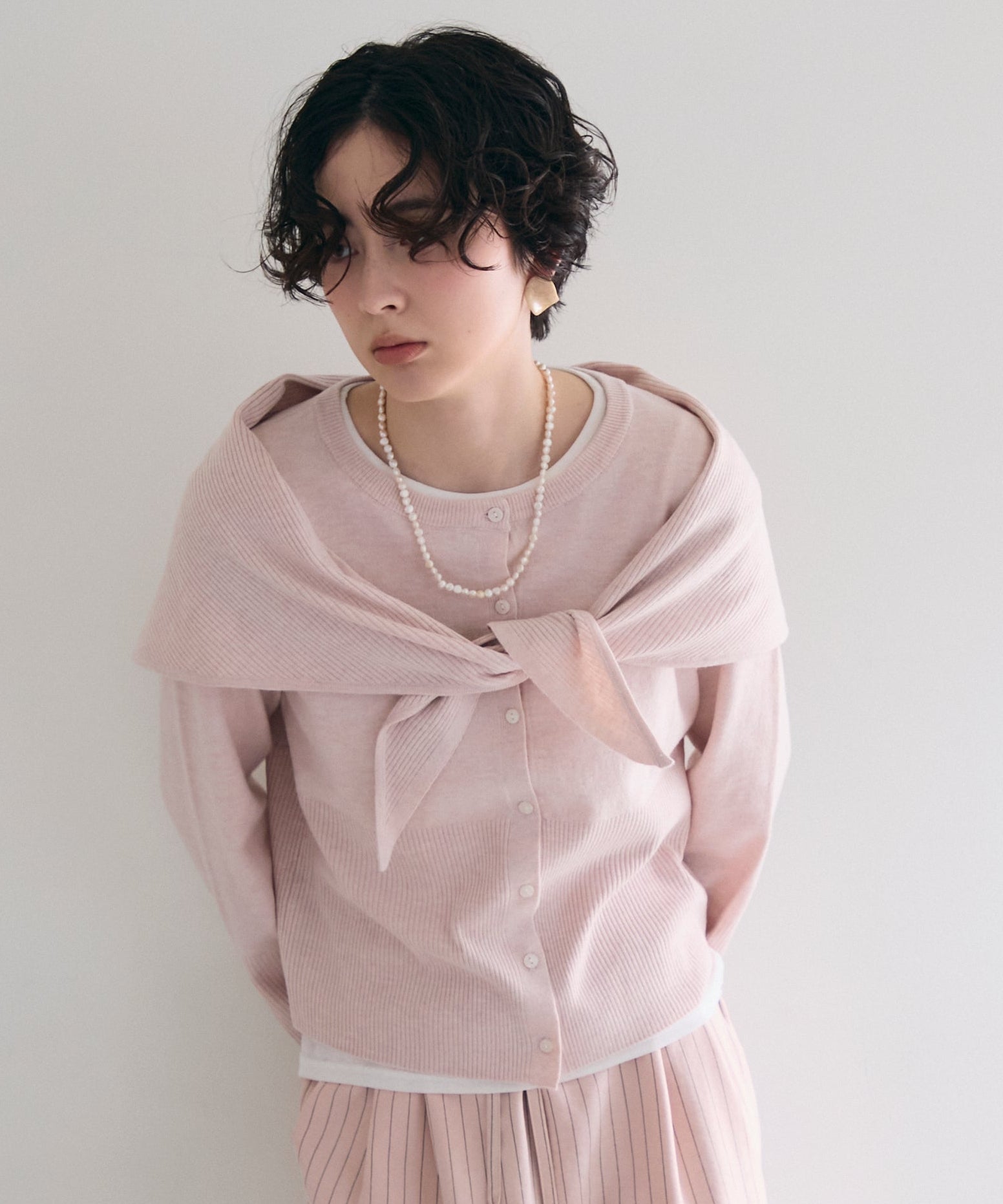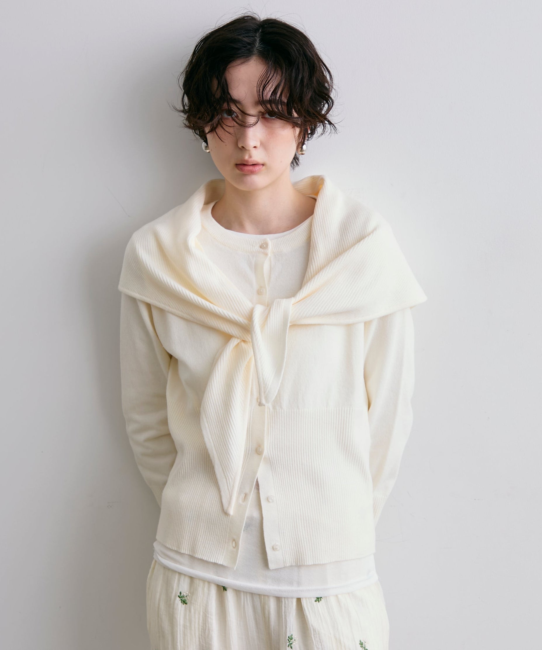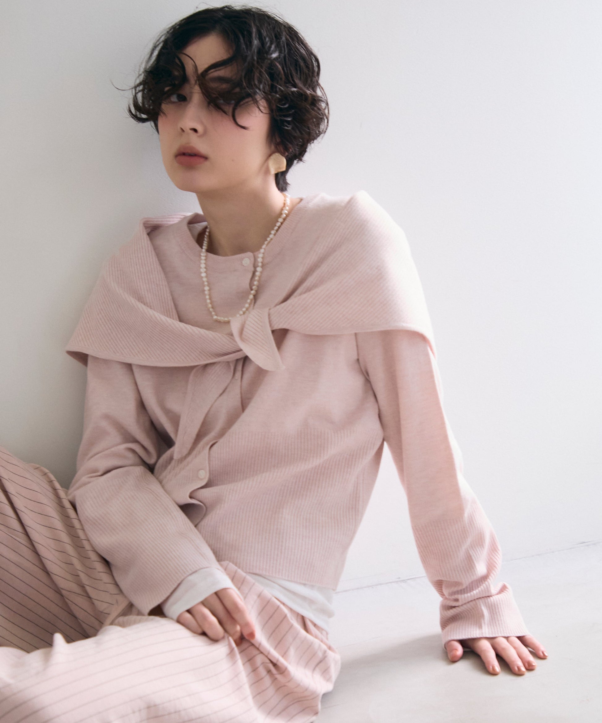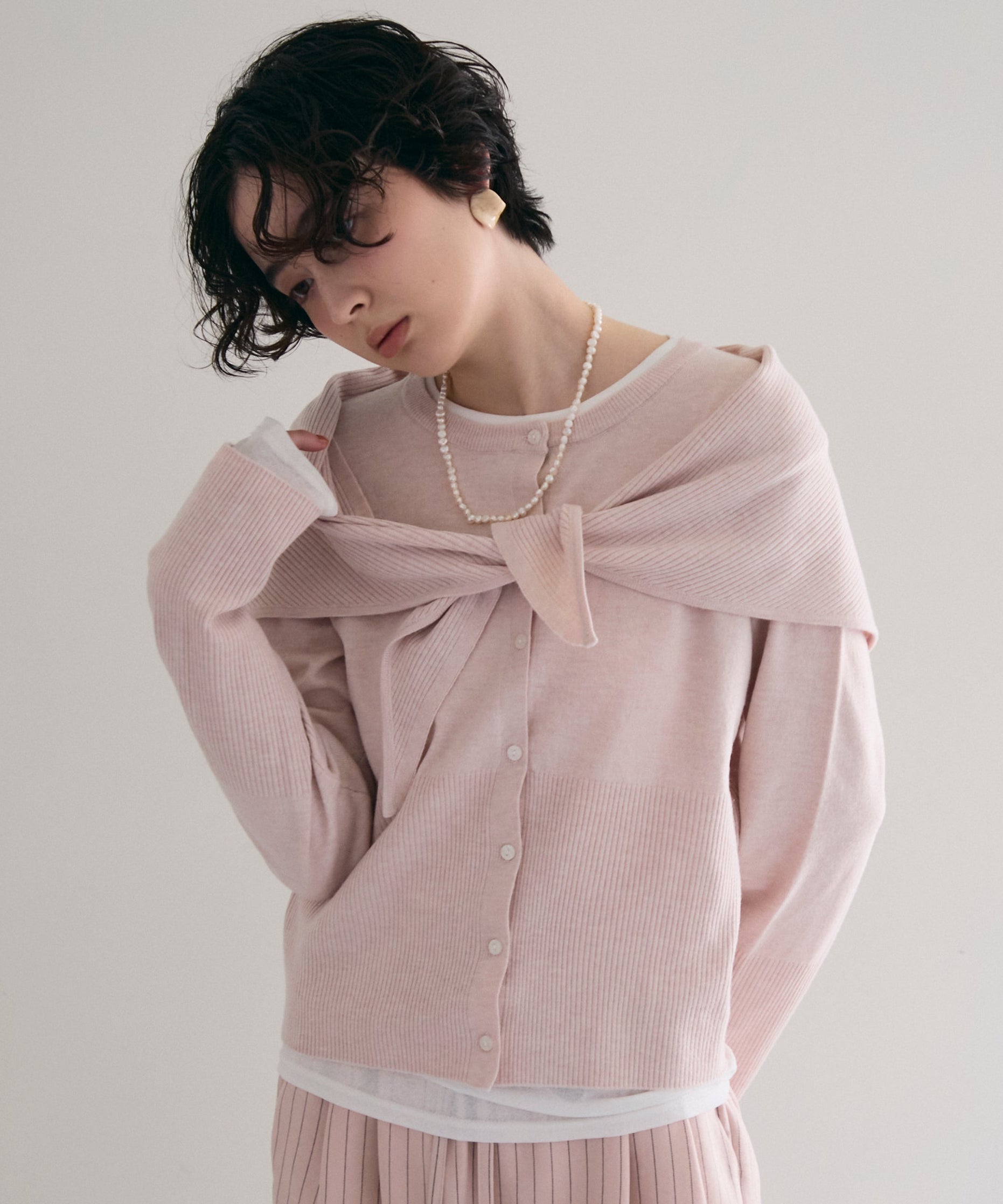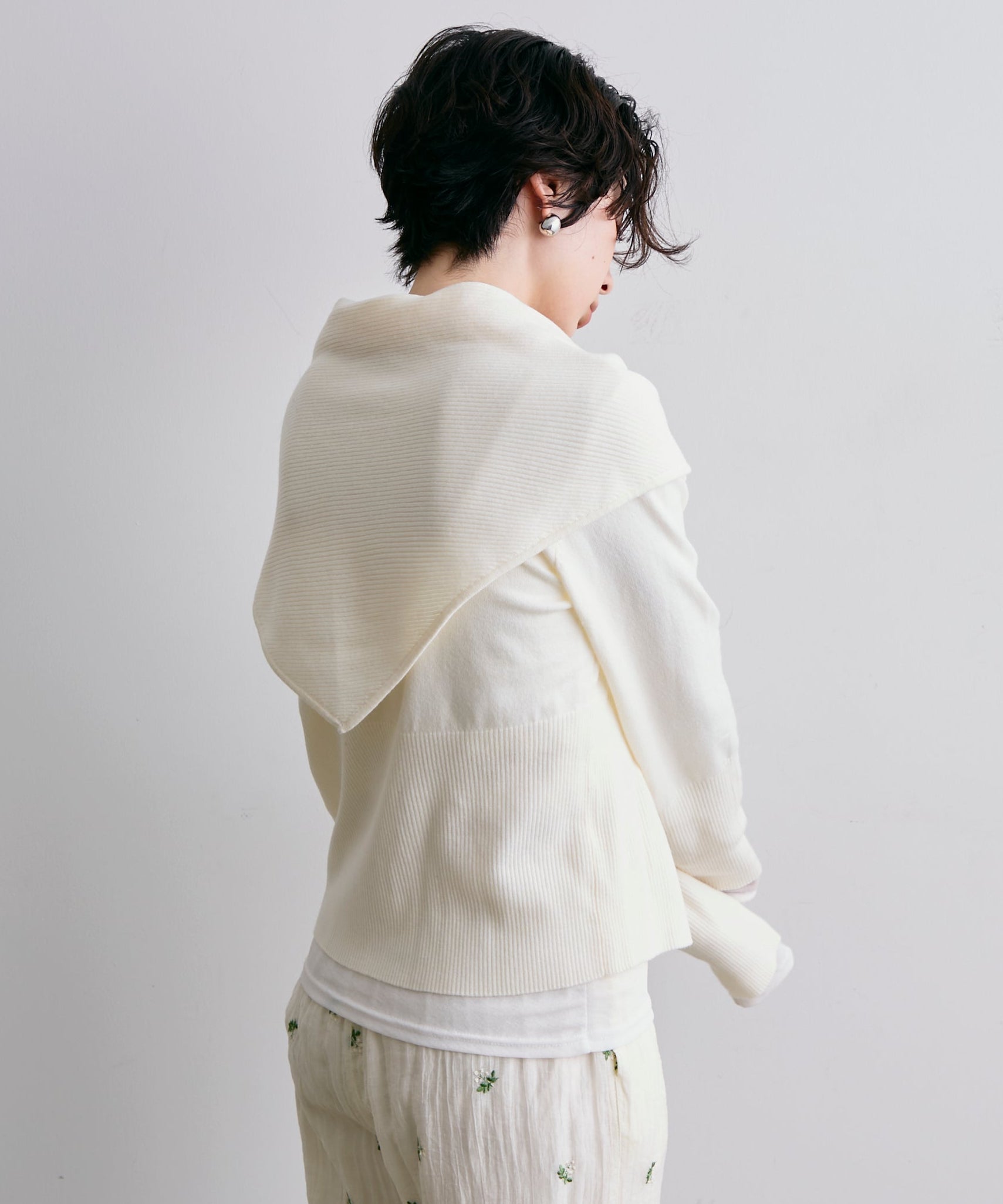 使い勝手の良いベーシックなニットを、ストール合わせで旬顔に仕上げました。