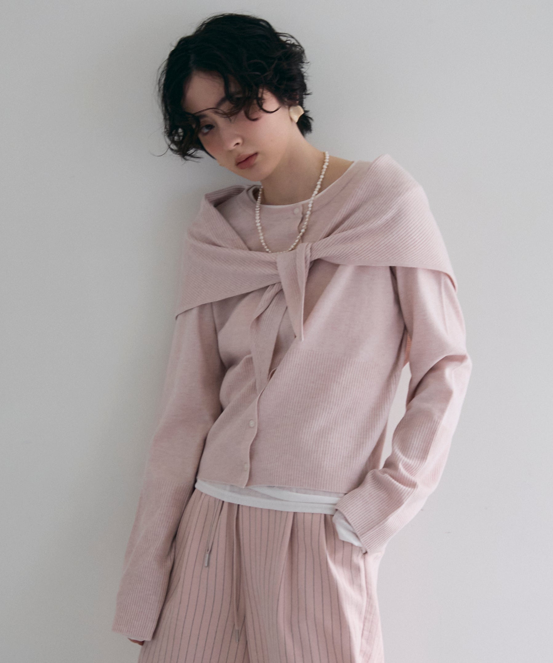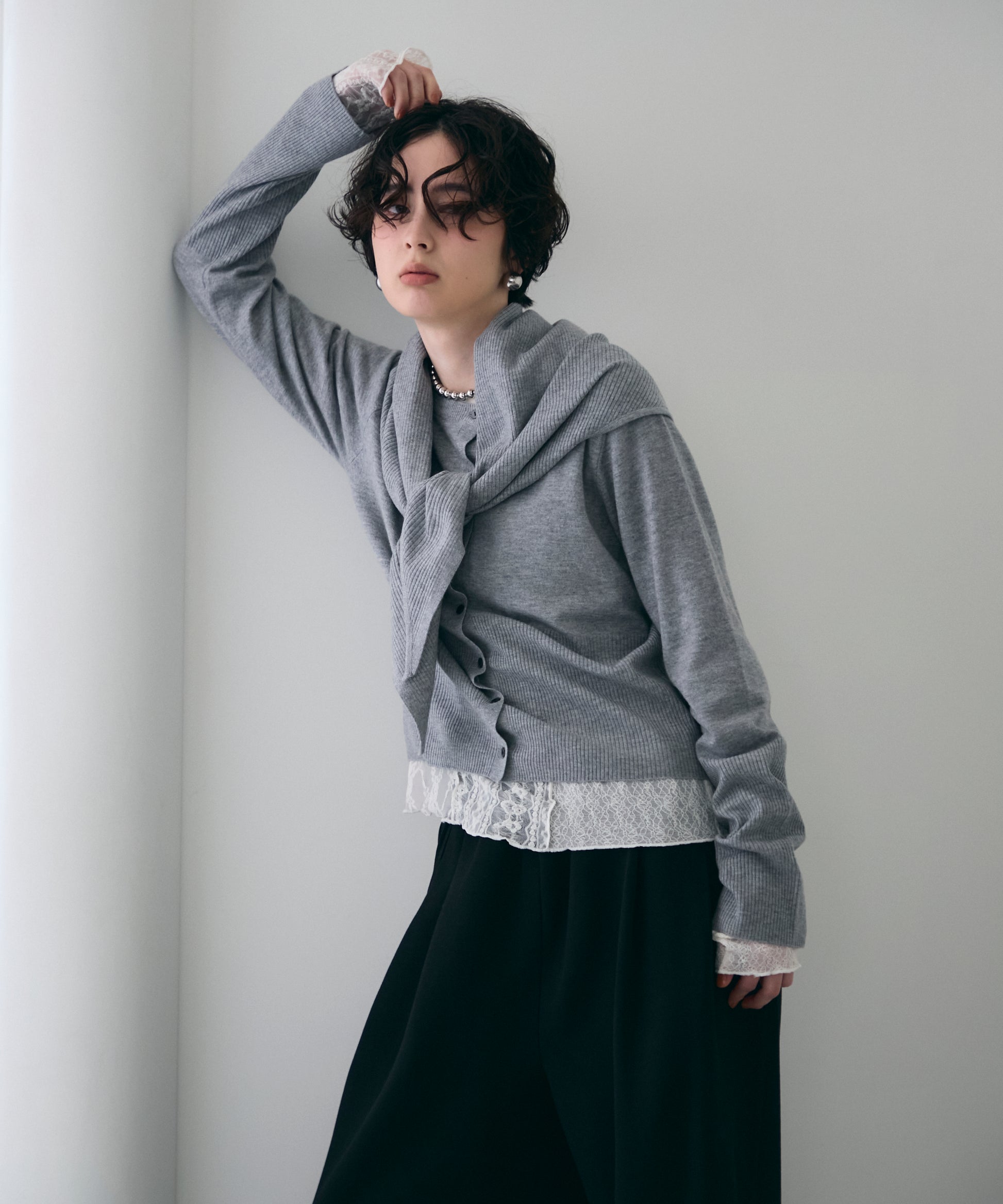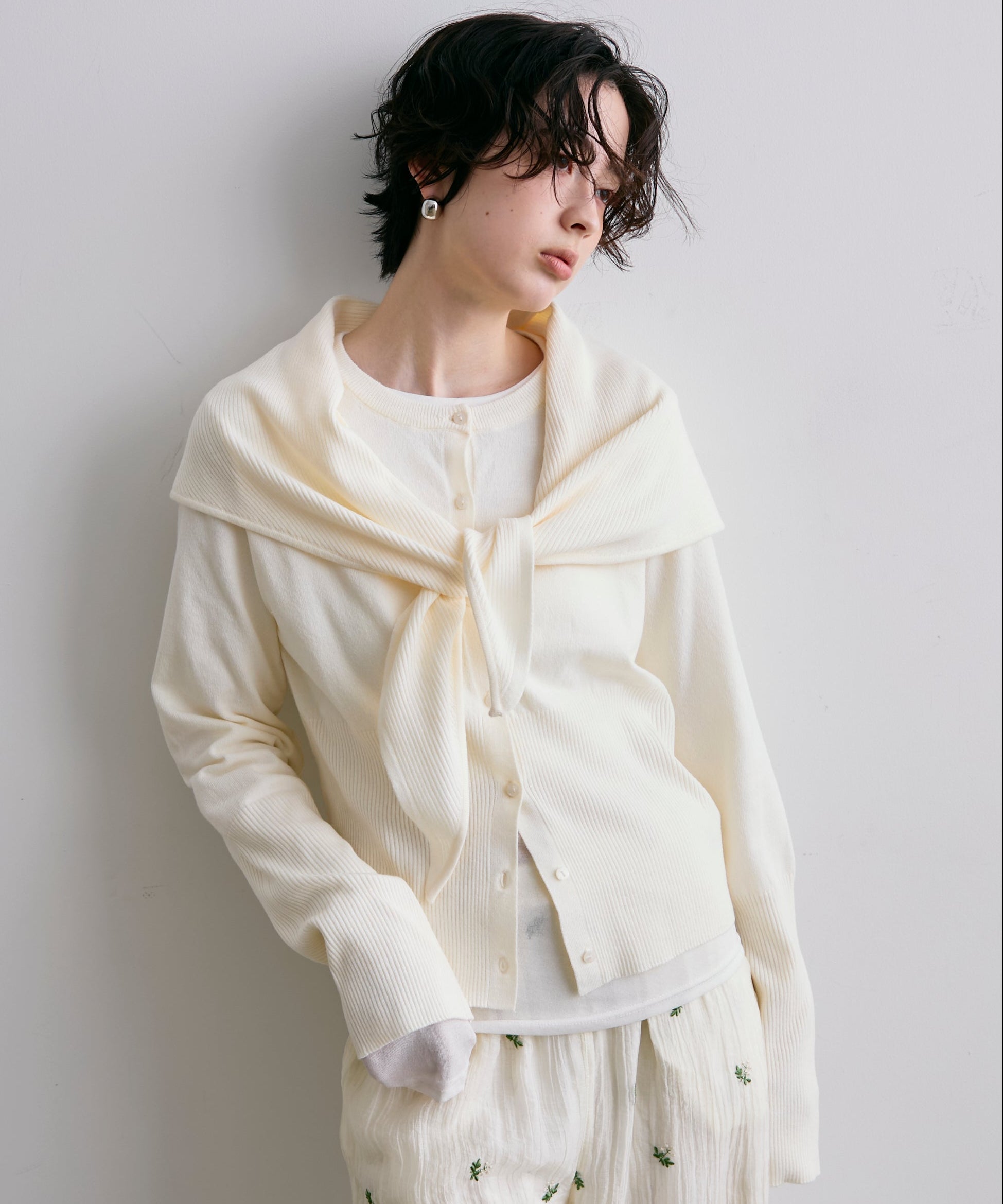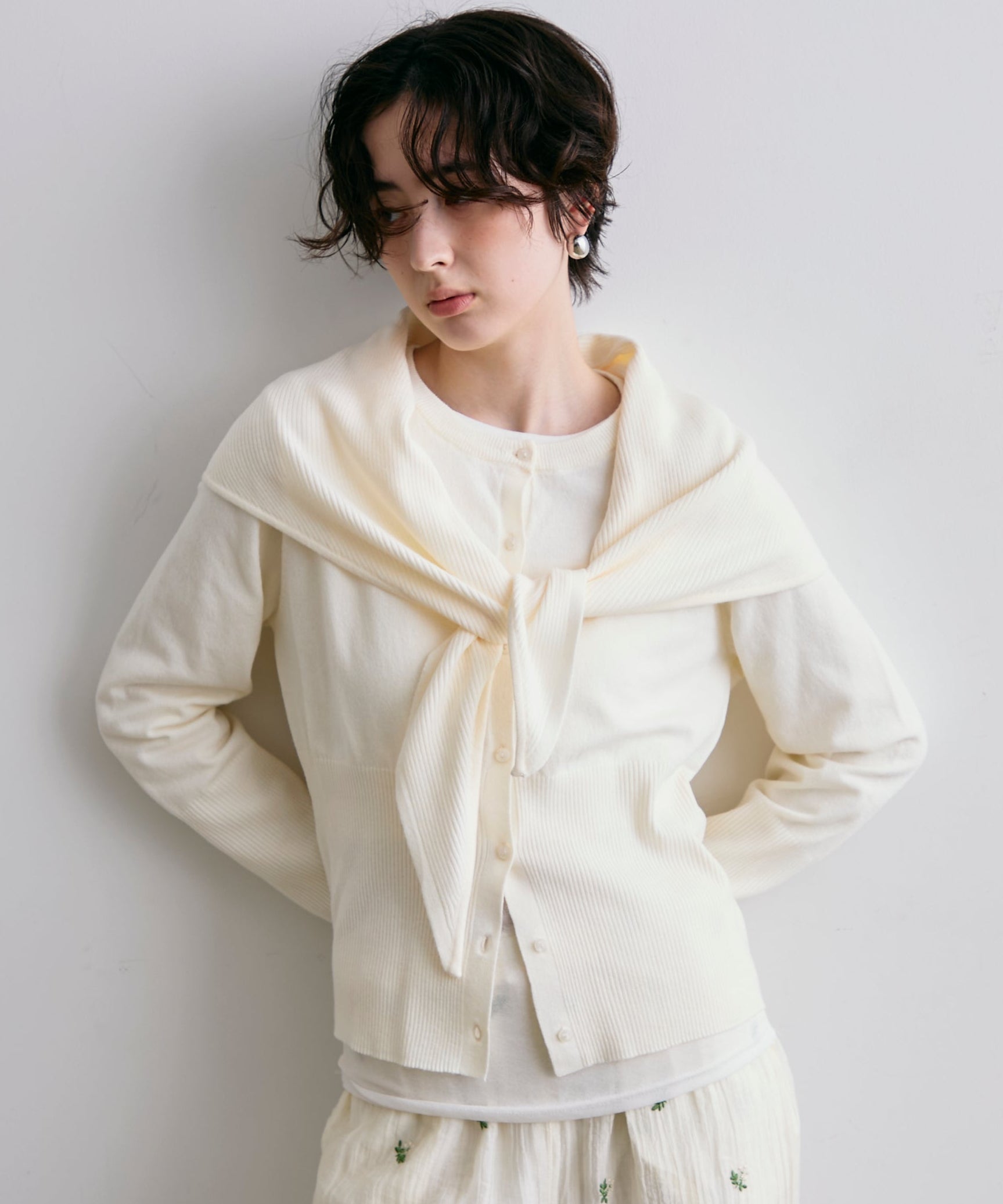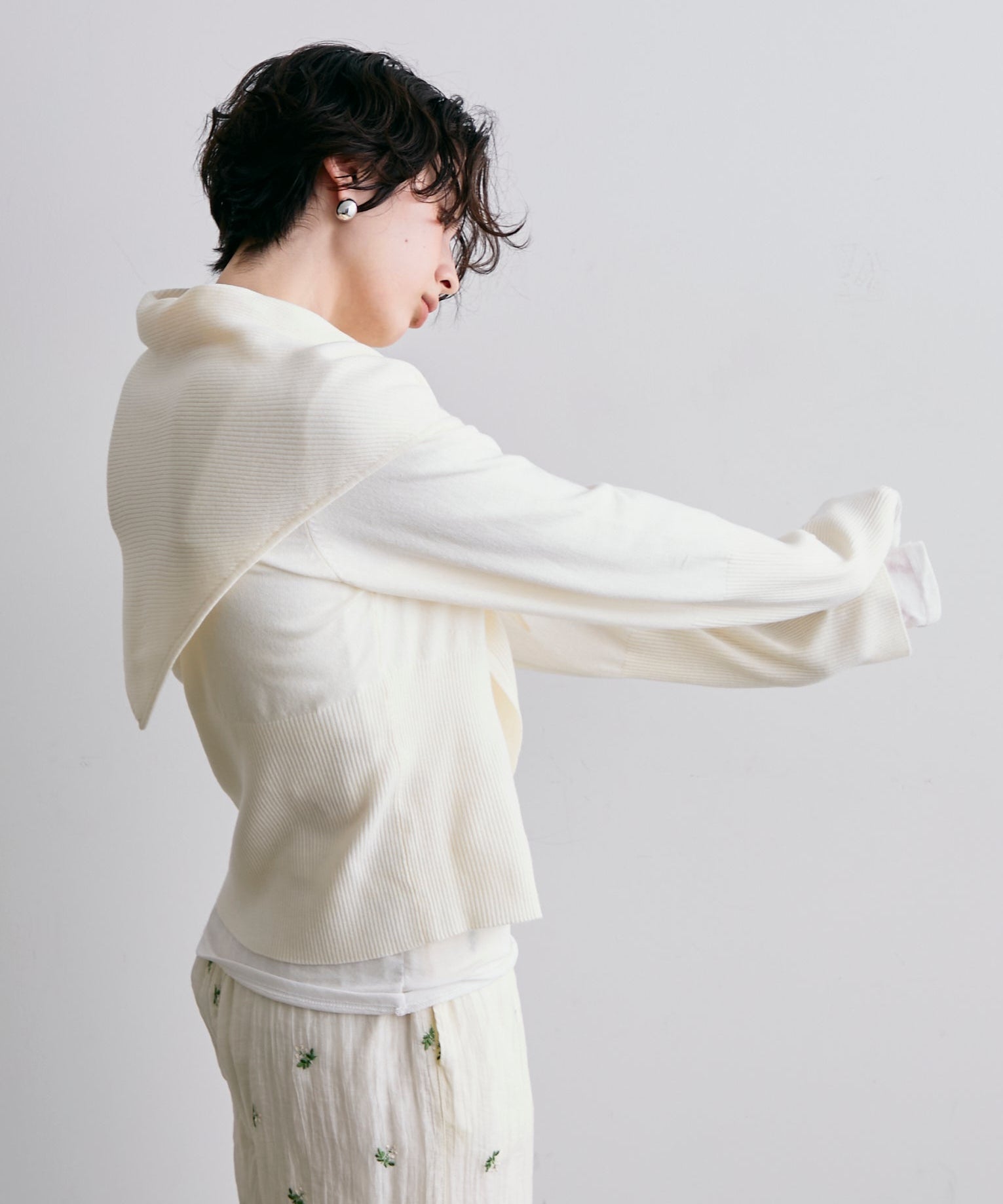 使い勝手の良いベーシックなニットを、ストール合わせで旬顔に仕上げました。