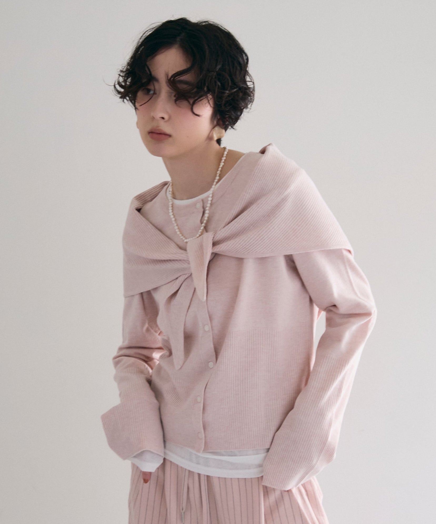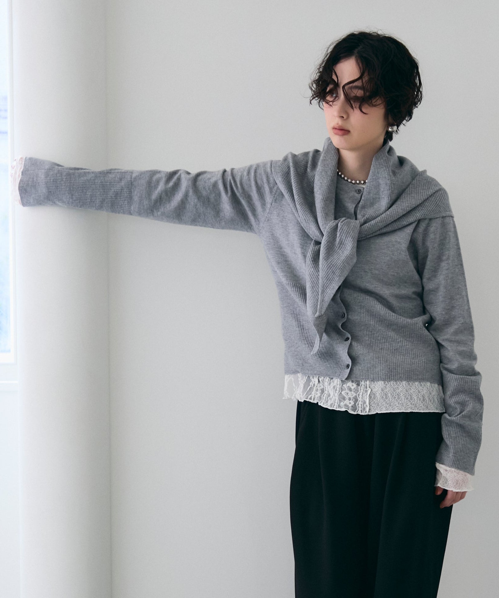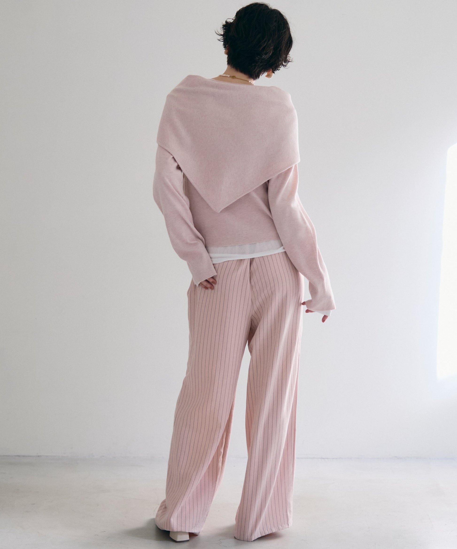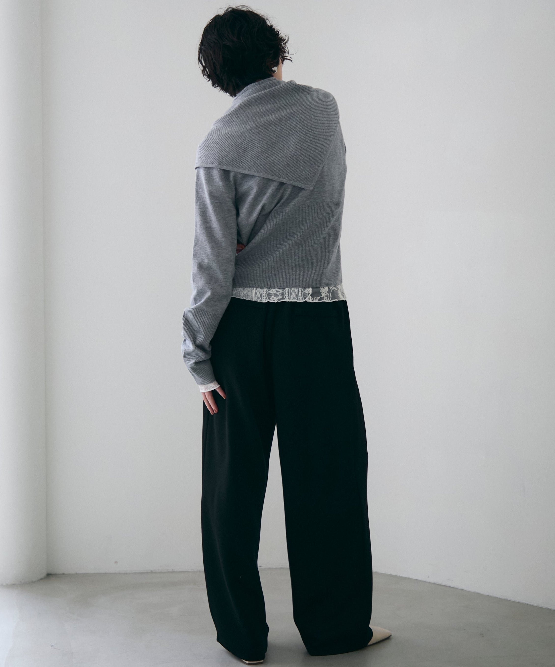 使い勝手の良いベーシックなニットを、ストール合わせで旬顔に仕上げました。