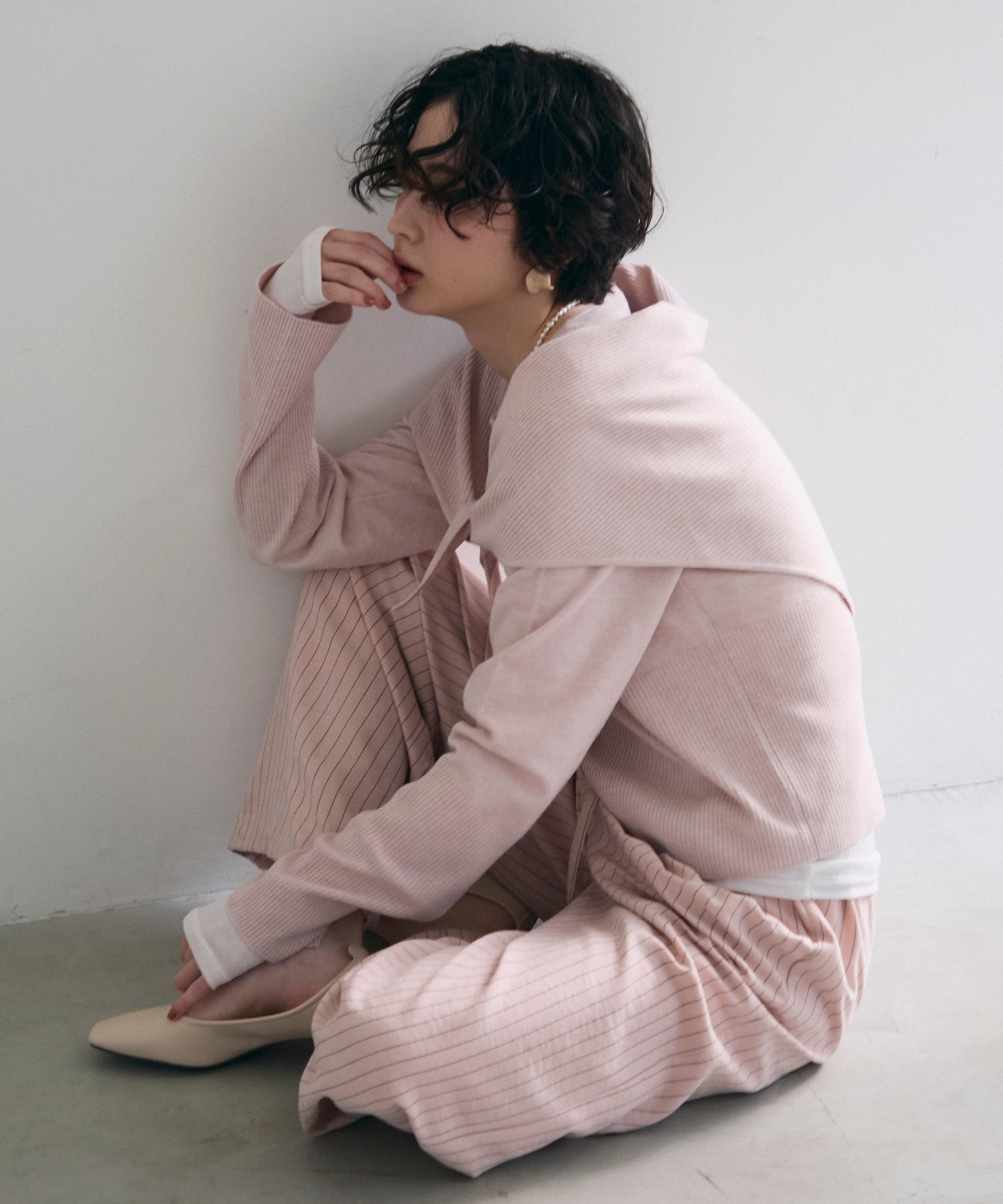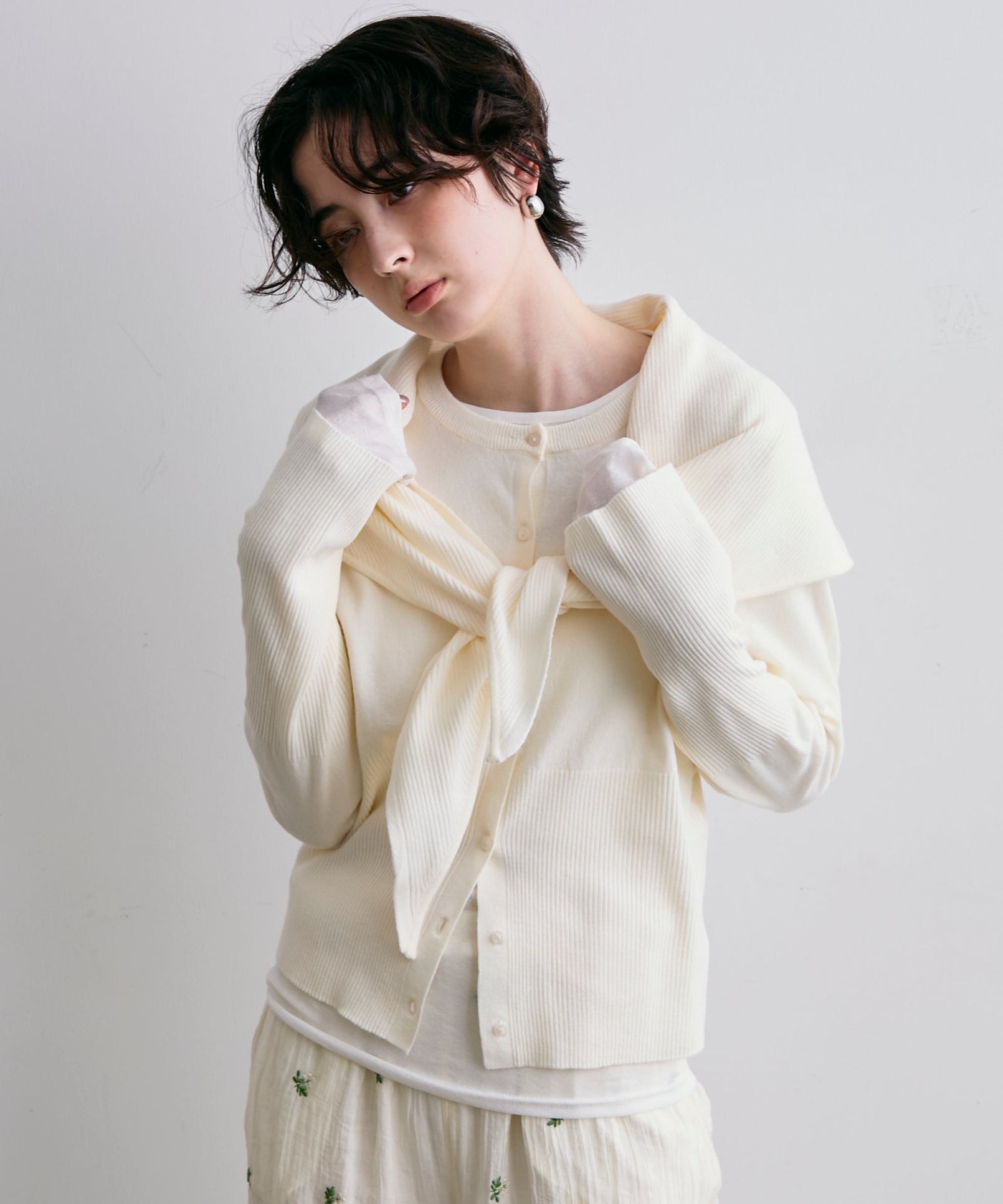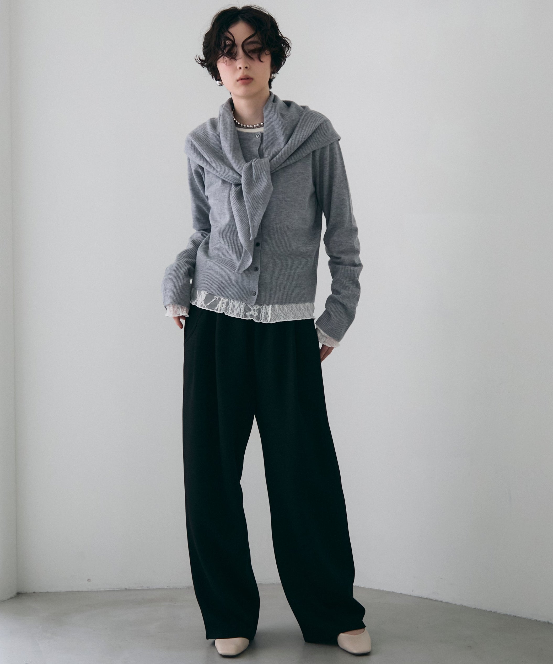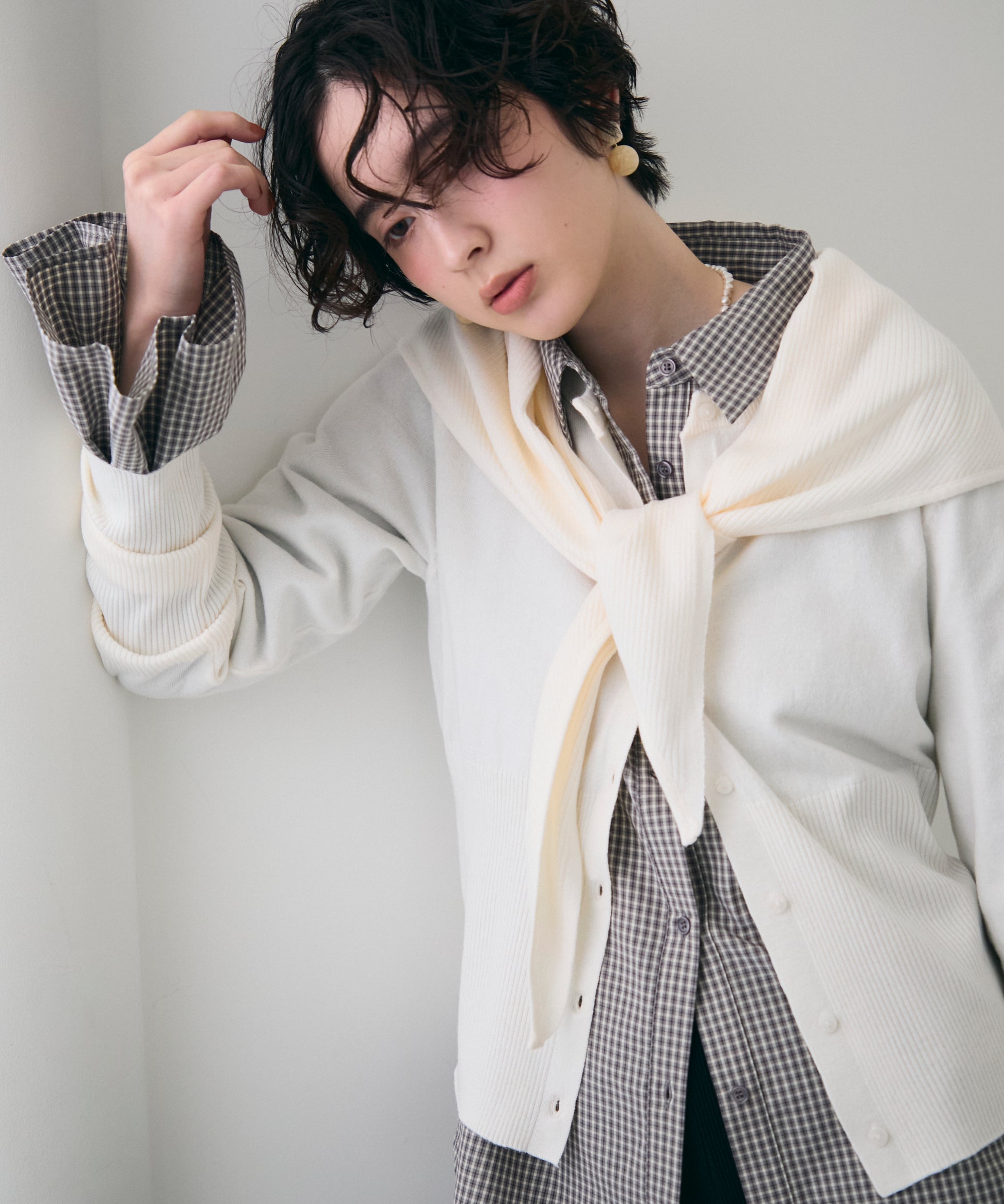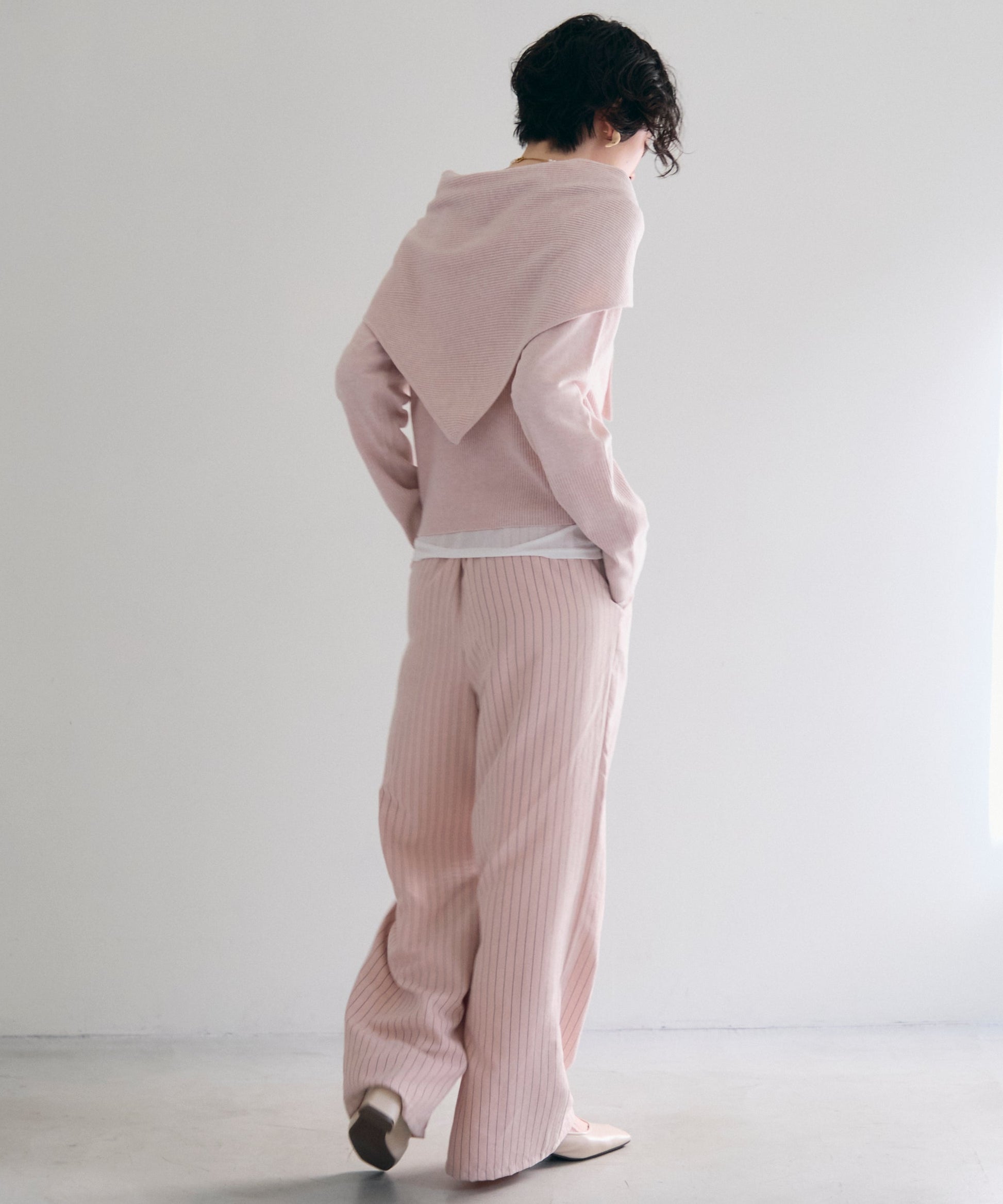 使い勝手の良いベーシックなニットを、ストール合わせで旬顔に仕上げました。