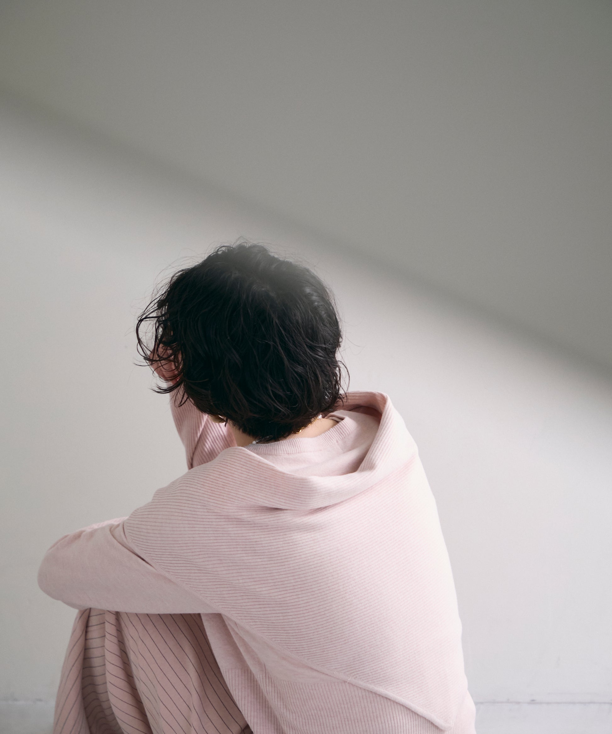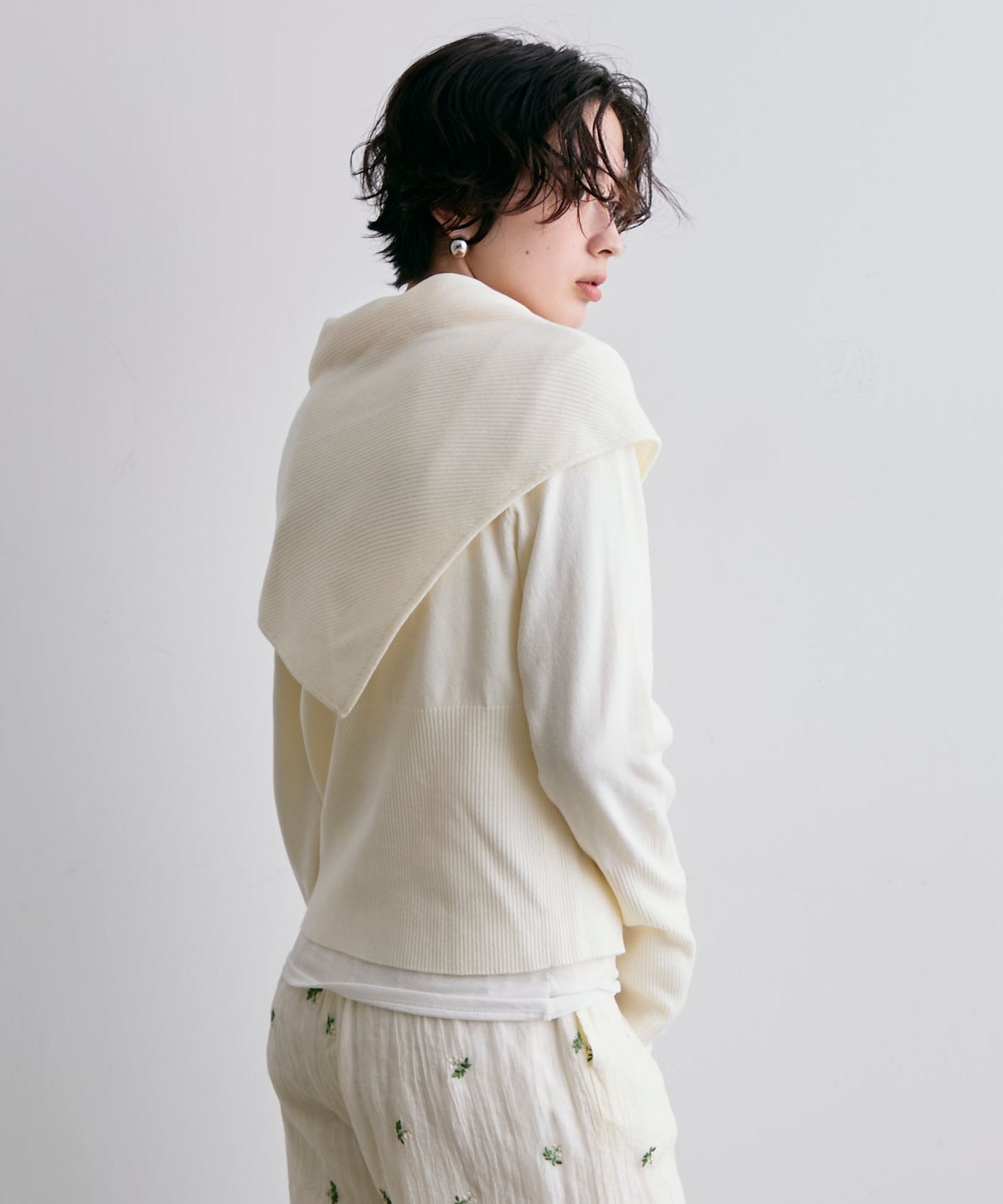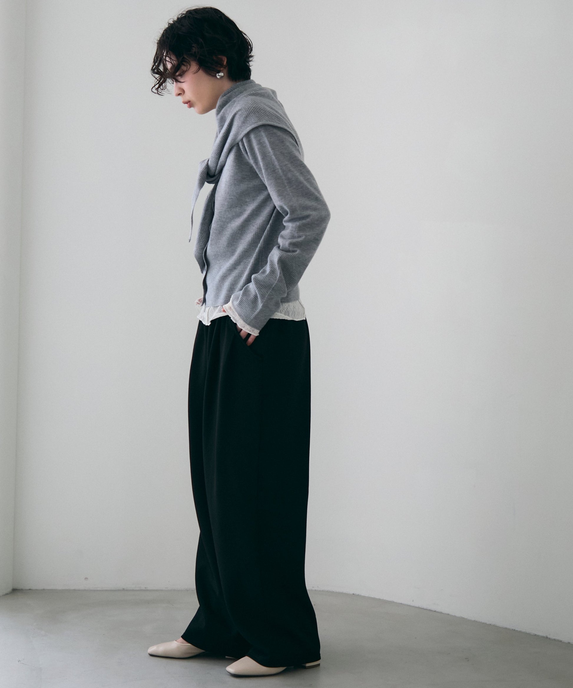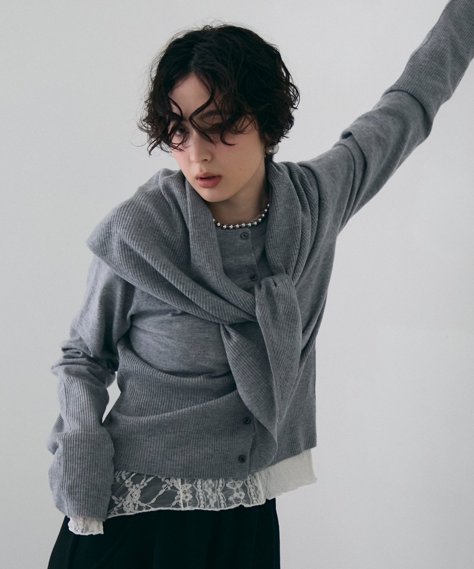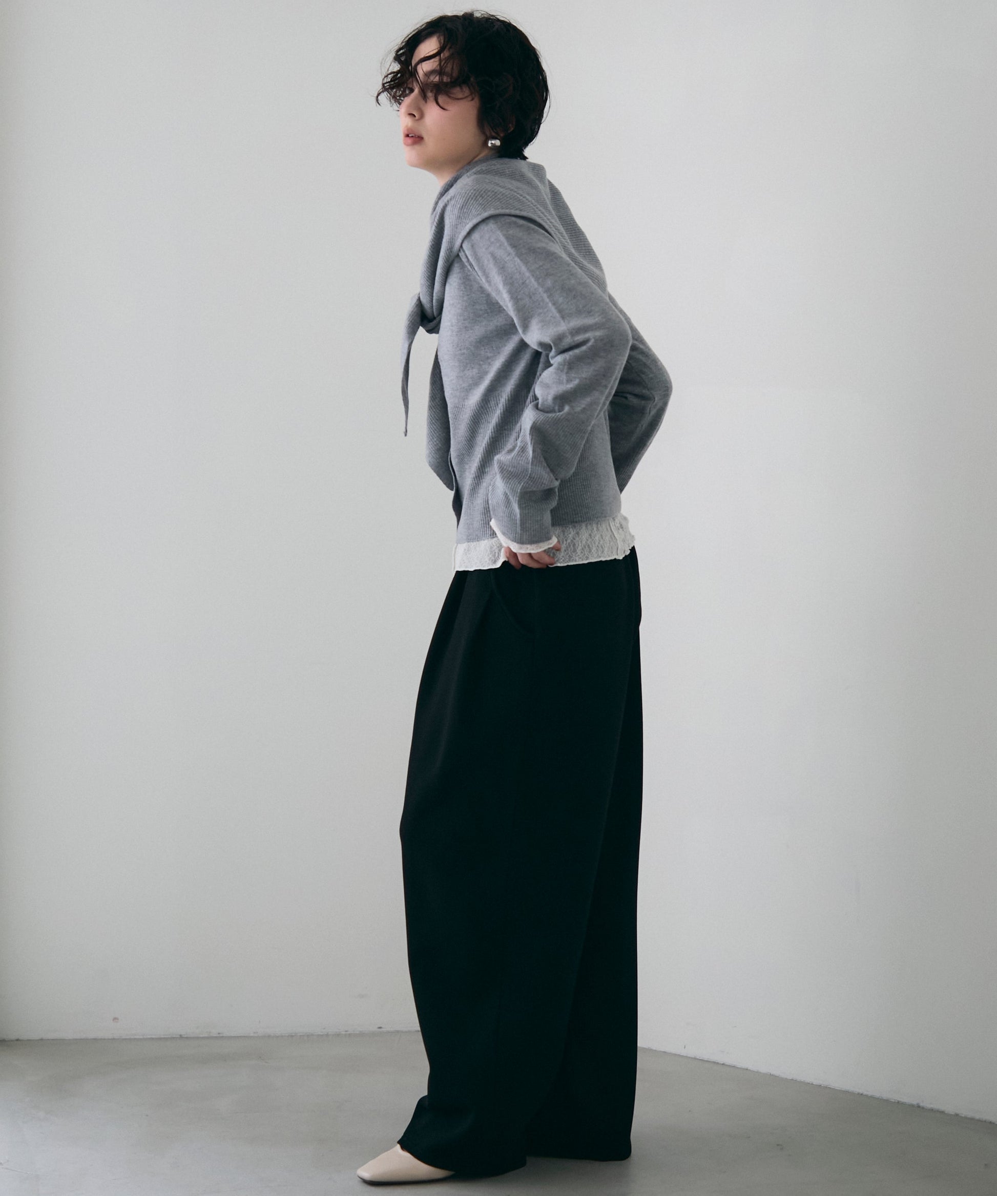 使い勝手の良いベーシックなニットを、ストール合わせで旬顔に仕上げました。