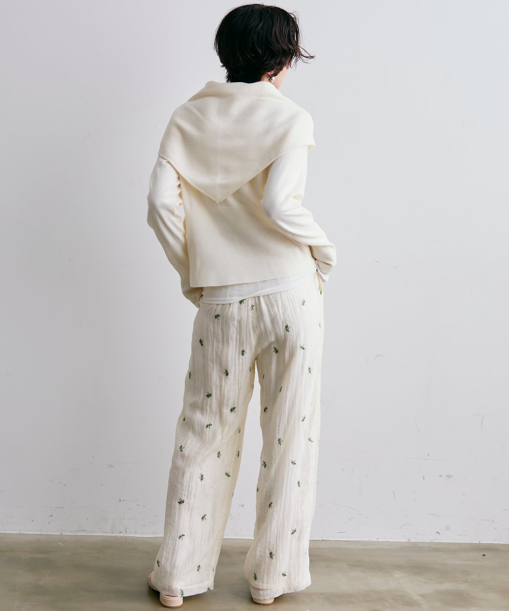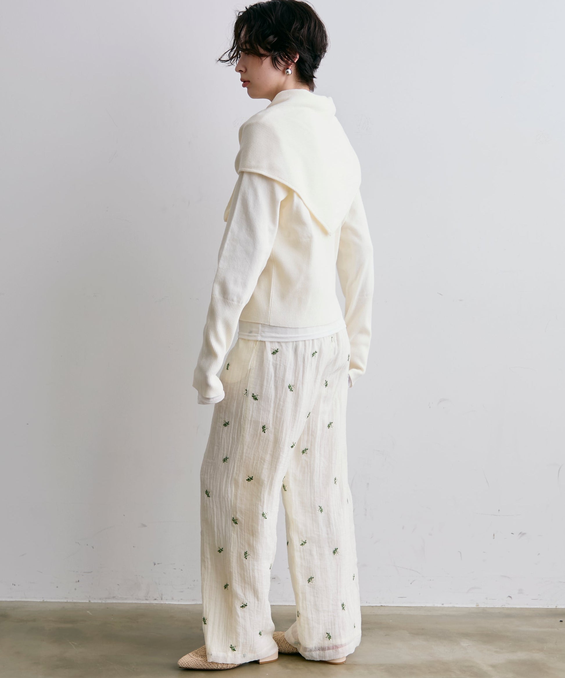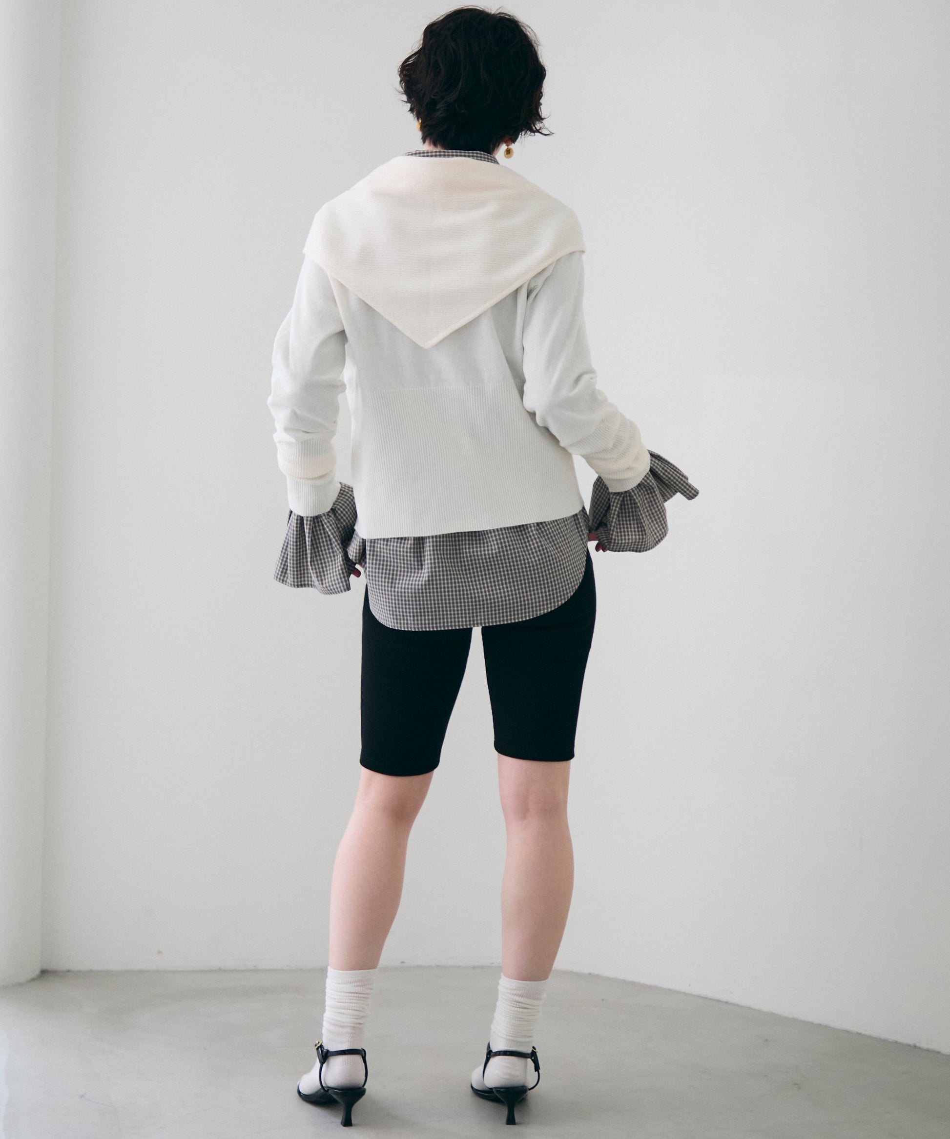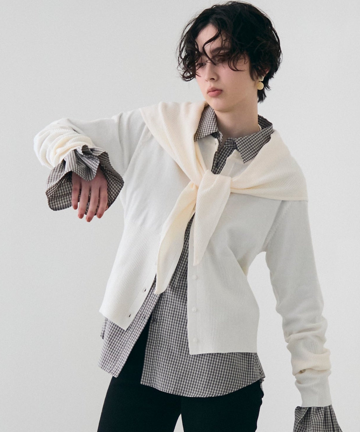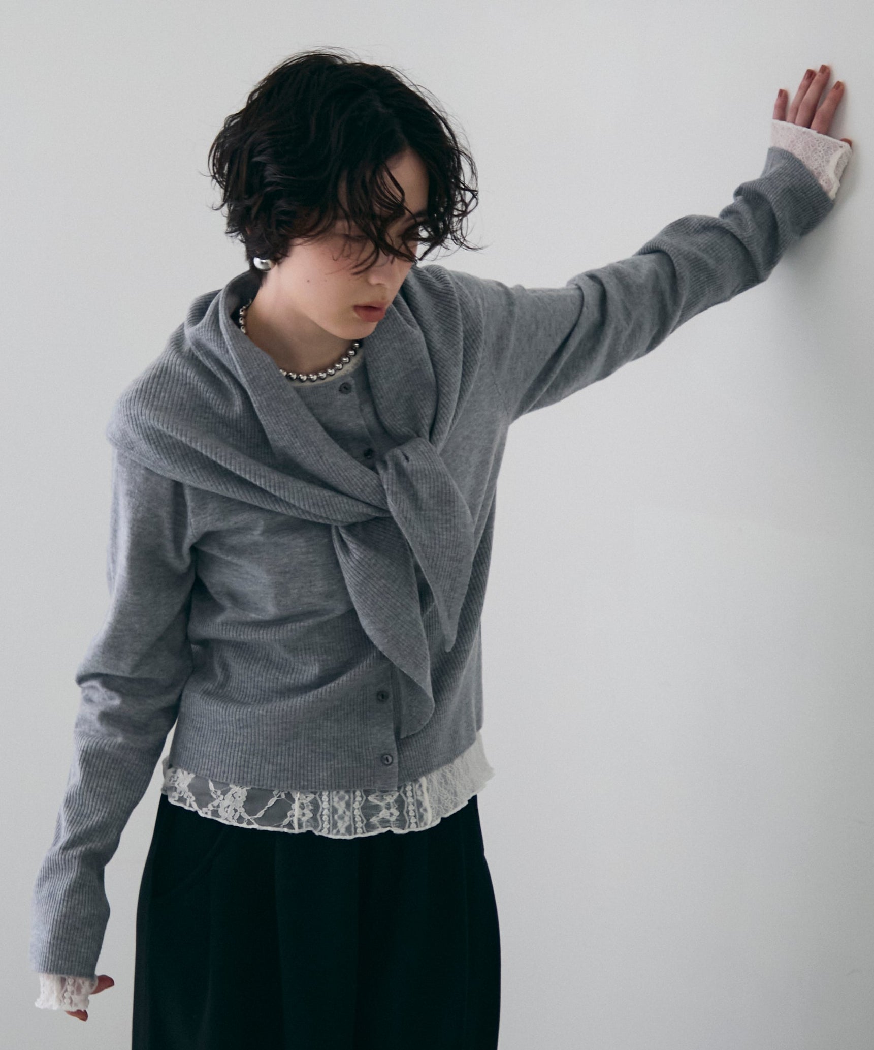 使い勝手の良いベーシックなニットを、ストール合わせで旬顔に仕上げました。