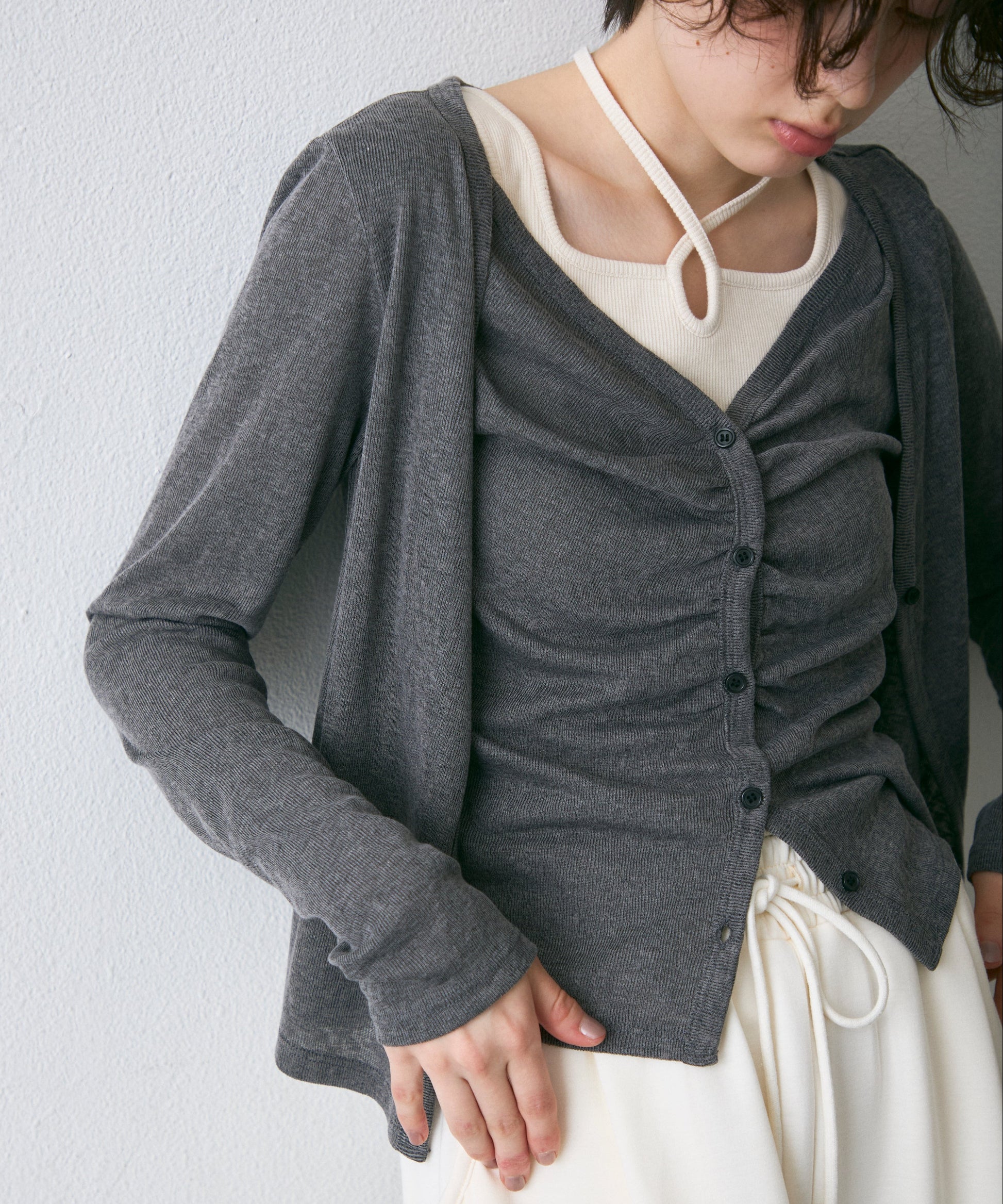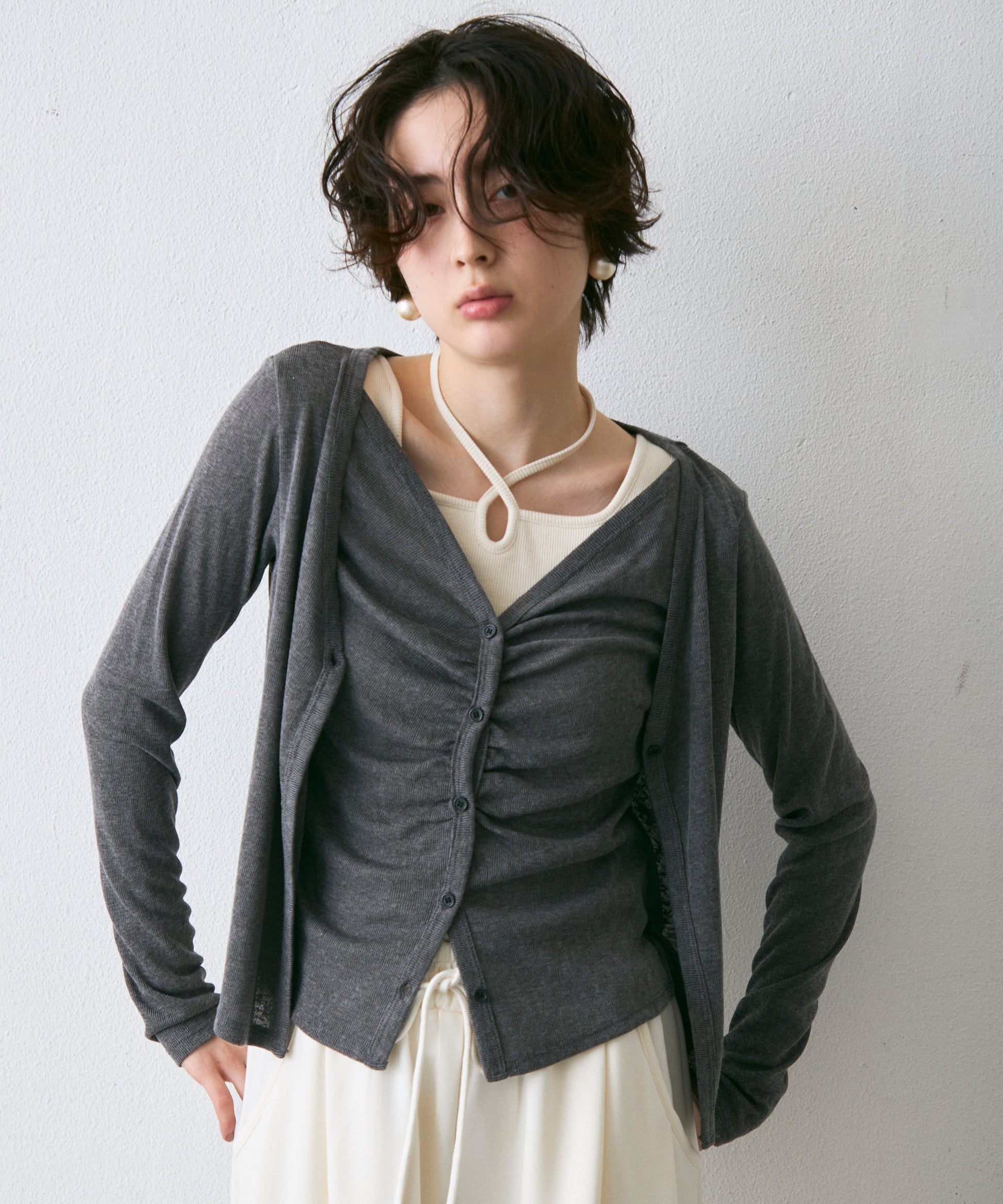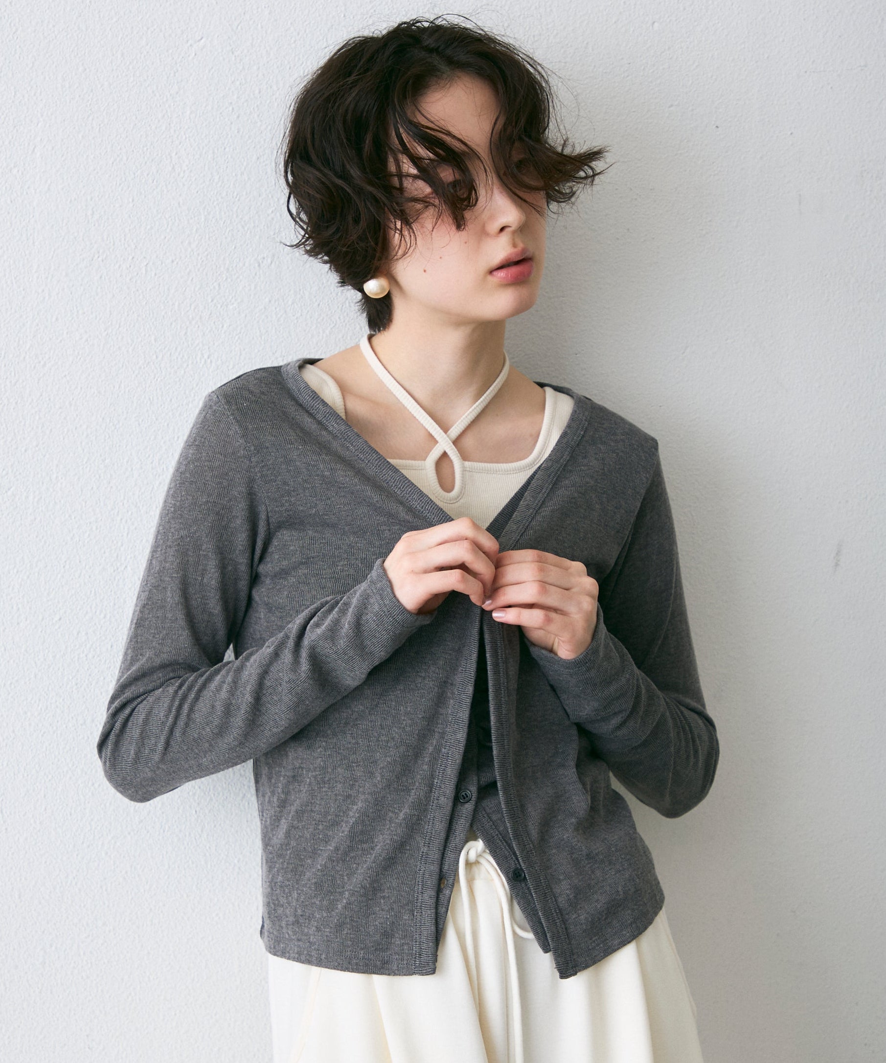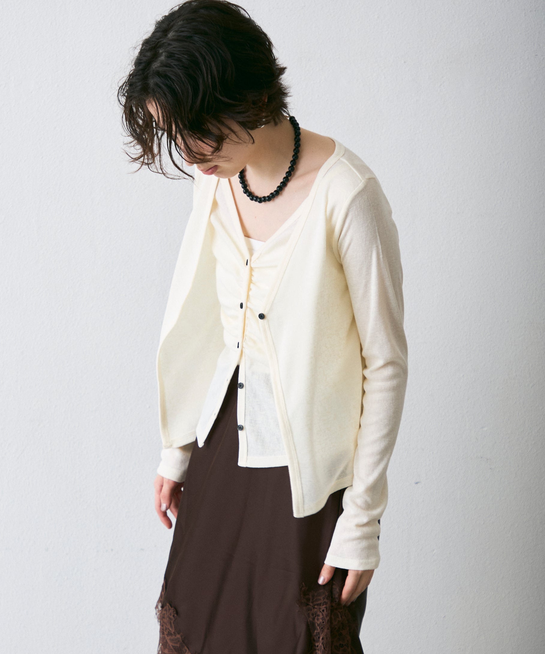 Vネックレイヤード風スラブカーディガン
