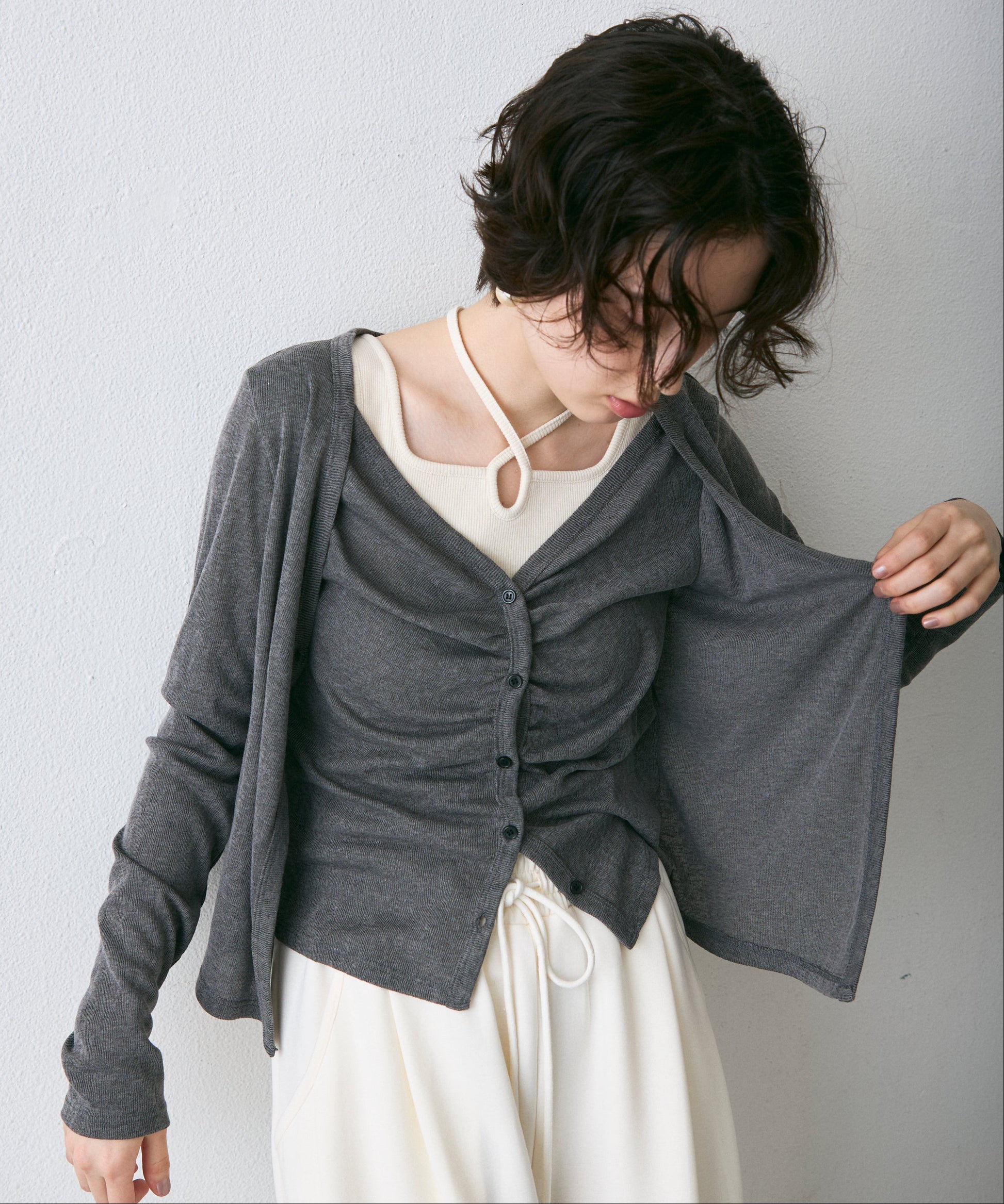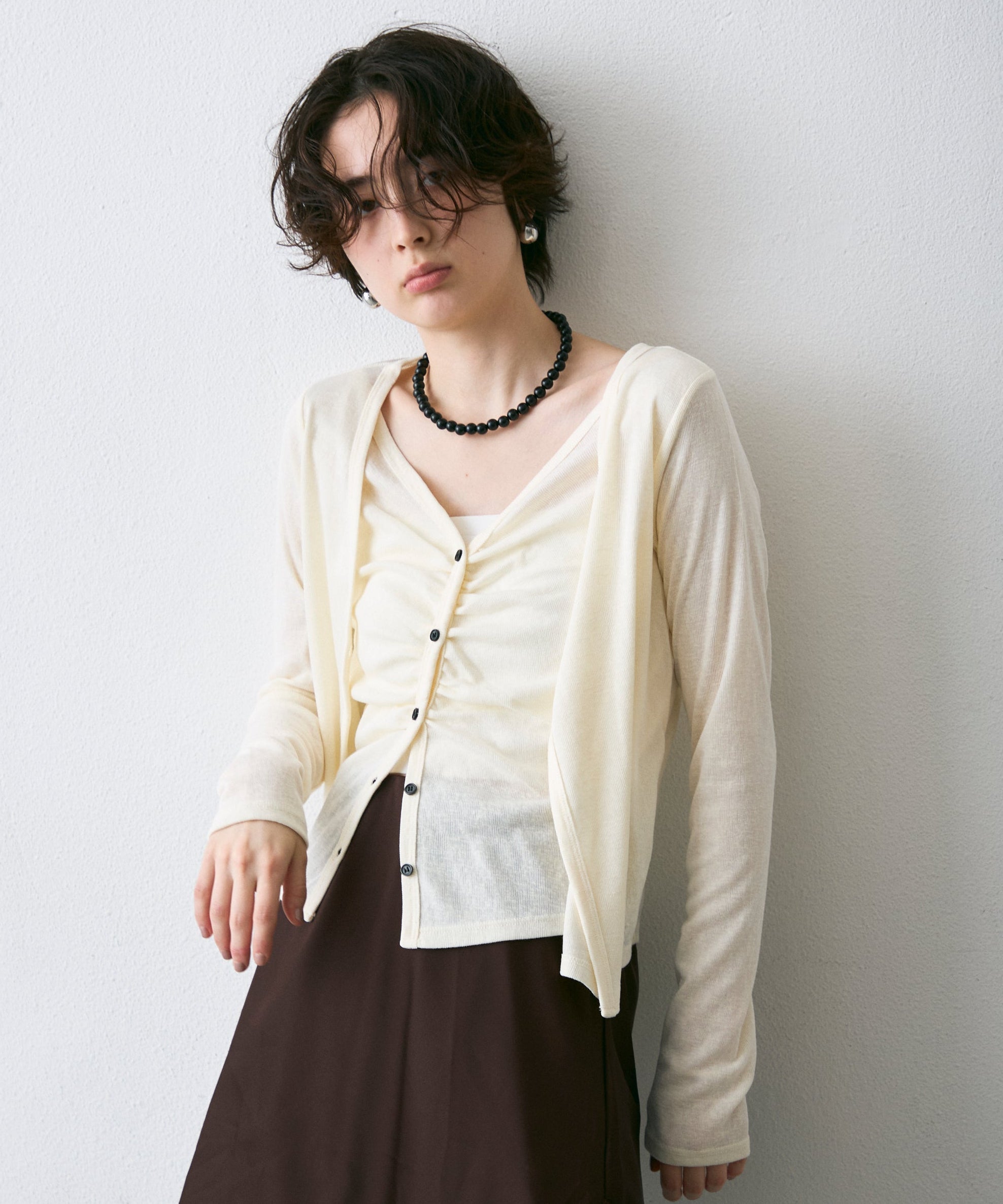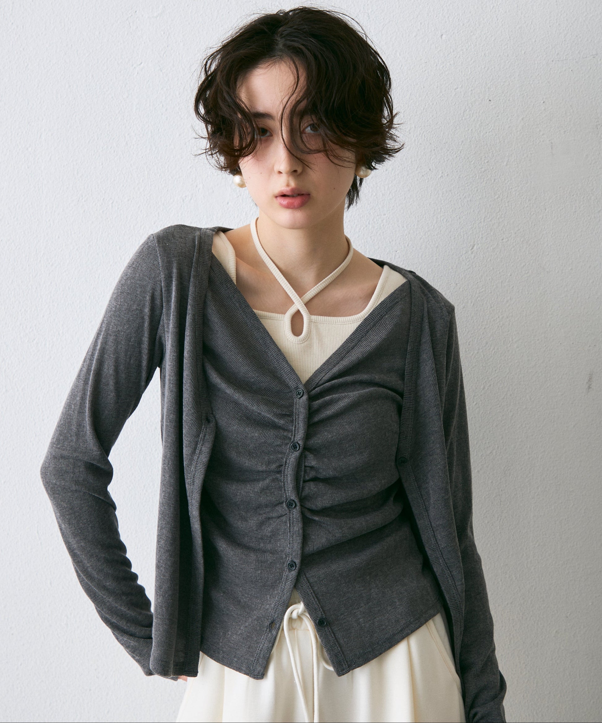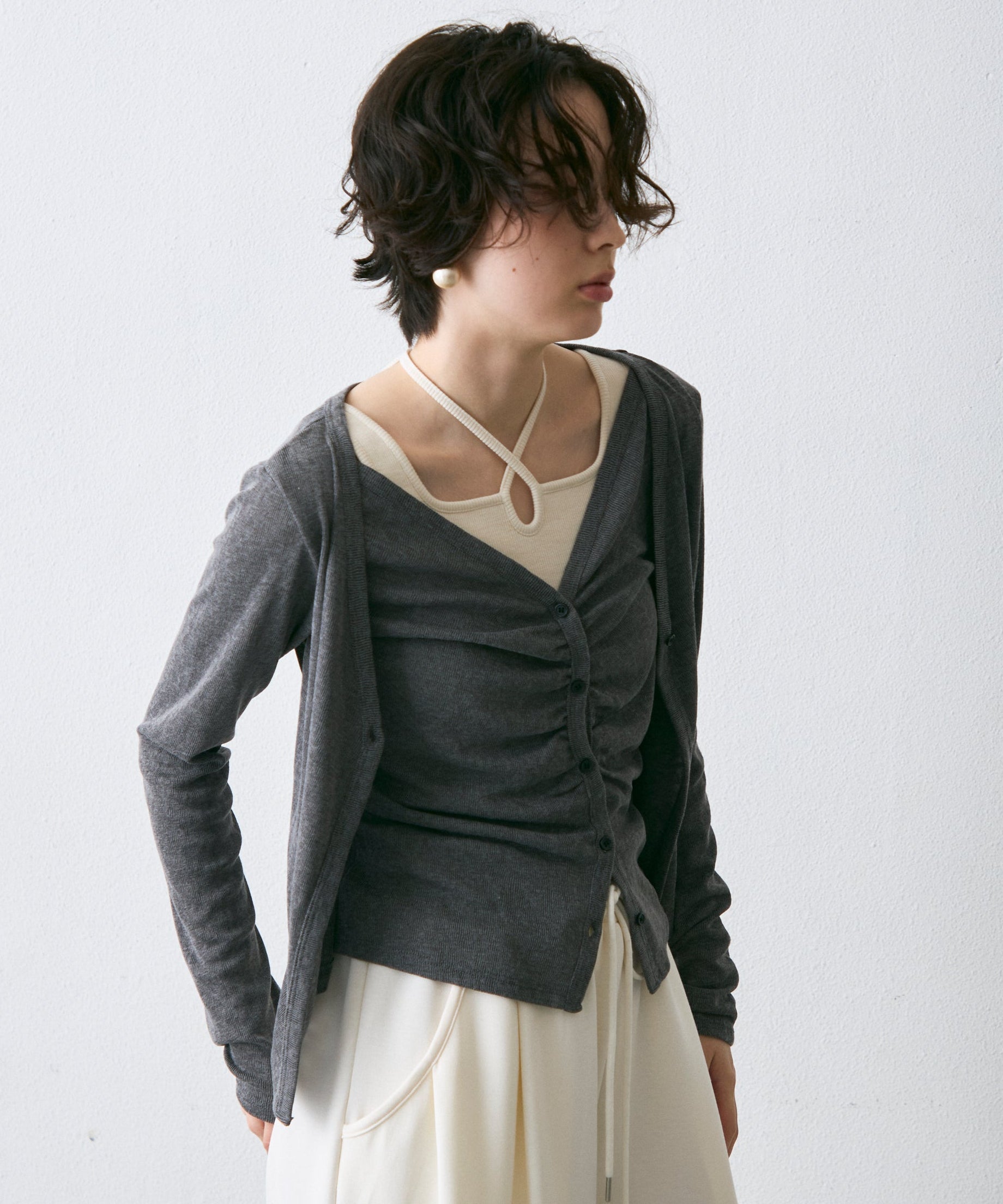 Vネックレイヤード風スラブカーディガン