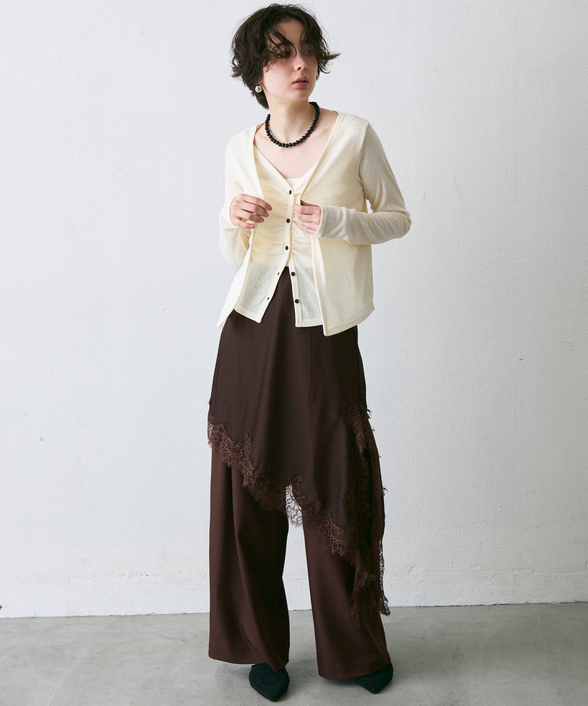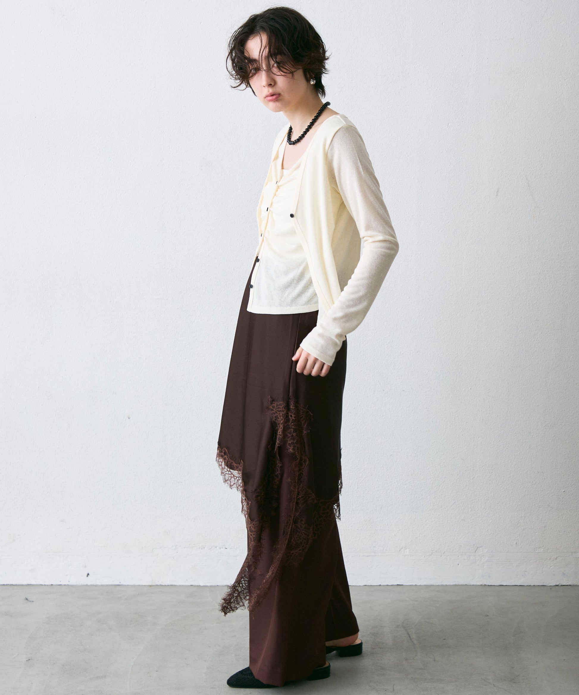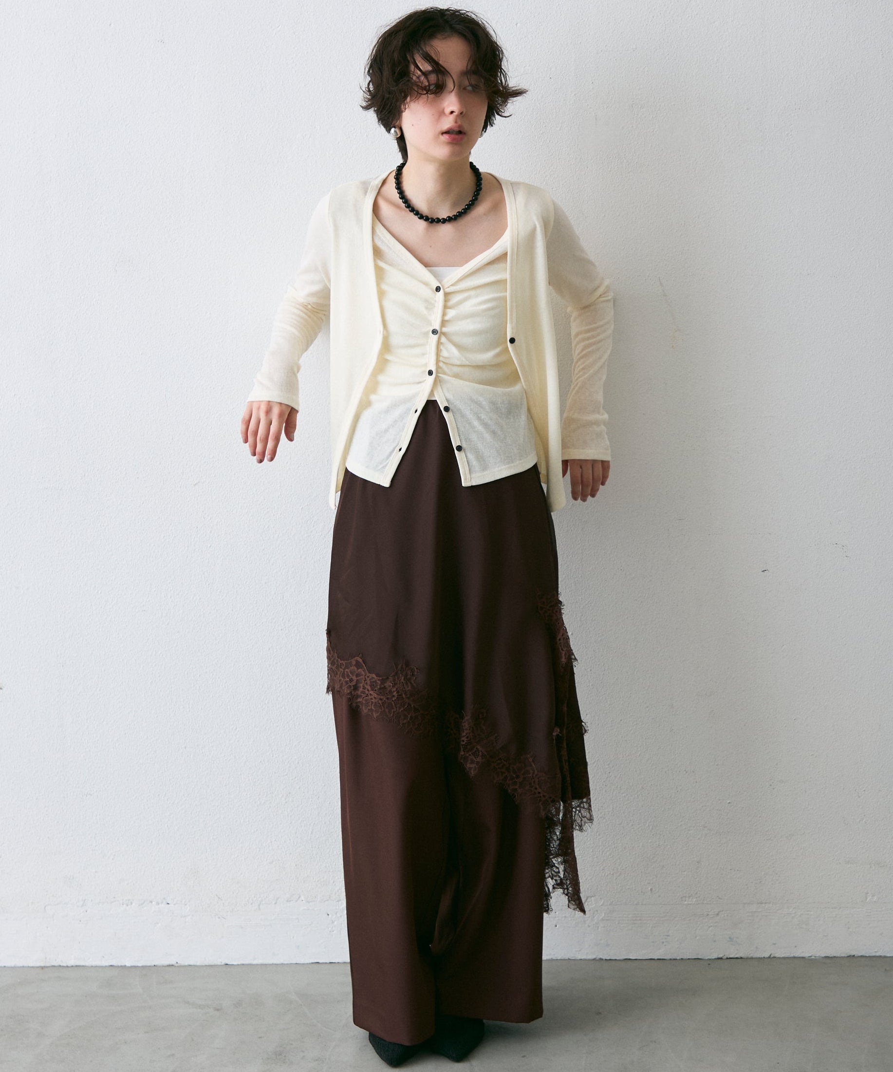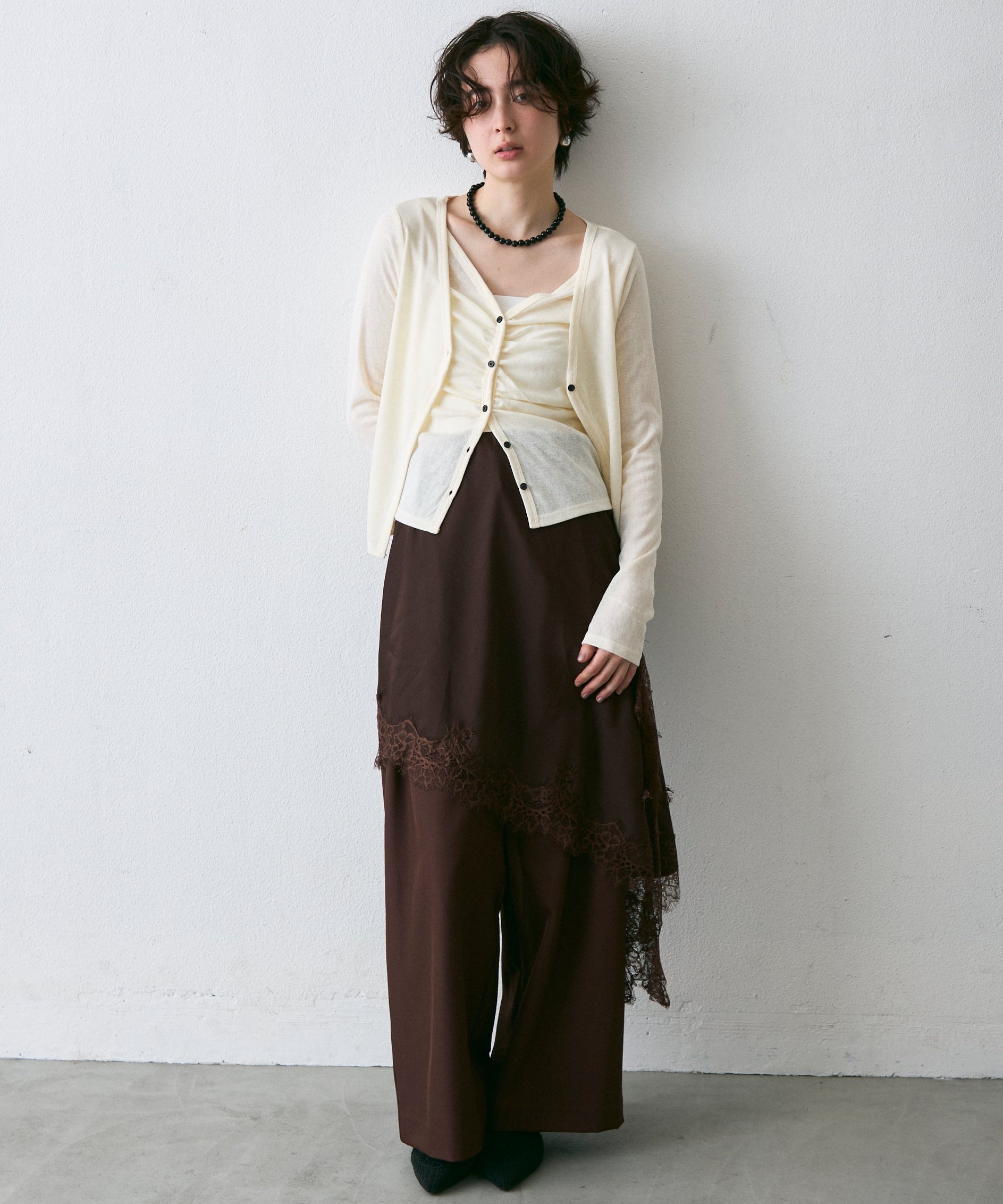 Vネックレイヤード風スラブカーディガン