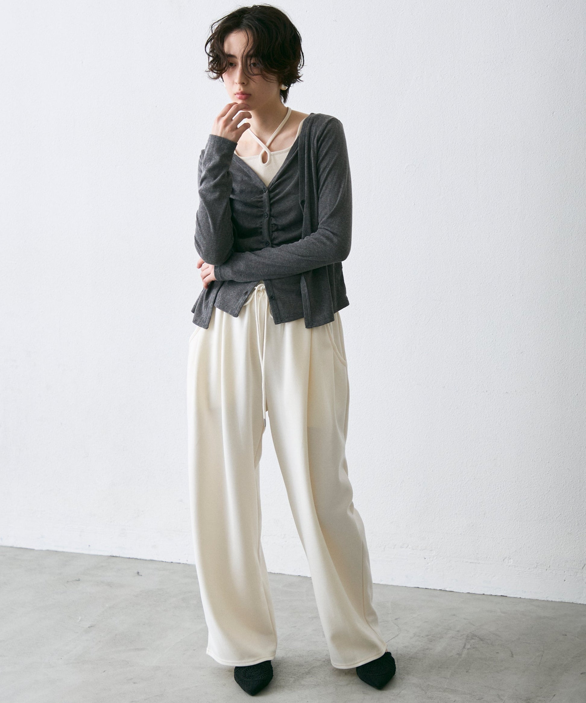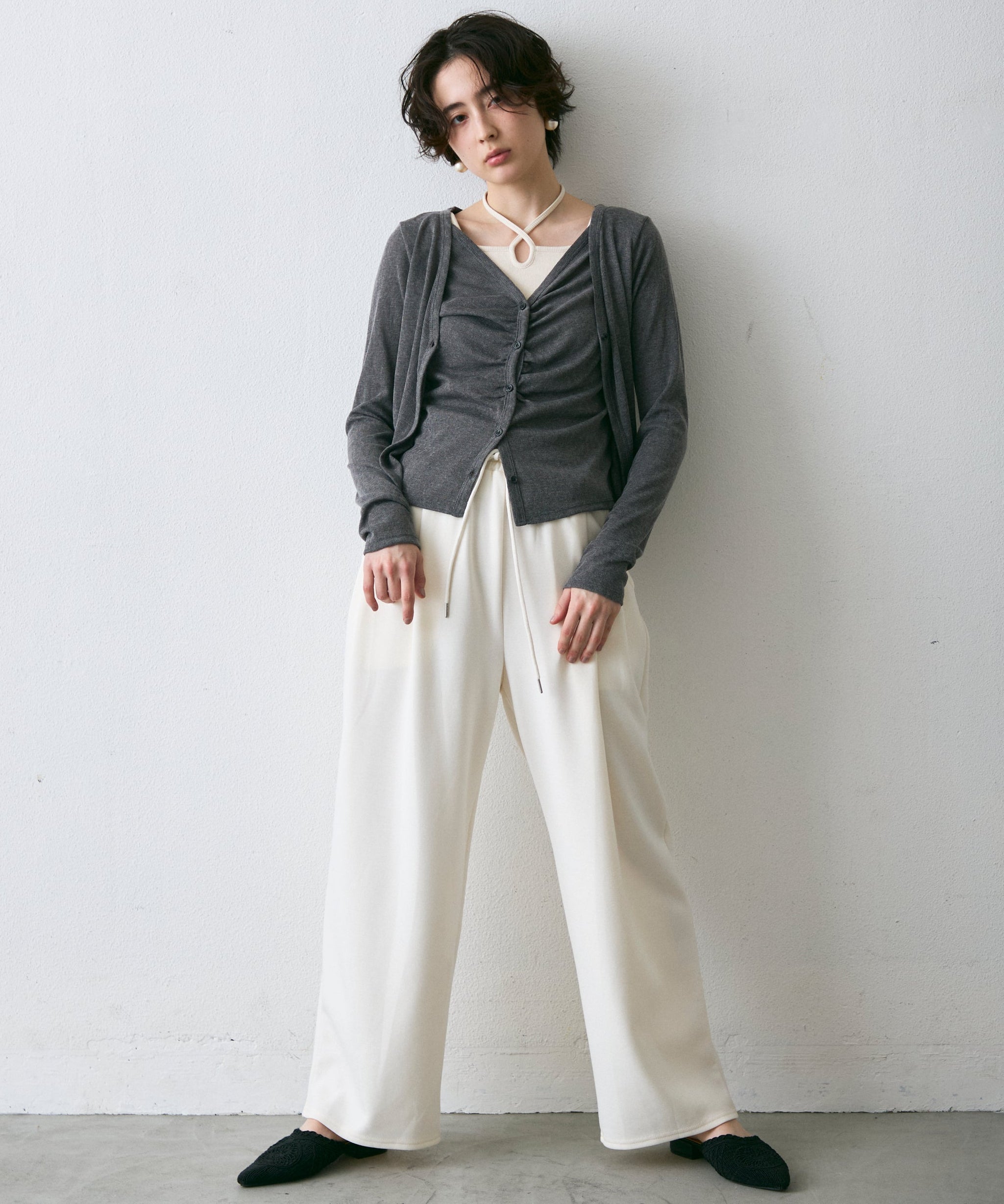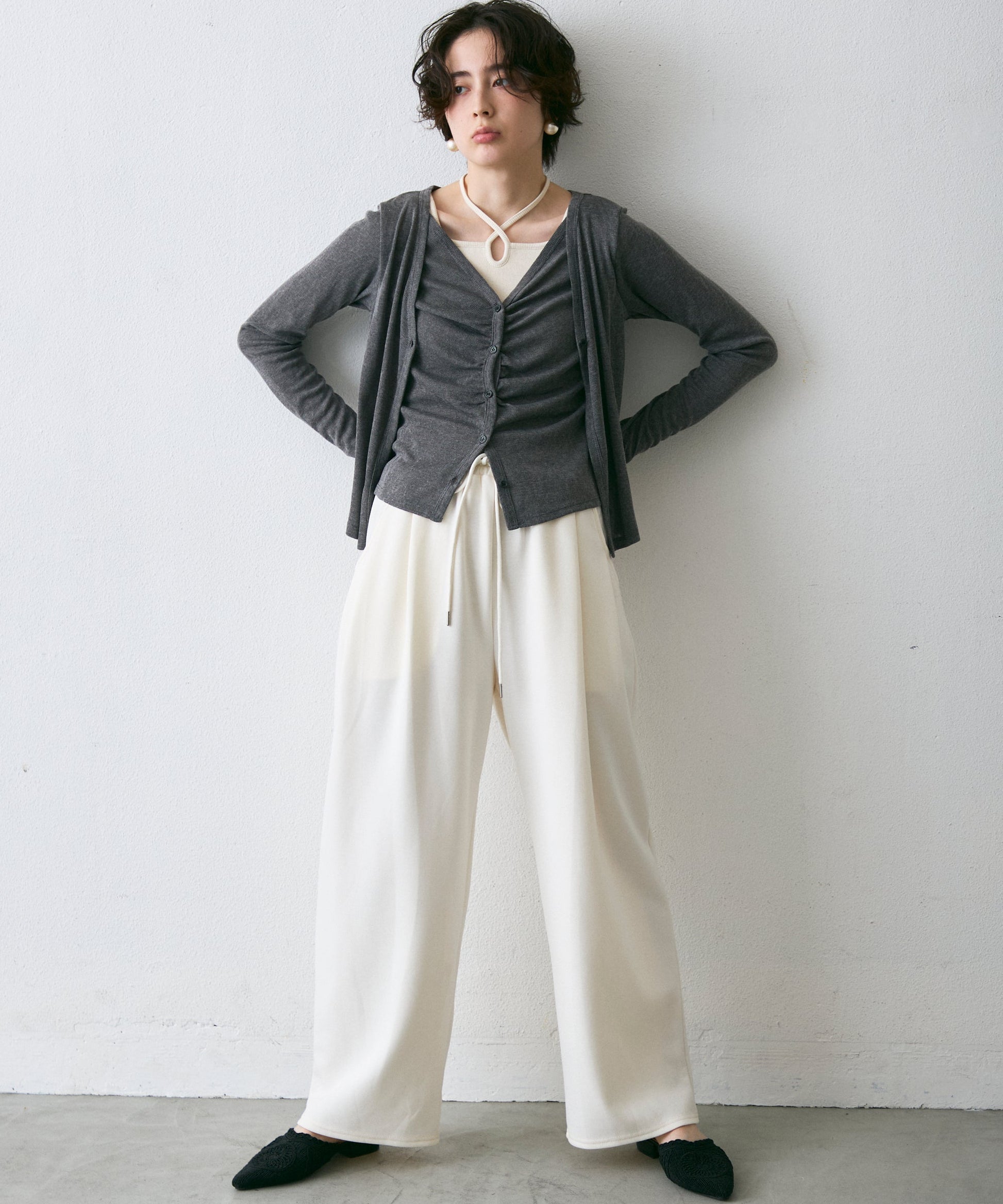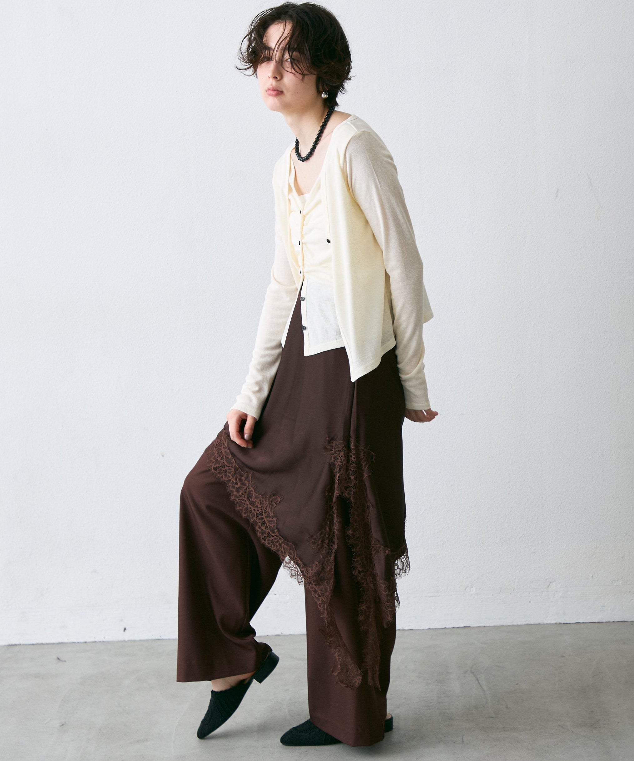Vネックレイヤード風スラブカーディガン