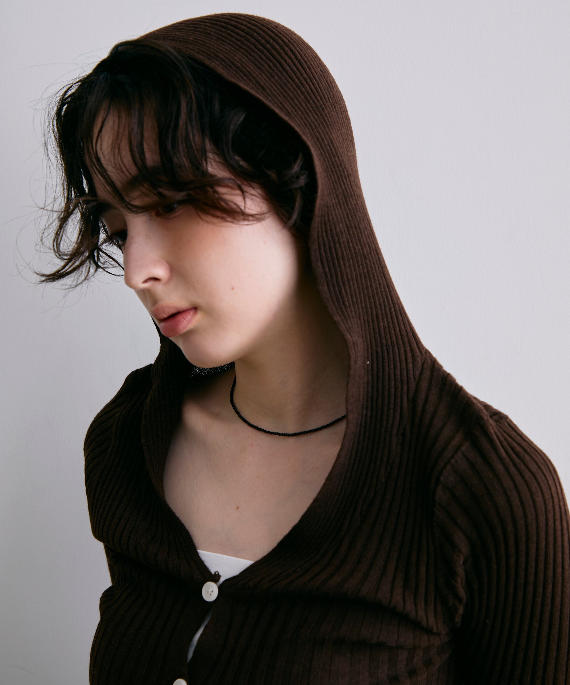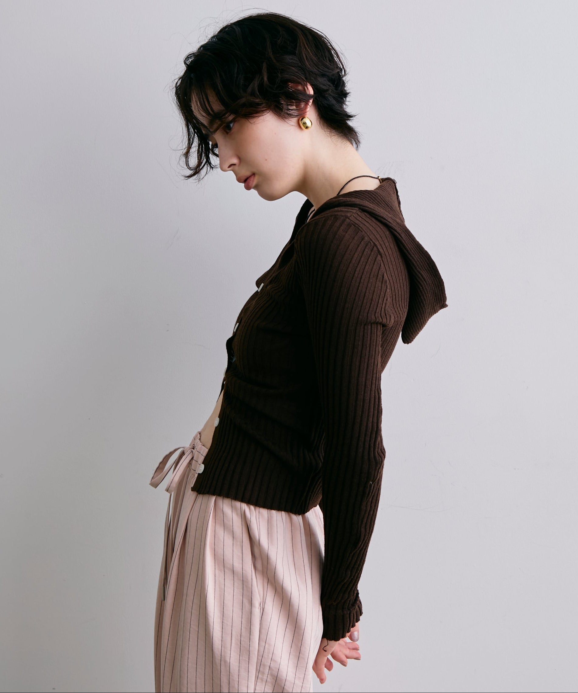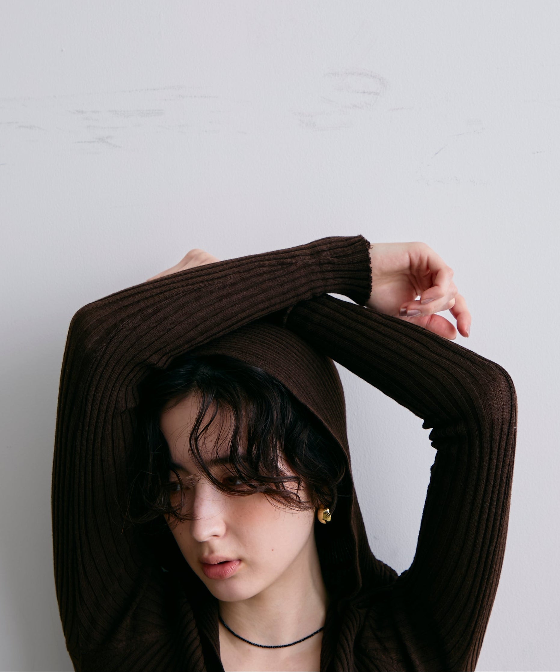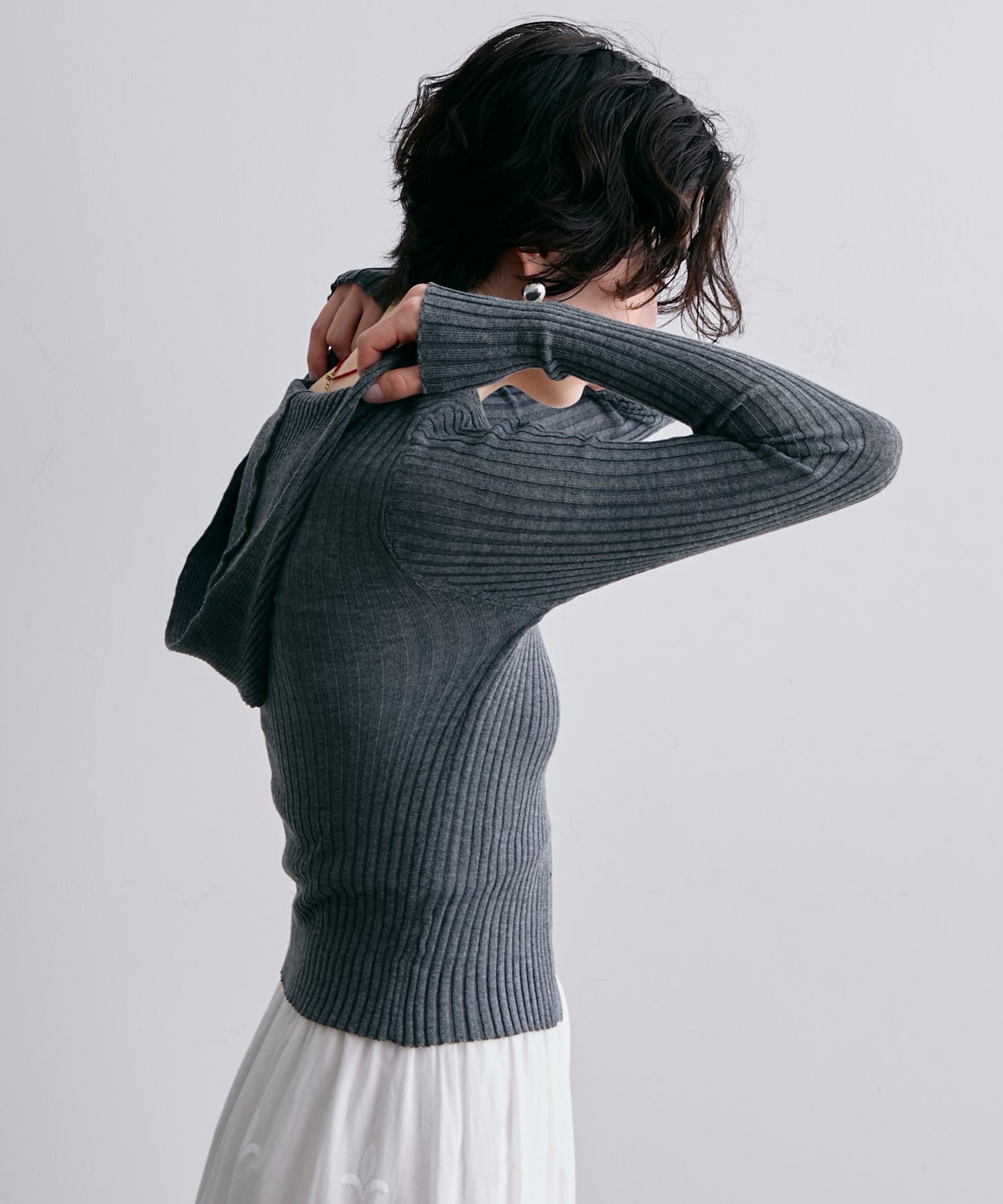 シンプルながらも表情のあるリブ編みが、スタイルに奥行きをプラス。