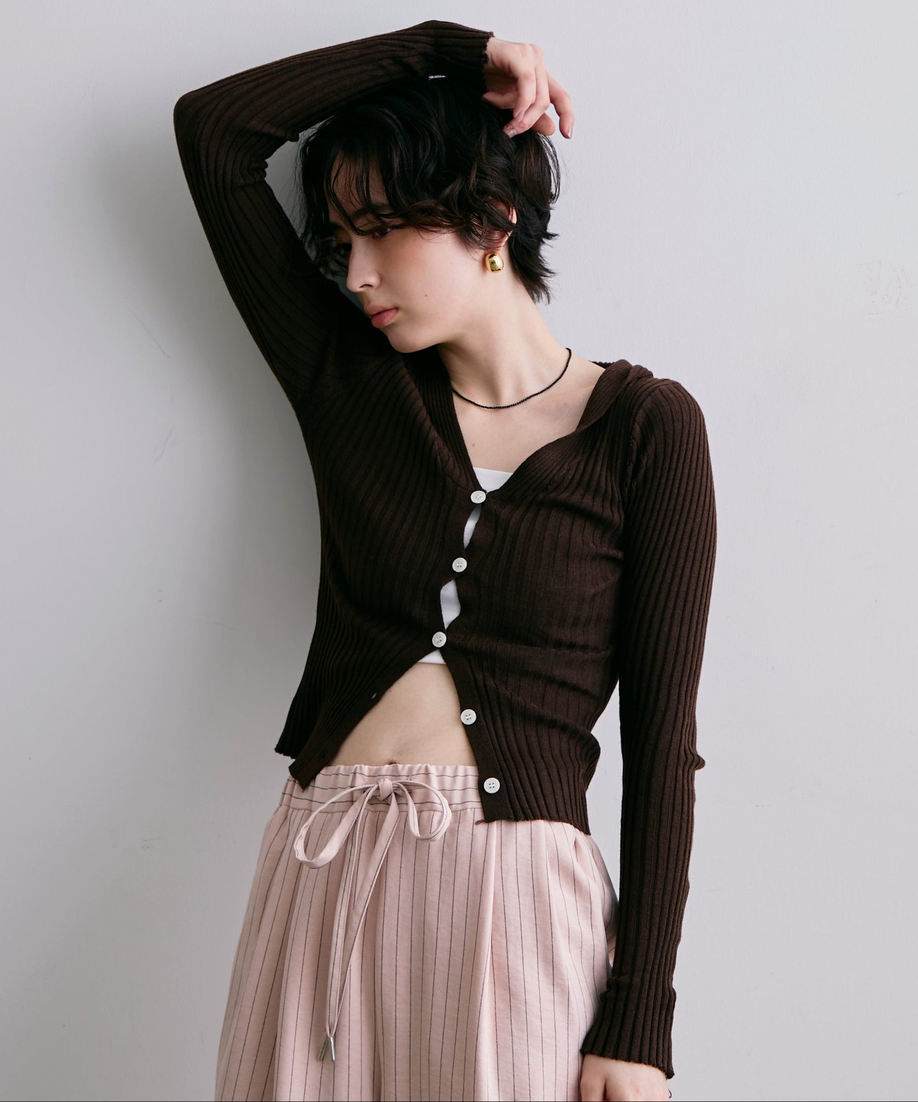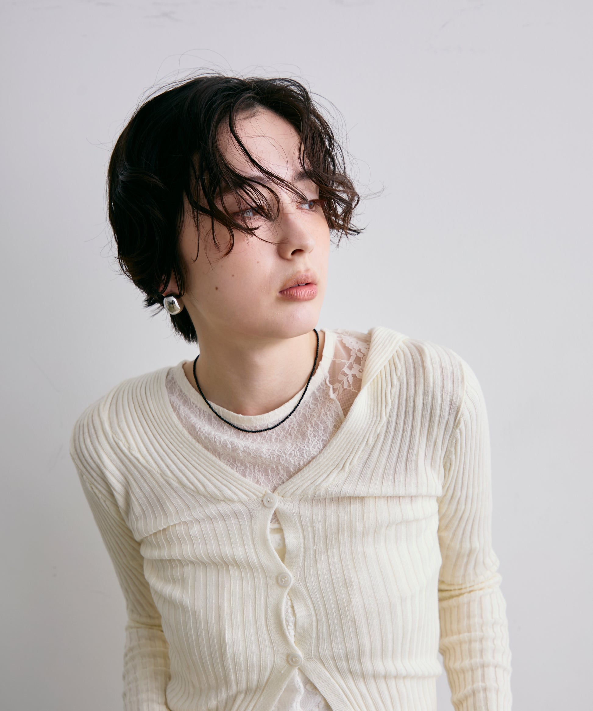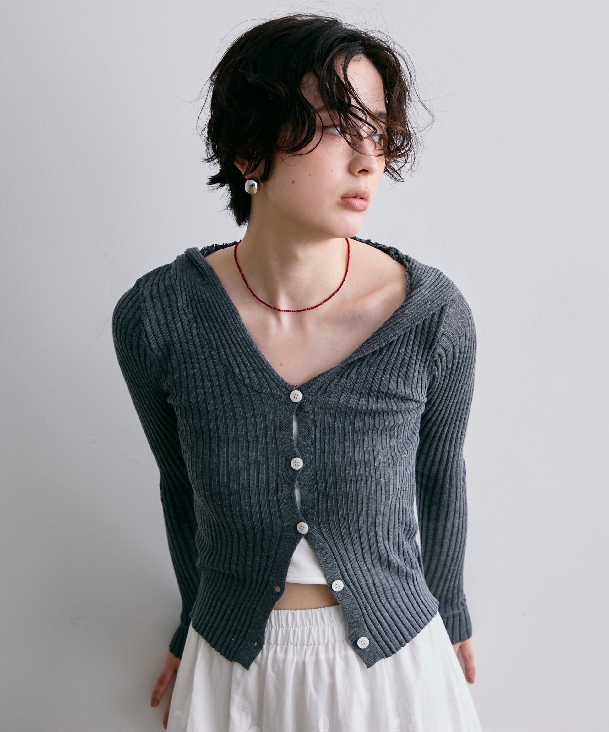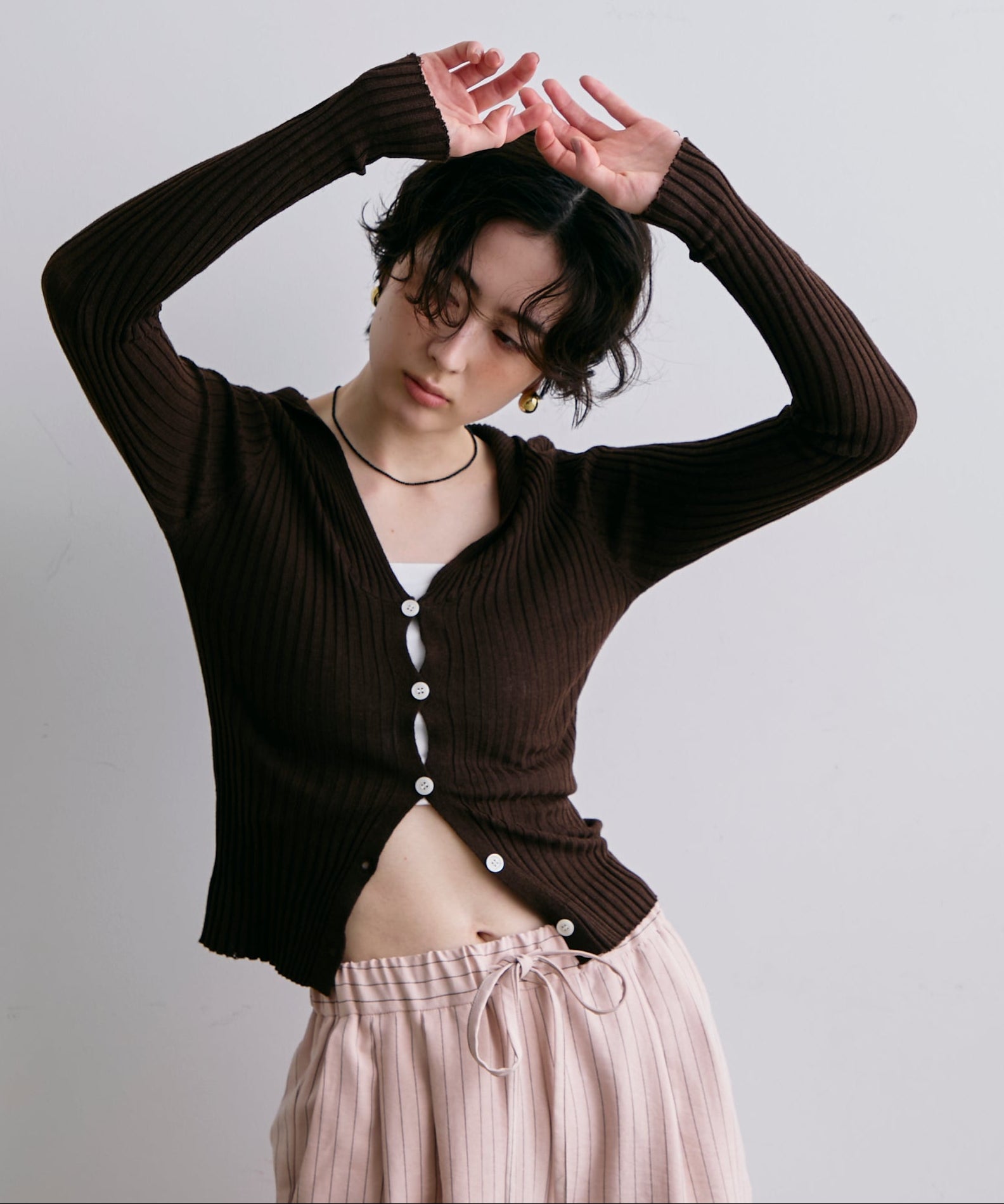 シンプルながらも表情のあるリブ編みが、スタイルに奥行きをプラス。