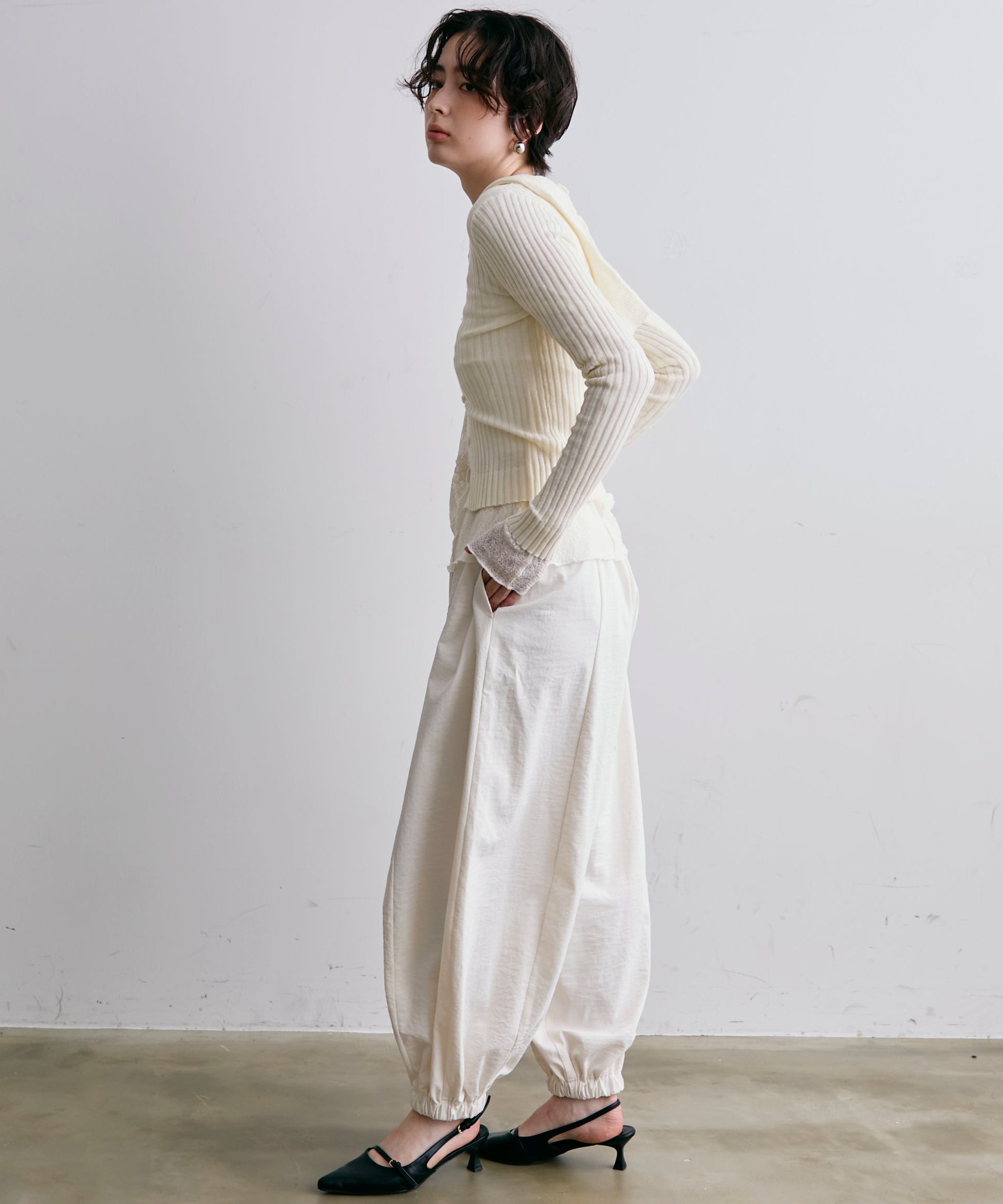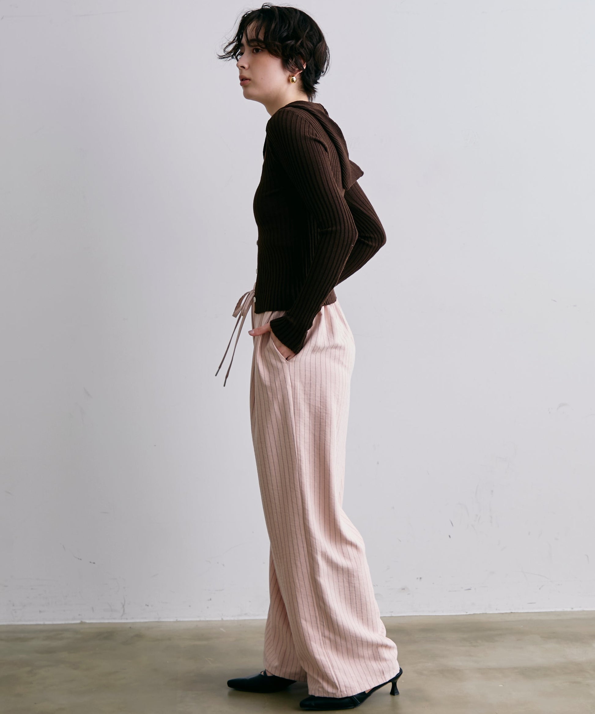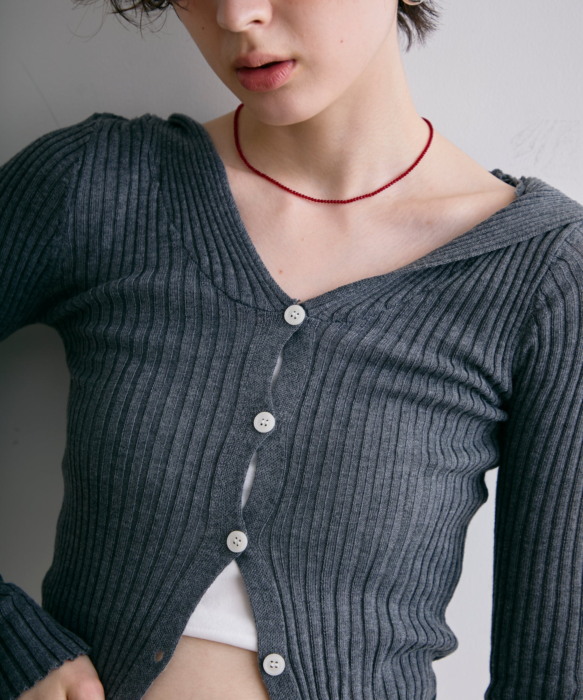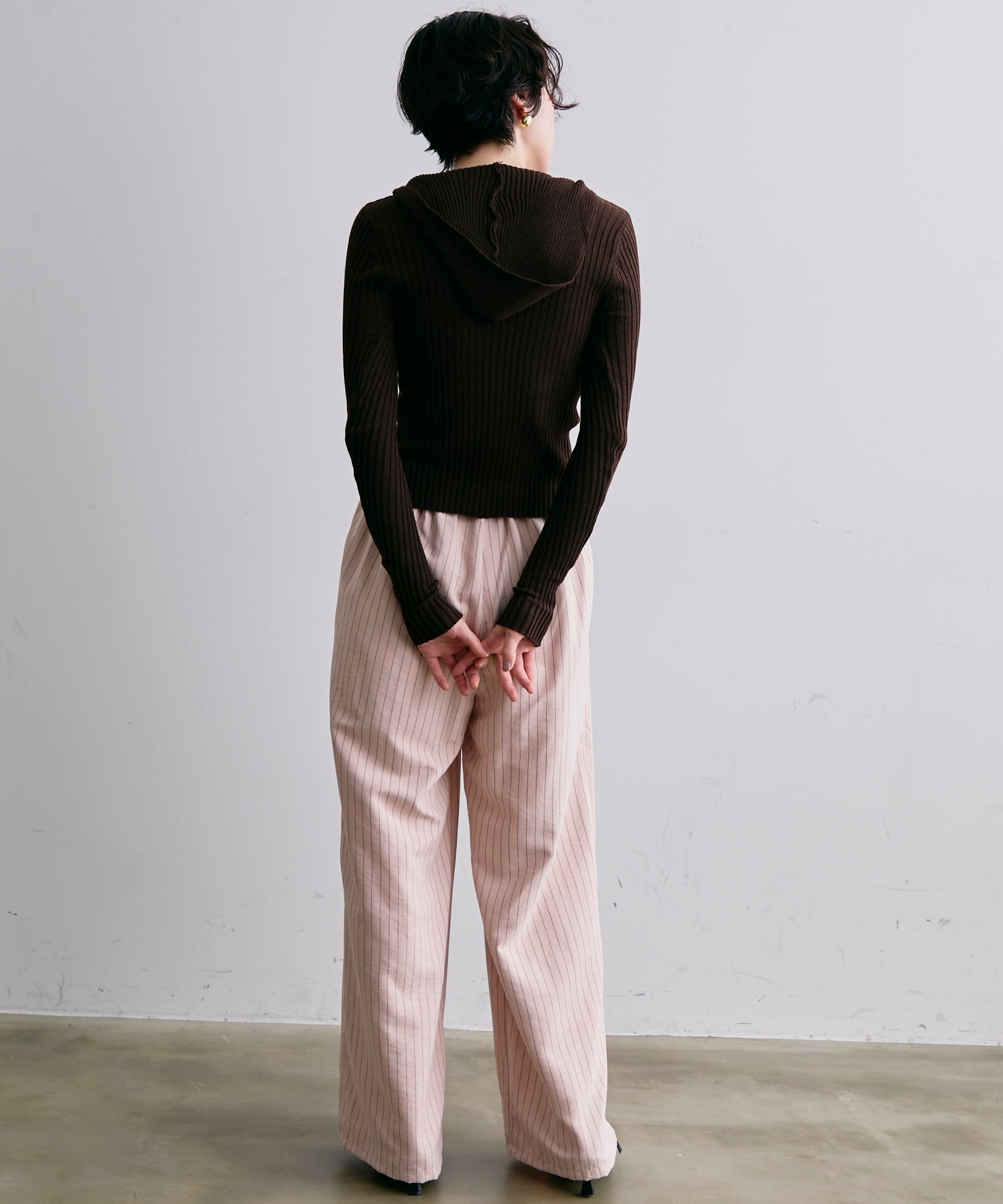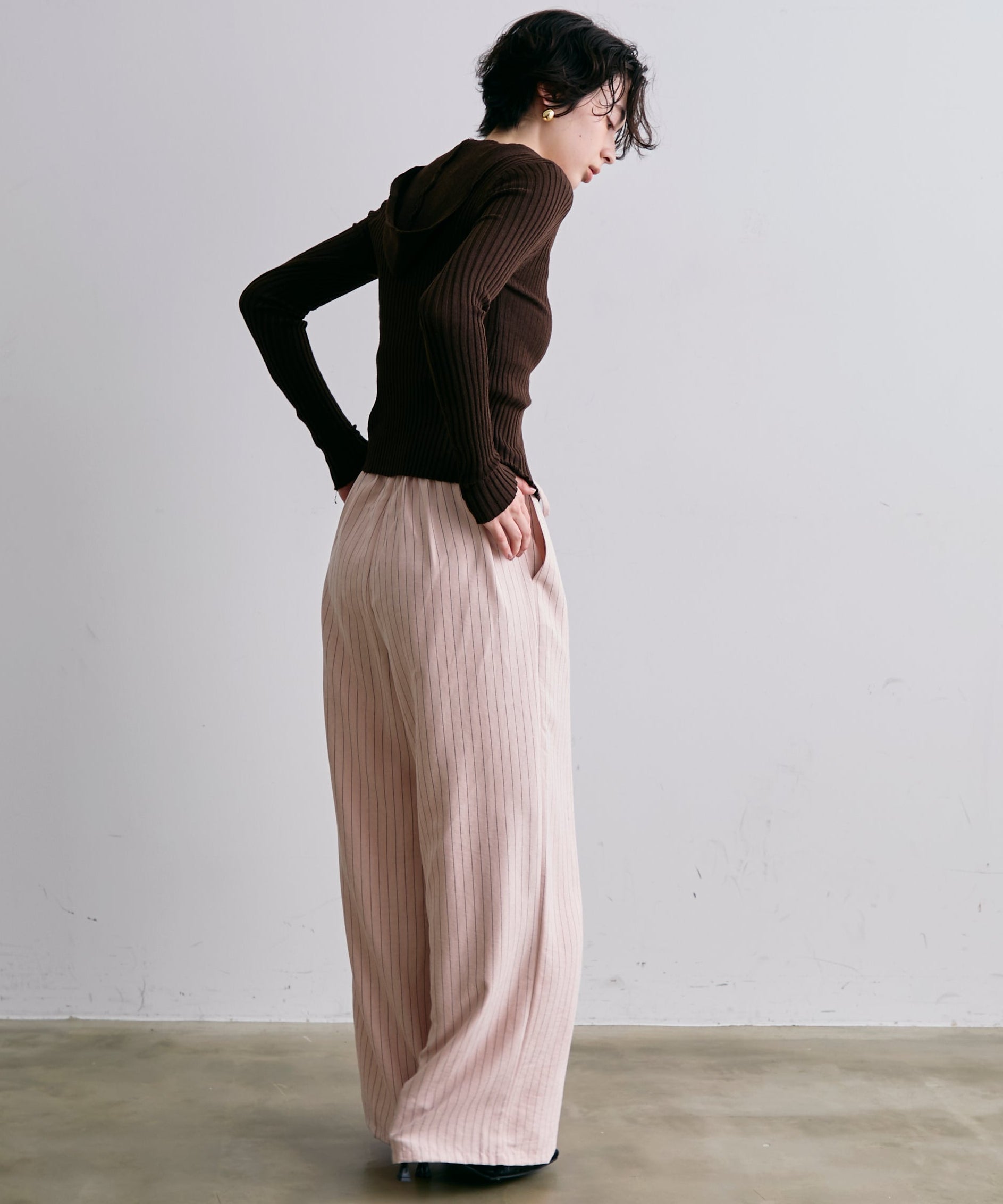 シンプルながらも表情のあるリブ編みが、スタイルに奥行きをプラス。