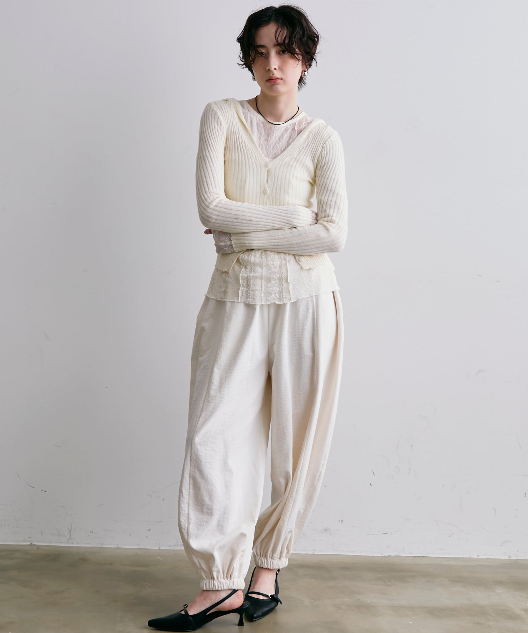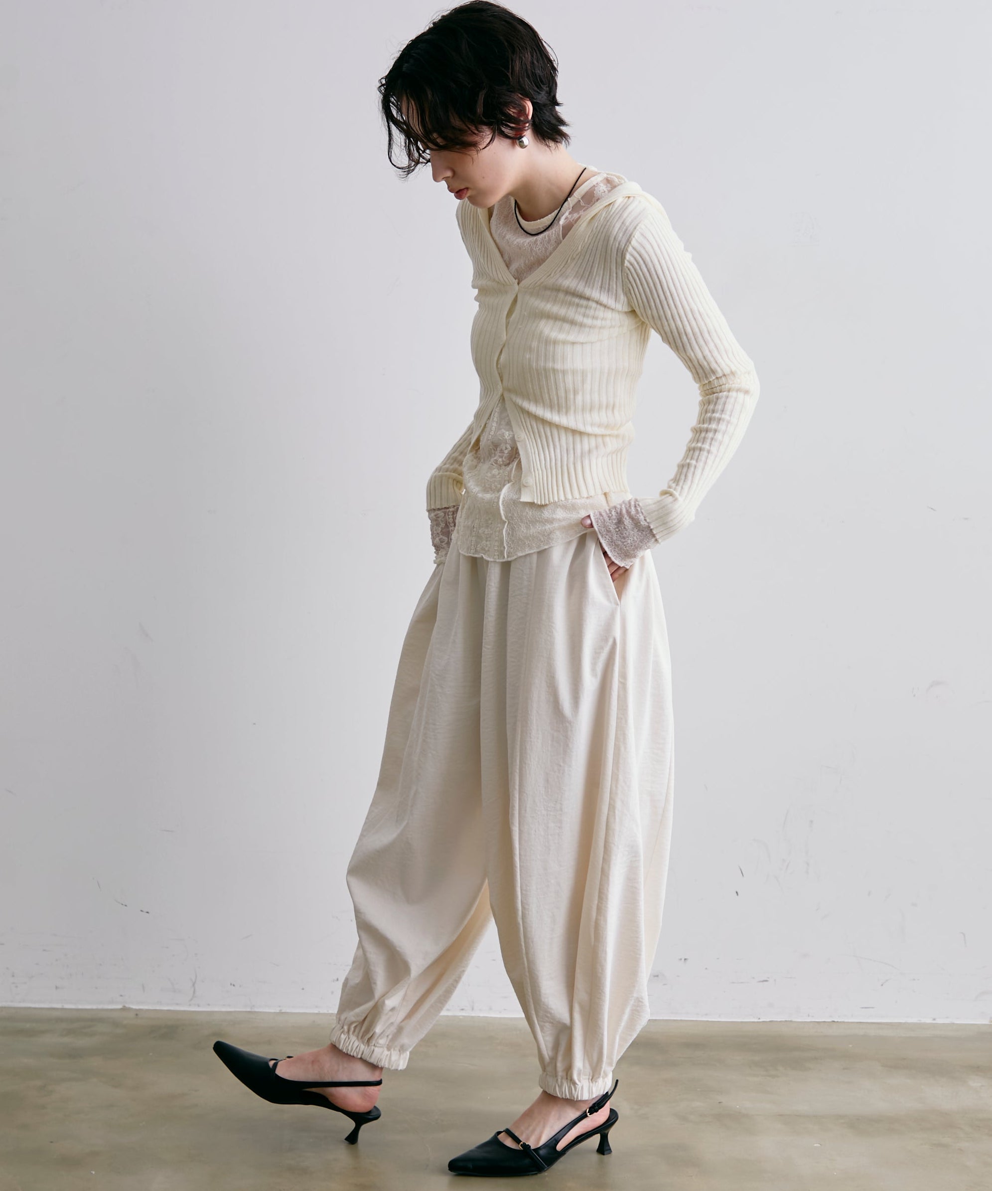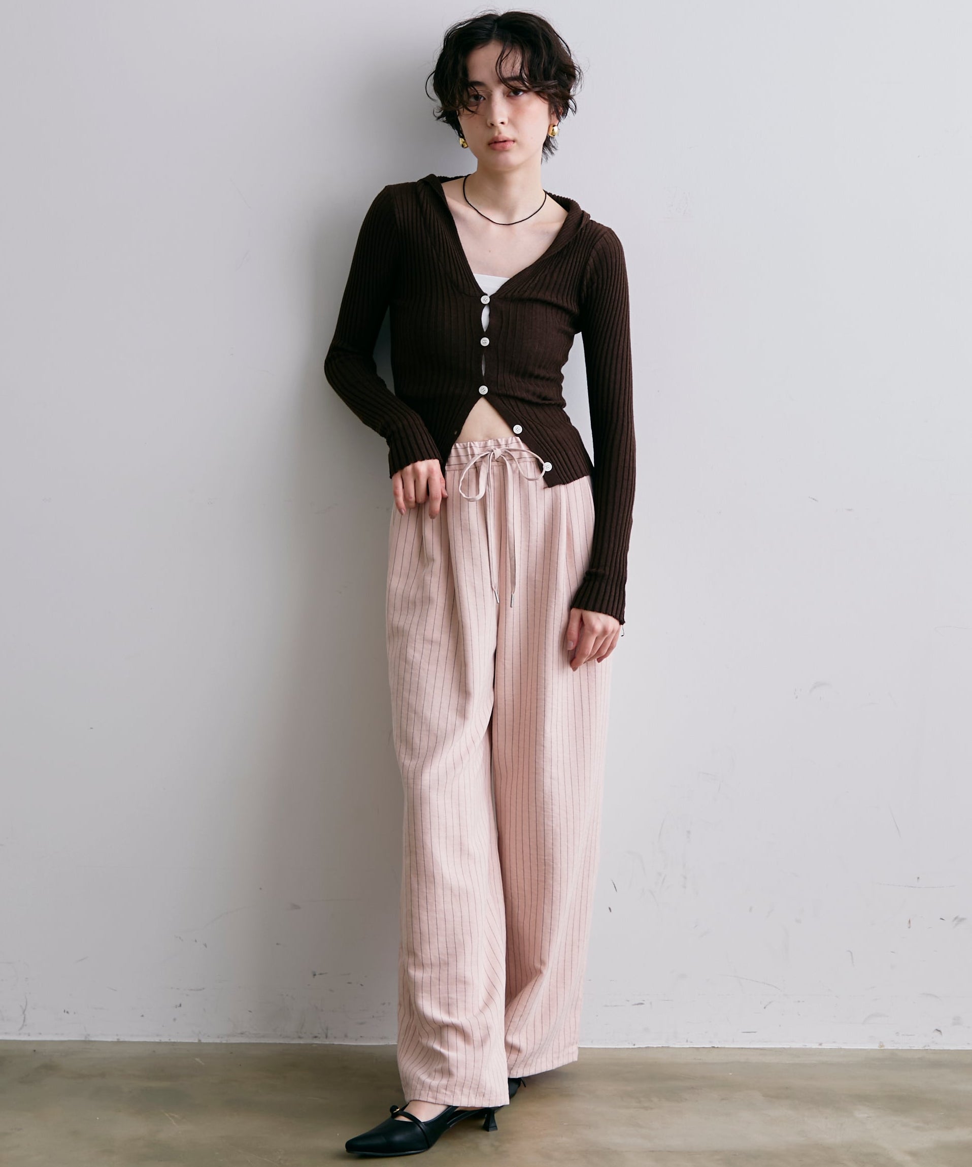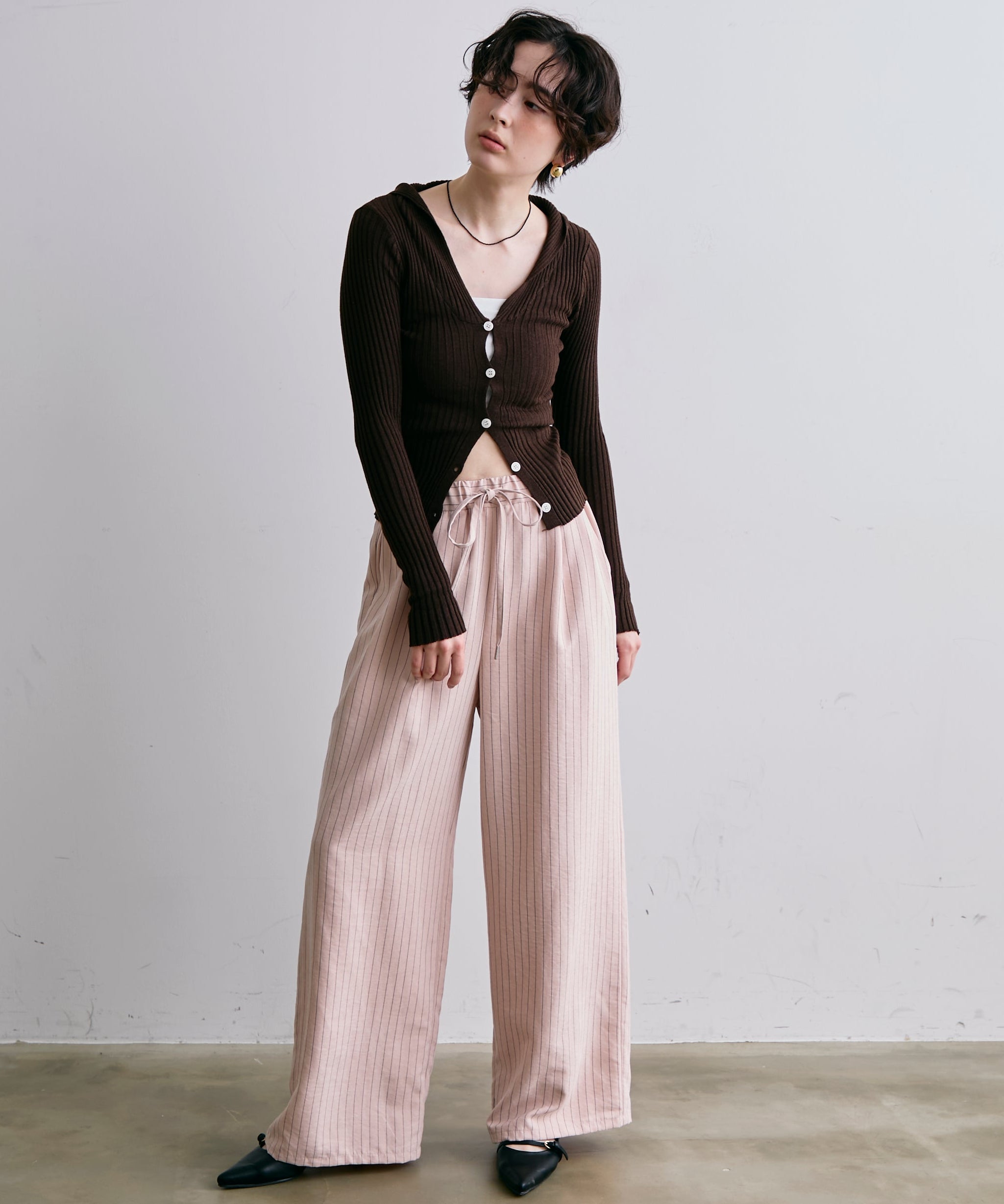 シンプルながらも表情のあるリブ編みが、スタイルに奥行きをプラス。