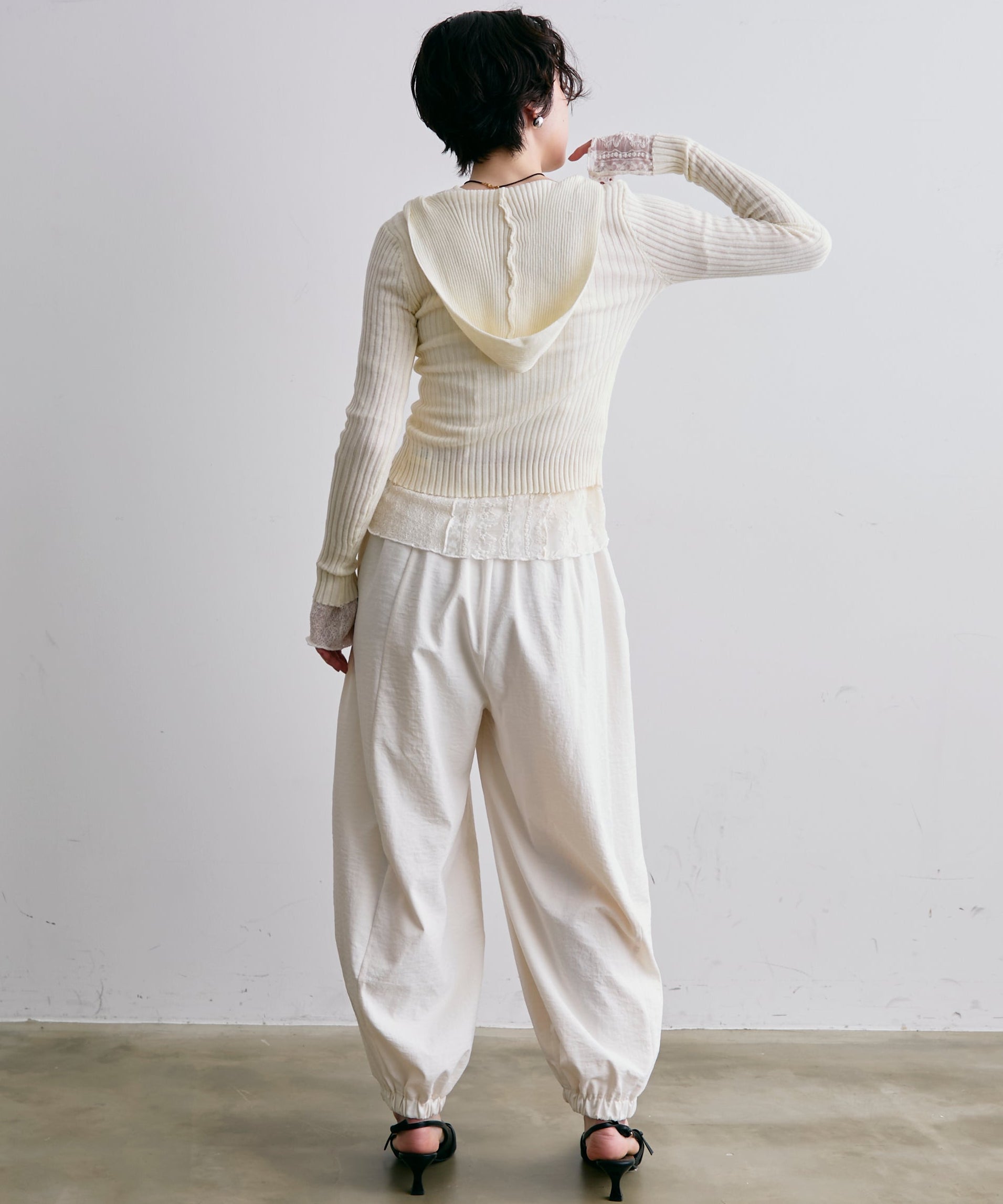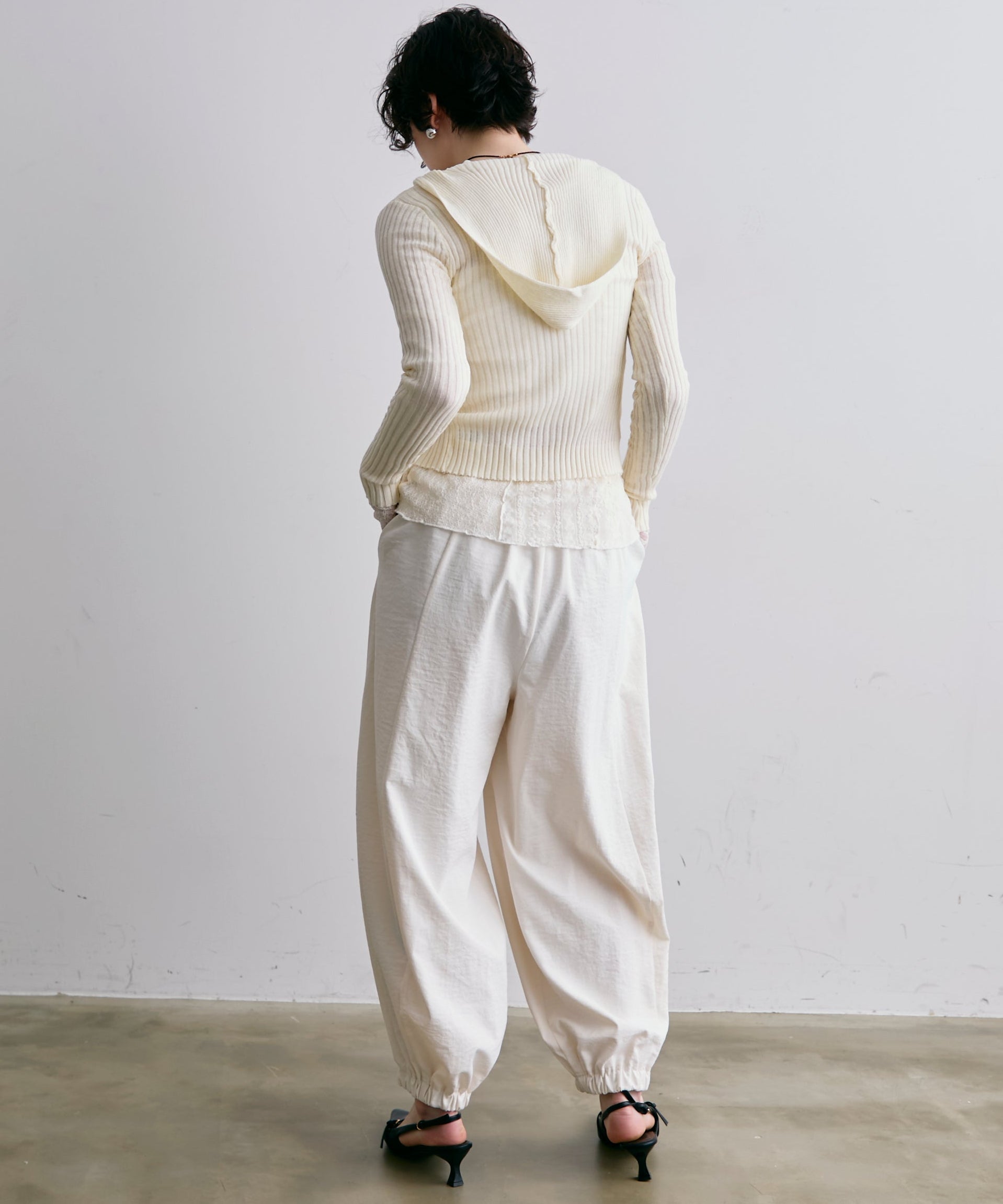 フード付きでもラフになりすぎず、きれいめボトムとも好相性。