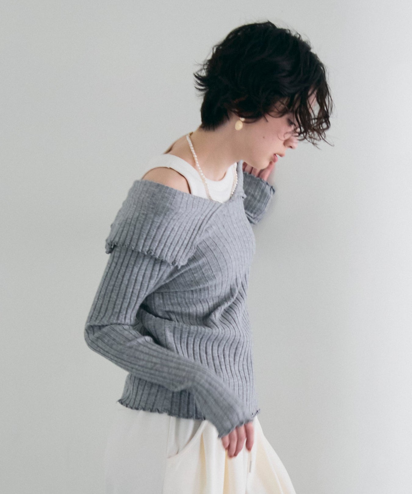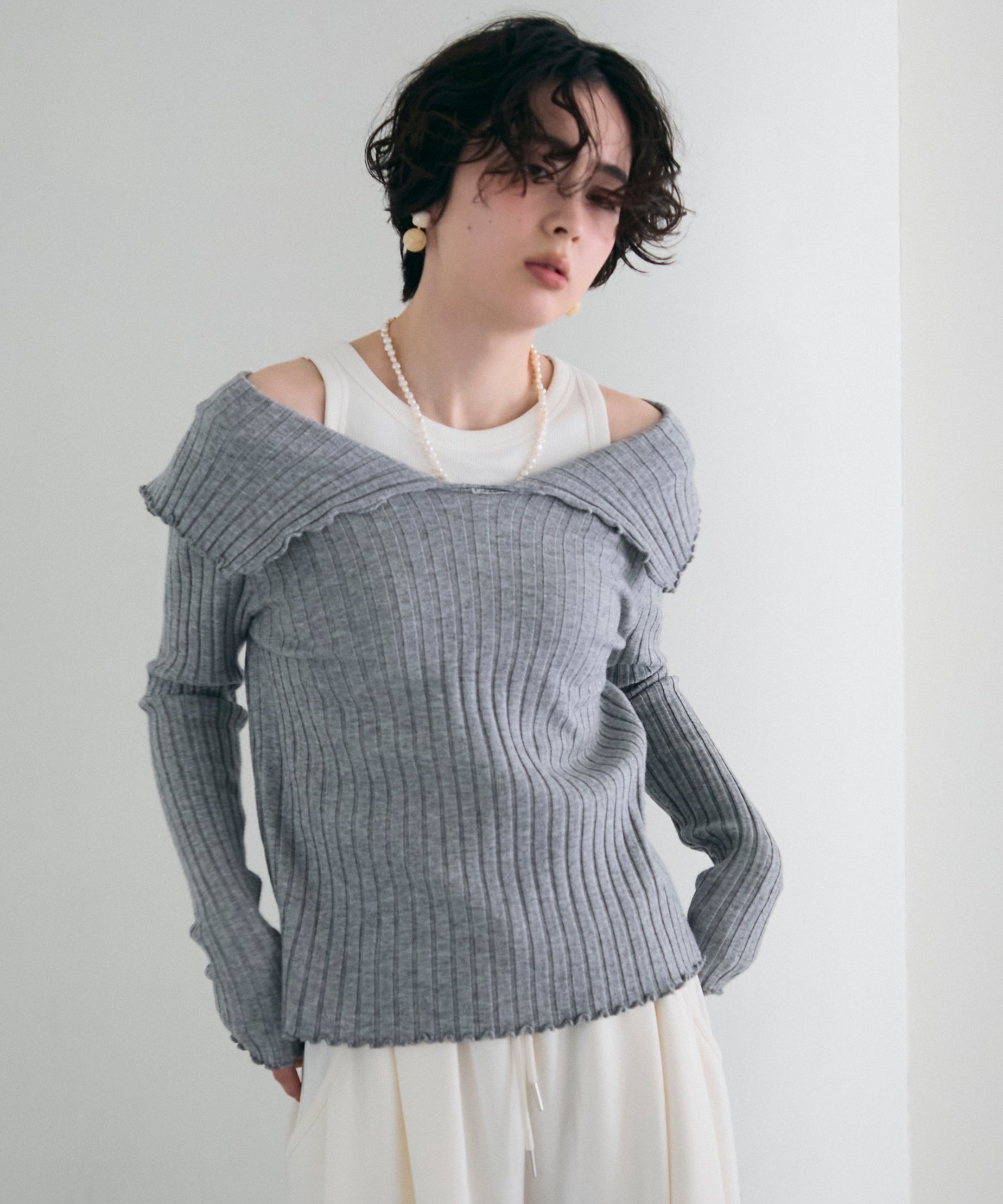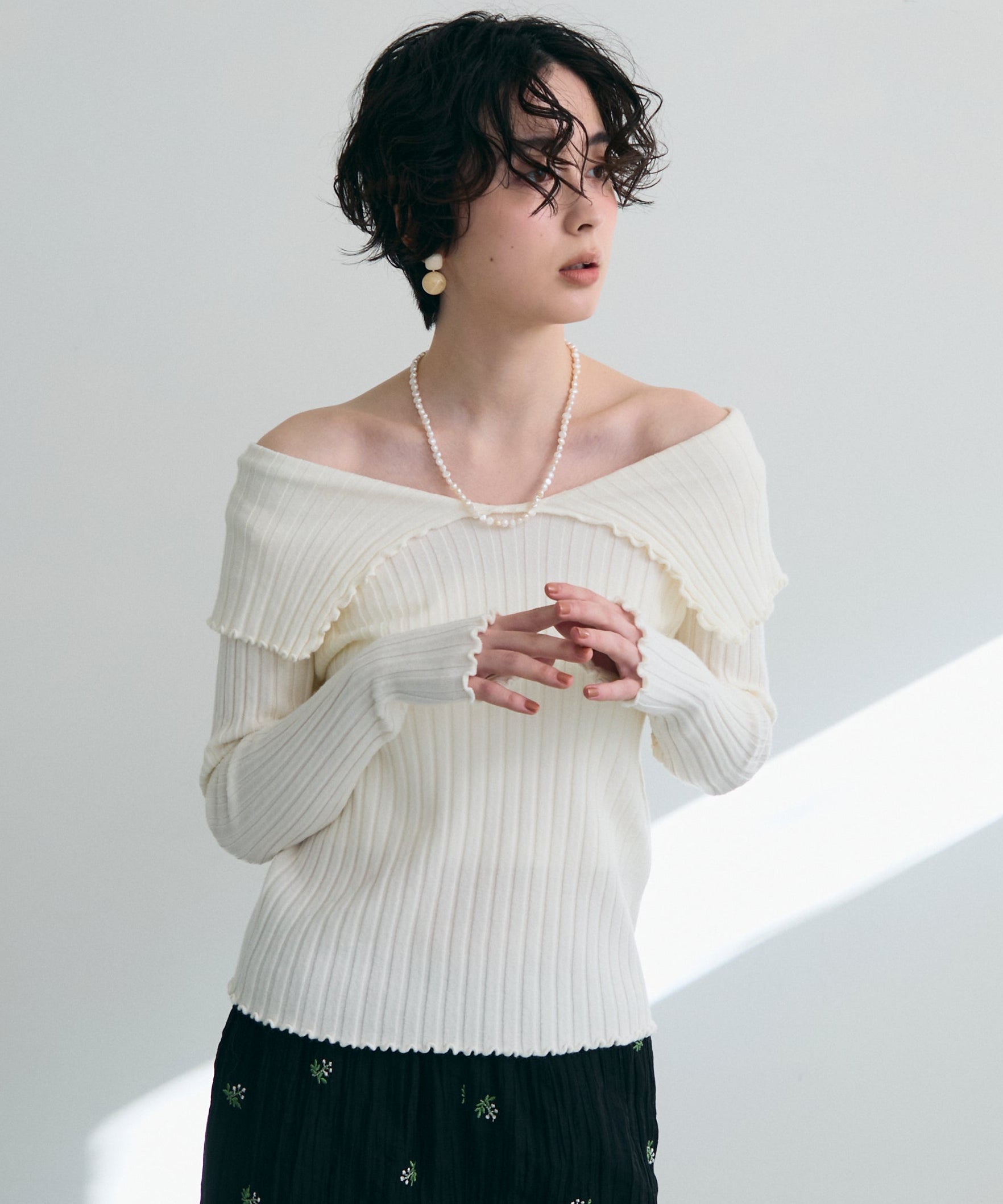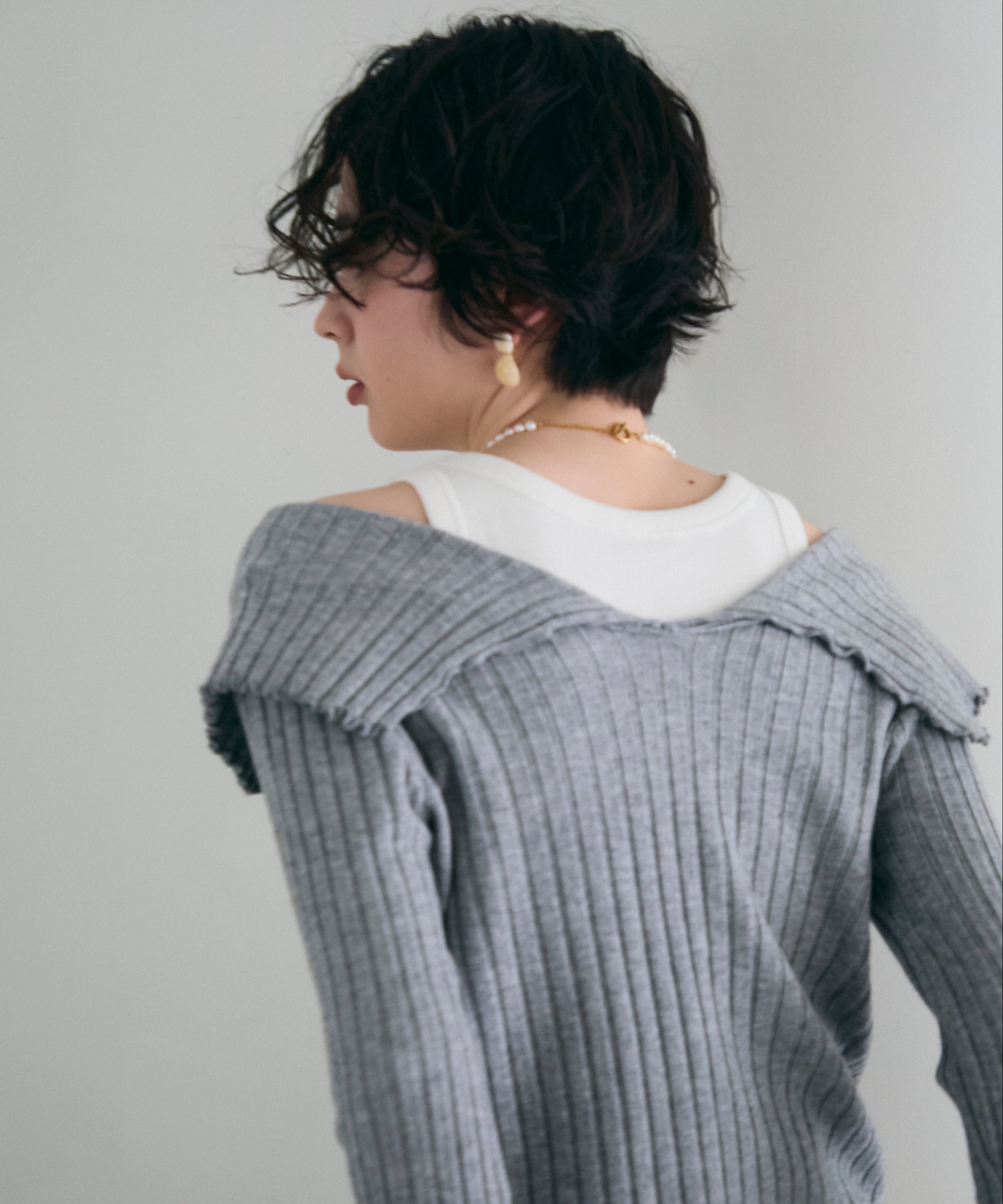 首元の開きが女性らしく、インナーとのレイヤードも楽しめます。